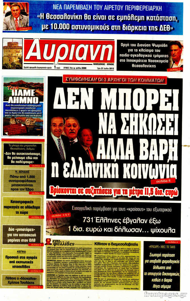 Τα σημερινά πρωτοσέλιδα των πολιτικών εφημερίδων.