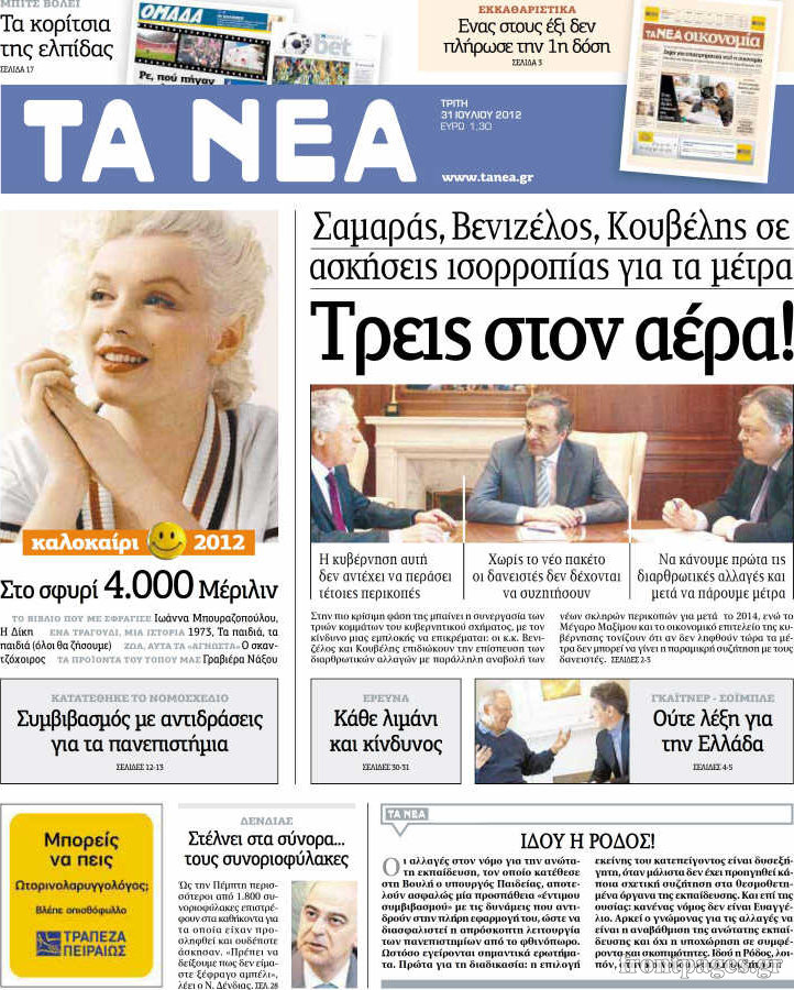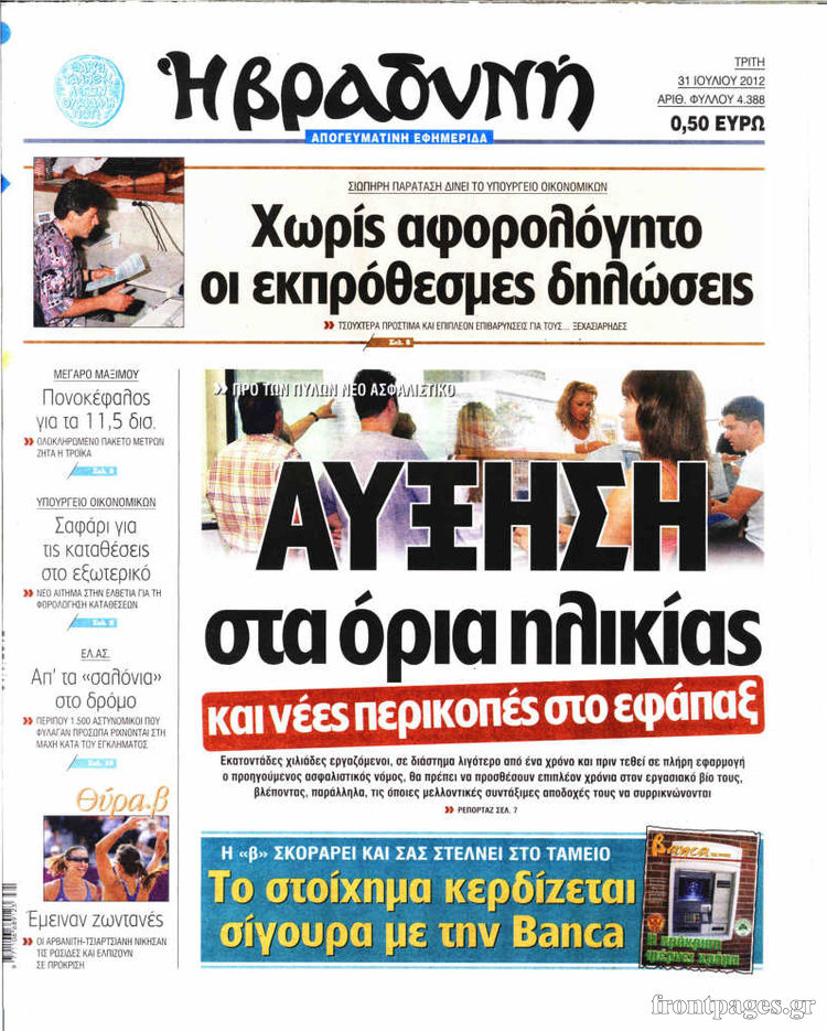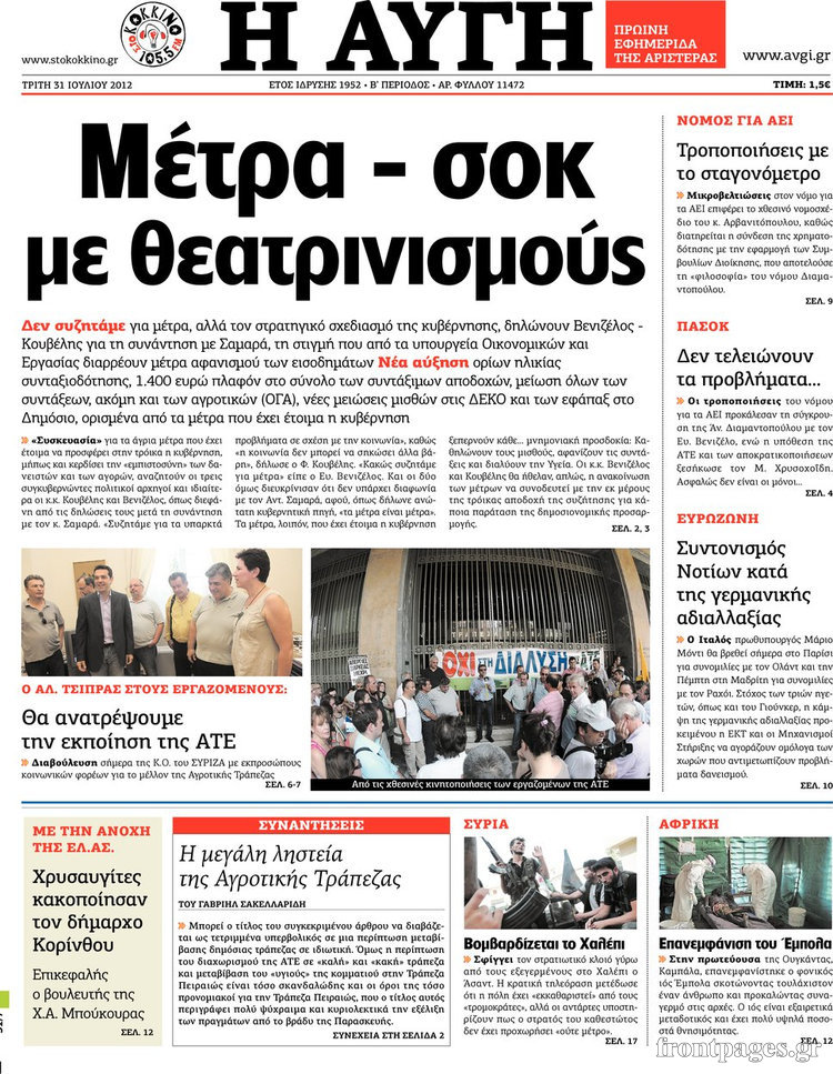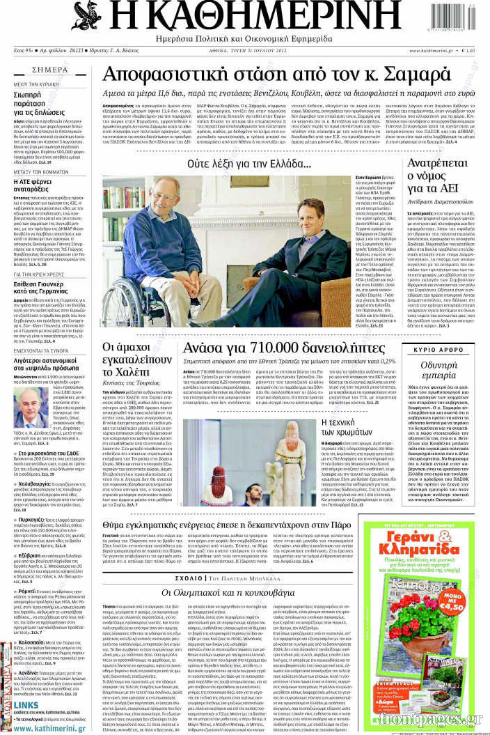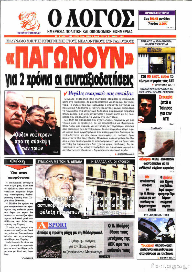 Τα σημερινά πρωτοσέλιδα των πολιτικών εφημερίδων.