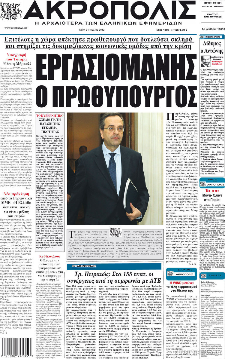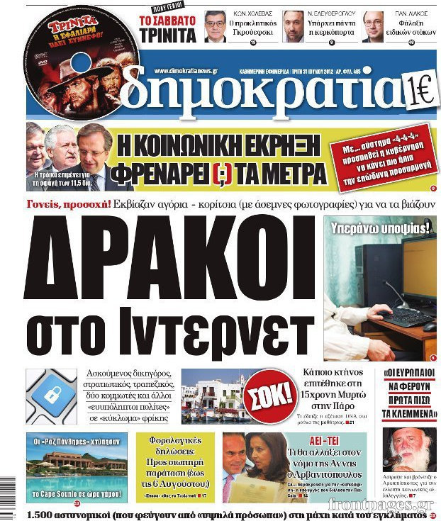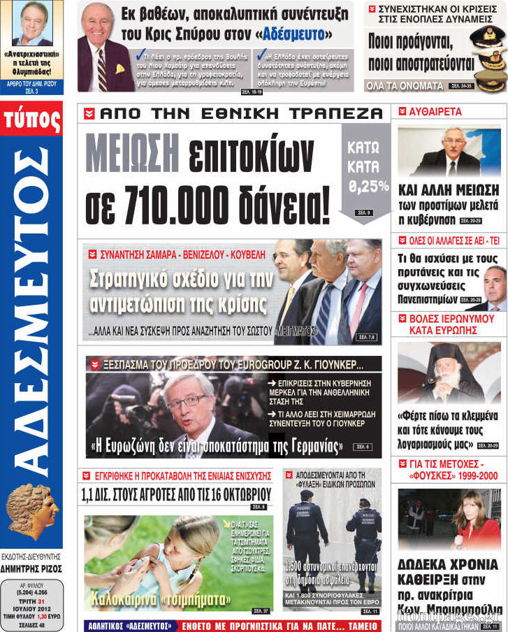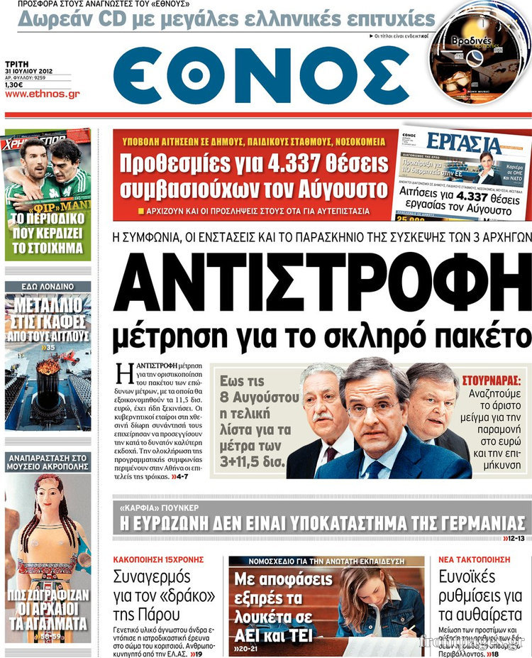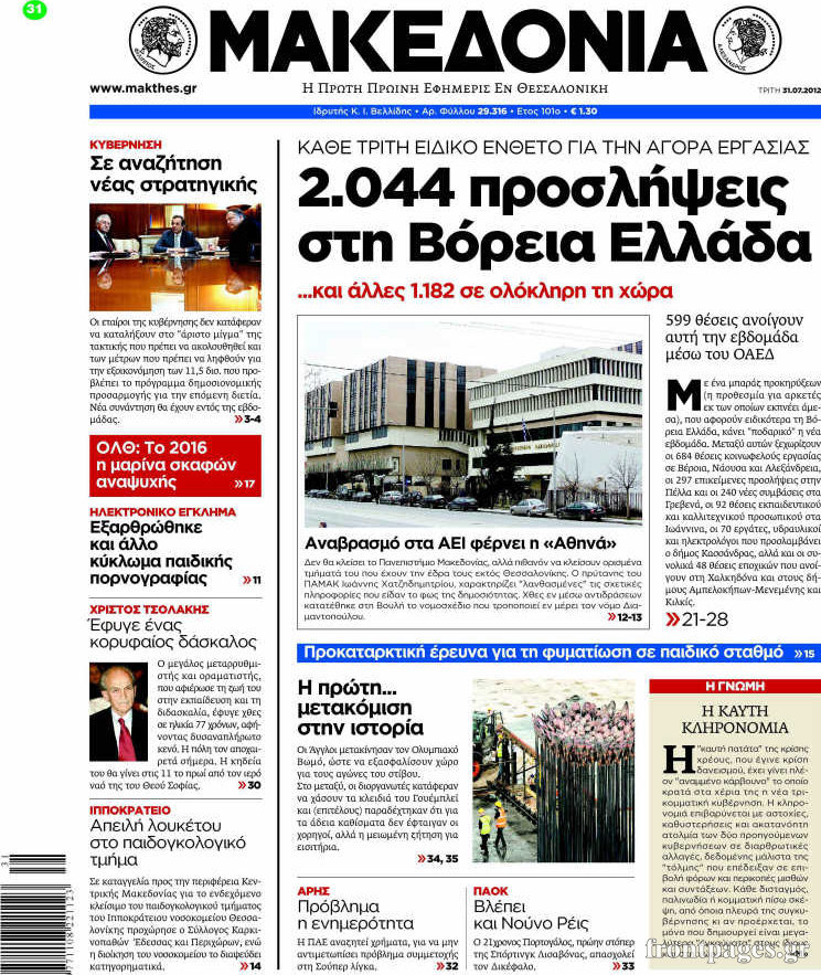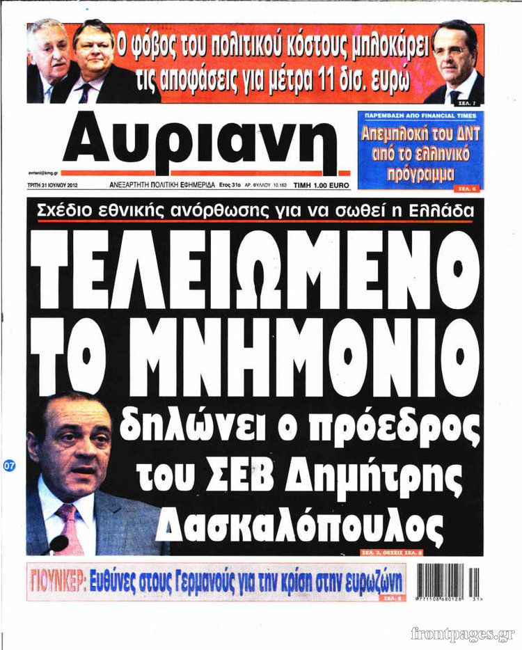 Τα σημερινά πρωτοσέλιδα των πολιτικών εφημερίδων.