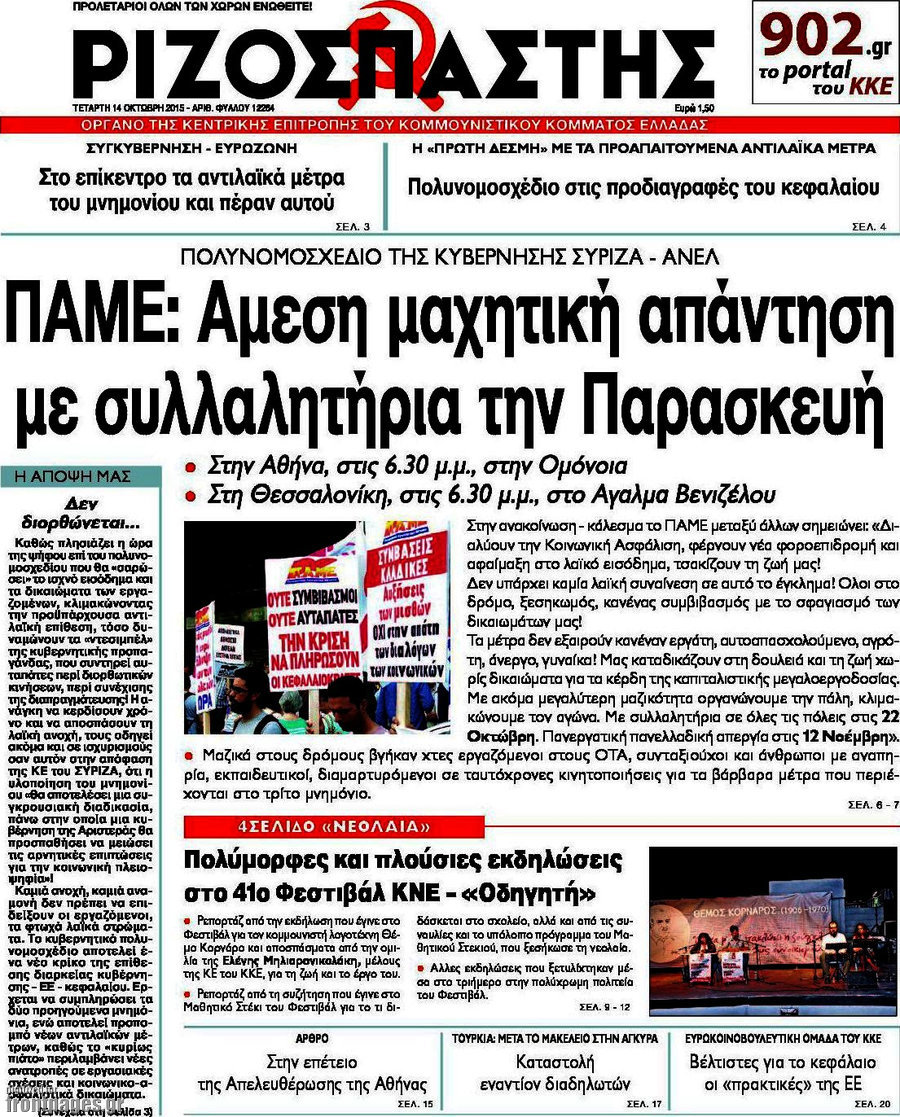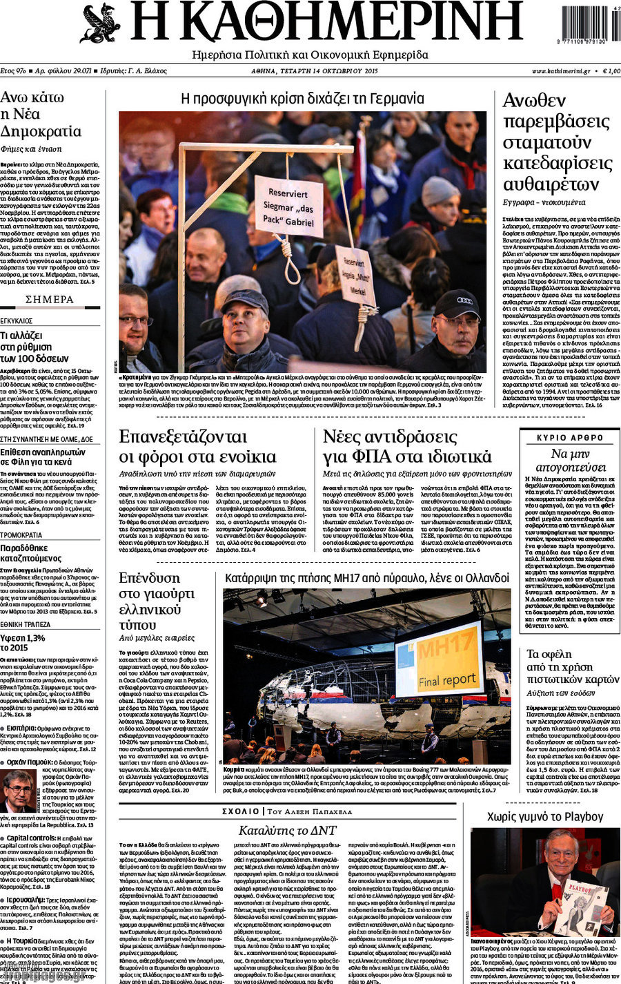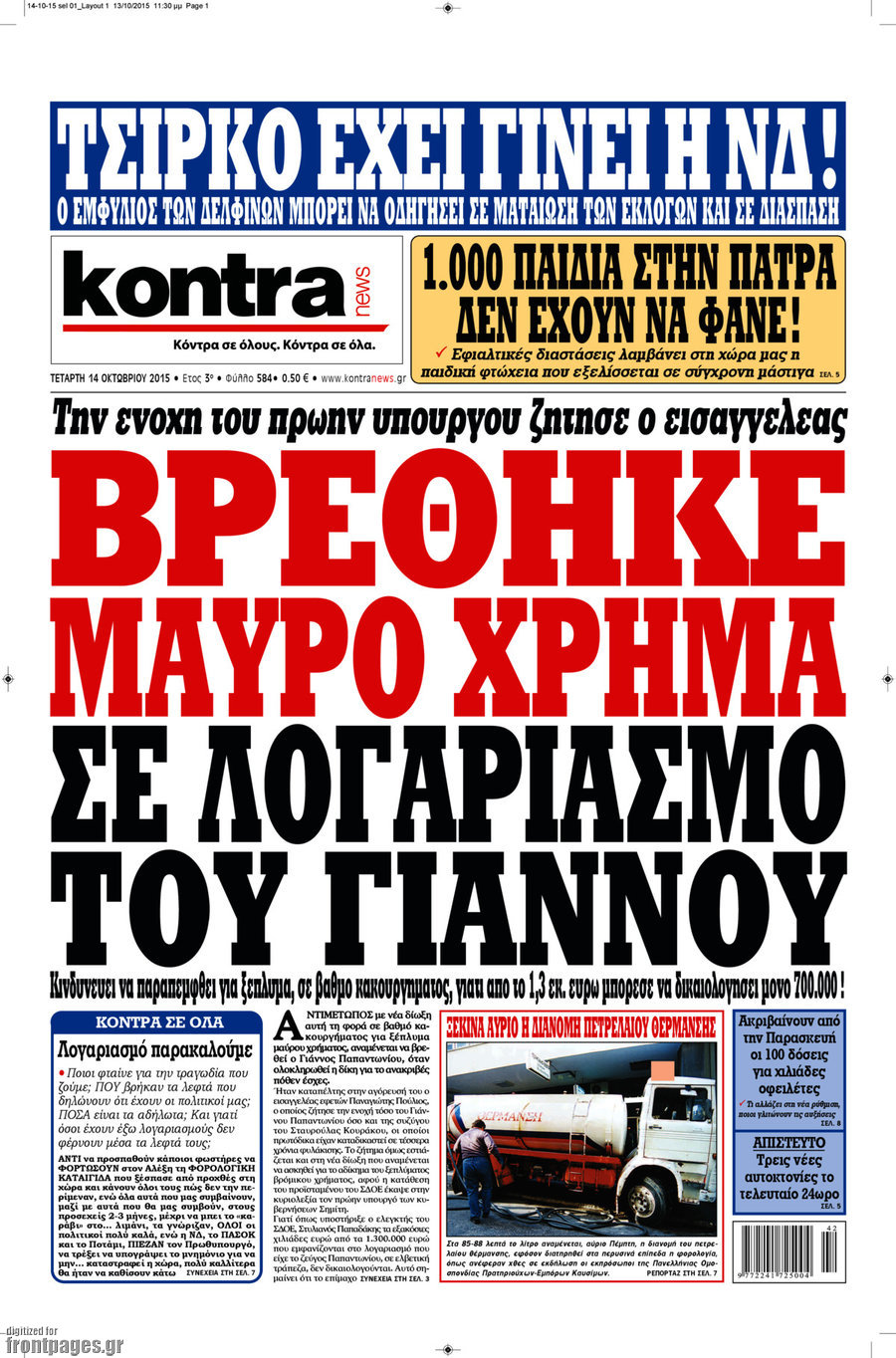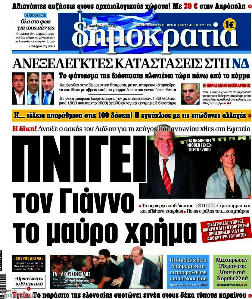 Οι πολιτικές εφημερίδες 14/10/2015 Enikos Newsroom 07:57, Τετάρτη 14 Οκτωβρίου 2015 Media Διαβάστε τα σημερινά πρωτοσέλιδα των πολιτικών εφημερίδων: ΠΟΛΙΤΙΚΕΣ ΕΦΗΜΕΡΙΔΕΣ ΠΡΩΤΟΣΕΛΙΔΑ Μοιράσου το: σχολίασε κι εσύ (0 σχόλια) Ακολουθήστε το enikos.gr στο Google News και μάθετε πρώτοι όλες τις ειδήσεις Δείτε όλες τις τελευταίες ειδήσεις από την Ελλάδα και τον Κόσμο στο enikos.gr Ειδήσεις Ροή Ειδήσεων 4 ώρες πριν Υπόθεση Έπσταϊν: Το Υπουργείο Δικαιοσύνης δημοσιοποίησε μια σειρά από εξαιρετικά επεξεργασμένα αρχεία – «Λείπουν τα πιο σημαντικά έγγραφα», λένε οι Δημοκρατικοί 47 λεπτά πριν Γιορτές με μπλόκα για τους αγρότες: Ανοίγουν διόδια και μοιράζουν προϊόντα στους ταξιδιώτες 1 ώρα πριν Εξαφάνιση 33χρονου γιατρού στην Κρήτη: «Άναψα τα φώτα, τρόμαξε και άρχισε να τρέχει στα χωράφια» – Η τελευταία διαδρομή και η μαρτυρία «κλειδί» 3 ώρες πριν Ο «χάρτης» με τις αυξήσεις και τις φοροελαφρύνσεις του 2026 – Ποιοι και πόσα κερδίζουν 1 ώρα πριν Τα αρχεία του Έπσταϊν αποκαλύπτουν φωτογραφία του έκπτωτου πρίγκιπα Άντριου – Είναι ξαπλωμένος στην αγκαλιά 5 γυναικών 1 ώρα πριν Μία νέα «χρυσή» περίοδος αρχίζει για 3 ζώδια από σήμερα – «Μία αναπάντεχη ευκαιρία οδηγεί στην επιτυχία» 5 ώρες πριν Αυγά: Πόσα μπορείτε να τρώτε την ημέρα με ασφάλεια για μέγιστη πρόσληψη πρωτεΐνης 3 ώρες πριν Αρχαιολόγοι ανακάλυψαν σε χωράφι απεικόνιση 600 ετών ενός Αγίου – Τα στοιχεία που δείχνουν ότι μαρτύρησε 2 ώρες πριν Αγχώνεται για το χριστουγεννιάτικο δώρο που πήρε στην πλούσια σύντροφό του – «Φοβάμαι πως θα το βρει φθηνιάρικο, φοράει βραχιόλια Cartier» 5 λεπτά πριν Τα Labubu «μετακομίζουν» στο Χόλιγουντ: Η Sony Pictures ετοιμάζει live-action ταινία με τον σκηνοθέτη του «Wonka» 12 λεπτά πριν Νέες ταυτότητες: Μεγάλη αναμονή για ραντεβού στην Αττική – Τέλος τα ταξίδια εκτός Ελλάδος από τον Αύγουστο για όσους δεν έχουν αλλάξει 21 λεπτά πριν Οι 7 φράσεις που δεν λένε ποτέ οι συναισθηματικά έξυπνοι άνθρωποι κατά τη διάρκεια ενός καβγά 24 λεπτά πριν Τηλεθέαση (19/12): Ανατροπές και πρωτιές στην πρωινή ζώνη 32 λεπτά πριν Πώς η κλιματική αλλαγή επηρεάζει εγκύους και βρέφη – Οι επιπτώσεις των υψηλών θερμοκρασιών ENIKOS NETWORK Είστε μόνιμα απρόσεκτοι; 3 σημάδια που δείχνουν ότι μπορεί να είναι σύμπτωμα πάθησης Πόσα κιλά παίρνουμε πραγματικά τα Χριστούγεννα, σύμφωνα με την επιστήμη – Πώς να το αποτρέψουμε; e-ΕΦΚΑ και ΔΥΠΑ: Έρχονται νέες πληρωμές έως τις 24 Δεκεμβρίου – Ποιοι πάνε ταμείο Επίδομα παιδιού: Τι αλλάζει από το 2026 – Το όφελος από τις φορολογικές ελαφρύνσεις Χαρτογραφώντας το «σημείο χωρίς επιστροφή»: Για πρώτη φορά αποκαλύπτεται με λεπτομέρεια το ακανθώδες όριο της ατμόσφαιρας τ... Η Google καταργεί τη λειτουργία «dark web report» – Πώς θα μπορούν οι χρήστες να διαγράφουν τα δεδομένα τους περισσότερα 09:30 , Σάββατο 20 Δεκεμβρίου 2025 «Porto Leone: Στη γειτονιά με τα κόκκινα φανάρια» – Ο Χρόνης αποκαλύπτει στην Αλεξάνδρα το μυστικό για το παιδί της Λένας Η μεγάλη δραματική σειρά του Apha «Porto Leone: Στη γειτονιά με τα κόκκινα φανάρια» μας μεταφέ... 08:14 , Σάββατο 20 Δεκεμβρίου 2025 Τρομεροί γονείς: Η Μαρία Καβογιάννη εισβάλλει στο σπίτι της οικογένειας Στεφανίδη Όσα θα δούμε στο νέο διπλό επεισόδιο της σειράς «Τρομεροί γονείς», σήμερα Σάββατο 20 Δεκεμβρίο... 05:48 , Σάββατο 20 Δεκεμβρίου 2025 Οι οικονομικές εφημερίδες 20/12/2025 Διαβάστε τα πρωτοσέλιδα από τις οικονομικές εφημερίδες, σήμερα 20/12/2025. 05:43 , Σάββατο 20 Δεκεμβρίου 2025 Οι αθλητικές εφημερίδες 20/12/2025 Διαβάστε τα πρωτοσέλιδα α