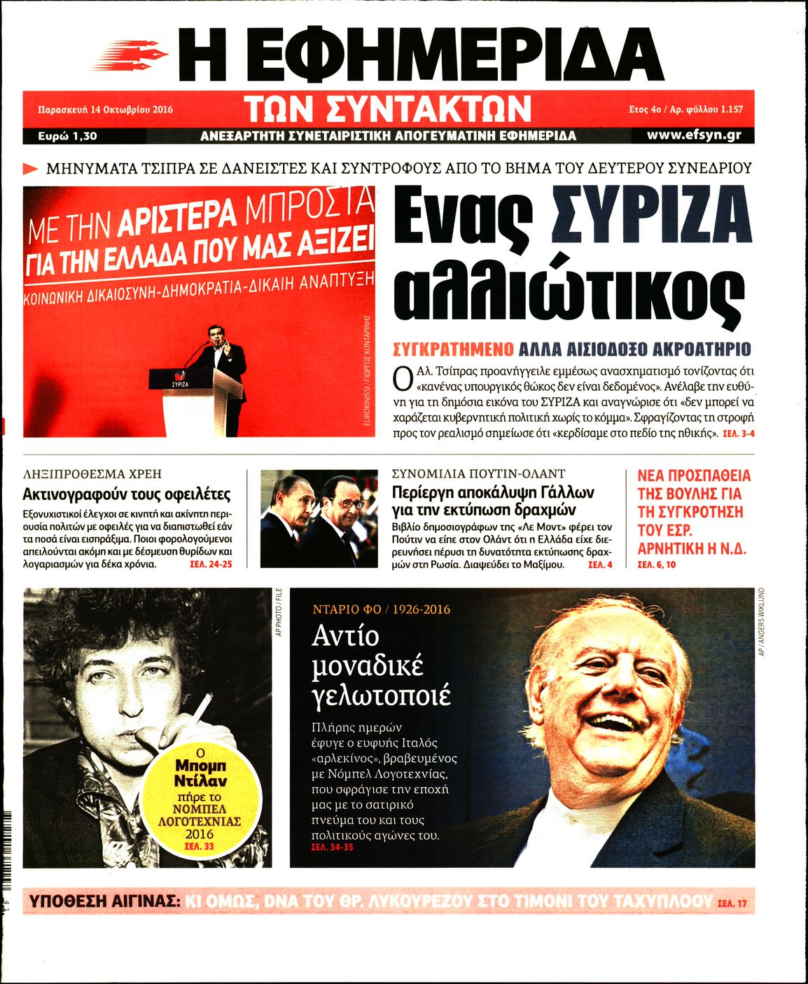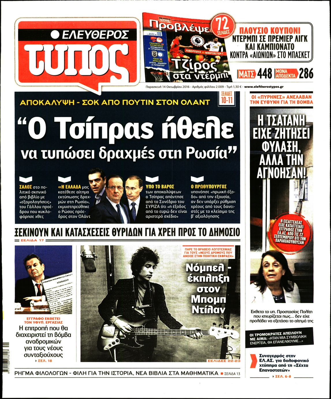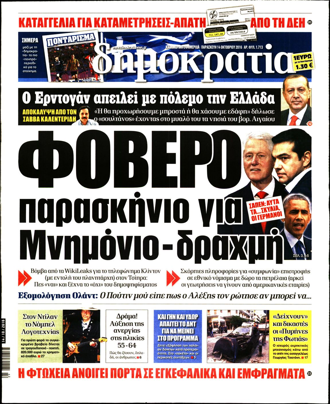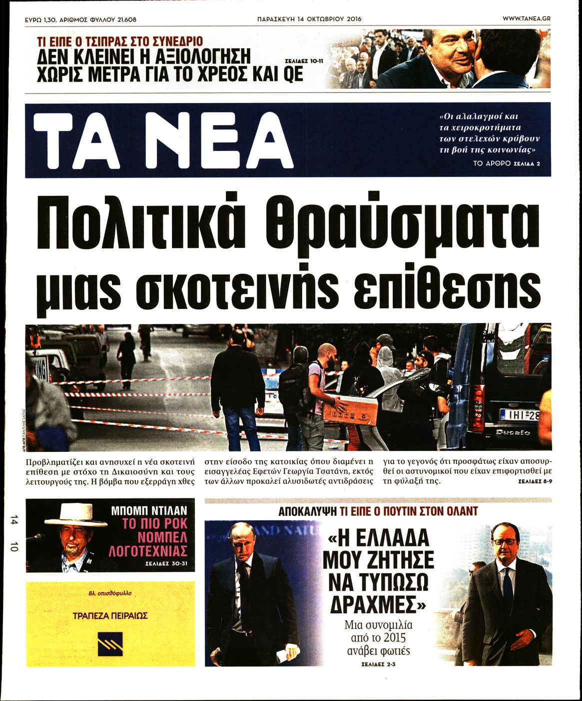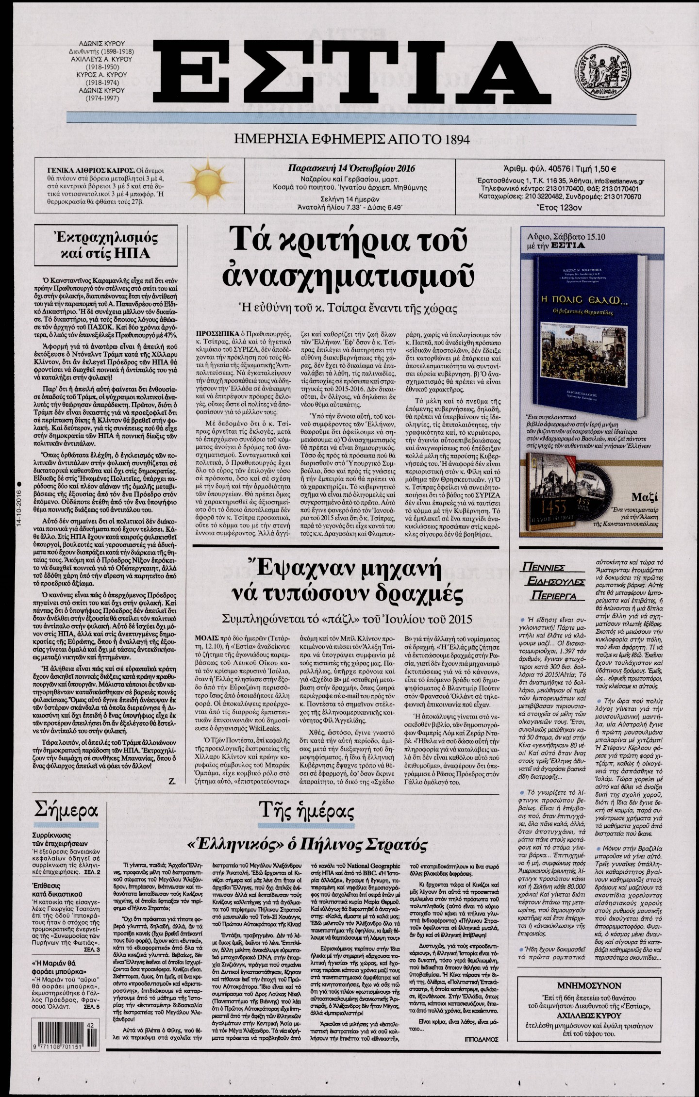Οι πολιτικές εφημερίδες 14/10/2016 Enikos Newsroom 05:09, Παρασκευή 14 Οκτωβρίου 2016 Media Διαβάστε τα σημερινά πρωτοσέλιδα των πολιτικών εφημερίδων: ΠΟΛΙΤΙΚΕΣ ΕΦΗΜΕΡΙΔΕΣ ΠΡΩΤΟΣΕΛΙΔΑ Μοιράσου το: σχολίασε κι εσύ (0 σχόλια) Ακολουθήστε το enikos.gr στο Google News και μάθετε πρώτοι όλες τις ειδήσεις Δείτε όλες τις τελευταίες ειδήσεις από την Ελλάδα και τον Κόσμο στο enikos.gr Ειδήσεις Ροή Ειδήσεων 3 ώρες πριν Αυξάνουν την πίεση προς την κυβέρνηση οι αγρότες: Κλείνουν παρακαμπτήριους και ανοίγουν διόδια – Τι θα γίνει τις γιορτές 2 ώρες πριν ΟΠΕΚΕΠΕ: Προφυλακιστέος ο φερόμενος αρχηγός και ο λογιστής της εγκληματικής οργάνωσης 3 ώρες πριν Φοινικούντα: Το Σάββατο απολογείται ο 30χρονος γιος γνωστού επιχειρηματία της Πλάκας που παραδόθηκε – Όσα είπε στους αστυνομικούς και ο ρόλος του στο έγκλημα 3 ώρες πριν Μπορεί ο Μαδούρο να αντέξει τον αποκλεισμό του Τραμπ; Τι θα χρειαστεί η Ουάσινγκτον για να τον ανατρέψει 4 ώρες πριν Πρίγκιπας Ουίλιαμ – Κέιτ: Η νέα οικογενειακή φωτογραφία για τις Χριστουγεννιάτικες κάρτες του 2025 4 ώρες πριν Ύπνος: Η απλή βραδινή ρουτίνα για να προστατεύσετε τα μαλλιά σας από το κρύο κατά τη διάρκεια του χειμώνα 5 ώρες πριν Manifesting: Πώς να συναντήσετε τον σύντροφο της ζωής σας, ανάλογα με τον μήνα γέννησής σας 2 ημέρες πριν 20 χρόνια τα Χριστούγεννα ξεκινούν στα Public με μεγάλη ποικιλία σε δώρα! 3 ώρες πριν Αρχαιολόγοι ανακάλυψαν ρωμαϊκά τεχνουργήματα από μια πόλη που δεν υπήρξε ποτέ – Τα τρία εντυπωσιακά κτίρια και ο αμφορέας με τις… σαρδέλες 10 λεπτά πριν Μάρκο Νίκολιτς: «Είμαι περήφανος για τους παίκτες μου, όποιος αντίπαλος και να έρθει θα προετοιμαστούμε» 19 λεπτά πριν ΟΗΕ: Την εκλογή του νέου ύπατου αρμοστή για τους Πρόσφυγες Μπαρχάμ Άχμεντ Σαλίχ χαιρέτησε ο Αντόνιο Γκουτέρες 23 λεπτά πριν Σύνοδος Κορυφής στις Βρυξέλλες: Ακόμη πιο κοντά σε διέξοδο για τη χρηματοδότηση της Ουκρανίας 31 λεπτά πριν ΟΗΕ: Iστορική επίσκεψη του Συμβουλίου Ασφαλείας στη Δαμασκό – Mήνυμα Ελλάδας για συμπερίληψη και λογοδοσία 38 λεπτά πριν Νέος πρέσβης της Μεγάλης Βρετανίας στις ΗΠΑ ο Κρίστιαν Τέρνερ ENIKOS NETWORK Σε περίοδο αυξημένης δραστηριότητας η γρίπη στην Ελλάδα-Μέτρα προστασίας από τον ΕΟΔΥ Σκέφτεστε συνέχεια συζητήσεις που έχετε κάνει; Τι σημαίνει αυτό, σύμφωνα με ειδικό Στεγαστικό: Τι λέει η ΠΟΜΙΔΑ για τα νέα μέτρα που ανακοίνωσε ο Κυριάκος Μητσοτάκης Λαγκάρντ: Αισιόδοξη για την ανάπτυξη της Ευρωζώνης, αβέβαιη για τον πληθωρισμό Χαρτογραφώντας το «σημείο χωρίς επιστροφή»: Για πρώτη φορά αποκαλύπτεται με λεπτομέρεια το ακανθώδες όριο της ατμόσφαιρας τ... Η Google καταργεί τη λειτουργία «dark web report» – Πώς θα μπορούν οι χρήστες να διαγράφουν τα δεδομένα τους περισσότερα 17:45 , Πέμπτη 18 Δεκεμβρίου 2025 ROUK ZOUK: Εορταστικό επεισόδιο με καλεσμένους τους πρωταγωνιστές του «Γιατί ρε πατέρα» Το Σάββατο 20 Δεκεμβρίου στις 21:00, η Ζέτα Μακρυπούλια υποδέχεται εκλεκτούς ηθοποιούς που όλο... 17:20 , Πέμπτη 18 Δεκεμβρίου 2025 Άγιος έρωτας: Η Χριστίνα εξομολογείται στον πατέρα Νικόλαο, απόψε στις 21:00 στον Alpha Η Νότα αποφασίζει να εκδικηθεί τον Πέτρο και τον Στέφανο, για χάρη του Λούη, όμως τα πράγματα ... 16:50 , Πέμπτη 18 Δεκεμβρίου 2025 Να μ’ αγαπάς: Ζωή και Φωτεινή συμφιλιώνονται ως μάνα με κόρη, απόψε στις 20:00 Η ταυτότητα του Άγγελου αποκαλύπτεται στο νέο επεισόδιο της σειράς “Να μ’ αγαπάς... 15:52 , Πέμπτη 18 Δεκεμβρίου 2025 Το Σπίτι Δίπλα Στο Ποτάμι: Το καθηλωτικό τελευταίο επεισόδιο για το 2025 απόψε στις 22:30 Καθηλώνει