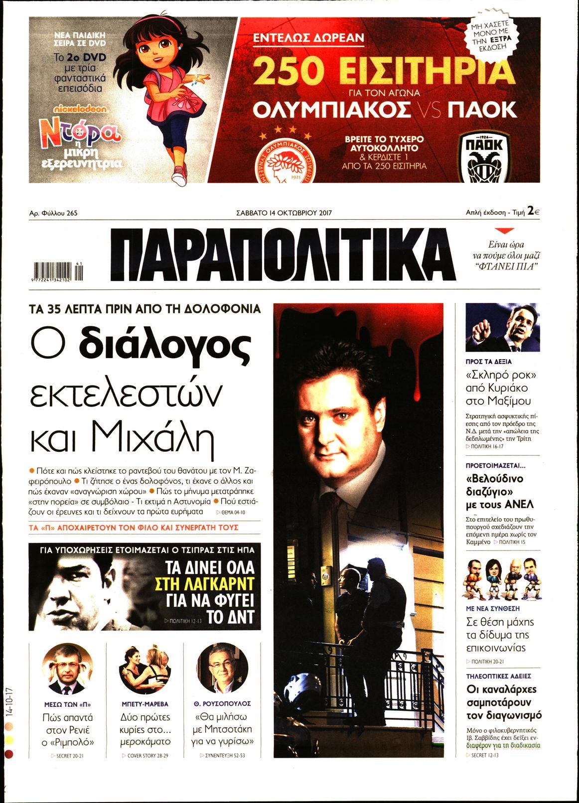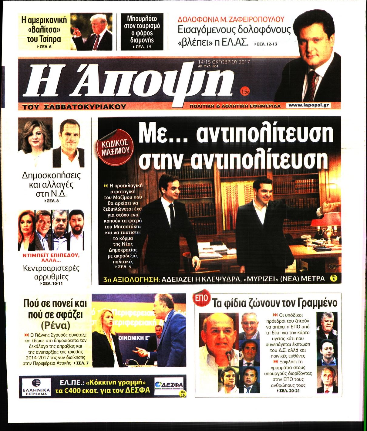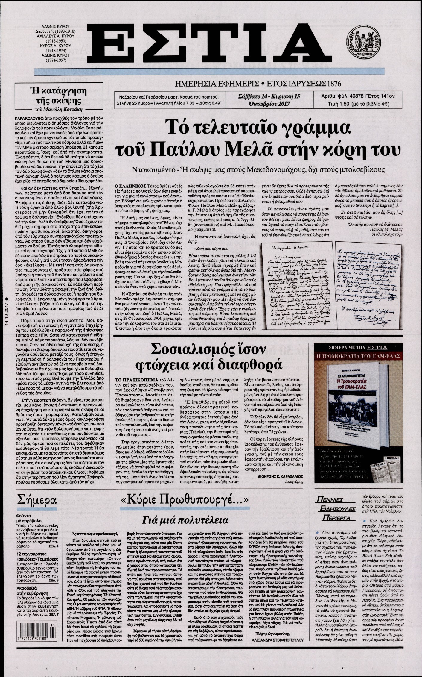 Οι πολιτικές εφημερίδες 14/10/2017 Enikos Newsroom 07:52, Σάββατο 14 Οκτωβρίου 2017 Media Διαβάστε τα σημερινά πρωτοσέλιδα των πολιτικών εφημερίδων: ΠΟΛΙΤΙΚΕΣ ΕΦΗΜΕΡΙΔΕΣ ΠΡΩΤΟΣΕΛΙΔΑ Μοιράσου το: σχολίασε κι εσύ (0 σχόλια) Ακολουθήστε το enikos.gr στο Google News και μάθετε πρώτοι όλες τις ειδήσεις Δείτε όλες τις τελευταίες ειδήσεις από την Ελλάδα και τον Κόσμο στο enikos.gr Ειδήσεις Ροή Ειδήσεων 3 ώρες πριν Χριστούγεννα στα μπλόκα: Επιμένουν στις κινητοποιήσεις τους οι αγρότες – Ανοίγουν τα διόδια το Σαββατοκύριακο 3 ώρες πριν Ουκρανία: Η άνευ προηγουμένου επίθεση σε ρωσικό τάνκερ στη Μεσόγειο και το μήνυμα προς στον Πούτιν – Το «μακρύ χέρι» του Κιέβου 2 ώρες πριν Πούτιν: Τα μηνύματα σε Ευρώπη και ΝΑΤΟ από το μαραθώνιο «σόου» του – Η απαίτηση για «σεβασμό» και η ειρήνη «με τους όρους» της Μόσχας 3 ώρες πριν Τραμπ: Δεν αποκλείει την πιθανότητα ενός πολέμου στη Βενεζουέλα – «Ο Μαδούρο ξέρει καλύτερα από τον καθένα τι ακριβώς θέλω» 4 ώρες πριν Συνεχίζει να προκαλεί ο Μίτσκοσκι: «Για μένα το όνομα Μακεδονία είναι ιερό» 2 ώρες πριν Ανακαλύφθηκαν αρχαία χρυσά νομίσματα 2.200 ετών που απεικονίζουν τον θεό Απόλλωνα – Η άγνωστη σύνδεση με τον Φίλιππο Β΄ της Μακεδονίας 3 ώρες πριν Ύπνος: Μια κρυφή κατάσταση του εγκεφάλου πριν από τον ύπνο μπορεί να είναι το “κλειδί” για υψηλή ευφυΐα και δημιουργικότητα 4 ώρες πριν Αριθμολογία: Οι άνθρωποι που έχουν γεννηθεί αυτές τις 4 ημερομηνίες, συχνά παρεξηγούνται – «Η καλοσύνη τους κρύβει τεράστια δύναμη» 5 ώρες πριν Ξεχάστε το καθάρισμα το Σαββατοκύριακο: Ο «κανόνας των 20 λεπτών» που θα σας λύσει τα χέρια 5 λεπτά πριν Συρία: Μαζικά πλήγματα των ΗΠΑ σε θέσεις του Ισλαμικού Κράτους – Χέγκσεθ: «Δεν είναι αρχή πολέμου, είναι μια δήλωση εκδίκησης» για το θάνατο των στρατιωτών μας 17 λεπτά πριν Ουκρανία: Ολοκληρώθηκαν οι συνομιλίες με τους Αμερικανούς κι Ευρωπαίους διαπραγματευτές 33 λεπτά πριν Μπαρτσελόνα – Μπασκόνια 134-124: Οι «μπλαουγκράνα» πήραν το ματς της χρονιάς ύστερα από τρεις παρατάσεις 48 λεπτά πριν Φαίη Σκορδά: «Παλιότερα τα κομπλιμέντα τα προσπερνούσα, τώρα τα έχω ανάγκη» 1 ώρα πριν Βασίλης Σπανούλης: Δεν εμφανίστηκε ούτε ένας δημοσιογράφος στην συνέντευξη Τύπου – «Καλησπέρα στον… κανέναν», δείτε βίντεο ENIKOS NETWORK Το ΕΚΑΒ τιμήθηκε από την Ακαδημία Αθηνών για τα 40 χρόνια προσφοράς του Έχετε πραγματικά μεγάλη καρδιά; 10 χαρακτηριστικά όσων έχουν καλοσύνη Αναστολή μέτρων αναγκαστικής εκτέλεσης για κτηνοτρόφους που πλήττονται από την ευλογιά των αιγοπροβάτων Πλήρης επάρκεια προϊόντων στις λαϊκές της Αττικής, παρά τις αγροτικές κινητοποιήσεις – Τι απαντούν οι πωλητές Χαρτογραφώντας το «σημείο χωρίς επιστροφή»: Για πρώτη φορά αποκαλύπτεται με λεπτομέρεια το ακανθώδες όριο της ατμόσφαιρας τ... Η Google καταργεί τη λειτουργία «dark web report» – Πώς θα μπορούν οι χρήστες να διαγράφουν τα δεδομένα τους περισσότερα 22:42 , Παρασκευή 19 Δεκεμβρίου 2025 Γιώργος Γιαννόπουλος για “Το σόι σου”: “Είναι ευτυχία και ευλογία αυτή η σειρά” «Είναι ευτυχία και ευλογία η συγκυρία αυτής της σειράς», θα πει ο Γιώργος Γιαννόπουλος -ο αγαπ... 20:37 , Παρασκευή 19 Δεκεμβρίου 2025 Don’t Forget The Lyrics: Η Έλλη Κοκκίνου υποδέχεται 4 παίκτες που θα κάνουν τα πάντα για να μη χάσουν ούτε… μισή λέξη από τους στίχους Το «Don’t Forget The Lyrics» επιστρέφει απόψε, Παρασκευή 19 Δεκεμβρίου, στις 21:00 με νέο επει... 19:31 , Παρασκευή 19 Δεκεμβρίου 2025 GNTM: Απόψε ο μεγάλος τελικός για τους 4 φιναλίστ Έπειτα από μήνες γε