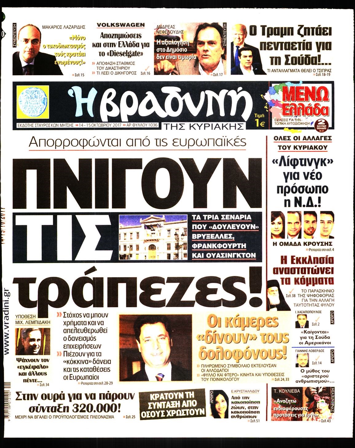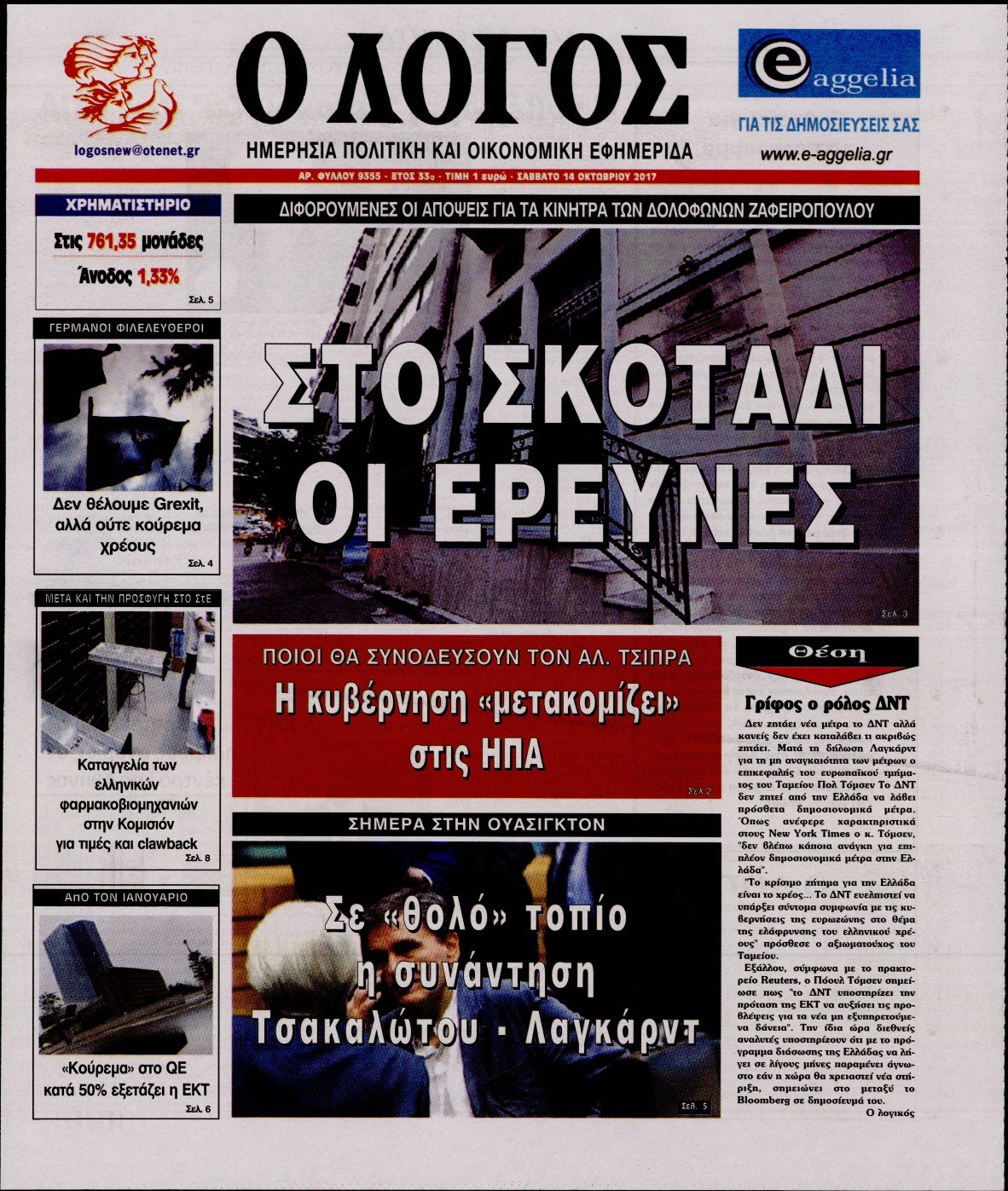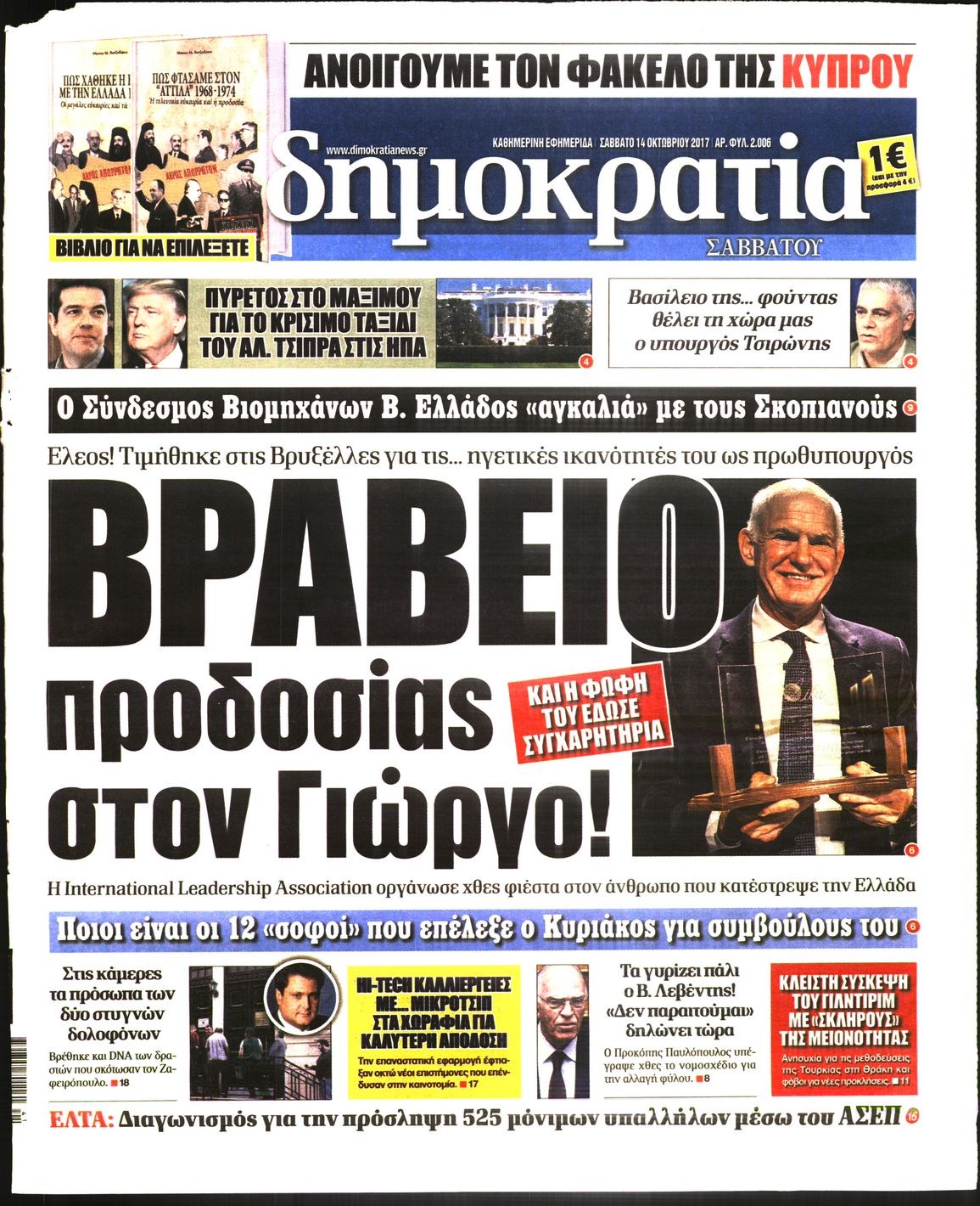 Οι πολιτικές εφημερίδες 14/10/2017 Enikos Newsroom 07:52, Σάββατο 14 Οκτωβρίου 2017 Media Διαβάστε τα σημερινά πρωτοσέλιδα των πολιτικών εφημερίδων: ΠΟΛΙΤΙΚΕΣ ΕΦΗΜΕΡΙΔΕΣ ΠΡΩΤΟΣΕΛΙΔΑ Μοιράσου το: σχολίασε κι εσύ (0 σχόλια) Ακολουθήστε το enikos.gr στο Google News και μάθετε πρώτοι όλες τις ειδήσεις Δείτε όλες τις τελευταίες ειδήσεις από την Ελλάδα και τον Κόσμο στο enikos.gr Ειδήσεις Ροή Ειδήσεων 3 ώρες πριν Χριστούγεννα στα μπλόκα: Επιμένουν στις κινητοποιήσεις τους οι αγρότες – Ανοίγουν τα διόδια το Σαββατοκύριακο 3 ώρες πριν Ουκρανία: Η άνευ προηγουμένου επίθεση σε ρωσικό τάνκερ στη Μεσόγειο και το μήνυμα προς στον Πούτιν – Το «μακρύ χέρι» του Κιέβου 2 ώρες πριν Πούτιν: Τα μηνύματα σε Ευρώπη και ΝΑΤΟ από το μαραθώνιο «σόου» του – Η απαίτηση για «σεβασμό» και η ειρήνη «με τους όρους» της Μόσχας 3 ώρες πριν Τραμπ: Δεν αποκλείει την πιθανότητα ενός πολέμου στη Βενεζουέλα – «Ο Μαδούρο ξέρει καλύτερα από τον καθένα τι ακριβώς θέλω» 4 ώρες πριν Συνεχίζει να προκαλεί ο Μίτσκοσκι: «Για μένα το όνομα Μακεδονία είναι ιερό» 2 ώρες πριν Ανακαλύφθηκαν αρχαία χρυσά νομίσματα 2.200 ετών που απεικονίζουν τον θεό Απόλλωνα – Η άγνωστη σύνδεση με τον Φίλιππο Β΄ της Μακεδονίας 3 ώρες πριν Ύπνος: Μια κρυφή κατάσταση του εγκεφάλου πριν από τον ύπνο μπορεί να είναι το “κλειδί” για υψηλή ευφυΐα και δημιουργικότητα 4 ώρες πριν Αριθμολογία: Οι άνθρωποι που έχουν γεννηθεί αυτές τις 4 ημερομηνίες, συχνά παρεξηγούνται – «Η καλοσύνη τους κρύβει τεράστια δύναμη» 5 ώρες πριν Ξεχάστε το καθάρισμα το Σαββατοκύριακο: Ο «κανόνας των 20 λεπτών» που θα σας λύσει τα χέρια 5 λεπτά πριν Συρία: Μαζικά πλήγματα των ΗΠΑ σε θέσεις του Ισλαμικού Κράτους – Χέγκσεθ: «Δεν είναι αρχή πολέμου, είναι μια δήλωση εκδίκησης» για το θάνατο των στρατιωτών μας 17 λεπτά πριν Ουκρανία: Ολοκληρώθηκαν οι συνομιλίες με τους Αμερικανούς κι Ευρωπαίους διαπραγματευτές 33 λεπτά πριν Μπαρτσελόνα – Μπασκόνια 134-124: Οι «μπλαουγκράνα» πήραν το ματς της χρονιάς ύστερα από τρεις παρατάσεις 48 λεπτά πριν Φαίη Σκορδά: «Παλιότερα τα κομπλιμέντα τα προσπερνούσα, τώρα τα έχω ανάγκη» 1 ώρα πριν Βασίλης Σπανούλης: Δεν εμφανίστηκε ούτε ένας δημοσιογράφος στην συνέντευξη Τύπου – «Καλησπέρα στον… κανέναν», δείτε βίντεο ENIKOS NETWORK Το ΕΚΑΒ τιμήθηκε από την Ακαδημία Αθηνών για τα 40 χρόνια προσφοράς του Έχετε πραγματικά μεγάλη καρδιά; 10 χαρακτηριστικά όσων έχουν καλοσύνη Αναστολή μέτρων αναγκαστικής εκτέλεσης για κτηνοτρόφους που πλήττονται από την ευλογιά των αιγοπροβάτων Πλήρης επάρκεια προϊόντων στις λαϊκές της Αττικής, παρά τις αγροτικές κινητοποιήσεις – Τι απαντούν οι πωλητές Χαρτογραφώντας το «σημείο χωρίς επιστροφή»: Για πρώτη φορά αποκαλύπτεται με λεπτομέρεια το ακανθώδες όριο της ατμόσφαιρας τ... Η Google καταργεί τη λειτουργία «dark web report» – Πώς θα μπορούν οι χρήστες να διαγράφουν τα δεδομένα τους περισσότερα 22:42 , Παρασκευή 19 Δεκεμβρίου 2025 Γιώργος Γιαννόπουλος για “Το σόι σου”: “Είναι ευτυχία και ευλογία αυτή η σειρά” «Είναι ευτυχία και ευλογία η συγκυρία αυτής της σειράς», θα πει ο Γιώργος Γιαννόπουλος -ο αγαπ... 20:37 , Παρασκευή 19 Δεκεμβρίου 2025 Don’t Forget The Lyrics: Η Έλλη Κοκκίνου υποδέχεται 4 παίκτες που θα κάνουν τα πάντα για να μη χάσουν ούτε… μισή λέξη από τους στίχους Το «Don’t Forget The Lyrics» επιστρέφει απόψε, Παρασκευή 19 Δεκεμβρίου, στις 21:00 με νέο επει... 19:31 , Παρασκευή 19 Δεκεμβρίου 2025 GNTM: Απόψε ο μεγάλος τελικός για τους 4 φιναλίστ Έπειτα από μήνες γε