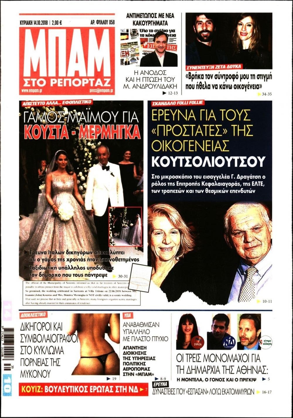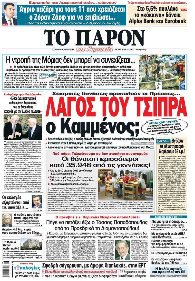 Οι πολιτικές εφημερίδες 14/10/2018 Κώστας Τεό 06:31, Κυριακή 14 Οκτωβρίου 2018 Media Διαβάστε τα σημερινά πρωτοσέλιδα των πολιτικών εφημερίδων: ΠΟΛΙΤΙΚΕΣ ΕΦΗΜΕΡΙΔΕΣ ΠΡΩΤΟΣΕΛΙΔΑ Μοιράσου το: σχολίασε κι εσύ (0 σχόλια) Ακολουθήστε το enikos.gr στο Google News και μάθετε πρώτοι όλες τις ειδήσεις Δείτε όλες τις τελευταίες ειδήσεις από την Ελλάδα και τον Κόσμο στο enikos.gr Ειδήσεις Ροή Ειδήσεων 1 ώρα πριν Μπλόκα: Οι αγρότες σηκώνουν τις μπάρες σε διόδια για τους εκδρομείς των Χριστουγέννων και μοιράζουν προϊόντα – Βίντεο 2 ώρες πριν Τσιάρας προς αγρότες: Τα μπλόκα και τα πείσματα δεν ωφελούν – Οι λύσεις περνούν μέσα από τον διάλογο 2 ώρες πριν Αρχεία Έπσταϊν: Οι συγκλονιστικές φωτογραφίες – Ο Μάικλ Τζάκσον, ο Μικ Τζάγκερ και ο Κέβιν Σπέισι ανάμεσα στους διάσημους που απεικονίζονται 26 λεπτά πριν Μαθητές διακινούσαν κοκαΐνη και χασίς σε σχολείο της Αττικής – 12 συλλήψεις 3 ώρες πριν Ινδία: Επτά ελέφαντες σκοτώθηκαν κατά τη σύγκρουση επιβατικού τρένου με κοπάδι 5 ώρες πριν Μία νέα «χρυσή» περίοδος αρχίζει για 3 ζώδια από σήμερα – «Μία αναπάντεχη ευκαιρία οδηγεί στην επιτυχία» 6 ώρες πριν Αγχώνεται για το χριστουγεννιάτικο δώρο που πήρε στην πλούσια σύντροφό του – «Φοβάμαι πως θα το βρει φθηνιάρικο, φοράει βραχιόλια Cartier» 3 ώρες πριν Διαιτολόγος αποκαλύπτει 9 πρωινές συνήθειες που «λιώνουν» το κοιλιακό λίπος – «Υποστηρίζουν την υγιεινή απώλεια βάρους» 4 ώρες πριν Οι 7 φράσεις που δεν λένε ποτέ οι συναισθηματικά έξυπνοι άνθρωποι κατά τη διάρκεια ενός καβγά 6 λεπτά πριν Θεσσαλονίκη: Ανήλικος που είχε εξαφανιστεί βρέθηκε στο σπίτι Τούρκων μετά από αστυνομική επιχείρηση 15 λεπτά πριν Ιταλία: 384 συλλήψεις και κατάσχεση 1,4 τόνων ναρκωτικών σε μεγάλη αστυνομική επιχείρηση 23 λεπτά πριν Γερμανού για Μαζωνάκη: «Η σχέση μας μετράει 30 χρόνια – Σαφώς και έχω άποψη» 26 λεπτά πριν Μαθητές διακινούσαν κοκαΐνη και χασίς σε σχολείο της Αττικής – 12 συλλήψεις 31 λεπτά πριν Βέλγιο: Άγνωστοι έριξαν κόκκινη μπογιά στο προξενείο της Πολωνίας στις Βρυξέλλες ENIKOS NETWORK Η αποχή από την αναπαραγωγή παρατείνει τη ζωή στα ζώα, σύμφωνα με μελέτη – Τι ισχύει για τους ανθρώπους; Σημαντικές επαφές στις ΗΠΑ είχε ο υπουργός Υγείας Άδωνις Γεωργιάδης Τσιάρας προς αγρότες: Έχει ικανοποιηθεί το 74% των αιτημάτων – Τα μπλόκα και τα πείσματα δεν ωφελούν MyHealth App: Τα στοιχεία για τον Προσωπικό Βοηθό Υγείας Πολίτη – Τι ερωτήματα έγιναν μέσα σε 7 ημέρες Χαρτογραφώντας το «σημείο χωρίς επιστροφή»: Για πρώτη φορά αποκαλύπτεται με λεπτομέρεια το ακανθώδες όριο της ατμόσφαιρας τ... Η Google καταργεί τη λειτουργία «dark web report» – Πώς θα μπορούν οι χρήστες να διαγράφουν τα δεδομένα τους περισσότερα 14:04 , Σάββατο 20 Δεκεμβρίου 2025 Η Realnews αυτής της Κυριακής (21/12/2025) Με τίτλο: «Ασπίδα προστασίας για την Ελλάδα» κυκλοφορεί, αυτήν την Κυριακή, η Realnews. Σημαντ... 12:53 , Σάββατο 20 Δεκεμβρίου 2025 Να μ’ αγαπάς: Το παρελθόν έρχεται στο φως – Καταιγιστικές εξελίξεις στα τελευταία επεισόδια του 2025 Ο Άγγελος αποκαλύπτεται, η Φωτεινή ανησυχεί για τον Λευτέρη και η Ζωή έρχεται αντιμέτωπη με το... 11:41 , Σάββατο 20 Δεκεμβρίου 2025 «Η αγάπη δεν χάνεται ποτέ»: Η μικρού μήκους ταινία κινουμένων σχεδίων που θέτει ερωτήματα για τη ζωή και τον θάνατο Ο θάνατος είναι ένα από τα πιο σκληρά θέματα που καλείται να διαχειριστεί κάποιος στη διάρκεια... 09:30 , Σάββατο 20 Δεκεμβρίου 2025 «Porto Leone: Στη γειτονιά με τα κόκκινα φανάρια» – Ο Χρόνης αποκαλύπτει στην Αλεξάνδρα το μυστικ