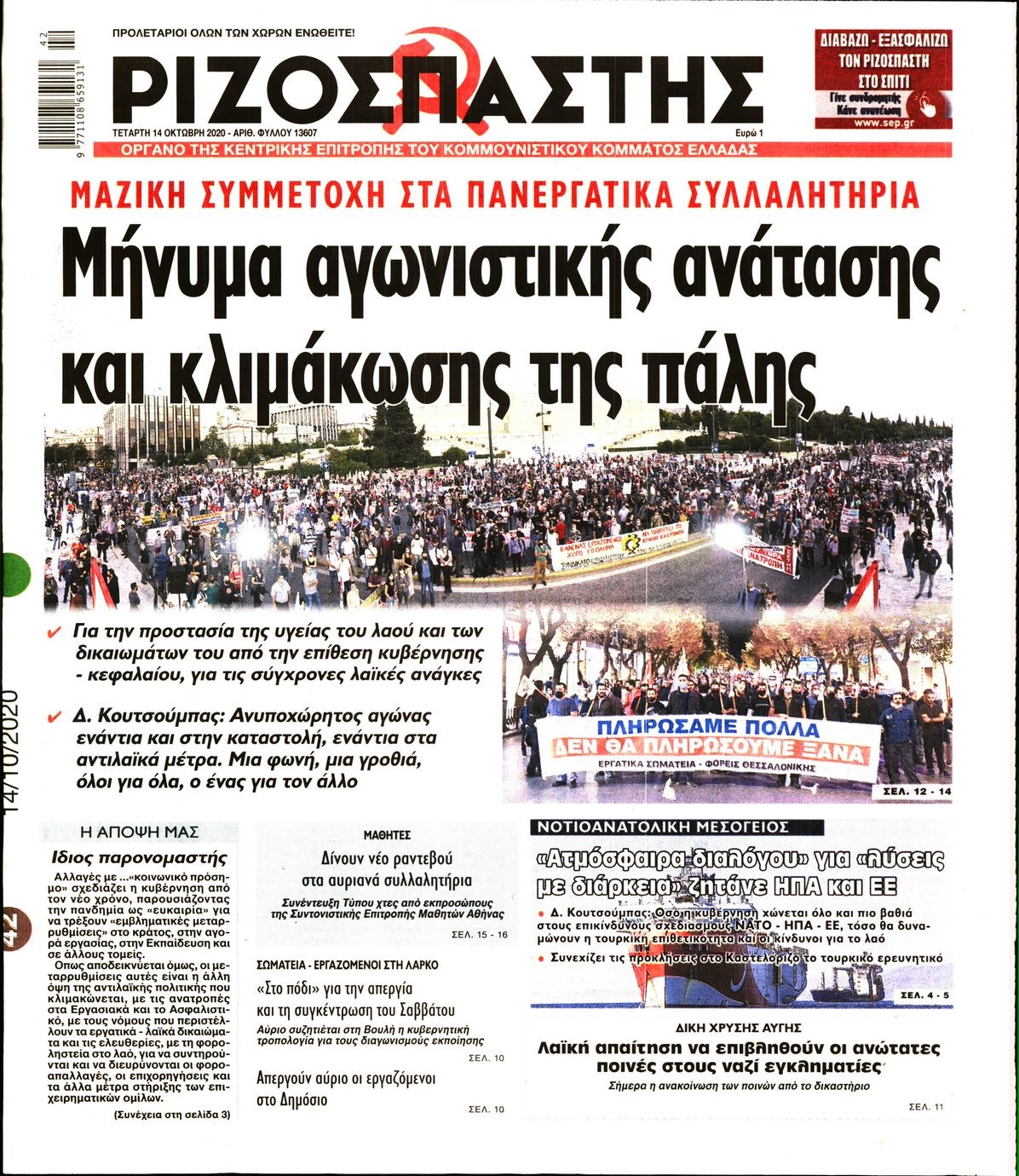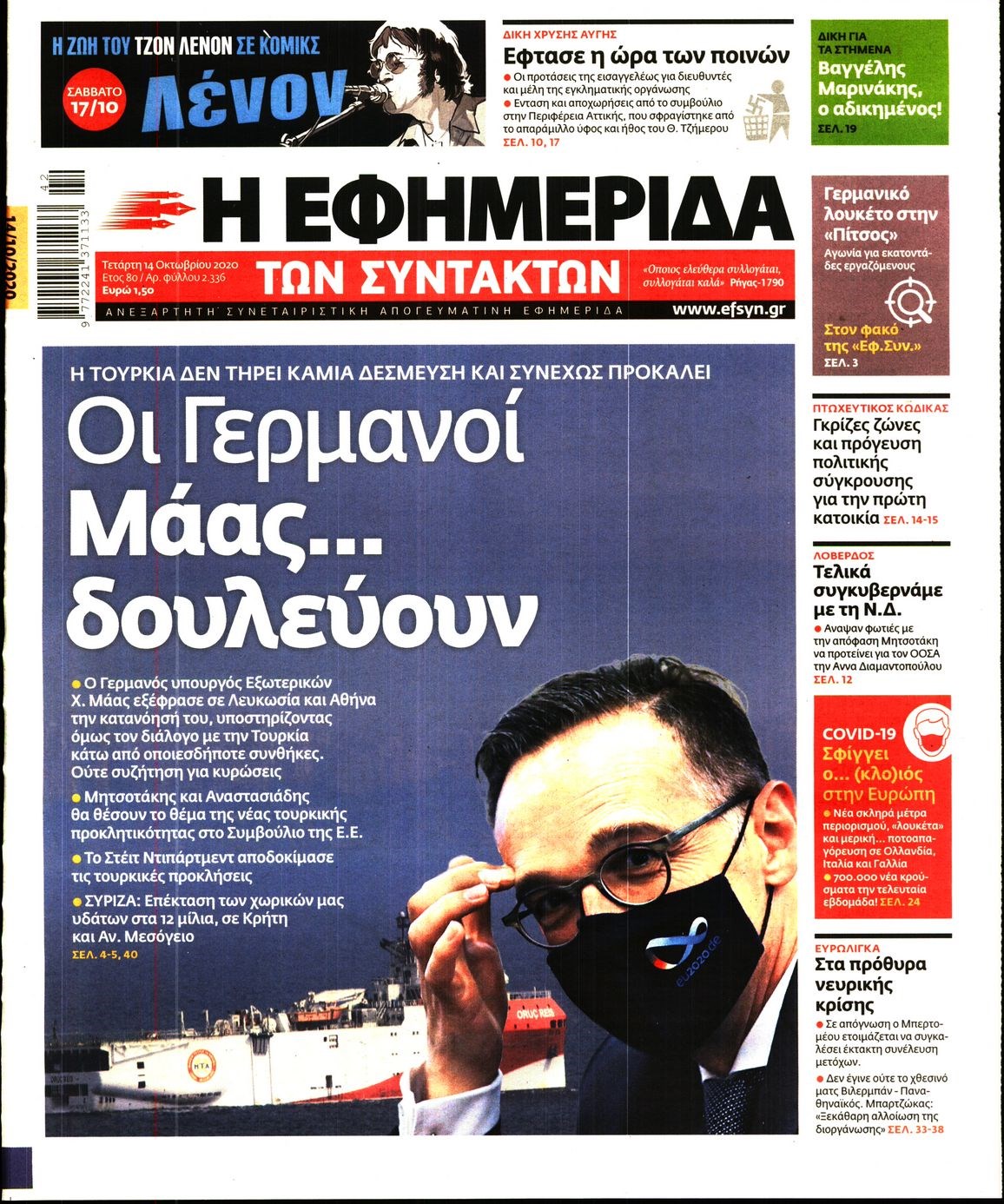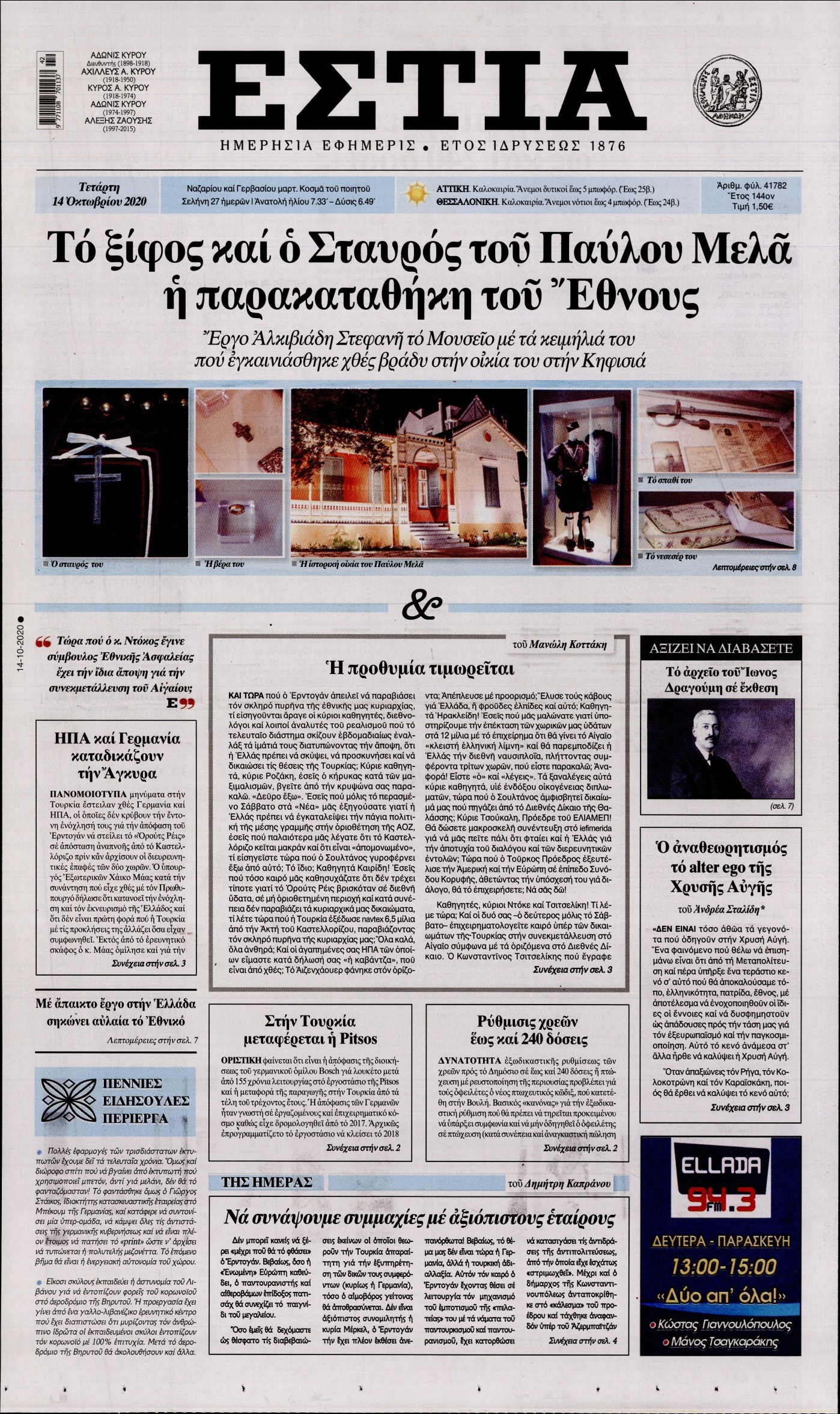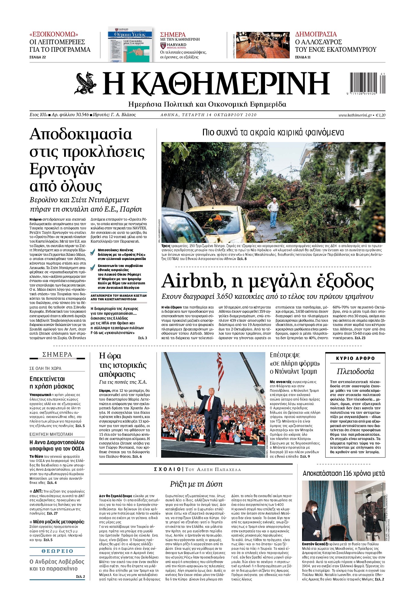 Οι πολιτικές εφημερίδες 14/10/2020 Διονύσης Νίκκας 06:09, Τετάρτη 14 Οκτωβρίου 2020 Media Διαβάστε τα πρωτοσέλιδα των πολιτικών εφημερίδων… ΠΟΛΙΤΙΚΕΣ ΕΦΗΜΕΡΙΔΕΣ ΠΡΩΤΟΣΕΛΙΔΑ Μοιράσου το: σχολίασε κι εσύ (0 σχόλια) Ακολουθήστε το enikos.gr στο Google News και μάθετε πρώτοι όλες τις ειδήσεις Δείτε όλες τις τελευταίες ειδήσεις από την Ελλάδα και τον Κόσμο στο enikos.gr Ειδήσεις Ροή Ειδήσεων 2 ώρες πριν Χριστούγεννα στα μπλόκα: Επιμένουν στις κινητοποιήσεις τους οι αγρότες – Ανοίγουν τα διόδια το Σαββατοκύριακο 2 ώρες πριν Ουκρανία: Η άνευ προηγουμένου επίθεση σε ρωσικό τάνκερ στη Μεσόγειο και το μήνυμα προς στον Πούτιν – Το «μακρύ χέρι» του Κιέβου 2 ώρες πριν Πούτιν: Τα μηνύματα σε Ευρώπη και ΝΑΤΟ από το μαραθώνιο «σόου» του – Η απαίτηση για «σεβασμό» και η ειρήνη «με τους όρους» της Μόσχας 3 ώρες πριν Τραμπ: Δεν αποκλείει την πιθανότητα ενός πολέμου στη Βενεζουέλα – «Ο Μαδούρο ξέρει καλύτερα από τον καθένα τι ακριβώς θέλω» 3 ώρες πριν Συνεχίζει να προκαλεί ο Μίτσκοσκι: «Για μένα το όνομα Μακεδονία είναι ιερό» 2 ώρες πριν Ανακαλύφθηκαν αρχαία χρυσά νομίσματα 2.200 ετών που απεικονίζουν τον θεό Απόλλωνα – Η άγνωστη σύνδεση με τον Φίλιππο Β΄ της Μακεδονίας 3 ώρες πριν Ύπνος: Μια κρυφή κατάσταση του εγκεφάλου πριν από τον ύπνο μπορεί να είναι το “κλειδί” για υψηλή ευφυΐα και δημιουργικότητα 4 ώρες πριν Αριθμολογία: Οι άνθρωποι που έχουν γεννηθεί αυτές τις 4 ημερομηνίες, συχνά παρεξηγούνται – «Η καλοσύνη τους κρύβει τεράστια δύναμη» 5 ώρες πριν Ξεχάστε το καθάρισμα το Σαββατοκύριακο: Ο «κανόνας των 20 λεπτών» που θα σας λύσει τα χέρια 15 λεπτά πριν Φαίη Σκορδά: «Παλιότερα τα κομπλιμέντα τα προσπερνούσα, τώρα τα έχω ανάγκη» 31 λεπτά πριν Βασίλης Σπανούλης: Δεν εμφανίστηκε ούτε ένας δημοσιογράφος στην συνέντευξη Τύπου – «Καλησπέρα στον… κανέναν», δείτε βίντεο 42 λεπτά πριν Πόλεμος στην Ουκρανία: Εφτά νεκροί από ρωσική πυραυλική επίθεση στο λιμάνι της Οδησσού 45 λεπτά πριν ΗΠΑ: Η κυβέρνηση του Ντόναλντ Τραμπ άρχισε να δημοσιοποιεί τα αρχεία Έπσταϊν 57 λεπτά πριν Σάμος: Άνοιξε το μπλόκο των αγροτών στον κόμβο Κοκκαρίου – Σε νέα συνεδρίαση θα καθορίσουν την στάση τους ENIKOS NETWORK Το ΕΚΑΒ τιμήθηκε από την Ακαδημία Αθηνών για τα 40 χρόνια προσφοράς του Έχετε πραγματικά μεγάλη καρδιά; 10 χαρακτηριστικά όσων έχουν καλοσύνη Αναστολή μέτρων αναγκαστικής εκτέλεσης για κτηνοτρόφους που πλήττονται από την ευλογιά των αιγοπροβάτων Πλήρης επάρκεια προϊόντων στις λαϊκές της Αττικής, παρά τις αγροτικές κινητοποιήσεις – Τι απαντούν οι πωλητές Χαρτογραφώντας το «σημείο χωρίς επιστροφή»: Για πρώτη φορά αποκαλύπτεται με λεπτομέρεια το ακανθώδες όριο της ατμόσφαιρας τ... Η Google καταργεί τη λειτουργία «dark web report» – Πώς θα μπορούν οι χρήστες να διαγράφουν τα δεδομένα τους περισσότερα 22:42 , Παρασκευή 19 Δεκεμβρίου 2025 Γιώργος Γιαννόπουλος για “Το σόι σου”: “Είναι ευτυχία και ευλογία αυτή η σειρά” «Είναι ευτυχία και ευλογία η συγκυρία αυτής της σειράς», θα πει ο Γιώργος Γιαννόπουλος -ο αγαπ... 20:37 , Παρασκευή 19 Δεκεμβρίου 2025 Don’t Forget The Lyrics: Η Έλλη Κοκκίνου υποδέχεται 4 παίκτες που θα κάνουν τα πάντα για να μη χάσουν ούτε… μισή λέξη από τους στίχους Το «Don’t Forget The Lyrics» επιστρέφει απόψε, Παρασκευή 19 Δεκεμβρίου, στις 21:00 με νέο επει... 19:31 , Παρασκευή 19 Δεκεμβρίου 2025 GNTM: Απόψε ο μεγάλος τελικός για τους 4 φιναλίστ Έπειτα από μήνες γεμάτους μόδα, δημιουργία και έντονες αναμετρήσεις, το GNTM 2025 κορυφώνεται,... 18:11 , Πα