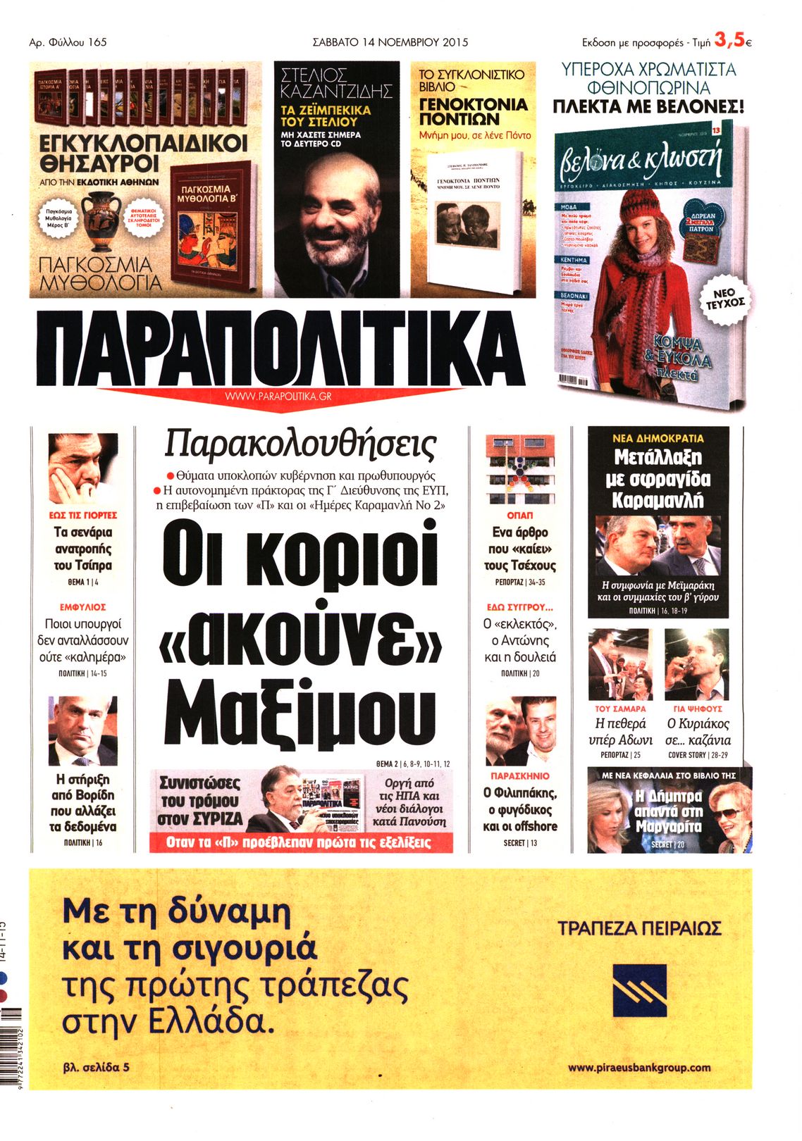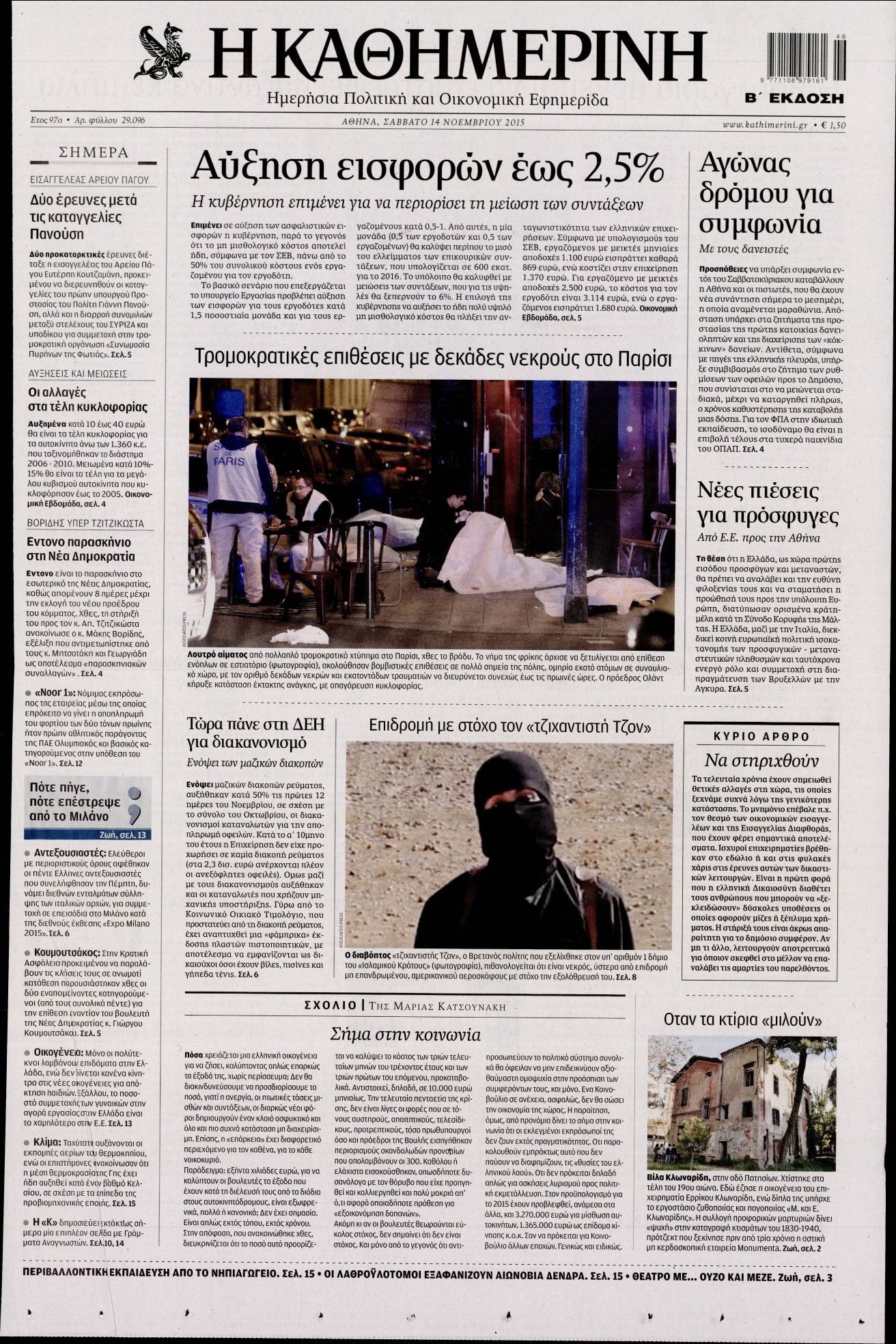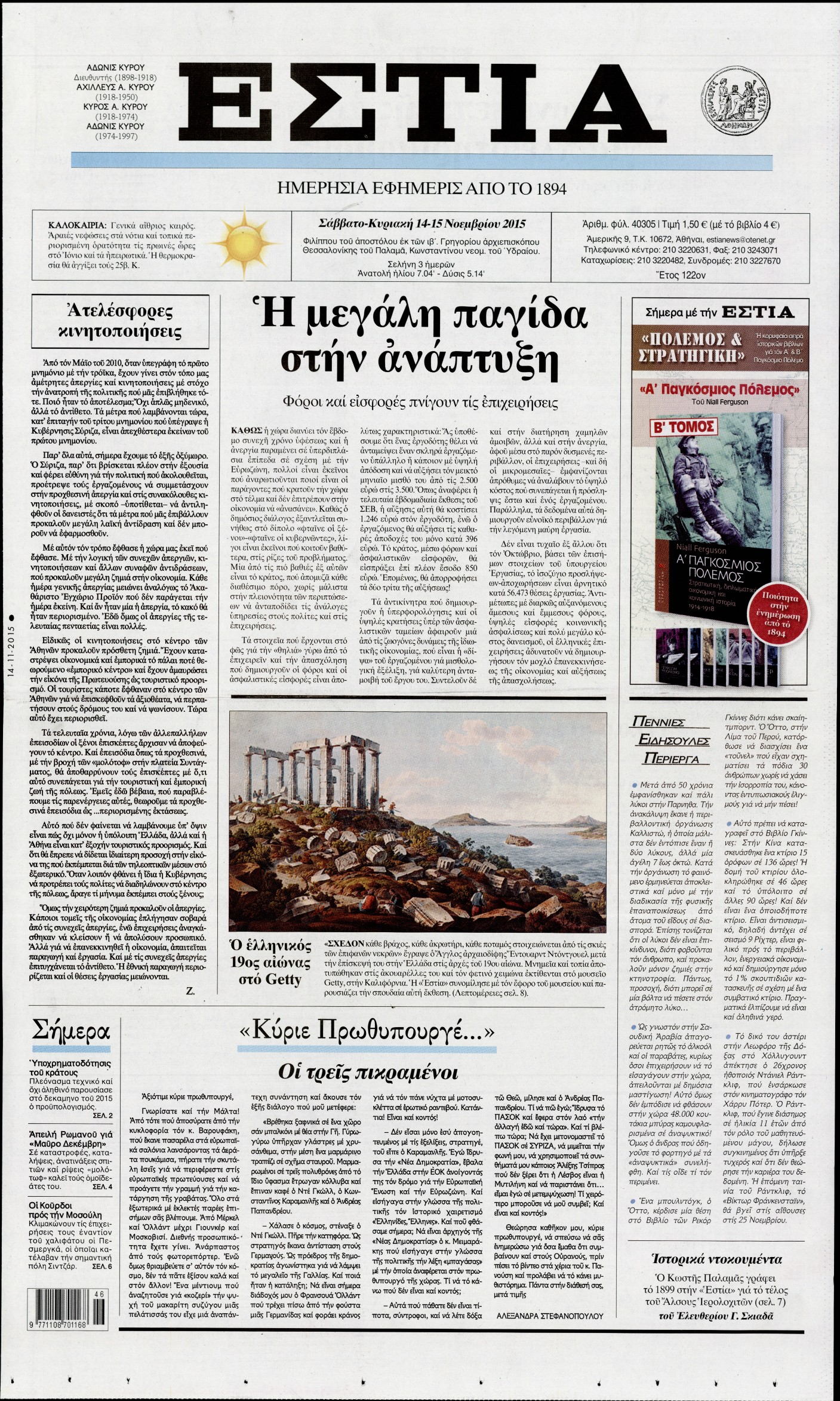 Οι πολιτικές εφημερίδες 14/11/2015 Enikos Newsroom 06:27, Σάββατο 14 Νοεμβρίου 2015 Media Διαβάστε τα σημερινά πρωτοσέλιδα των πολιτικών εφημερίδων: ΠΟΛΙΤΙΚΕΣ ΕΦΗΜΕΡΙΔΕΣ ΠΡΩΤΟΣΕΛΙΔΑ Μοιράσου το: σχολίασε κι εσύ (0 σχόλια) Ακολουθήστε το enikos.gr στο Google News και μάθετε πρώτοι όλες τις ειδήσεις Δείτε όλες τις τελευταίες ειδήσεις από την Ελλάδα και τον Κόσμο στο enikos.gr Ειδήσεις Ροή Ειδήσεων 52 λεπτά πριν Χριστούγεννα στα μπλόκα: Επιμένουν στις κινητοποιήσεις τους οι αγρότες – Ανοίγουν τα διόδια το Σαββατοκύριακο 1 ώρα πριν Ουκρανία: Η άνευ προηγουμένου επίθεση σε ρωσικό τάνκερ στη Μεσόγειο και το μήνυμα προς στον Πούτιν – Το «μακρύ χέρι» του Κιέβου 30 λεπτά πριν Πούτιν: Τα μηνύματα σε Ευρώπη και ΝΑΤΟ από το μαραθώνιο «σόου» του – Η απαίτηση για «σεβασμό» και η ειρήνη «με τους όρους» της Μόσχας 1 ώρα πριν Τραμπ: Δεν αποκλείει την πιθανότητα ενός πολέμου στη Βενεζουέλα – «Ο Μαδούρο ξέρει καλύτερα από τον καθένα τι ακριβώς θέλω» 2 ώρες πριν Συνεχίζει να προκαλεί ο Μίτσκοσκι: «Για μένα το όνομα Μακεδονία είναι ιερό» 4 ώρες πριν Πούτιν: «Ναι, είμαι ερωτευμένος» – Βίντεο από τη σπάνια προσωπική παραδοχή του 2 ώρες πριν Αριθμολογία: Οι άνθρωποι που έχουν γεννηθεί αυτές τις 4 ημερομηνίες, συχνά παρεξηγούνται – «Η καλοσύνη τους κρύβει τεράστια δύναμη» 1 ώρα πριν Ύπνος: Μια κρυφή κατάσταση του εγκεφάλου πριν από τον ύπνο μπορεί να είναι το “κλειδί” για υψηλή ευφυΐα και δημιουργικότητα 3 ώρες πριν Ξεχάστε το καθάρισμα το Σαββατοκύριακο: Ο «κανόνας των 20 λεπτών» που θα σας λύσει τα χέρια 31 λεπτά πριν Ανακαλύφθηκαν αρχαία χρυσά νομίσματα 2.200 ετών που απεικονίζουν τον θεό Απόλλωνα – Η άγνωστη σύνδεση με τον Φίλιππο Β΄ της Μακεδονίας 21 δευτερόλεπτα πριν Γάζα: Ισραηλινό πλήγμα σε σχολείο που είχαν καταφύγει εκτοπισμένοι – Τουλάχιστον έξι νεκροί 15 λεπτά πριν Ολυμπιακός – Βιλερμπάν 107-84: Επιστροφή στις νίκες με… προπόνηση 20 λεπτά πριν Νέος Κόσμος: Συνελήφθη 41χρονος με ένταλμα από την Τουρκία για εμπόριο ναρκωτικών και ληστεία 30 λεπτά πριν Πούτιν: Τα μηνύματα σε Ευρώπη και ΝΑΤΟ από το μαραθώνιο «σόου» του – Η απαίτηση για «σεβασμό» και η ειρήνη «με τους όρους» της Μόσχας 31 λεπτά πριν Ανακαλύφθηκαν αρχαία χρυσά νομίσματα 2.200 ετών που απεικονίζουν τον θεό Απόλλωνα – Η άγνωστη σύνδεση με τον Φίλιππο Β΄ της Μακεδονίας ENIKOS NETWORK Το ΕΚΑΒ τιμήθηκε από την Ακαδημία Αθηνών για τα 40 χρόνια προσφοράς του Έχετε πραγματικά μεγάλη καρδιά; 10 χαρακτηριστικά όσων έχουν καλοσύνη Αναστολή μέτρων αναγκαστικής εκτέλεσης για κτηνοτρόφους που πλήττονται από την ευλογιά των αιγοπροβάτων Πλήρης επάρκεια προϊόντων στις λαϊκές της Αττικής, παρά τις αγροτικές κινητοποιήσεις – Τι απαντούν οι πωλητές Χαρτογραφώντας το «σημείο χωρίς επιστροφή»: Για πρώτη φορά αποκαλύπτεται με λεπτομέρεια το ακανθώδες όριο της ατμόσφαιρας τ... Η Google καταργεί τη λειτουργία «dark web report» – Πώς θα μπορούν οι χρήστες να διαγράφουν τα δεδομένα τους περισσότερα 22:42 , Παρασκευή 19 Δεκεμβρίου 2025 Γιώργος Γιαννόπουλος για “Το σόι σου”: “Είναι ευτυχία και ευλογία αυτή η σειρά” «Είναι ευτυχία και ευλογία η συγκυρία αυτής της σειράς», θα πει ο Γιώργος Γιαννόπουλος -ο αγαπ... 20:37 , Παρασκευή 19 Δεκεμβρίου 2025 Don’t Forget The Lyrics: Η Έλλη Κοκκίνου υποδέχεται 4 παίκτες που θα κάνουν τα πάντα για να μη χάσουν ούτε… μισή λέξη από τους στίχους Το «Don’t Forget The Lyrics» επιστρέφει απόψε, Παρασκευή 19 Δεκεμβρίου, στις 21:00 με νέο επει... 19:31 , Παρασκευή 19 Δεκεμβρίου 2025