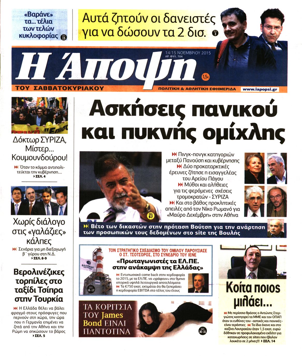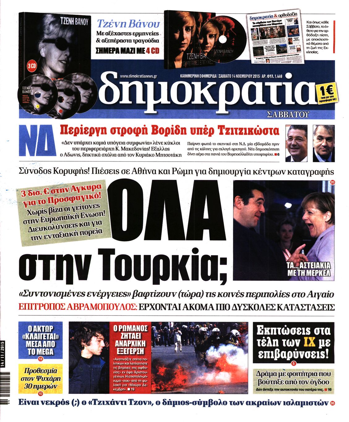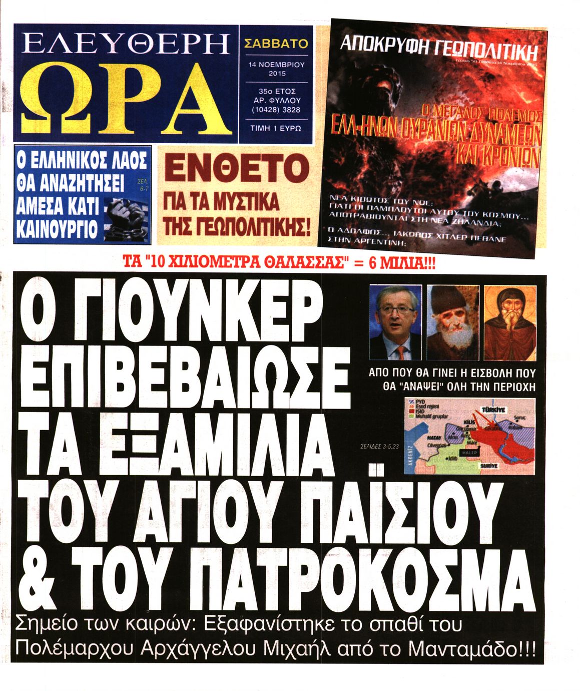 Οι πολιτικές εφημερίδες 14/11/2015 Enikos Newsroom 06:27, Σάββατο 14 Νοεμβρίου 2015 Media Διαβάστε τα σημερινά πρωτοσέλιδα των πολιτικών εφημερίδων: ΠΟΛΙΤΙΚΕΣ ΕΦΗΜΕΡΙΔΕΣ ΠΡΩΤΟΣΕΛΙΔΑ Μοιράσου το: σχολίασε κι εσύ (0 σχόλια) Ακολουθήστε το enikos.gr στο Google News και μάθετε πρώτοι όλες τις ειδήσεις Δείτε όλες τις τελευταίες ειδήσεις από την Ελλάδα και τον Κόσμο στο enikos.gr Ειδήσεις Ροή Ειδήσεων 52 λεπτά πριν Χριστούγεννα στα μπλόκα: Επιμένουν στις κινητοποιήσεις τους οι αγρότες – Ανοίγουν τα διόδια το Σαββατοκύριακο 1 ώρα πριν Ουκρανία: Η άνευ προηγουμένου επίθεση σε ρωσικό τάνκερ στη Μεσόγειο και το μήνυμα προς στον Πούτιν – Το «μακρύ χέρι» του Κιέβου 30 λεπτά πριν Πούτιν: Τα μηνύματα σε Ευρώπη και ΝΑΤΟ από το μαραθώνιο «σόου» του – Η απαίτηση για «σεβασμό» και η ειρήνη «με τους όρους» της Μόσχας 1 ώρα πριν Τραμπ: Δεν αποκλείει την πιθανότητα ενός πολέμου στη Βενεζουέλα – «Ο Μαδούρο ξέρει καλύτερα από τον καθένα τι ακριβώς θέλω» 2 ώρες πριν Συνεχίζει να προκαλεί ο Μίτσκοσκι: «Για μένα το όνομα Μακεδονία είναι ιερό» 4 ώρες πριν Πούτιν: «Ναι, είμαι ερωτευμένος» – Βίντεο από τη σπάνια προσωπική παραδοχή του 2 ώρες πριν Αριθμολογία: Οι άνθρωποι που έχουν γεννηθεί αυτές τις 4 ημερομηνίες, συχνά παρεξηγούνται – «Η καλοσύνη τους κρύβει τεράστια δύναμη» 1 ώρα πριν Ύπνος: Μια κρυφή κατάσταση του εγκεφάλου πριν από τον ύπνο μπορεί να είναι το “κλειδί” για υψηλή ευφυΐα και δημιουργικότητα 3 ώρες πριν Ξεχάστε το καθάρισμα το Σαββατοκύριακο: Ο «κανόνας των 20 λεπτών» που θα σας λύσει τα χέρια 31 λεπτά πριν Ανακαλύφθηκαν αρχαία χρυσά νομίσματα 2.200 ετών που απεικονίζουν τον θεό Απόλλωνα – Η άγνωστη σύνδεση με τον Φίλιππο Β΄ της Μακεδονίας 21 δευτερόλεπτα πριν Γάζα: Ισραηλινό πλήγμα σε σχολείο που είχαν καταφύγει εκτοπισμένοι – Τουλάχιστον έξι νεκροί 15 λεπτά πριν Ολυμπιακός – Βιλερμπάν 107-84: Επιστροφή στις νίκες με… προπόνηση 20 λεπτά πριν Νέος Κόσμος: Συνελήφθη 41χρονος με ένταλμα από την Τουρκία για εμπόριο ναρκωτικών και ληστεία 30 λεπτά πριν Πούτιν: Τα μηνύματα σε Ευρώπη και ΝΑΤΟ από το μαραθώνιο «σόου» του – Η απαίτηση για «σεβασμό» και η ειρήνη «με τους όρους» της Μόσχας 31 λεπτά πριν Ανακαλύφθηκαν αρχαία χρυσά νομίσματα 2.200 ετών που απεικονίζουν τον θεό Απόλλωνα – Η άγνωστη σύνδεση με τον Φίλιππο Β΄ της Μακεδονίας ENIKOS NETWORK Το ΕΚΑΒ τιμήθηκε από την Ακαδημία Αθηνών για τα 40 χρόνια προσφοράς του Έχετε πραγματικά μεγάλη καρδιά; 10 χαρακτηριστικά όσων έχουν καλοσύνη Αναστολή μέτρων αναγκαστικής εκτέλεσης για κτηνοτρόφους που πλήττονται από την ευλογιά των αιγοπροβάτων Πλήρης επάρκεια προϊόντων στις λαϊκές της Αττικής, παρά τις αγροτικές κινητοποιήσεις – Τι απαντούν οι πωλητές Χαρτογραφώντας το «σημείο χωρίς επιστροφή»: Για πρώτη φορά αποκαλύπτεται με λεπτομέρεια το ακανθώδες όριο της ατμόσφαιρας τ... Η Google καταργεί τη λειτουργία «dark web report» – Πώς θα μπορούν οι χρήστες να διαγράφουν τα δεδομένα τους περισσότερα 22:42 , Παρασκευή 19 Δεκεμβρίου 2025 Γιώργος Γιαννόπουλος για “Το σόι σου”: “Είναι ευτυχία και ευλογία αυτή η σειρά” «Είναι ευτυχία και ευλογία η συγκυρία αυτής της σειράς», θα πει ο Γιώργος Γιαννόπουλος -ο αγαπ... 20:37 , Παρασκευή 19 Δεκεμβρίου 2025 Don’t Forget The Lyrics: Η Έλλη Κοκκίνου υποδέχεται 4 παίκτες που θα κάνουν τα πάντα για να μη χάσουν ούτε… μισή λέξη από τους στίχους Το «Don’t Forget The Lyrics» επιστρέφει απόψε, Παρασκευή 19 Δεκεμβρίου, στις 21:00 με νέο επει... 19:31 , Παρασκευή 19 Δεκεμβρίου 2025