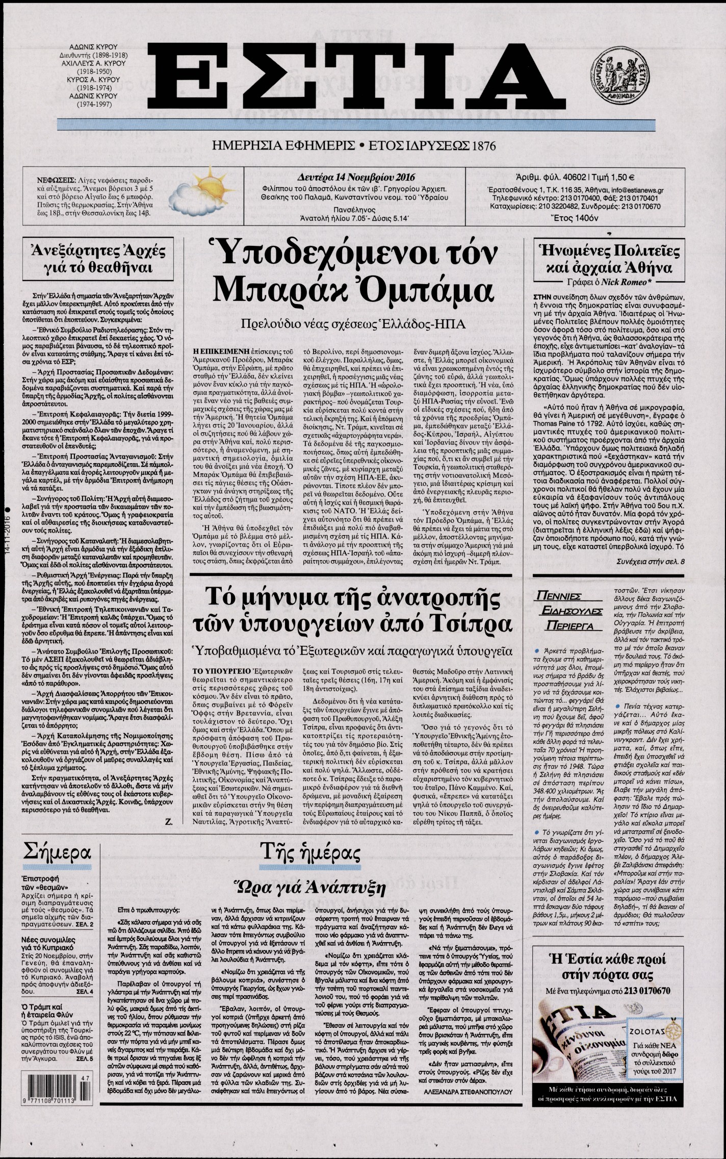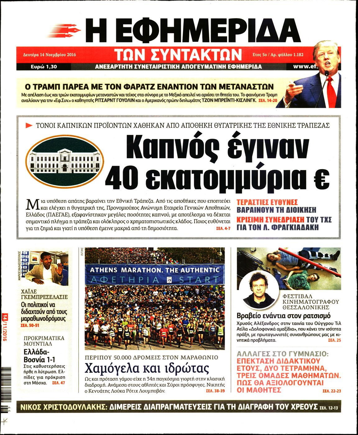 Οι πολιτικές εφημερίδες 14/11/2016 Enikos Newsroom 06:09, Δευτέρα 14 Νοεμβρίου 2016 Media Διαβάστε τα σημερινά πρωτοσέλιδα των πολιτικών εφημερίδων: ΠΟΛΙΤΙΚΕΣ ΕΦΗΜΕΡΙΔΕΣ ΠΡΩΤΟΣΕΛΙΔΑ Μοιράσου το: σχολίασε κι εσύ (0 σχόλια) Ακολουθήστε το enikos.gr στο Google News και μάθετε πρώτοι όλες τις ειδήσεις Δείτε όλες τις τελευταίες ειδήσεις από την Ελλάδα και τον Κόσμο στο enikos.gr Ειδήσεις Ροή Ειδήσεων 2 ώρες πριν Πώς δρούσε το κύκλωμα που διακινούσε ναρκωτικά σε σχολεία – Υπέβαλαν σε βασανιστήρια όσους δεν τηρούσαν τους «κανόνες πειθαρχίας» 2 ώρες πριν Αγρότες: Γιορτές στα μπλόκα με ανοιχτά διόδια – Δικογραφία στα Ιωάννινα για το σήκωμα των μπαρών 2 ώρες πριν Ζελένσκι: Οι Αμερικανοί πρότειναν συνάντηση Ουκρανίας, ΗΠΑ, Ρωσίας στο Μαϊάμι 1 ώρα πριν Αττική: Εξαρθρώθηκε εγκληματική οργάνωση που έκλεβε οχήματα, τα παραποιούσε και τα μεταπωλούσε σε πολίτες – Πώς δρούσε το κύκλωμα 47 λεπτά πριν Μικαέλα Μπέντχαους: Ο πρώτος άνθρωπος σε αναπηρικό αμαξίδιο που ταξίδεψε στο διάστημα – ΒΙΝΤΕΟ 2 ώρες πριν Η τύχη χαμογελά σε 3 ζώδια έως τις 28 Δεκεμβρίου – «Προσέξτε τις επιλογές σας και η επιμονή σας θα ανταμειφθεί» 6 ώρες πριν Διαιτολόγος αποκαλύπτει 9 πρωινές συνήθειες που «λιώνουν» το κοιλιακό λίπος – «Υποστηρίζουν την υγιεινή απώλεια βάρους» 3 ώρες πριν Μία ανεκμετάλλευτη πηγή θα μπορούσε να προσφέρει ανεξάντλητη ενέργεια – Οι επιστήμονες ίσως γνωρίζουν πώς να την ξεκλειδώσουν 10 ώρες πριν Enerwave: Το νέο «ρεύμα» στη λιανική ενέργειας που αλλάζει την εμπειρία του καταναλωτή 11 λεπτά πριν HOTΕΛ ΕΛVIRA: Η Ελβίρα μαθαίνει πως ο Χάρι μένει κρυφά στο ξενοδοχείο του Παντελή 20 λεπτά πριν Ερντογάν: «Δεν έχουμε βλέψεις στα εδάφη κανενός, αλλά δεν θα επιτρέψουμε να παραβιαστούν τα δικαιώματά μας» 29 λεπτά πριν Η Realnews στο www.pressreader.com 37 λεπτά πριν Νιούκαστλ – Τσέλσι 2-2: Αλύγιστοι οι Λονδρέζοι 47 λεπτά πριν Μικαέλα Μπέντχαους: Ο πρώτος άνθρωπος σε αναπηρικό αμαξίδιο που ταξίδεψε στο διάστημα – ΒΙΝΤΕΟ ENIKOS NETWORK Γιατί πρέπει να ζητάμε χάρες; Ποιο είναι το φαινόμενο Ben Franklin που κάνει τους άλλους να μας συμπαθούν Η αποχή από την αναπαραγωγή παρατείνει τη ζωή στα ζώα, σύμφωνα με μελέτη – Τι ισχύει για τους ανθρώπους; Η Realnews στο www.pressreader.com Τράπεζες: Πόσες ημέρες θα είναι κλειστές μέσα στις γιορτές Χαρτογραφώντας το «σημείο χωρίς επιστροφή»: Για πρώτη φορά αποκαλύπτεται με λεπτομέρεια το ακανθώδες όριο της ατμόσφαιρας τ... Η Google καταργεί τη λειτουργία «dark web report» – Πώς θα μπορούν οι χρήστες να διαγράφουν τα δεδομένα τους περισσότερα 18:19 , Σάββατο 20 Δεκεμβρίου 2025 HOTΕΛ ΕΛVIRA: Η Ελβίρα μαθαίνει πως ο Χάρι μένει κρυφά στο ξενοδοχείο του Παντελή Συνεχίζονται οι εκλογές για πρόεδρο, στο νέο επεισόδιο της κωμικής σειράς του MEGA, HOTΕΛ ΕΛVI... 14:04 , Σάββατο 20 Δεκεμβρίου 2025 Η Realnews αυτής της Κυριακής (21/12/2025) Με τίτλο: «Ασπίδα προστασίας για την Ελλάδα» κυκλοφορεί, αυτήν την Κυριακή, η Realnews. Σημαντ... 12:53 , Σάββατο 20 Δεκεμβρίου 2025 Να μ’ αγαπάς: Το παρελθόν έρχεται στο φως – Καταιγιστικές εξελίξεις στα τελευταία επεισόδια του 2025 Ο Άγγελος αποκαλύπτεται, η Φωτεινή ανησυχεί για τον Λευτέρη και η Ζωή έρχεται αντιμέτωπη με το... 11:41 , Σάββατο 20 Δεκεμβρίου 2025 «Η αγάπη δεν χάνεται ποτέ»: Η μικρού μήκους ταινία κινουμένων σχεδίων που θέτει ερωτήματα για τη ζωή και τον θάνατο Ο θάνατος είναι ένα από τα πιο σκληρά θέματα που καλείται να διαχειριστεί κάποιος στη διάρκεια... ΤΕΛΕΥΤΑΙΕΣ ΕΙΔΗΣΕΙΣ 11 λεπτά πριν HOTΕΛ ΕΛVIRA: Η Ελβίρα μαθαίνει πως ο Χάρι μένει κ