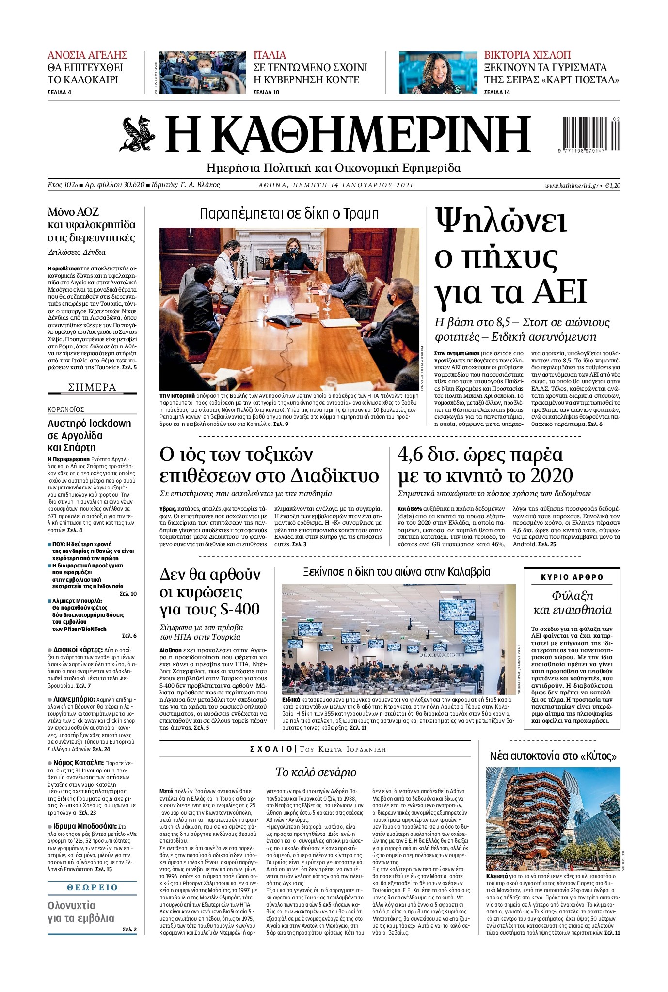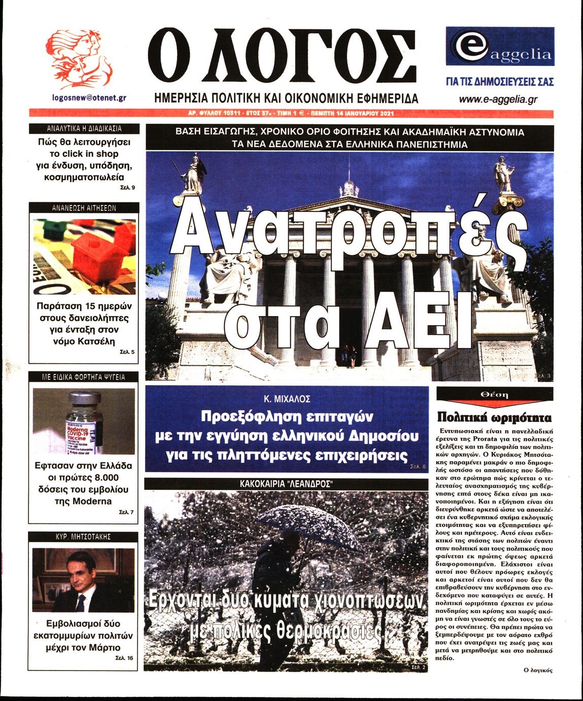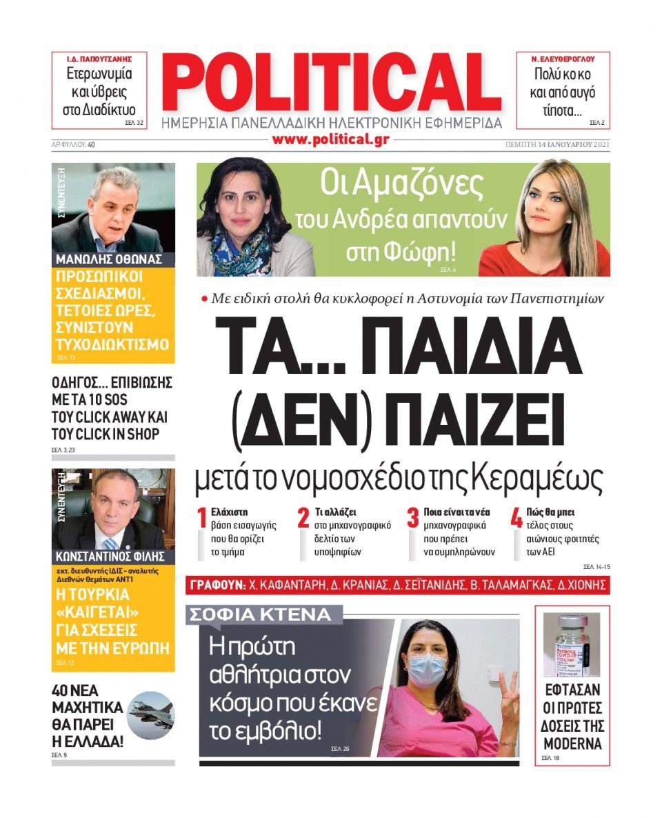Οι πολιτικές εφημερίδες 14/1/2021 Διονύσης Νίκκας 06:09, Πέμπτη 14 Ιανουαρίου 2021 Media Διαβάστε τα πρωτοσέλιδα των πολιτικών εφημερίδων… ΕΦΗΜΕΡΙΔΕΣ ΠΟΛΙΤΙΚΕΣ ΕΦΗΜΕΡΙΔΕΣ ΠΡΩΤΟΣΕΛΙΔΑ Μοιράσου το: σχολίασε κι εσύ (0 σχόλια) Ακολουθήστε το enikos.gr στο Google News και μάθετε πρώτοι όλες τις ειδήσεις Δείτε όλες τις τελευταίες ειδήσεις από την Ελλάδα και τον Κόσμο στο enikos.gr Ειδήσεις Ροή Ειδήσεων 6 ώρες πριν Χριστούγεννα στα μπλόκα οι αγρότες: Άνοιξαν στα διόδια και μοίρασαν προϊόντα στους πολίτες – Νέα σύσκεψη την Κυριακή στη Νίκαια 6 ώρες πριν Κύκλωμα διακίνησης ναρκωτικών σε σχολεία: Τηλεφωνούσαν στους ανηλίκους την ώρα του μαθήματος – Οι διάλογοι-σοκ, τα «ψευδώνυμα» και τα βασανιστήρια 6 ώρες πριν Αρχεία Επστάιν: Οι 500 σελίδες που λείπουν, τα αναπάντητα ερωτήματα και οι επώνυμοι – Τι έπεται 7 ώρες πριν Ζελένσκι: Μόνο οι ΗΠΑ και ο Τραμπ μπορούν να πιέσουν τη Ρωσία να βάλει τέλος στον πόλεμο 8 ώρες πριν Φοινικούντα: Προφυλακιστέος ο 30χρονος για συνέργεια στη διπλή δολοφονία – Και άλλα πρόσωπα στο «μικροσκόπιο» 6 ώρες πριν Αποκαλύφθηκε το άγνωστο «GPS» της αρχαιότητας – Πώς οι ναοί «φώτιζαν» τον δρόμο των ναυτικών πριν από την εφεύρεση των φάρων 7 ώρες πριν Ύπνος: Η διατροφή που μπορεί να σας βοηθήσει να κοιμάστε καλύτερα και να ζήσετε περισσότερο 8 ώρες πριν Αριθμολογία: Ο αριθμός του φύλακα αγγέλου σας, με βάση τον μήνα γέννησής σας – «Έτσι σας στέλνει σημάδια το σύμπαν» 20 ώρες πριν Enerwave: Το νέο «ρεύμα» στη λιανική ενέργειας που αλλάζει την εμπειρία του καταναλωτή 36 λεπτά πριν Σήμερα με τη Realnews: Δωροεπιταγή 10€ 18 λεπτά πριν Βενεζουέλα: Καταδικάζει την «κλοπή και την απαγωγή» δεύτερου πετρελαιοφόρου δεξαμενόπλοιου από τις ΗΠΑ 24 λεπτά πριν Σήμερα με τη Realnews: Ό,τι και αν αγοράσεις, σκανάρεις και κερδίζεις! 33 λεπτά πριν Βενεζουέλα: Προσφέρει βοήθεια στο Ιράν στην σύγκρουση με τις ΗΠΑ 48 λεπτά πριν Μαριλού Κατσαφάδου: «Η απώλεια της με έβαλε σε διαδικασία να δω διαφορετικά τη ζωή, σαν να ωρίμασα 10 χρόνια» ENIKOS NETWORK Οι γυναίκες αποκαλύπτουν το πιο ελκυστικό πράγμα που μπορεί να κάνει ένας άνδρας Ομορφιά και αντιγήρανση: Ειδικοί μιλούν για συσκευές περιποίησης του δέρματος «Πολεμική» προετοιμασία από την ευρωπαϊκή βιομηχανία ενέργειας – Η Eurelectric ζητεί «ομπρέλα» προστασίας για τις υποδομές Ακύρωση ΑΦΜ για απάτες – Ποιους βάζει στο στόχαστρο η ΑΑΔΕ Χαρτογραφώντας το «σημείο χωρίς επιστροφή»: Για πρώτη φορά αποκαλύπτεται με λεπτομέρεια το ακανθώδες όριο της ατμόσφαιρας τ... Η Google καταργεί τη λειτουργία «dark web report» – Πώς θα μπορούν οι χρήστες να διαγράφουν τα δεδομένα τους περισσότερα 04:08 , Κυριακή 21 Δεκεμβρίου 2025 Σήμερα με τη Realnews: Ό,τι και αν αγοράσεις, σκανάρεις και κερδίζεις! Σήμερα με τη Realnews: Ό,τι και αν αγοράσεις, σκανάρεις και κερδίζεις! Με το PADU app, το κορυ... 03:08 , Κυριακή 21 Δεκεμβρίου 2025 Σήμερα με τη Realnews: Instyle, μαζί Drive και Realnews Geopolitics Σήμερα με τη Realnews: Instyle, μαζί Drive και Realnews Geopolitics Instyle Η Άννα Ρεζάν, η Ch... 01:30 , Κυριακή 21 Δεκεμβρίου 2025 Άννα Βίσση: Τα… Social Media «προσκύνησαν» την «απόλυτη» για την συναυλία της στο Καλλιμάρμαρο που προβλήθηκε από το Mega Την ημέρα των γενεθλίων της Άννας Βίσση, το MEGA τίμησε τη διαχρονική παρουσία της «απόλυτης Ε... 00:00 , Κυριακή 21 Δεκεμβρίου 2025 The Voice: Η επιστροφή της Έλενας Παπαρίζου και η ατάκα του Γιώργου Μαζωνάκη μετά τις καταγγελίες Στη φάση των Cross Battles Live μπήκε το The Voice, με την Έλενα Παπαρίζου να επιστρέφει στο π... ΤΕΛΕΥΤΑΙΕΣ ΕΙΔΗΣΕΙΣ 18 λεπτά πρ