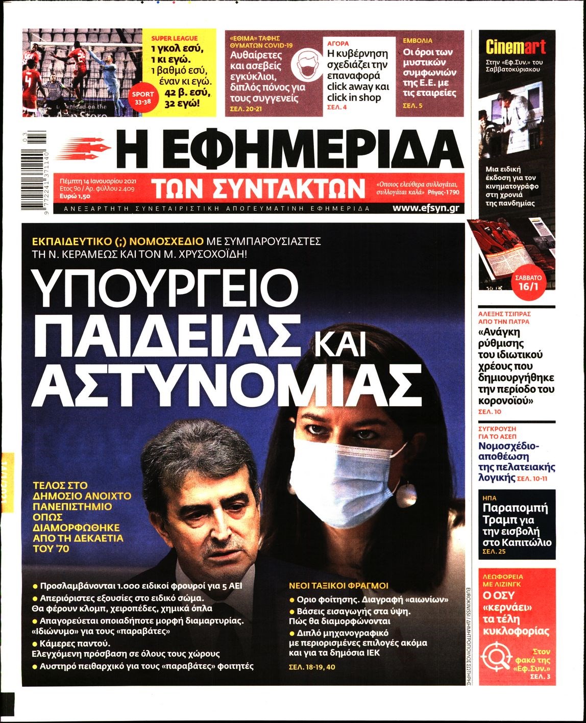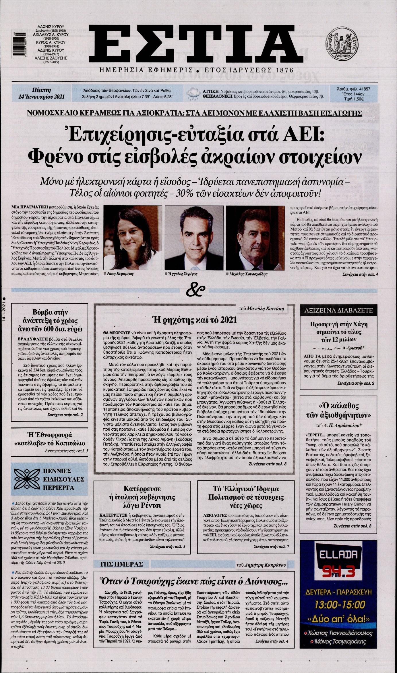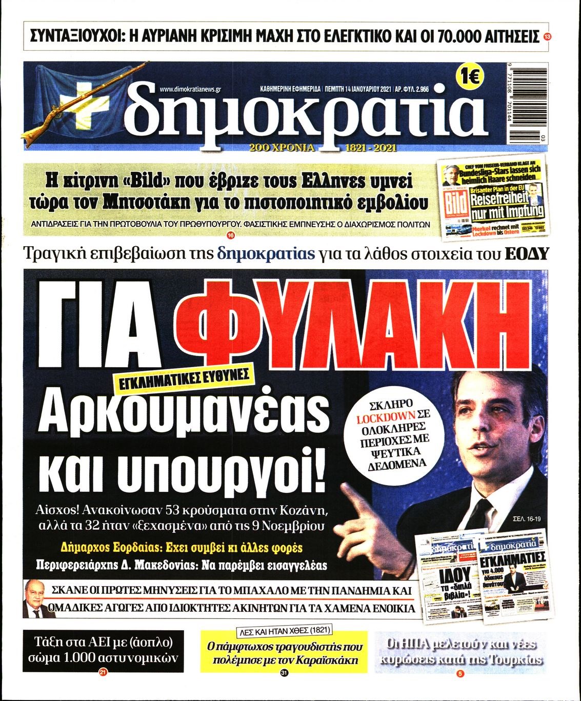 Οι πολιτικές εφημερίδες 14/1/2021 Διονύσης Νίκκας 06:09, Πέμπτη 14 Ιανουαρίου 2021 Media Διαβάστε τα πρωτοσέλιδα των πολιτικών εφημερίδων… ΕΦΗΜΕΡΙΔΕΣ ΠΟΛΙΤΙΚΕΣ ΕΦΗΜΕΡΙΔΕΣ ΠΡΩΤΟΣΕΛΙΔΑ Μοιράσου το: σχολίασε κι εσύ (0 σχόλια) Ακολουθήστε το enikos.gr στο Google News και μάθετε πρώτοι όλες τις ειδήσεις Δείτε όλες τις τελευταίες ειδήσεις από την Ελλάδα και τον Κόσμο στο enikos.gr Ειδήσεις Ροή Ειδήσεων 6 ώρες πριν Χριστούγεννα στα μπλόκα οι αγρότες: Άνοιξαν στα διόδια και μοίρασαν προϊόντα στους πολίτες – Νέα σύσκεψη την Κυριακή στη Νίκαια 6 ώρες πριν Κύκλωμα διακίνησης ναρκωτικών σε σχολεία: Τηλεφωνούσαν στους ανηλίκους την ώρα του μαθήματος – Οι διάλογοι-σοκ, τα «ψευδώνυμα» και τα βασανιστήρια 6 ώρες πριν Αρχεία Επστάιν: Οι 500 σελίδες που λείπουν, τα αναπάντητα ερωτήματα και οι επώνυμοι – Τι έπεται 7 ώρες πριν Ζελένσκι: Μόνο οι ΗΠΑ και ο Τραμπ μπορούν να πιέσουν τη Ρωσία να βάλει τέλος στον πόλεμο 8 ώρες πριν Φοινικούντα: Προφυλακιστέος ο 30χρονος για συνέργεια στη διπλή δολοφονία – Και άλλα πρόσωπα στο «μικροσκόπιο» 6 ώρες πριν Αποκαλύφθηκε το άγνωστο «GPS» της αρχαιότητας – Πώς οι ναοί «φώτιζαν» τον δρόμο των ναυτικών πριν από την εφεύρεση των φάρων 7 ώρες πριν Ύπνος: Η διατροφή που μπορεί να σας βοηθήσει να κοιμάστε καλύτερα και να ζήσετε περισσότερο 8 ώρες πριν Αριθμολογία: Ο αριθμός του φύλακα αγγέλου σας, με βάση τον μήνα γέννησής σας – «Έτσι σας στέλνει σημάδια το σύμπαν» 20 ώρες πριν Enerwave: Το νέο «ρεύμα» στη λιανική ενέργειας που αλλάζει την εμπειρία του καταναλωτή 36 λεπτά πριν Σήμερα με τη Realnews: Δωροεπιταγή 10€ 18 λεπτά πριν Βενεζουέλα: Καταδικάζει την «κλοπή και την απαγωγή» δεύτερου πετρελαιοφόρου δεξαμενόπλοιου από τις ΗΠΑ 24 λεπτά πριν Σήμερα με τη Realnews: Ό,τι και αν αγοράσεις, σκανάρεις και κερδίζεις! 33 λεπτά πριν Βενεζουέλα: Προσφέρει βοήθεια στο Ιράν στην σύγκρουση με τις ΗΠΑ 48 λεπτά πριν Μαριλού Κατσαφάδου: «Η απώλεια της με έβαλε σε διαδικασία να δω διαφορετικά τη ζωή, σαν να ωρίμασα 10 χρόνια» ENIKOS NETWORK Οι γυναίκες αποκαλύπτουν το πιο ελκυστικό πράγμα που μπορεί να κάνει ένας άνδρας Ομορφιά και αντιγήρανση: Ειδικοί μιλούν για συσκευές περιποίησης του δέρματος «Πολεμική» προετοιμασία από την ευρωπαϊκή βιομηχανία ενέργειας – Η Eurelectric ζητεί «ομπρέλα» προστασίας για τις υποδομές Ακύρωση ΑΦΜ για απάτες – Ποιους βάζει στο στόχαστρο η ΑΑΔΕ Χαρτογραφώντας το «σημείο χωρίς επιστροφή»: Για πρώτη φορά αποκαλύπτεται με λεπτομέρεια το ακανθώδες όριο της ατμόσφαιρας τ... Η Google καταργεί τη λειτουργία «dark web report» – Πώς θα μπορούν οι χρήστες να διαγράφουν τα δεδομένα τους περισσότερα 04:08 , Κυριακή 21 Δεκεμβρίου 2025 Σήμερα με τη Realnews: Ό,τι και αν αγοράσεις, σκανάρεις και κερδίζεις! Σήμερα με τη Realnews: Ό,τι και αν αγοράσεις, σκανάρεις και κερδίζεις! Με το PADU app, το κορυ... 03:08 , Κυριακή 21 Δεκεμβρίου 2025 Σήμερα με τη Realnews: Instyle, μαζί Drive και Realnews Geopolitics Σήμερα με τη Realnews: Instyle, μαζί Drive και Realnews Geopolitics Instyle Η Άννα Ρεζάν, η Ch... 01:30 , Κυριακή 21 Δεκεμβρίου 2025 Άννα Βίσση: Τα… Social Media «προσκύνησαν» την «απόλυτη» για την συναυλία της στο Καλλιμάρμαρο που προβλήθηκε από το Mega Την ημέρα των γενεθλίων της Άννας Βίσση, το MEGA τίμησε τη διαχρονική παρουσία της «απόλυτης Ε... 00:00 , Κυριακή 21 Δεκεμβρίου 2025 The Voice: Η επιστροφή της Έλενας Παπαρίζου και η ατάκα του Γιώργου Μαζωνάκη μετά τις καταγγελίες Στη φάση των Cross Battles Live μπήκε το The Voice, με την Έλενα Παπαρίζου να επιστρέφει στο π... ΤΕΛΕΥΤΑΙΕΣ ΕΙΔΗΣΕΙΣ 18 λεπτά πρ