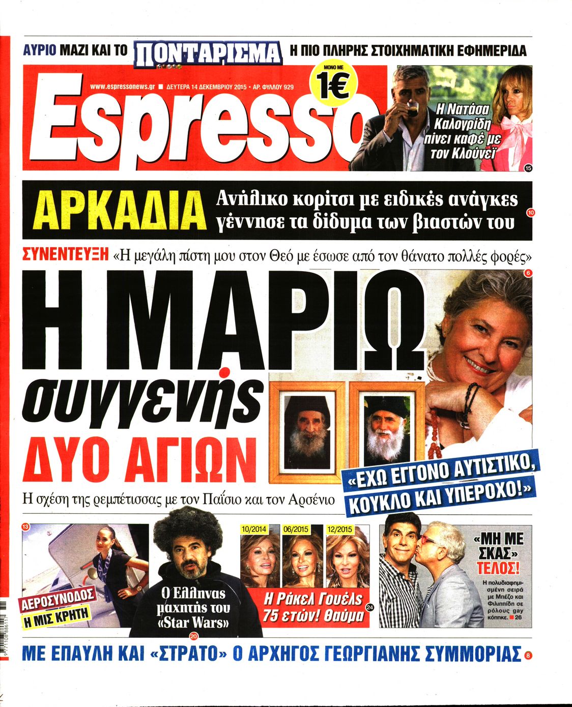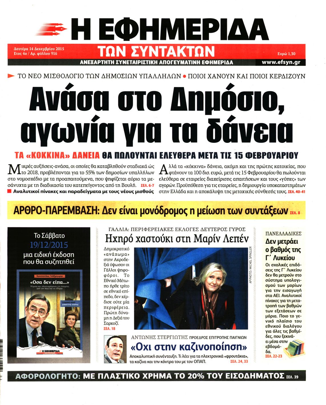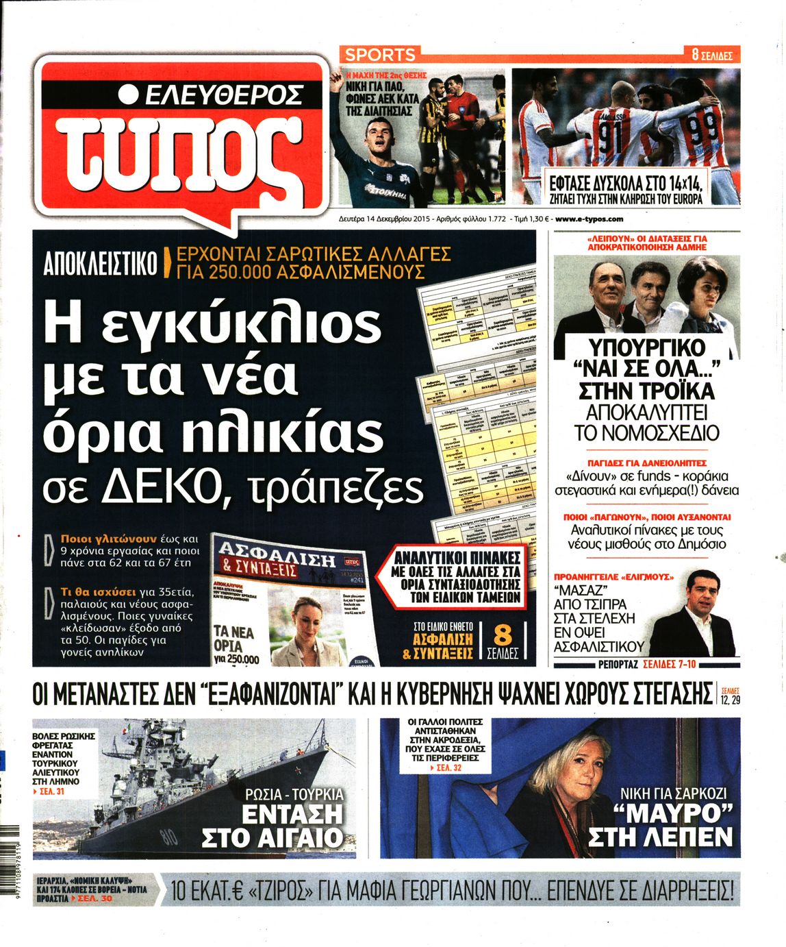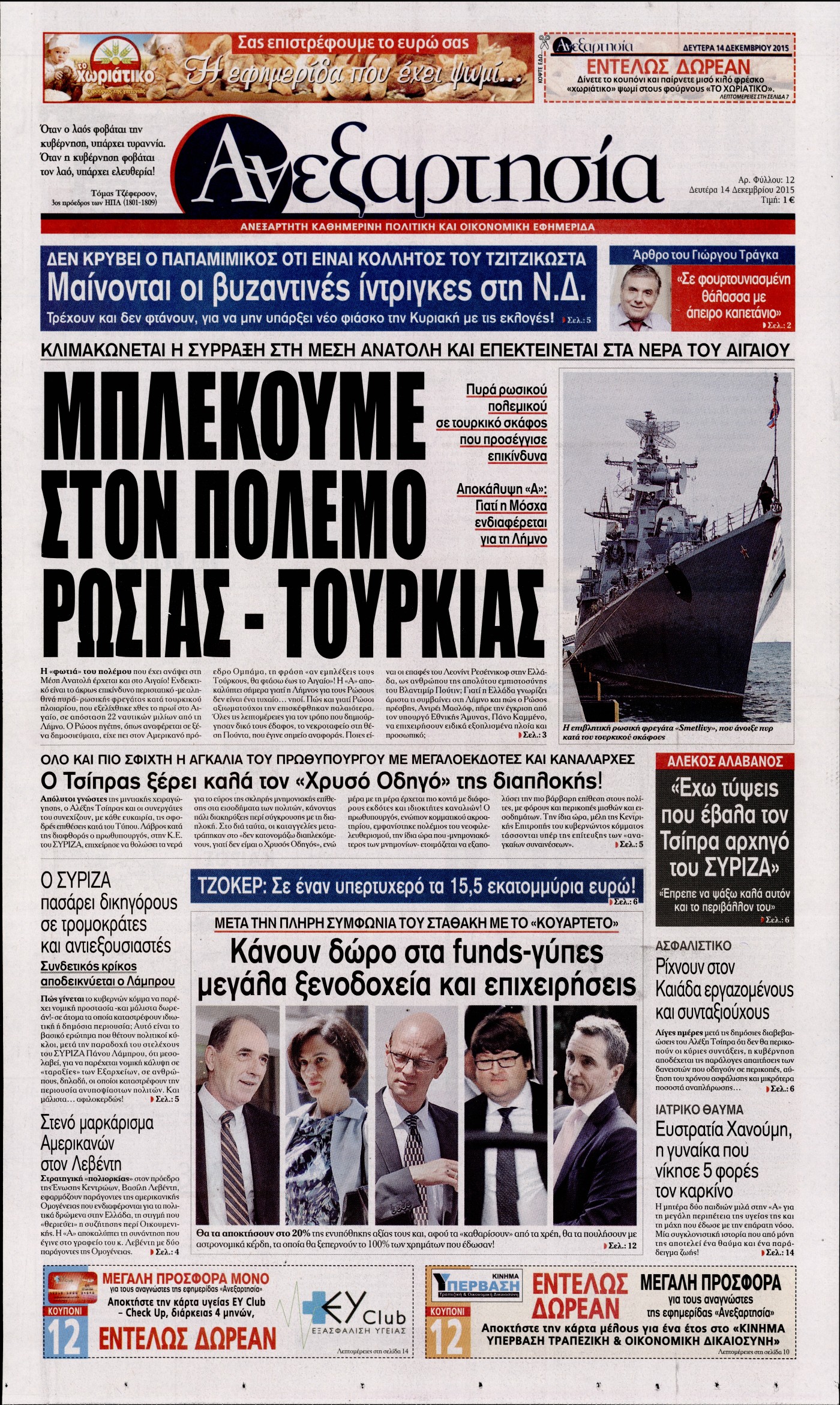 Οι πολιτικές εφημερίδες 14/12/2015 Enikos Newsroom 06:25, Δευτέρα 14 Δεκεμβρίου 2015 Media Διαβάστε τα σημερινά πρωτοσέλιδα των πολιτικών εφημερίδων: ΠΟΛΙΤΙΚΕΣ ΕΦΗΜΕΡΙΔΕΣ ΠΡΩΤΟΣΕΛΙΔΑ Μοιράσου το: σχολίασε κι εσύ (0 σχόλια) Ακολουθήστε το enikos.gr στο Google News και μάθετε πρώτοι όλες τις ειδήσεις Δείτε όλες τις τελευταίες ειδήσεις από την Ελλάδα και τον Κόσμο στο enikos.gr Ειδήσεις Ροή Ειδήσεων 2 ώρες πριν Υπόθεση Έπσταϊν: Το Υπουργείο Δικαιοσύνης δημοσιοποίησε μια σειρά από εξαιρετικά επεξεργασμένα αρχεία – «Λείπουν τα πιο σημαντικά έγγραφα», λένε οι Δημοκρατικοί 1 ώρα πριν Ο «χάρτης» με τις αυξήσεις και τις φοροελαφρύνσεις του 2026 – Ποιοι και πόσα κερδίζουν 11 ώρες πριν Χριστούγεννα στα μπλόκα: Επιμένουν στις κινητοποιήσεις τους οι αγρότες – Ανοίγουν τα διόδια το Σαββατοκύριακο 2 ώρες πριν ΟΝΕΧ – MEGATUGS: Ξεκίνησε η ναυπήγηση ρυμουλκών στην Ελλάδα – Προθάλαμος πολεμικών πλοίων – Δείτε φωτογραφίες και βίντεο 2 ώρες πριν Καιρός: Αλλαγή σκηνικού σήμερα με βροχές και πτώση της θερμοκρασίας – Οι προβλέψεις των μετεωρολόγων για τα Χριστούγεννα 4 ώρες πριν Αυγά: Πόσα μπορείτε να τρώτε την ημέρα με ασφάλεια για μέγιστη πρόσληψη πρωτεΐνης 3 ώρες πριν Οπτική ψευδαίσθηση: Μόνο αν είσαι ο Σέρλοκ Χολμς θα βρεις τον αριθμό «87» σε 7 δευτερόλεπτα 2 ώρες πριν Αρχαιολόγοι ανακάλυψαν σε χωράφι απεικόνιση 600 ετών ενός Αγίου – Τα στοιχεία που δείχνουν ότι μαρτύρησε 34 λεπτά πριν Αγχώνεται για το χριστουγεννιάτικο δώρο που πήρε στην πλούσια σύντροφό του – «Φοβάμαι πως θα το βρει φθηνιάρικο, φοράει βραχιόλια Cartier» 9 λεπτά πριν «Porto Leone: Στη γειτονιά με τα κόκκινα φανάρια» – Ο Χρόνης αποκαλύπτει στην Αλεξάνδρα το μυστικό για το παιδί της Λένας 17 λεπτά πριν Νέες αιτήσεις για ίδρυση μη κρατικών πανεπιστημίων στο πρώτο δίμηνο του 2026 – Τι είπε η Ζαχαράκη 25 λεπτά πριν Ουκρανία: Drones έπληξαν εξέδρα πετρελαίου και πολεμικό πλοίο της Ρωσίας στην Κασπία 34 λεπτά πριν Παιδική υπέρταση: Μια σιωπηλή απειλή που αυξάνεται διεθνώς 34 λεπτά πριν Αγχώνεται για το χριστουγεννιάτικο δώρο που πήρε στην πλούσια σύντροφό του – «Φοβάμαι πως θα το βρει φθηνιάρικο, φοράει βραχιόλια Cartier» ENIKOS NETWORK Πόσα κιλά παίρνουμε πραγματικά τα Χριστούγεννα, σύμφωνα με την επιστήμη – Πώς να το αποτρέψουμε; Το δημοφιλές ρόφημα που αυξάνει την πίεση πιο γρήγορα και από το αλάτι Mega χριστουγεννιάτικη φορολοταρία: «Κλείδωσε» η ημερομηνία για την κλήρωση – Ερωτήσεις και απαντήσεις Αναστολή μέτρων αναγκαστικής εκτέλεσης για κτηνοτρόφους που πλήττονται από την ευλογιά των αιγοπροβάτων Χαρτογραφώντας το «σημείο χωρίς επιστροφή»: Για πρώτη φορά αποκαλύπτεται με λεπτομέρεια το ακανθώδες όριο της ατμόσφαιρας τ... Η Google καταργεί τη λειτουργία «dark web report» – Πώς θα μπορούν οι χρήστες να διαγράφουν τα δεδομένα τους περισσότερα 09:30 , Σάββατο 20 Δεκεμβρίου 2025 «Porto Leone: Στη γειτονιά με τα κόκκινα φανάρια» – Ο Χρόνης αποκαλύπτει στην Αλεξάνδρα το μυστικό για το παιδί της Λένας Η μεγάλη δραματική σειρά του Apha «Porto Leone: Στη γειτονιά με τα κόκκινα φανάρια» μας μεταφέ... 08:14 , Σάββατο 20 Δεκεμβρίου 2025 Τρομεροί γονείς: Η Μαρία Καβογιάννη εισβάλλει στο σπίτι της οικογένειας Στεφανίδη Όσα θα δούμε στο νέο διπλό επεισόδιο της σειράς «Τρομεροί γονείς», σήμερα Σάββατο 20 Δεκεμβρίο... 05:48 , Σάββατο 20 Δεκεμβρίου 2025 Οι οικονομικές εφημερίδες 20/12/2025 Διαβάστε τα πρωτοσέλιδα από τις οικονομικές εφημερίδες, σήμερα 20/12/2025. 05:43 , Σάββατο 20 Δεκεμβρίου 2025 Οι αθλητικές εφημε