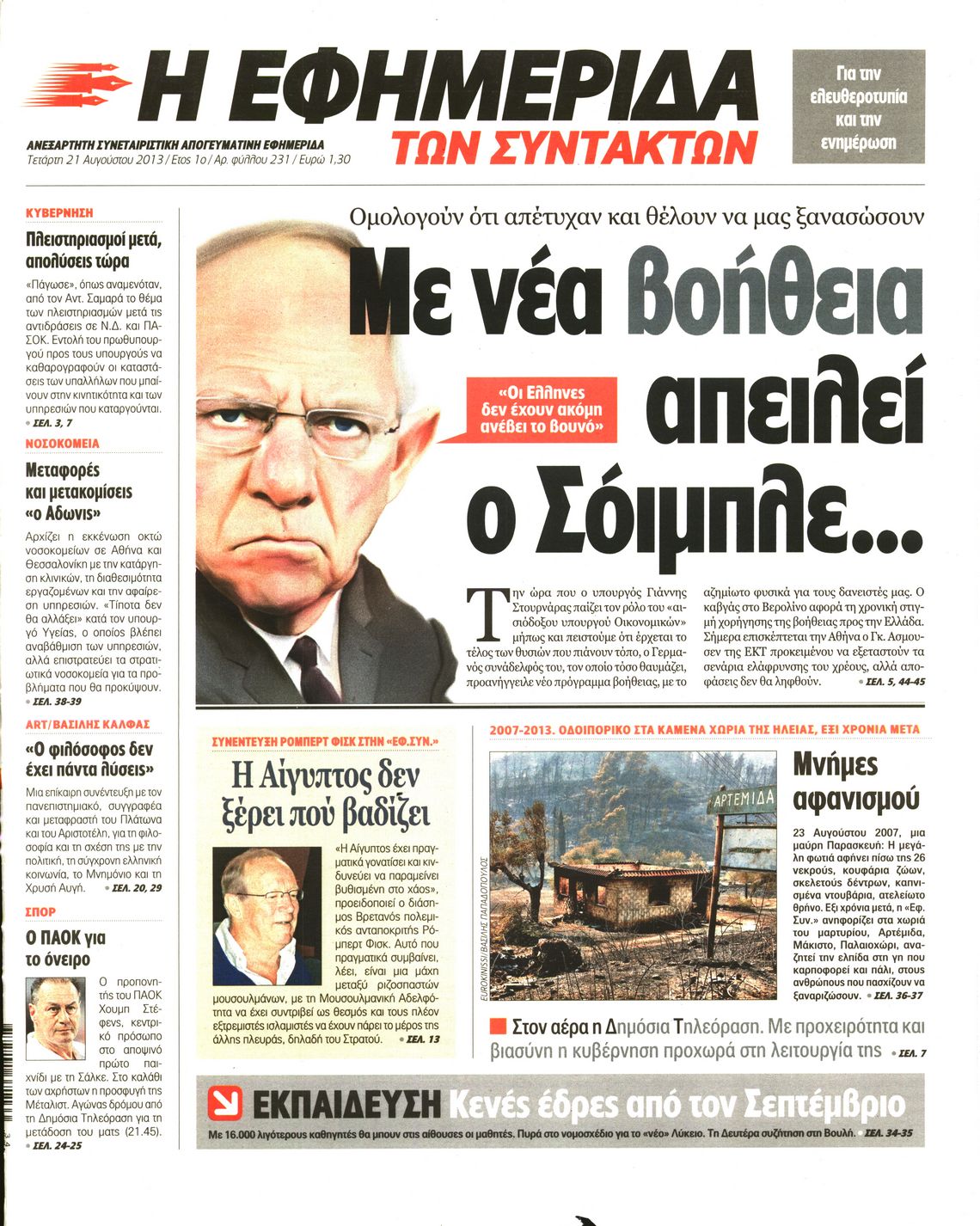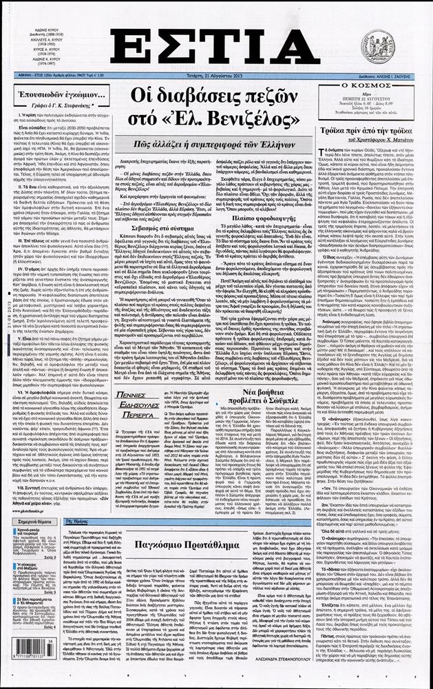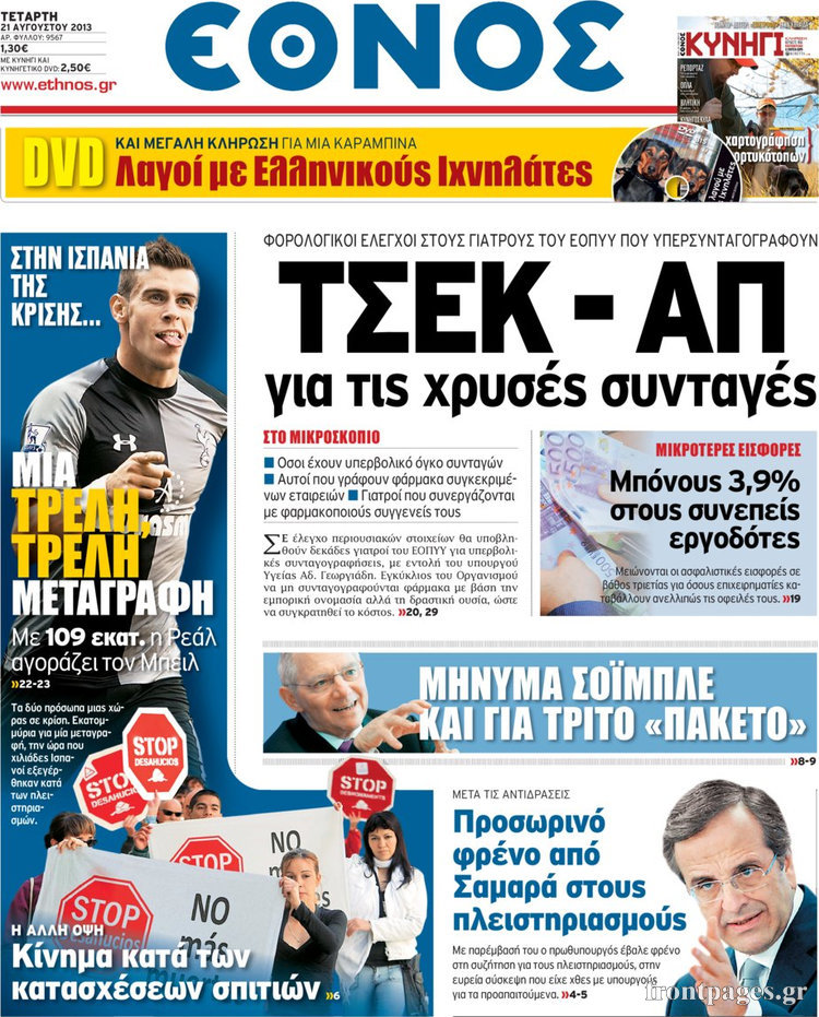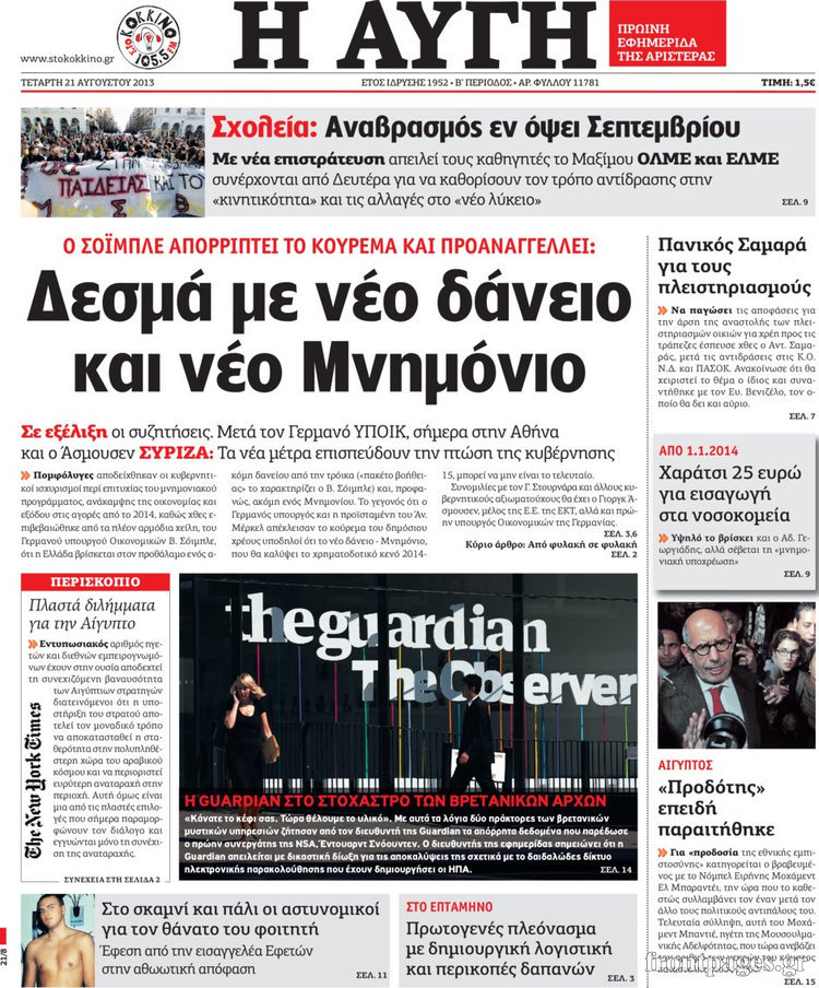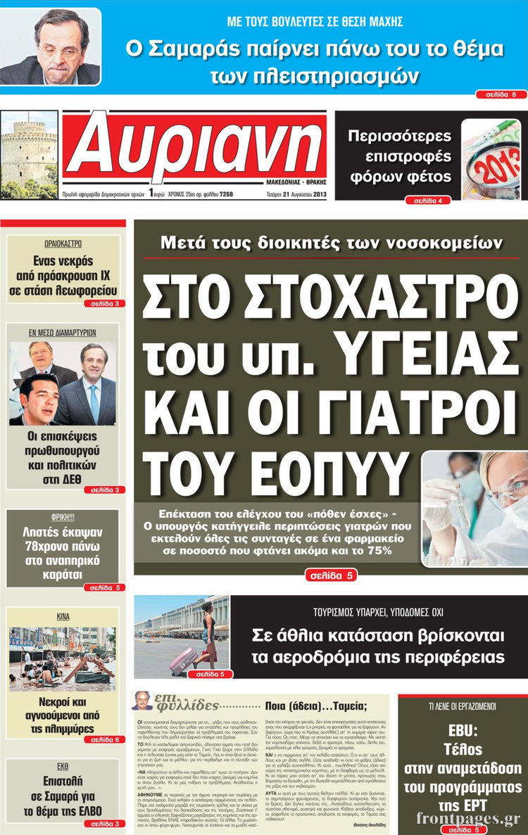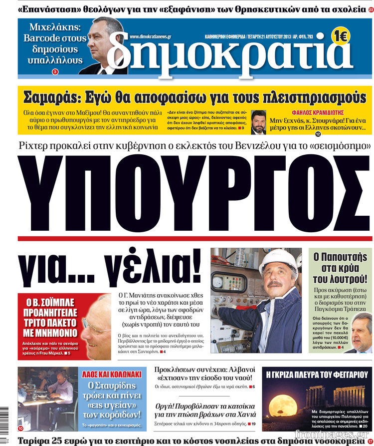 Οι πολιτικές εφημερίδες Enikos Newsroom 08:21, Τετάρτη 21 Αυγούστου 2013 Media Οι πολιτικές εφημερίδες Διαβάστε τα πρωτοσέλιδα των πολιτικών εφημερίδων: ΕΦΗΜΕΡΙΔΕΣ ΠΟΛΙΤΙΚΕΣ ΕΦΗΜΕΡΙΔΕΣ ΠΡΩΤΟΣΕΛΙΔΑ Μοιράσου το: σχολίασε κι εσύ (0 σχόλια) Ακολουθήστε το enikos.gr στο Google News και μάθετε πρώτοι όλες τις ειδήσεις Δείτε όλες τις τελευταίες ειδήσεις από την Ελλάδα και τον Κόσμο στο enikos.gr Ειδήσεις Ροή Ειδήσεων 6 ώρες πριν Εκτός ευρωομάδας ΣΥΡΙΖΑ ο Νίκος Παππάς μετά την επίθεση στον δημοσιογράφο Νίκο Γιαννόπουλο – Η μήνυση και οι νέες δηλώσεις 7 ώρες πριν «Αγριεύουν» οι αγρότες: «Δεν συντρέχει λόγος συνάντησης με τον πρωθυπουργό» – Ώρα αποφάσεων στη σύσκεψη της Πέμπτης 7 ώρες πριν Κυψέλη: Χωρίς την οικογένειά της δίπλα της απολογήθηκε η 16χρονη – «Της είχε επιτεθεί κάποιος για να την βιάσει, φοβήθηκε και κυκλοφορούσε με μαχαίρι» 6 ώρες πριν Politico: Το πρόβλημα της Ευρώπης δεν είναι το Βέλγιο αλλά ο Ντόναλντ Τραμπ 8 ώρες πριν Αλεξανδρούπολη: Πολυοργανική ανεπάρκεια λόγω υποσιτισμού η αιτία θανάτου του 3χρονου αγοριού 6 ώρες πριν Μυστήριο με τεράστιες κυκλικές πέτρες 200 κιλών – Ανακαλύφθηκαν τυχαία κατά τη διάρκεια οδικών έργων και κανείς δεν ξέρει από πού προέρχονται 7 ώρες πριν Ύπνος: Ειδικός εξηγεί τον πραγματικό λόγο που ξυπνάτε στις 4 τα ξημερώματα – Ο ρόλος των ορμονών και του κιρκάδιου ρυθμού 8 ώρες πριν Αριθμολογία: Οι άνθρωποι που έχουν γεννηθεί αυτές τις 4 ημερομηνίες, είναι τρυφεροί και αγαπούν ανιδιοτελώς 20 ώρες πριν 20 χρόνια τα Χριστούγεννα ξεκινούν στα Public με μεγάλη ποικιλία σε δώρα! 1 λεπτό πριν Το Ποντίκι σήμερα Πέμπτη 18/12/2025 5 λεπτά πριν Εφημερεύοντα φαρμακεία σε Αθήνα και Θεσσαλονίκη (18/12) 8 λεπτά πριν Αλεξάνδρα Ούστα: «Αυτό που με τρέλανε στον σύζυγό μου ήταν η ορθολογική του σκέψη» 15 λεπτά πριν Μιχάλης Αεράκης: «Της είπα “θέλω να κάνουμε σπιτικό, αλλά υπάρχουν τρεις προϋποθέσεις…”» 23 λεπτά πριν Αυστραλία: Κυβερνητική δέσμευση για αυστηρότερα μέτρα κατά της υποκίνησης μίσους ENIKOS NETWORK Αϋπνία: Το κόλπο που θα σας βοηθήσει να κοιμηθείτε απόψε – Είναι απλό και έχει αποτέλεσμα 2,6 εκατομμύρια πολίτες έχουν ήδη εμβολιαστεί κατά της γρίπης ΕΛΣΤΑΤ: Τι δείχνουν τα νέα στοιχεία για τις ηλεκτρονικές παραγγελίες των επιχειρήσεων ΚΕΠΕ: Οι 3 διακριτές συμβολές των ΜμΕ και της μεταποίησης στην ελληνική οικονομία Χαρτογραφώντας το «σημείο χωρίς επιστροφή»: Για πρώτη φορά αποκαλύπτεται με λεπτομέρεια το ακανθώδες όριο της ατμόσφαιρας τ... Η Google καταργεί τη λειτουργία «dark web report» – Πώς θα μπορούν οι χρήστες να διαγράφουν τα δεδομένα τους περισσότερα 05:22 , Πέμπτη 18 Δεκεμβρίου 2025 Το Ποντίκι σήμερα Πέμπτη 18/12/2025 Διαβάστε το πρωτοσέλιδο της εφημερίδας «Το Ποντίκι» σήμερα 18/12/2025. 02:30 , Πέμπτη 18 Δεκεμβρίου 2025 Αλ Τσαντίρι Νιουζ: Η κόρη της Πάολα στο κοινό – Η ατάκα Λαζόπουλου που την έκανε να «κοκκινήσει» Γιορτινή διάθεση και ευχάριστες στιγμές γέμισε η αποψινή, τελευταία για το 2025, εκπομπή του «... 22:24 , Τετάρτη 17 Δεκεμβρίου 2025 Το Σπίτι Δίπλα Στο Ποτάμι: Σε κίνδυνο η υγεία του Απόστολου – Τι θα δούμε απόψε “Το Σπίτι Δίπλα στο Ποτάμι” ξετυλίγει το νήμα της ζωής των πέντε αδελφών με καταισ... 21:14 , Τετάρτη 17 Δεκεμβρίου 2025 Παιχνίδια Εκδίκησης: Θα καταφέρει ο Χρήστος να κλονίσει την εμπιστοσύνη της Μάγιας απέναντι στον Άγη; Τα «Παιχνίδια Εκδίκησης» έρχονται απόψε στις 22:30, στον Αντ1, με το τελευταίο επεισόδιο της χ... ΤΕΛΕΥΤΑΙΕΣ ΕΙΔΗΣΕΙΣ 5 λεπτά πριν Εφημερεύοντα φαρμακεία σε Αθήνα και 