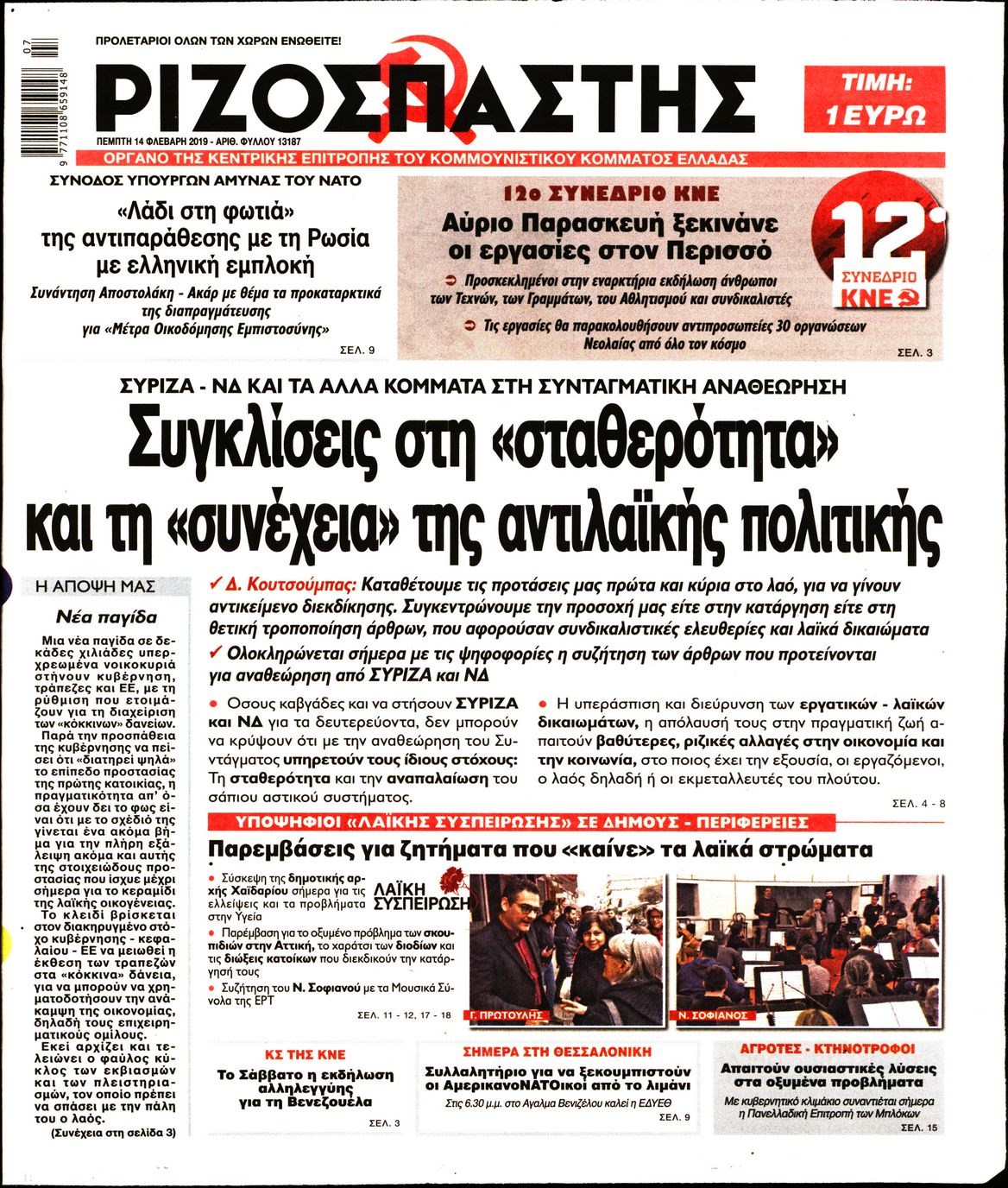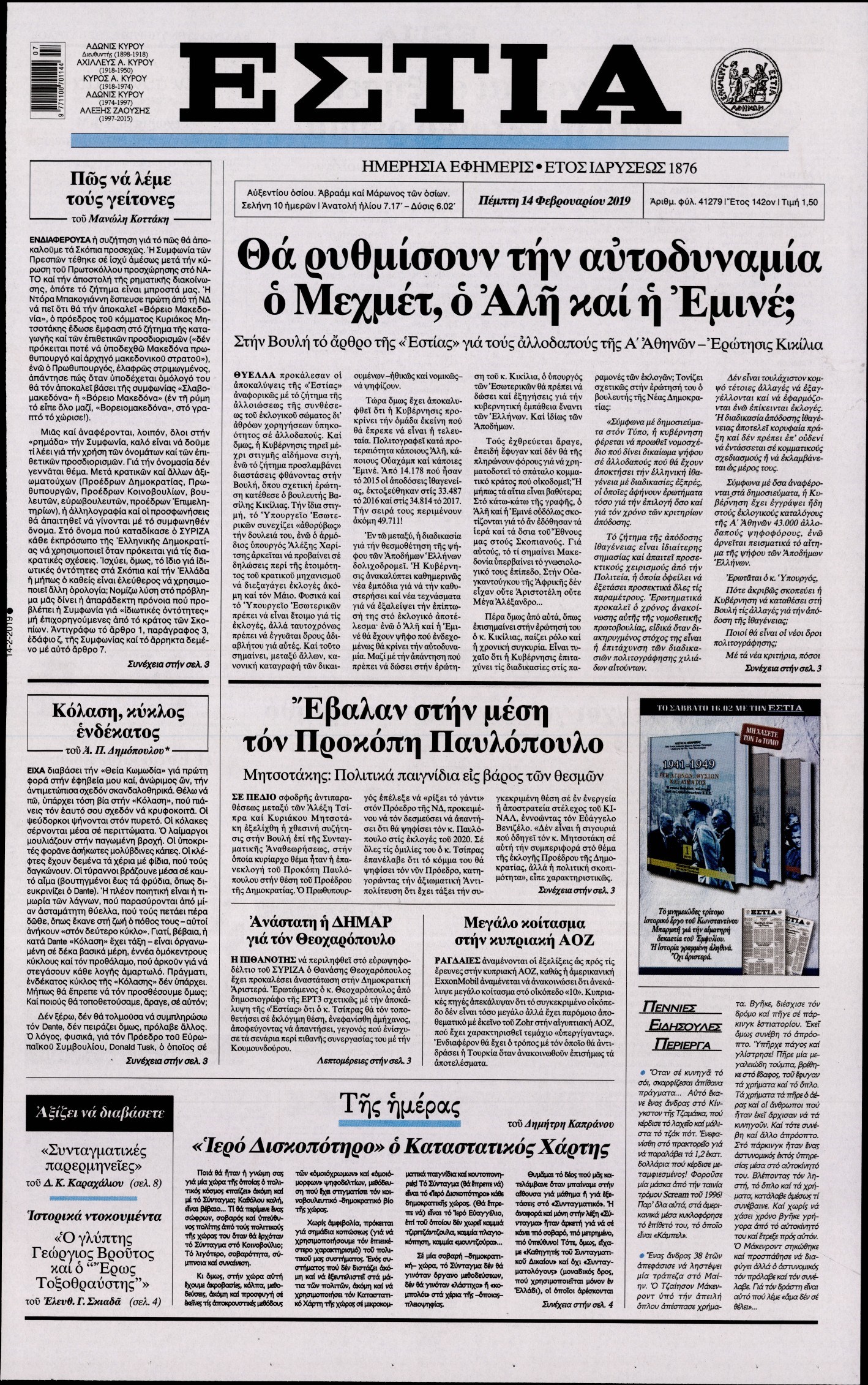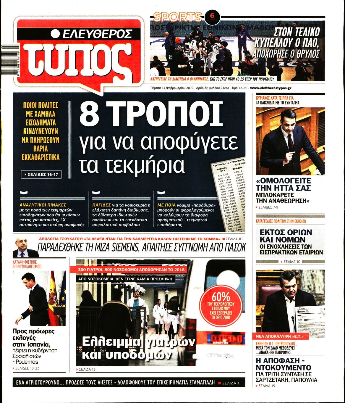 Οι πολιτικές εφημερίδες 14/2/19 Enikos Newsroom 06:41, Πέμπτη 14 Φεβρουαρίου 2019 Media Διαβάστε τα πρωτοσέλιδα των πολιτικών εφημερίδων: ΠΟΛΙΤΙΚΕΣ ΕΦΗΜΕΡΙΔΕΣ ΠΡΩΤΟΣΕΛΙΔΑ Μοιράσου το: σχολίασε κι εσύ (0 σχόλια) Ακολουθήστε το enikos.gr στο Google News και μάθετε πρώτοι όλες τις ειδήσεις Δείτε όλες τις τελευταίες ειδήσεις από την Ελλάδα και τον Κόσμο στο enikos.gr Ειδήσεις Ροή Ειδήσεων 4 ώρες πριν Χριστούγεννα στα μπλόκα οι αγρότες: Άνοιξαν στα διόδια και μοίρασαν προϊόντα στους πολίτες – Νέα σύσκεψη την Κυριακή στη Νίκαια 4 ώρες πριν Κύκλωμα διακίνησης ναρκωτικών σε σχολεία: Τηλεφωνούσαν στους ανηλίκους την ώρα του μαθήματος – Οι διάλογοι-σοκ, τα «ψευδώνυμα» και τα βασανιστήρια 4 ώρες πριν Αρχεία Επστάιν: Οι 500 σελίδες που λείπουν, τα αναπάντητα ερωτήματα και οι επώνυμοι – Τι έπεται 5 ώρες πριν Ζελένσκι: Μόνο οι ΗΠΑ και ο Τραμπ μπορούν να πιέσουν τη Ρωσία να βάλει τέλος στον πόλεμο 6 ώρες πριν Φοινικούντα: Προφυλακιστέος ο 30χρονος για συνέργεια στη διπλή δολοφονία – Και άλλα πρόσωπα στο «μικροσκόπιο» 3 ώρες πριν Αποκαλύφθηκε το άγνωστο «GPS» της αρχαιότητας – Πώς οι ναοί «φώτιζαν» τον δρόμο των ναυτικών πριν από την εφεύρεση των φάρων 4 ώρες πριν Ύπνος: Η διατροφή που μπορεί να σας βοηθήσει να κοιμάστε καλύτερα και να ζήσετε περισσότερο 5 ώρες πριν Αριθμολογία: Ο αριθμός του φύλακα αγγέλου σας, με βάση τον μήνα γέννησής σας – «Έτσι σας στέλνει σημάδια το σύμπαν» 17 ώρες πριν Enerwave: Το νέο «ρεύμα» στη λιανική ενέργειας που αλλάζει την εμπειρία του καταναλωτή 12 λεπτά πριν Δυτική Όχθη: Δύο Παλαιστίνιοι νεκροί από σφαίρες του Ισραηλινού στρατού 27 λεπτά πριν Ένοχος ο 54χρονος «ερευνητής» που έταζε ότι θα εντοπίσει τον αγνοούμενο γιατρό από την Κρήτη – «Μας γέμισε φρούδες ελπίδες», λέει ο πατέρας του 33χρονου 42 λεπτά πριν Σεισμός 3,8 Ρίχτερ ανοιχτά της Αμοργού 57 λεπτά πριν Άννα Βίσση: Τα… Social Media «προσκύνησαν» την «απόλυτη» για την συναυλία της στο Καλλιμάρμαρο που προβλήθηκε από το Mega 1 ώρα πριν Φωτεινή Αθερίδου: «Προσπαθώ να είμαι κάθετη και αυστηρή σαν μαμά πια» ENIKOS NETWORK Οι γυναίκες αποκαλύπτουν το πιο ελκυστικό πράγμα που μπορεί να κάνει ένας άνδρας Ομορφιά και αντιγήρανση: Ειδικοί μιλούν για συσκευές περιποίησης του δέρματος «Πολεμική» προετοιμασία από την ευρωπαϊκή βιομηχανία ενέργειας – Η Eurelectric ζητεί «ομπρέλα» προστασίας για τις υποδομές Ακύρωση ΑΦΜ για απάτες – Ποιους βάζει στο στόχαστρο η ΑΑΔΕ Χαρτογραφώντας το «σημείο χωρίς επιστροφή»: Για πρώτη φορά αποκαλύπτεται με λεπτομέρεια το ακανθώδες όριο της ατμόσφαιρας τ... Η Google καταργεί τη λειτουργία «dark web report» – Πώς θα μπορούν οι χρήστες να διαγράφουν τα δεδομένα τους περισσότερα 01:30 , Κυριακή 21 Δεκεμβρίου 2025 Άννα Βίσση: Τα… Social Media «προσκύνησαν» την «απόλυτη» για την συναυλία της στο Καλλιμάρμαρο που προβλήθηκε από το Mega Την ημέρα των γενεθλίων της Άννας Βίσση, το MEGA τίμησε τη διαχρονική παρουσία της «απόλυτης Ε... 00:00 , Κυριακή 21 Δεκεμβρίου 2025 The Voice: Η επιστροφή της Έλενας Παπαρίζου και η ατάκα του Γιώργου Μαζωνάκη μετά τις καταγγελίες Στη φάση των Cross Battles Live μπήκε το The Voice, με την Έλενα Παπαρίζου να επιστρέφει στο π... 20:30 , Σάββατο 20 Δεκεμβρίου 2025 Αυτή την Κυριακή με τη Realnews: Instyle, μαζί Drive και Realnews Geopolitics Αυτή την Κυριακή με τη Realnews: Instyle, μαζί Drive και Realnews Geopolitics Instyle Η Άννα Ρ... 20:28 , Σάββατο 20 Δεκεμβρίου 2025 Ο ΑΝΤ1 γεμίζει τις γιορτές με μουσική – Ποιους καλλιτέχνες θα απολαύσουμε Φέτος στον ΑΝΤ1 γιορτάζουμε τις νύχτες μας παρέα 