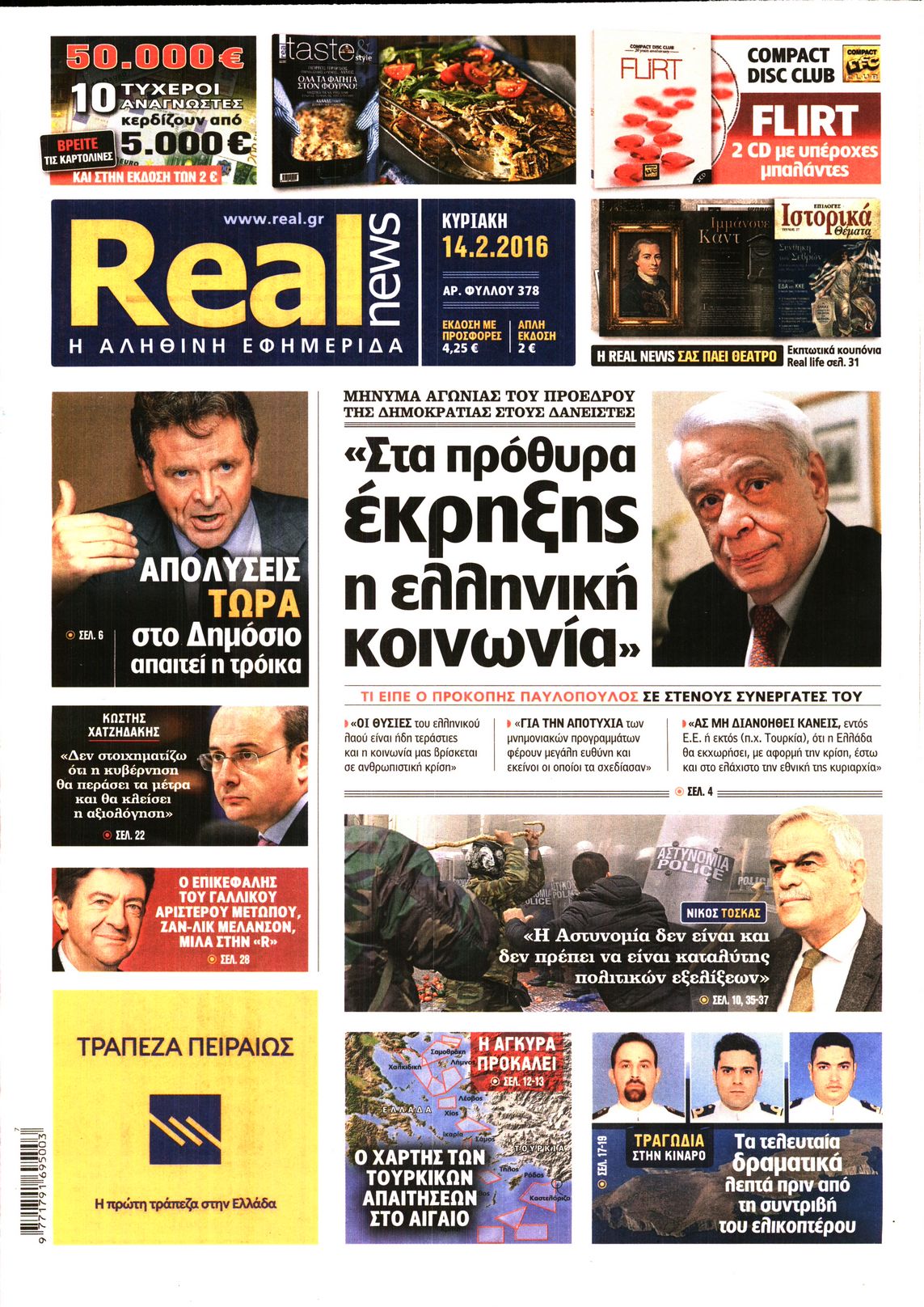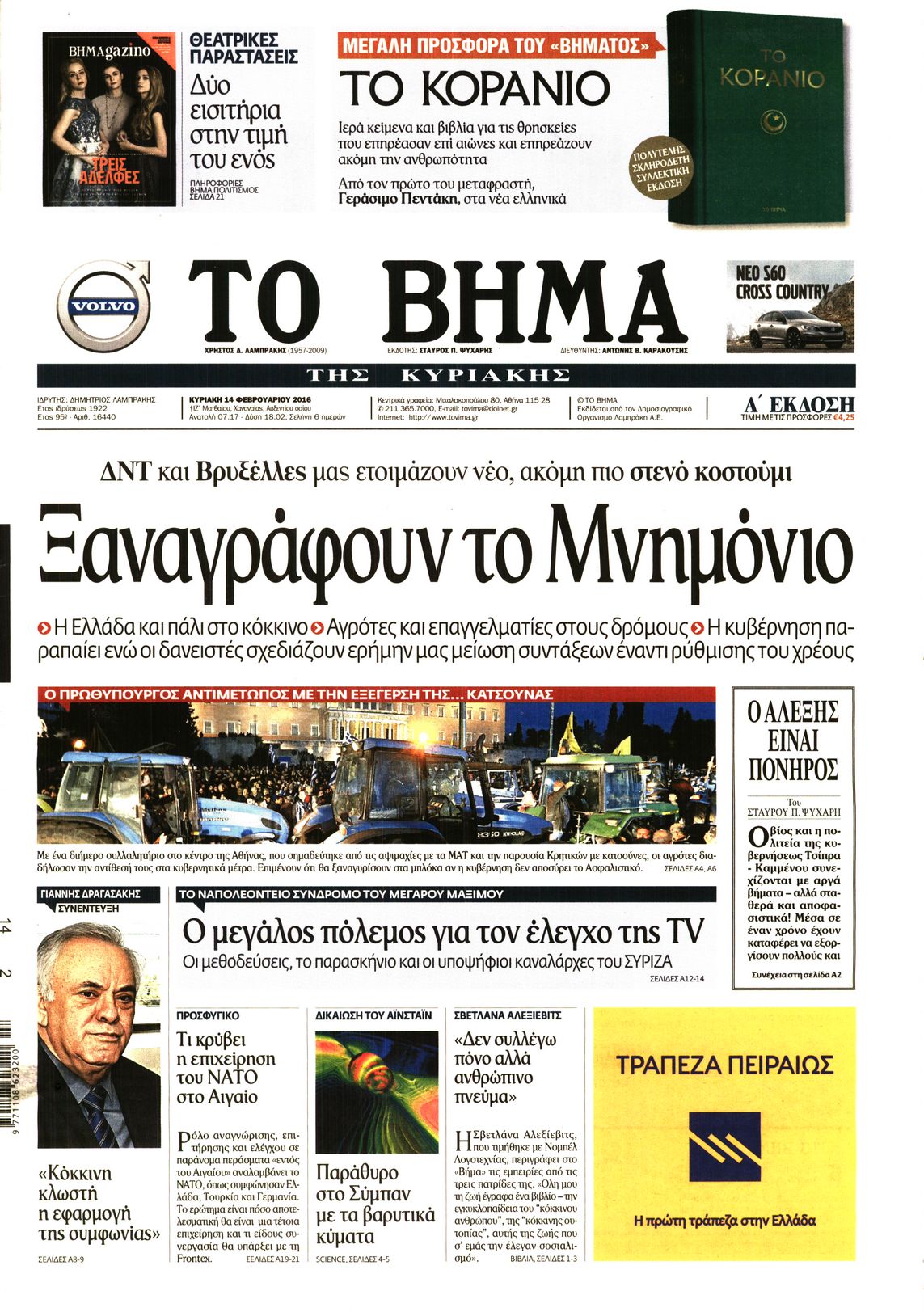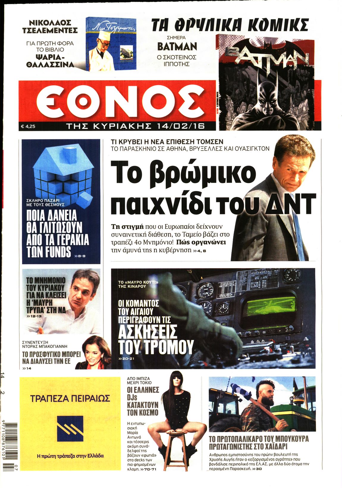 Οι πολιτικές εφημερίδες 14/2/2016 Enikos Newsroom 05:48, Κυριακή 14 Φεβρουαρίου 2016 Media Διαβάστε τα σημερινά πρωτοσέλιδα των πολιτικών εφημερίδων: Μοιράσου το: σχολίασε κι εσύ (0 σχόλια) Ακολουθήστε το enikos.gr στο Google News και μάθετε πρώτοι όλες τις ειδήσεις Δείτε όλες τις τελευταίες ειδήσεις από την Ελλάδα και τον Κόσμο στο enikos.gr Ειδήσεις Ροή Ειδήσεων 24 λεπτά πριν Τραμπ: Δεν αποκλείει την πιθανότητα ενός πολέμου στη Βενεζουέλα – «Ο Μαδούρο ξέρει καλύτερα από τον καθένα τι ακριβώς θέλω» 18 λεπτά πριν Ουκρανία: Η άνευ προηγουμένου επίθεση σε ρωσικό τάνκερ στη Μεσόγειο και το μήνυμα προς στον Πούτιν – Το «μακρύ χέρι» του Κιέβου 3 ώρες πριν Εμπλοκή και αερομαχίες με οπλισμένα τουρκικά F-16 στο Αιγαίο 3 ώρες πριν Πούτιν: «Ναι, είμαι ερωτευμένος» – Βίντεο από τη σπάνια προσωπική παραδοχή του 1 ώρα πριν Ανδρέας Λυκουρέντζος: Υπέβαλε την παραίτησή του ο πρόεδρος του ΕΛΓΑ, αλλά δεν έγινε δεκτή – Όλο το παρασκήνιο 2 ώρες πριν Αριθμολογία: Οι άνθρωποι που έχουν γεννηθεί αυτές τις 4 ημερομηνίες, συχνά παρεξηγούνται – «Η καλοσύνη τους κρύβει τεράστια δύναμη» 4 ώρες πριν Μήπως έχετε χάσει τον εαυτό σας στη σχέση σας; 7 «αθόρυβες» υποχωρήσεις που μάλλον κάνατε, χωρίς να το συνειδητοποιήσετε 3 ώρες πριν Ξεχάστε το καθάρισμα το Σαββατοκύριακο: Ο «κανόνας των 20 λεπτών» που θα σας λύσει τα χέρια 33 λεπτά πριν Ύπνος: Μια κρυφή κατάσταση του εγκεφάλου πριν από τον ύπνο μπορεί να είναι το “κλειδί” για υψηλή ευφυΐα και δημιουργικότητα 7 λεπτά πριν Χάρι και Μέγκαν: Η σπάνια οικογενειακή φωτογραφία με τον Άρτσι και τη Λίλιμπετ – Τι σχεδιάζουν για τα Χριστούγεννα 13 λεπτά πριν Βασίλης Καρράς: «Είναι πάντα δίπλα μου, δεν έφυγε…», λέει ο αδελφός του 18 λεπτά πριν Ουκρανία: Η άνευ προηγουμένου επίθεση σε ρωσικό τάνκερ στη Μεσόγειο και το μήνυμα προς στον Πούτιν – Το «μακρύ χέρι» του Κιέβου 24 λεπτά πριν Τραμπ: Δεν αποκλείει την πιθανότητα ενός πολέμου στη Βενεζουέλα – «Ο Μαδούρο ξέρει καλύτερα από τον καθένα τι ακριβώς θέλω» 25 λεπτά πριν Κηφισιά: Με πολλές απουσίες κόντρα στον Ολυμπιακό – «Last dance» για τον Τεττέη ENIKOS NETWORK Το ΕΚΑΒ τιμήθηκε από την Ακαδημία Αθηνών για τα 40 χρόνια προσφοράς του Έχετε πραγματικά μεγάλη καρδιά; 10 χαρακτηριστικά όσων έχουν καλοσύνη ΑΑΔΕ: Νέες αναβαθμίσεις στο Ψηφιακό Πελατολόγιο και την εφαρμογή myDATAapp – Τι πρέπει να γνωρίζετε Όμιλος ΔΕΗ: Νέα ορόσημα και ενισχυμένη διαφάνεια στην ετήσια Έκθεση Βιώσιμης Ανάπτυξης Χαρτογραφώντας το «σημείο χωρίς επιστροφή»: Για πρώτη φορά αποκαλύπτεται με λεπτομέρεια το ακανθώδες όριο της ατμόσφαιρας τ... Η Google καταργεί τη λειτουργία «dark web report» – Πώς θα μπορούν οι χρήστες να διαγράφουν τα δεδομένα τους περισσότερα 20:37 , Παρασκευή 19 Δεκεμβρίου 2025 Don’t Forget The Lyrics: Η Έλλη Κοκκίνου υποδέχεται 4 παίκτες που θα κάνουν τα πάντα για να μη χάσουν ούτε… μισή λέξη από τους στίχους Το «Don’t Forget The Lyrics» επιστρέφει απόψε, Παρασκευή 19 Δεκεμβρίου, στις 21:00 με νέο επει... 19:31 , Παρασκευή 19 Δεκεμβρίου 2025 GNTM: Απόψε ο μεγάλος τελικός για τους 4 φιναλίστ Έπειτα από μήνες γεμάτους μόδα, δημιουργία και έντονες αναμετρήσεις, το GNTM 2025 κορυφώνεται,... 18:11 , Παρασκευή 19 Δεκεμβρίου 2025 Το σόι σου: Ο Άρης έρχεται στην Ελλάδα για τις γιορτές των Χριστουγέννων – Τι θα δούμε στο αποψινό εορταστικό επεισόδιο Ένα απολαυστικό, εορταστικό επεισόδιο της σειράς “Το σόι σου”, γεμάτο ευτράπελα αλ... 15:15 , Παρασκευή 19 Δεκεμβρίου 2025 Την Κυριακή με τη Realnews: Ό,τι και αν αγοράσεις, σκανάρεις