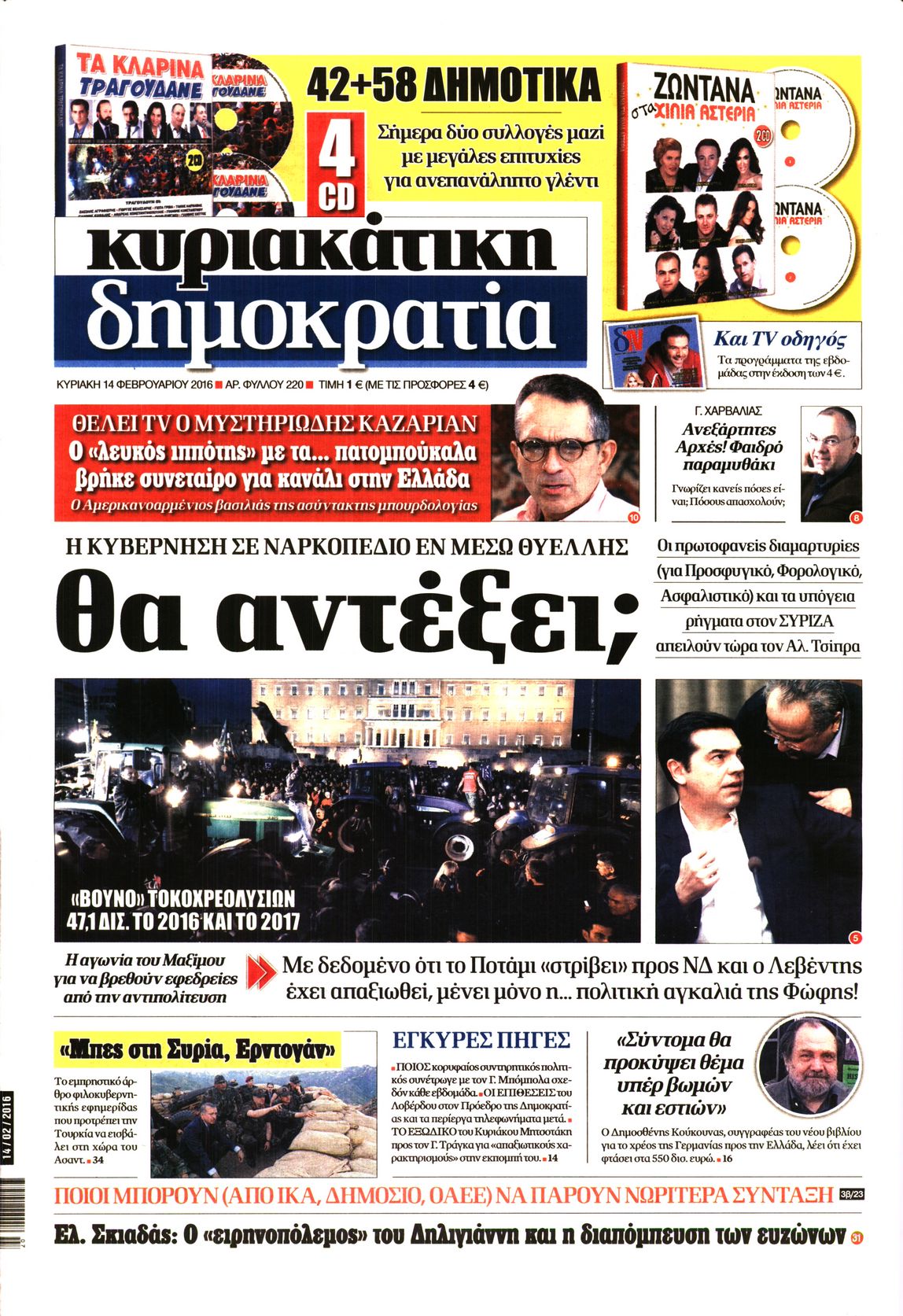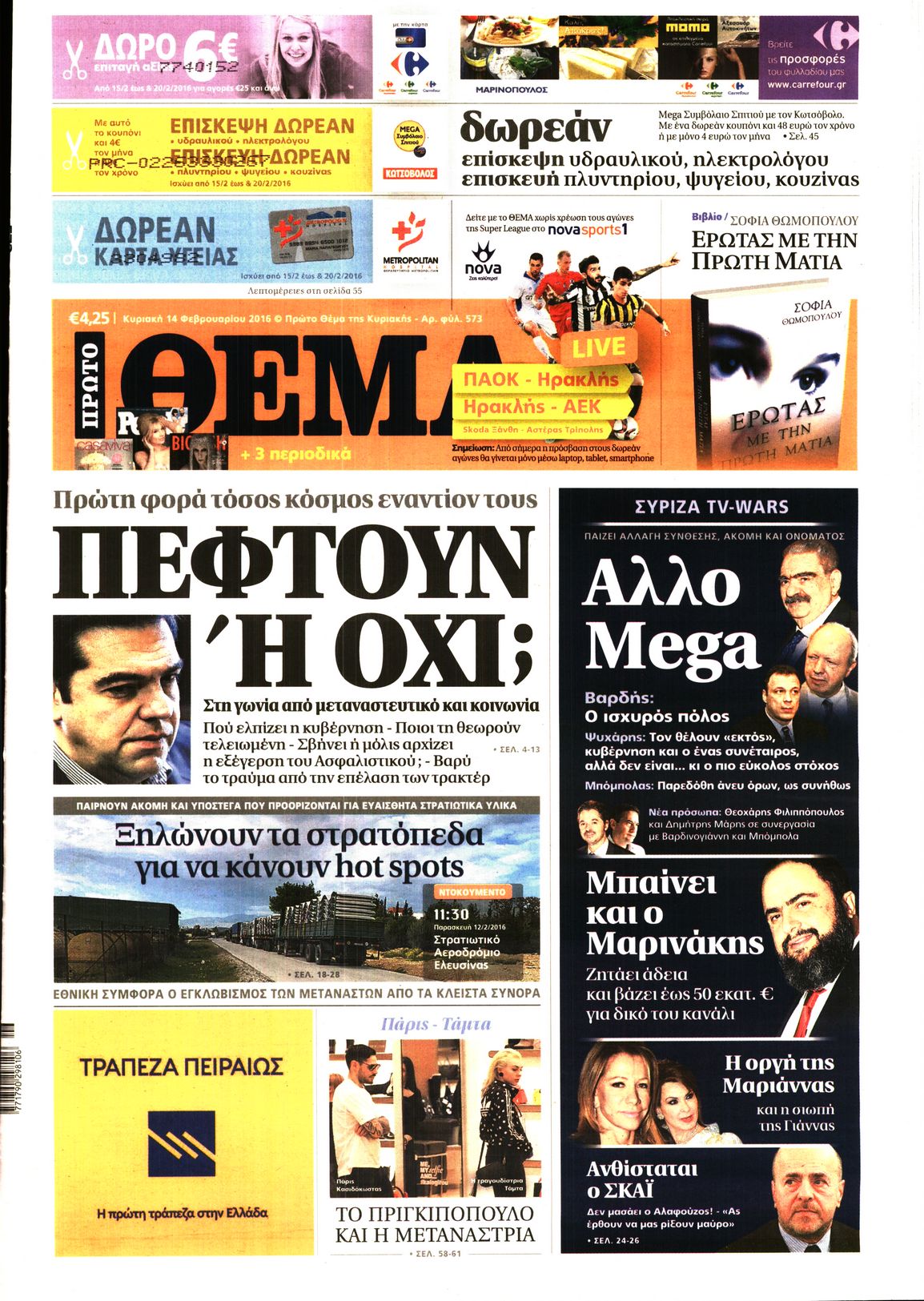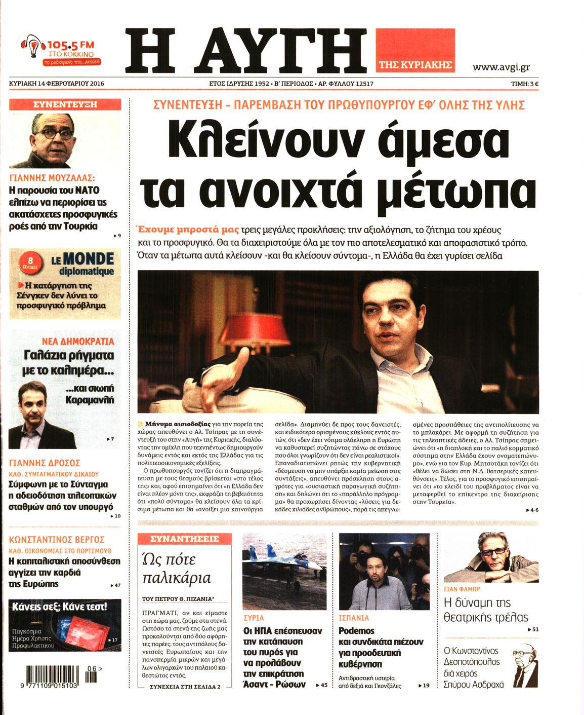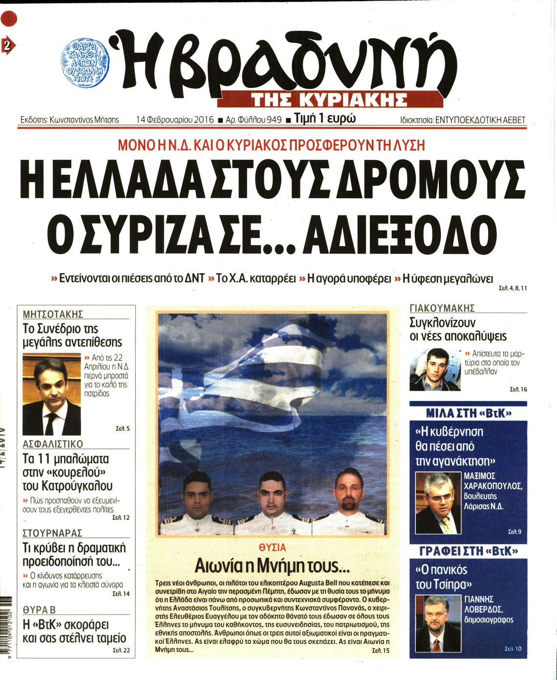 Οι πολιτικές εφημερίδες 14/2/2016 Enikos Newsroom 05:48, Κυριακή 14 Φεβρουαρίου 2016 Media Διαβάστε τα σημερινά πρωτοσέλιδα των πολιτικών εφημερίδων: Μοιράσου το: σχολίασε κι εσύ (0 σχόλια) Ακολουθήστε το enikos.gr στο Google News και μάθετε πρώτοι όλες τις ειδήσεις Δείτε όλες τις τελευταίες ειδήσεις από την Ελλάδα και τον Κόσμο στο enikos.gr Ειδήσεις Ροή Ειδήσεων 24 λεπτά πριν Τραμπ: Δεν αποκλείει την πιθανότητα ενός πολέμου στη Βενεζουέλα – «Ο Μαδούρο ξέρει καλύτερα από τον καθένα τι ακριβώς θέλω» 18 λεπτά πριν Ουκρανία: Η άνευ προηγουμένου επίθεση σε ρωσικό τάνκερ στη Μεσόγειο και το μήνυμα προς στον Πούτιν – Το «μακρύ χέρι» του Κιέβου 3 ώρες πριν Εμπλοκή και αερομαχίες με οπλισμένα τουρκικά F-16 στο Αιγαίο 3 ώρες πριν Πούτιν: «Ναι, είμαι ερωτευμένος» – Βίντεο από τη σπάνια προσωπική παραδοχή του 1 ώρα πριν Ανδρέας Λυκουρέντζος: Υπέβαλε την παραίτησή του ο πρόεδρος του ΕΛΓΑ, αλλά δεν έγινε δεκτή – Όλο το παρασκήνιο 2 ώρες πριν Αριθμολογία: Οι άνθρωποι που έχουν γεννηθεί αυτές τις 4 ημερομηνίες, συχνά παρεξηγούνται – «Η καλοσύνη τους κρύβει τεράστια δύναμη» 4 ώρες πριν Μήπως έχετε χάσει τον εαυτό σας στη σχέση σας; 7 «αθόρυβες» υποχωρήσεις που μάλλον κάνατε, χωρίς να το συνειδητοποιήσετε 3 ώρες πριν Ξεχάστε το καθάρισμα το Σαββατοκύριακο: Ο «κανόνας των 20 λεπτών» που θα σας λύσει τα χέρια 33 λεπτά πριν Ύπνος: Μια κρυφή κατάσταση του εγκεφάλου πριν από τον ύπνο μπορεί να είναι το “κλειδί” για υψηλή ευφυΐα και δημιουργικότητα 7 λεπτά πριν Χάρι και Μέγκαν: Η σπάνια οικογενειακή φωτογραφία με τον Άρτσι και τη Λίλιμπετ – Τι σχεδιάζουν για τα Χριστούγεννα 13 λεπτά πριν Βασίλης Καρράς: «Είναι πάντα δίπλα μου, δεν έφυγε…», λέει ο αδελφός του 18 λεπτά πριν Ουκρανία: Η άνευ προηγουμένου επίθεση σε ρωσικό τάνκερ στη Μεσόγειο και το μήνυμα προς στον Πούτιν – Το «μακρύ χέρι» του Κιέβου 24 λεπτά πριν Τραμπ: Δεν αποκλείει την πιθανότητα ενός πολέμου στη Βενεζουέλα – «Ο Μαδούρο ξέρει καλύτερα από τον καθένα τι ακριβώς θέλω» 25 λεπτά πριν Κηφισιά: Με πολλές απουσίες κόντρα στον Ολυμπιακό – «Last dance» για τον Τεττέη ENIKOS NETWORK Το ΕΚΑΒ τιμήθηκε από την Ακαδημία Αθηνών για τα 40 χρόνια προσφοράς του Έχετε πραγματικά μεγάλη καρδιά; 10 χαρακτηριστικά όσων έχουν καλοσύνη ΑΑΔΕ: Νέες αναβαθμίσεις στο Ψηφιακό Πελατολόγιο και την εφαρμογή myDATAapp – Τι πρέπει να γνωρίζετε Όμιλος ΔΕΗ: Νέα ορόσημα και ενισχυμένη διαφάνεια στην ετήσια Έκθεση Βιώσιμης Ανάπτυξης Χαρτογραφώντας το «σημείο χωρίς επιστροφή»: Για πρώτη φορά αποκαλύπτεται με λεπτομέρεια το ακανθώδες όριο της ατμόσφαιρας τ... Η Google καταργεί τη λειτουργία «dark web report» – Πώς θα μπορούν οι χρήστες να διαγράφουν τα δεδομένα τους περισσότερα 20:37 , Παρασκευή 19 Δεκεμβρίου 2025 Don’t Forget The Lyrics: Η Έλλη Κοκκίνου υποδέχεται 4 παίκτες που θα κάνουν τα πάντα για να μη χάσουν ούτε… μισή λέξη από τους στίχους Το «Don’t Forget The Lyrics» επιστρέφει απόψε, Παρασκευή 19 Δεκεμβρίου, στις 21:00 με νέο επει... 19:31 , Παρασκευή 19 Δεκεμβρίου 2025 GNTM: Απόψε ο μεγάλος τελικός για τους 4 φιναλίστ Έπειτα από μήνες γεμάτους μόδα, δημιουργία και έντονες αναμετρήσεις, το GNTM 2025 κορυφώνεται,... 18:11 , Παρασκευή 19 Δεκεμβρίου 2025 Το σόι σου: Ο Άρης έρχεται στην Ελλάδα για τις γιορτές των Χριστουγέννων – Τι θα δούμε στο αποψινό εορταστικό επεισόδιο Ένα απολαυστικό, εορταστικό επεισόδιο της σειράς “Το σόι σου”, γεμάτο ευτράπελα αλ... 15:15 , Παρασκευή 19 Δεκεμβρίου 2025 Την Κυριακή με τη Realnews: Ό,τι και αν αγοράσεις, σκανάρεις