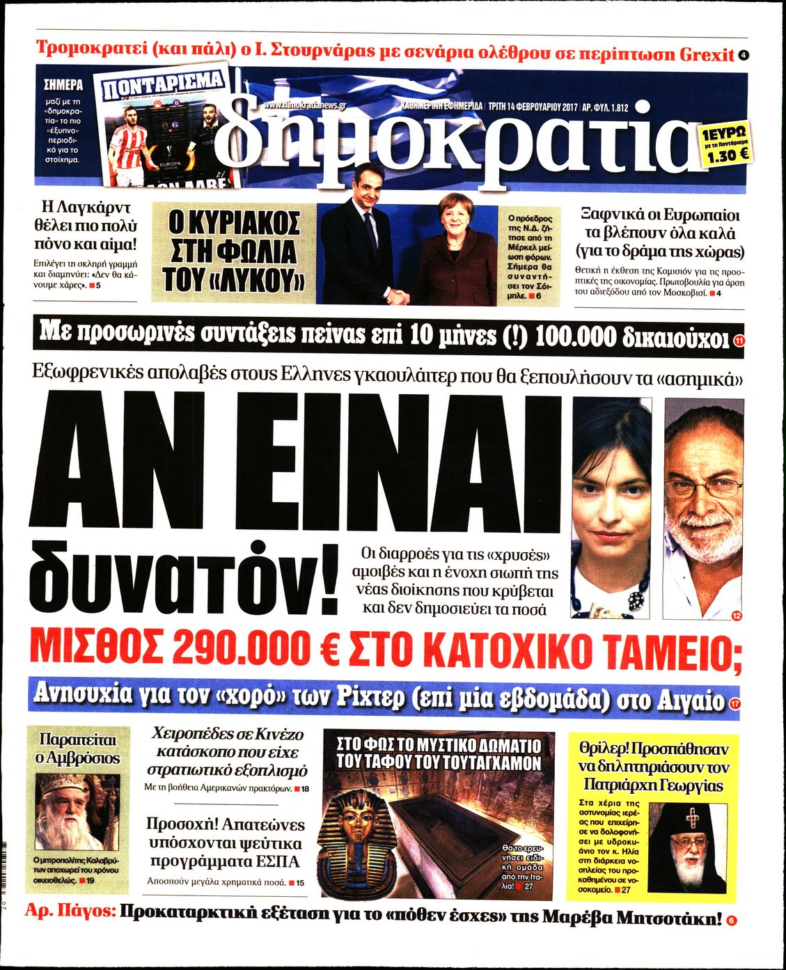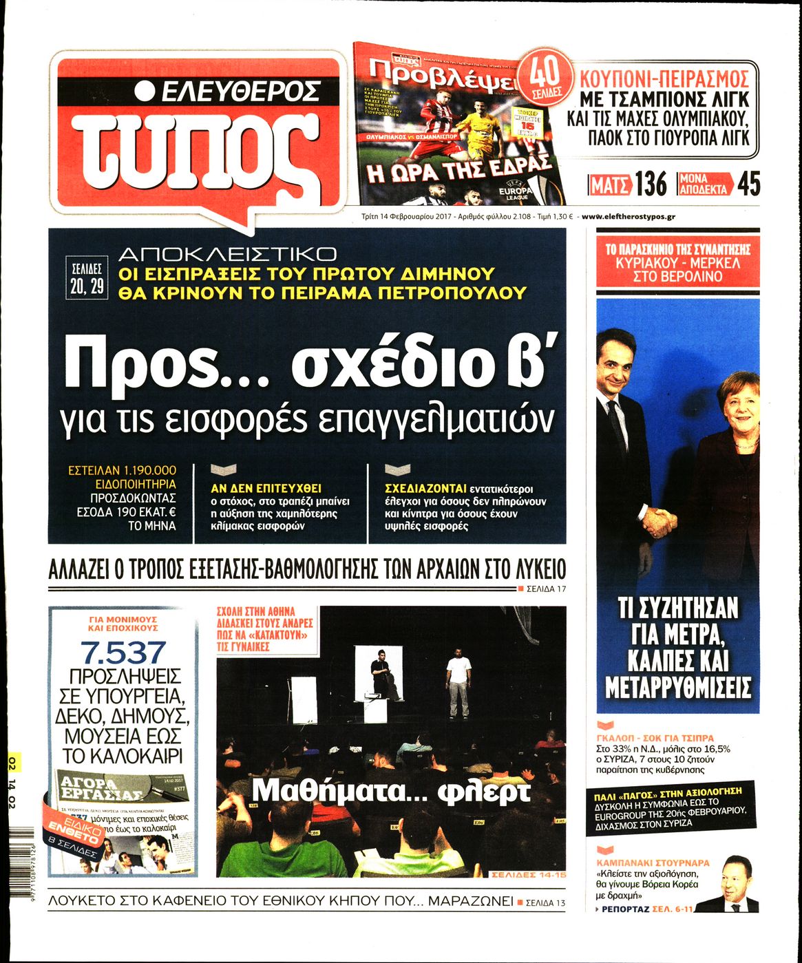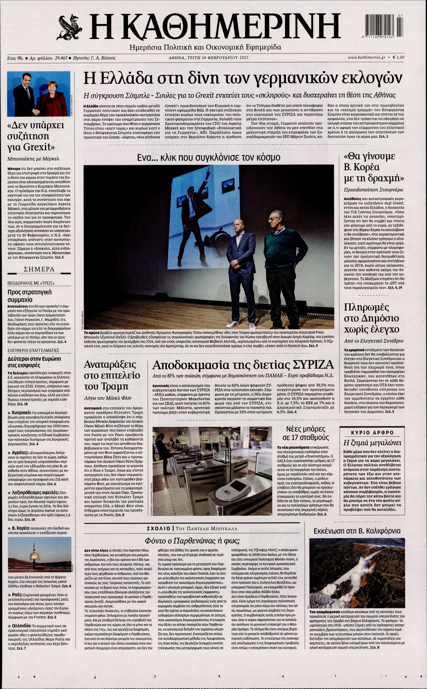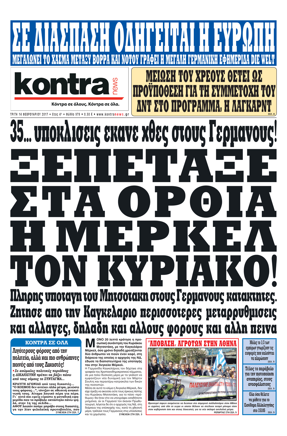 Οι πολιτικές εφημερίδες 14/2/2017 Enikos Newsroom 02:01, Τρίτη 14 Φεβρουαρίου 2017 Media Διαβάστε τα σημερινά πρωτοσέλιδα των πολιτικών εφημερίδων: ΠΟΛΙΤΙΚΕΣ ΕΦΗΜΕΡΙΔΕΣ ΠΡΩΤΟΣΕΛΙΔΑ Μοιράσου το: σχολίασε κι εσύ (0 σχόλια) Ακολουθήστε το enikos.gr στο Google News και μάθετε πρώτοι όλες τις ειδήσεις Δείτε όλες τις τελευταίες ειδήσεις από την Ελλάδα και τον Κόσμο στο enikos.gr Ειδήσεις Ροή Ειδήσεων 1 ώρα πριν Υπόθεση Έπσταϊν: Το Υπουργείο Δικαιοσύνης δημοσιοποίησε μια σειρά από εξαιρετικά επεξεργασμένα αρχεία – «Λείπουν τα πιο σημαντικά έγγραφα», λένε οι Δημοκρατικοί 31 λεπτά πριν Ο «χάρτης» με τις αυξήσεις και τις φοροελαφρύνσεις του 2026 – Ποιοι και πόσα κερδίζουν 11 ώρες πριν Χριστούγεννα στα μπλόκα: Επιμένουν στις κινητοποιήσεις τους οι αγρότες – Ανοίγουν τα διόδια το Σαββατοκύριακο 2 ώρες πριν ΟΝΕΧ – MEGATUGS: Ξεκίνησε η ναυπήγηση ρυμουλκών στην Ελλάδα – Προθάλαμος πολεμικών πλοίων – Δείτε φωτογραφίες και βίντεο 1 ώρα πριν Καιρός: Αλλαγή σκηνικού σήμερα με βροχές και πτώση της θερμοκρασίας – Οι προβλέψεις των μετεωρολόγων για τα Χριστούγεννα 3 ώρες πριν Αυγά: Πόσα μπορείτε να τρώτε την ημέρα με ασφάλεια για μέγιστη πρόσληψη πρωτεΐνης 4 ώρες πριν Τα ζώδια σήμερα, Σάββατο 20 Δεκεμβρίου: Παρθένοι, το σύμπαν σας δίνει το κλειδί 3 ώρες πριν Οπτική ψευδαίσθηση: Μόνο αν είσαι ο Σέρλοκ Χολμς θα βρεις τον αριθμό «87» σε 7 δευτερόλεπτα 1 ώρα πριν Αρχαιολόγοι ανακάλυψαν σε χωράφι απεικόνιση 600 ετών ενός Αγίου – Τα στοιχεία που δείχνουν ότι μαρτύρησε 3 λεπτά πριν Παιδική υπέρταση: Μια σιωπηλή απειλή που αυξάνεται διεθνώς 4 λεπτά πριν Αγχώνεται για το χριστουγεννιάτικο δώρο που πήρε στην πλούσια σύντροφό του – «Φοβάμαι πως θα το βρει φθηνιάρικο, φοράει βραχιόλια Cartier» 11 λεπτά πριν Enerwave: Το νέο «ρεύμα» στη λιανική ενέργειας που αλλάζει την εμπειρία του καταναλωτή 15 λεπτά πριν Γιώργος Μαζωνάκης: Τη Δευτέρα η μήνυση του τραγουδιστή κατά του 22χρονου 24 λεπτά πριν Αμαλία Κωστοπούλου: Το μήνυμα για το χειρουργείο στο γόνατο – «Αυτός ο τραυματισμός μού στέρησε πολλά…» ENIKOS NETWORK Πόσα κιλά παίρνουμε πραγματικά τα Χριστούγεννα, σύμφωνα με την επιστήμη – Πώς να το αποτρέψουμε; Το δημοφιλές ρόφημα που αυξάνει την πίεση πιο γρήγορα και από το αλάτι Mega χριστουγεννιάτικη φορολοταρία: «Κλείδωσε» η ημερομηνία για την κλήρωση – Ερωτήσεις και απαντήσεις Αναστολή μέτρων αναγκαστικής εκτέλεσης για κτηνοτρόφους που πλήττονται από την ευλογιά των αιγοπροβάτων Χαρτογραφώντας το «σημείο χωρίς επιστροφή»: Για πρώτη φορά αποκαλύπτεται με λεπτομέρεια το ακανθώδες όριο της ατμόσφαιρας τ... Η Google καταργεί τη λειτουργία «dark web report» – Πώς θα μπορούν οι χρήστες να διαγράφουν τα δεδομένα τους περισσότερα 08:14 , Σάββατο 20 Δεκεμβρίου 2025 Τρομεροί γονείς: Η Μαρία Καβογιάννη εισβάλλει στο σπίτι της οικογένειας Στεφανίδη Όσα θα δούμε στο νέο διπλό επεισόδιο της σειράς «Τρομεροί γονείς», σήμερα Σάββατο 20 Δεκεμβρίο... 05:48 , Σάββατο 20 Δεκεμβρίου 2025 Οι οικονομικές εφημερίδες 20/12/2025 Διαβάστε τα πρωτοσέλιδα από τις οικονομικές εφημερίδες, σήμερα 20/12/2025. 05:43 , Σάββατο 20 Δεκεμβρίου 2025 Οι αθλητικές εφημερίδες 20/12/2025 Διαβάστε τα πρωτοσέλιδα από τις αθλητικές εφημερίδες, σήμερα 20/12/2025. 05:38 , Σάββατο 20 Δεκεμβρίου 2025 Οι πολιτικές εφημερίδες 20/12/2025 Διαβάστε τα πρωτοσέλιδα από τις πολιτικές εφημερίδες, σήμερα 20/12/2025. ΤΕΛΕΥΤΑΙΕΣ ΕΙΔΗΣΕΙΣ 3 λεπτά πριν Παιδική υπέρταση: Μια σιωπηλή απειλή που αυξάνεται... 4 λεπτά πριν Αγχώνεται για το χριστουγ