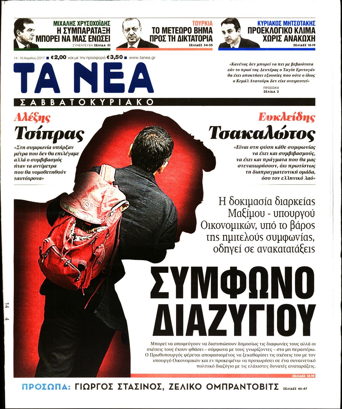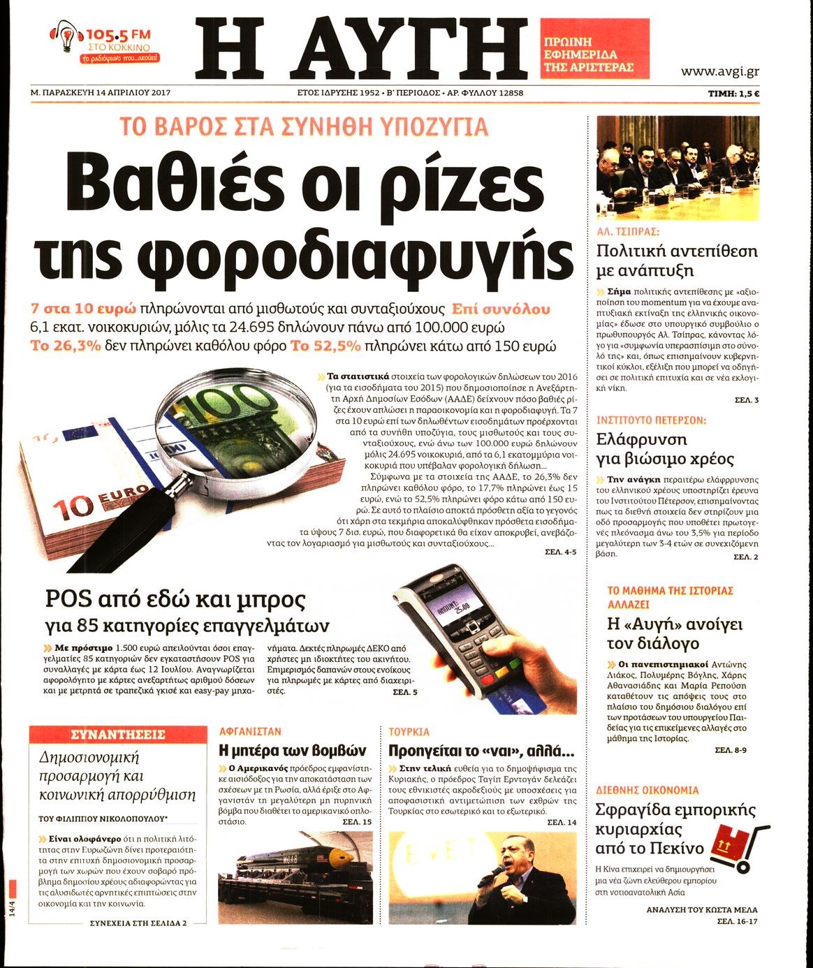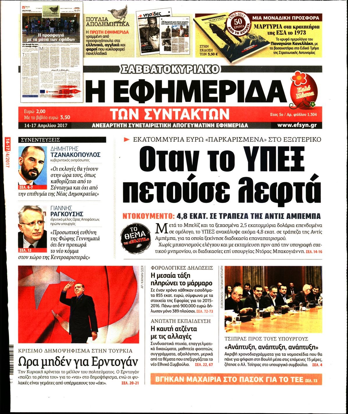 Οι πολιτικές εφημερίδες 14/4/2017
