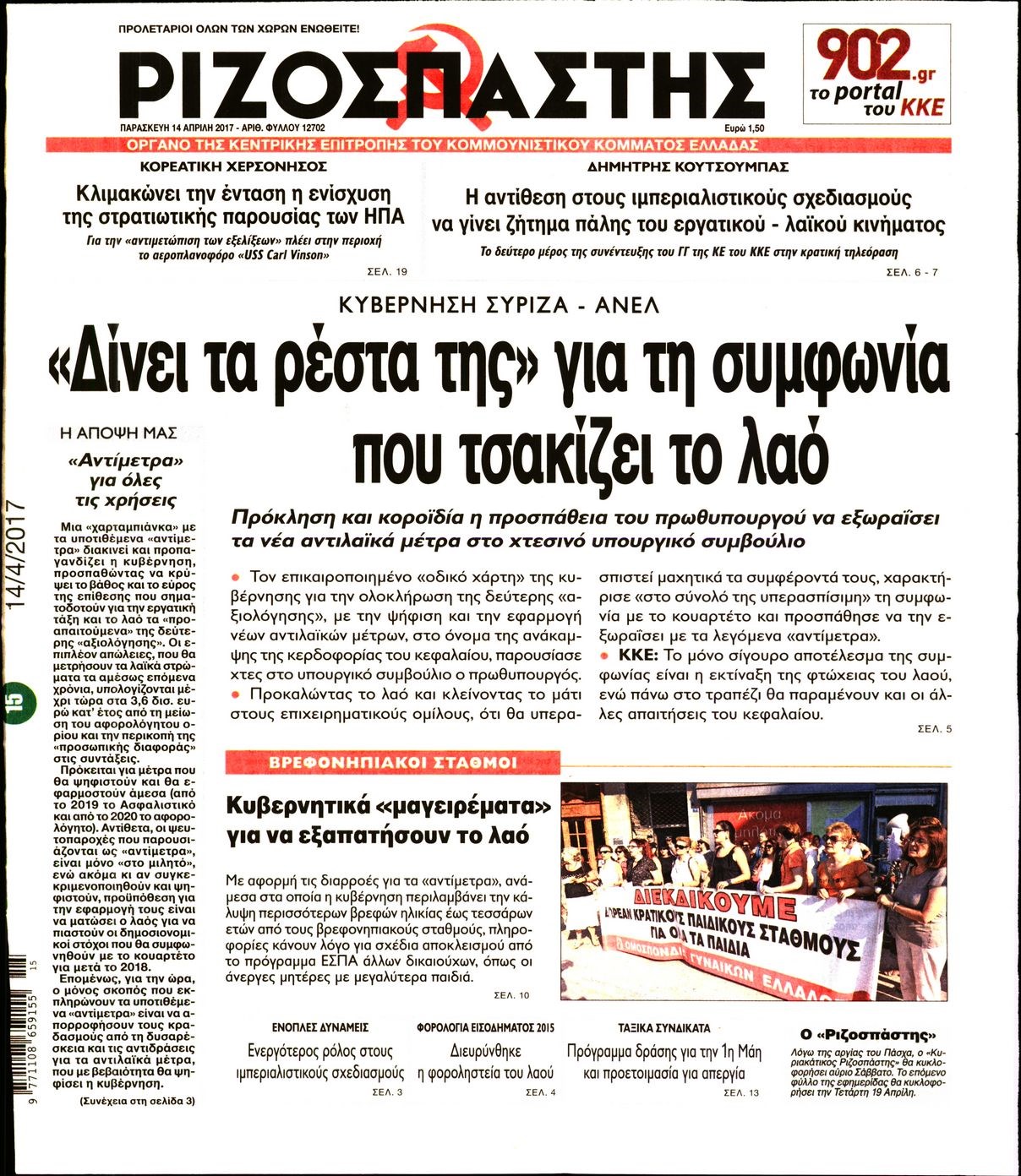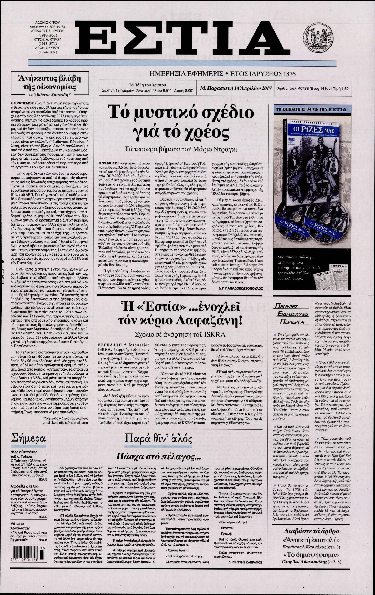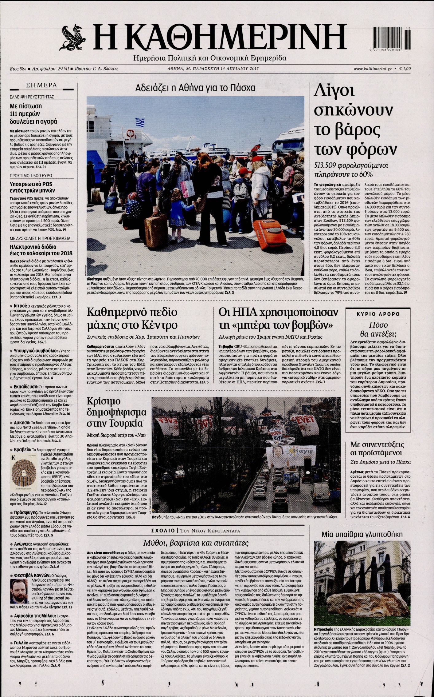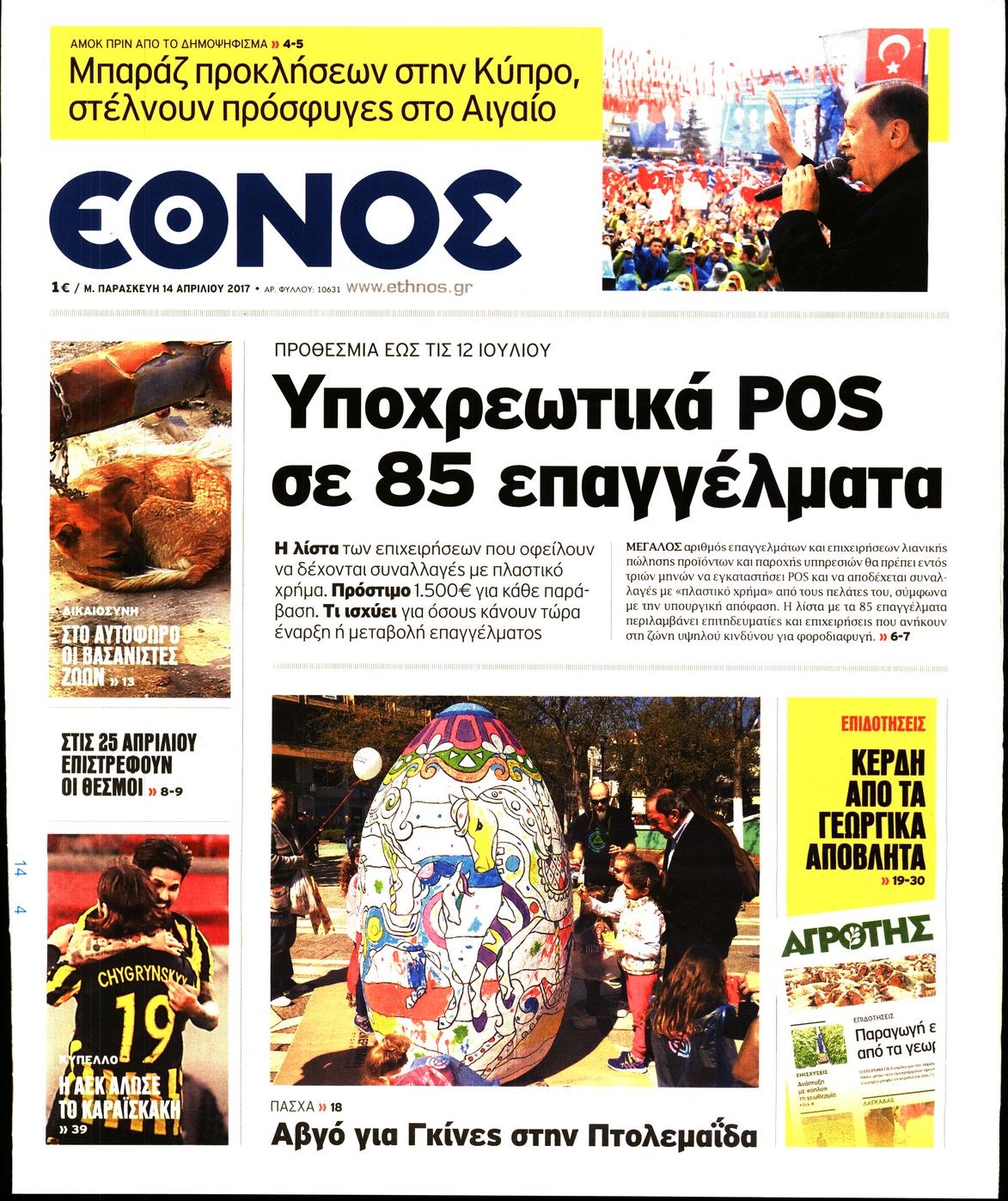 Οι πολιτικές εφημερίδες 14/4/2017