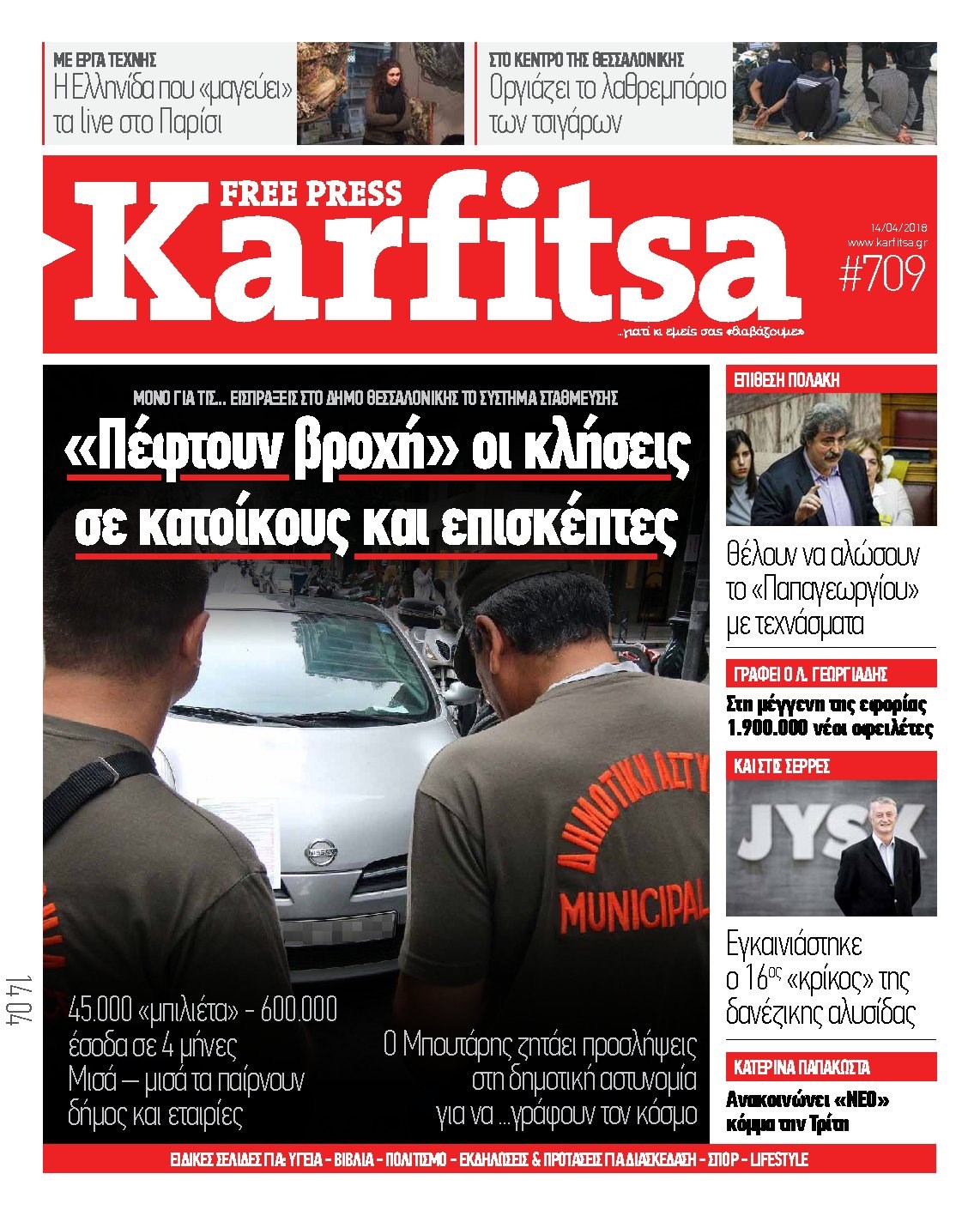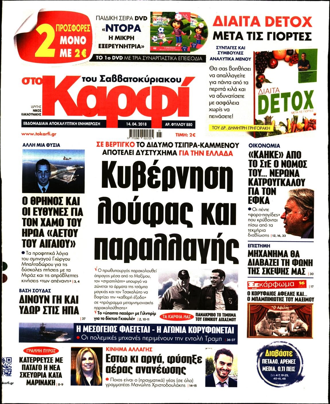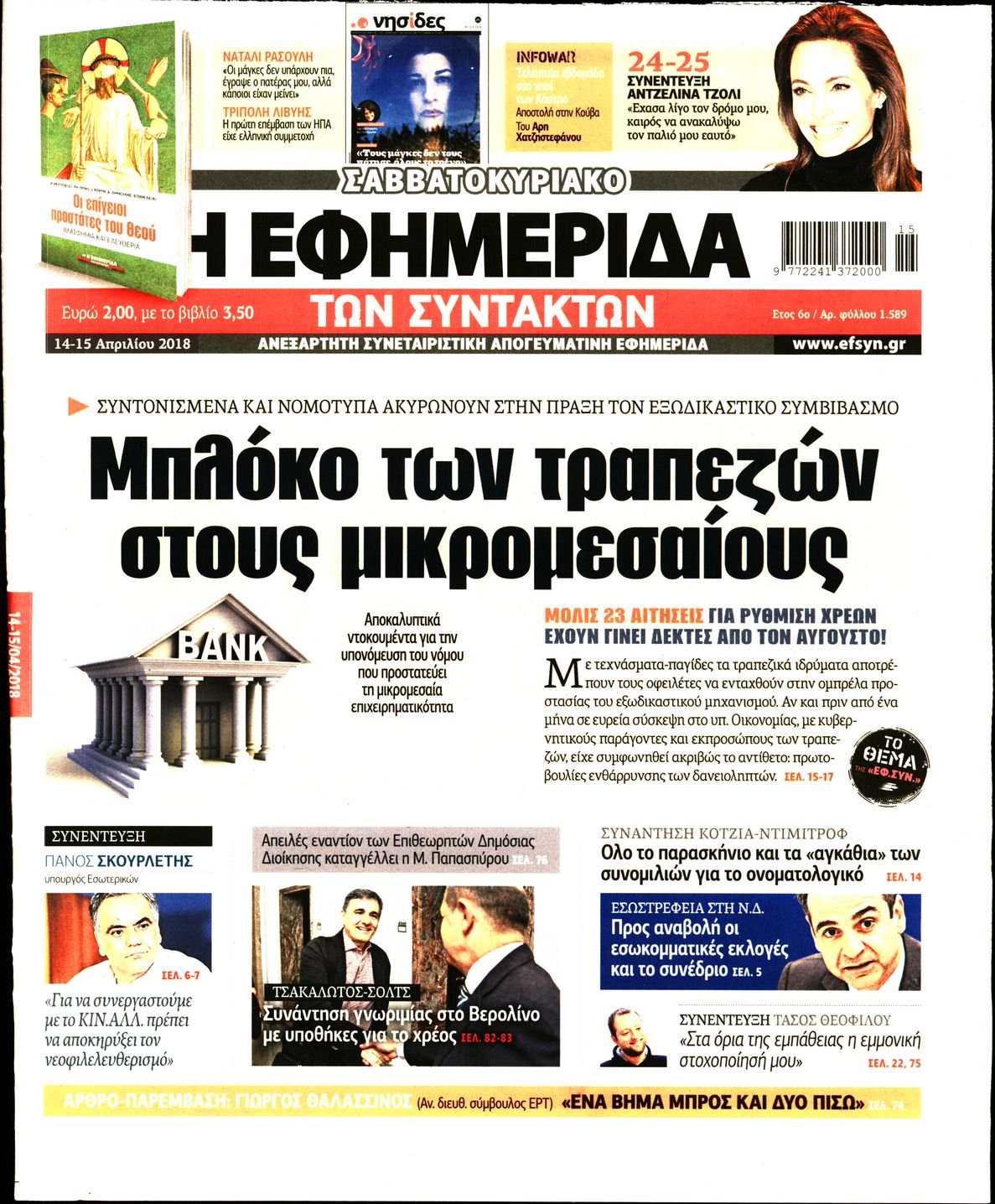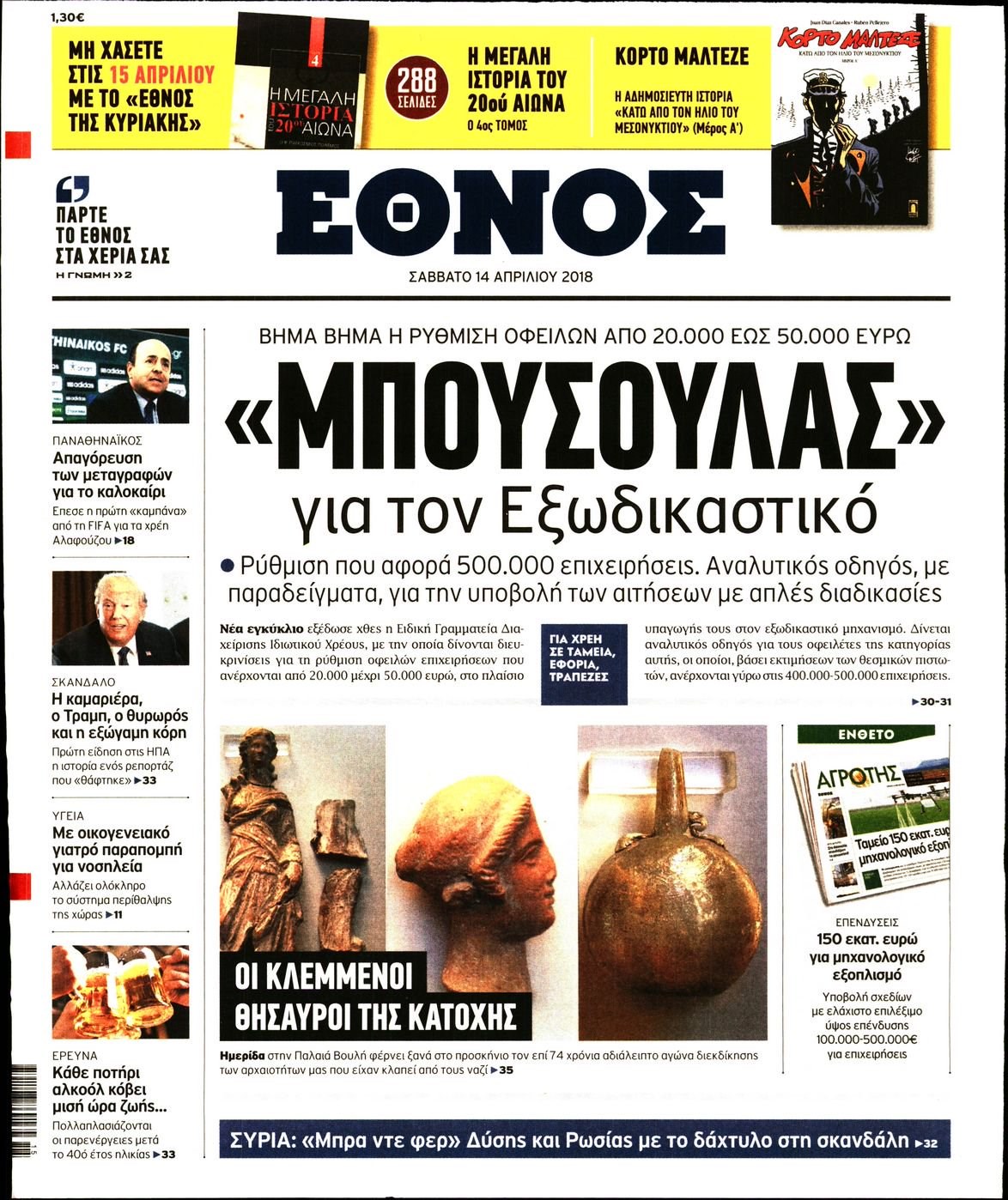 Οι πολιτικές εφημερίδες 14/4/2018 Enikos Newsroom 07:37, Σάββατο 14 Απριλίου 2018 Media Διαβάστε τα σημερινά πρωτοσέλιδα των πολιτικών εφημερίδων: ΠΟΛΙΤΙΚΕΣ ΕΦΗΜΕΡΙΔΕΣ ΠΡΩΤΟΣΕΛΙΔΑ Μοιράσου το: σχολίασε κι εσύ (0 σχόλια) Ακολουθήστε το enikos.gr στο Google News και μάθετε πρώτοι όλες τις ειδήσεις Δείτε όλες τις τελευταίες ειδήσεις από την Ελλάδα και τον Κόσμο στο enikos.gr Ειδήσεις Ροή Ειδήσεων 25 λεπτά πριν Υπόθεση Έπσταϊν: Το Υπουργείο Δικαιοσύνης δημοσιοποίησε μια σειρά από εξαιρετικά επεξεργασμένα αρχεία – «Λείπουν τα πιο σημαντικά έγγραφα», λένε οι Δημοκρατικοί 2 ώρες πριν Σαρωτικοί οι έλεγχοι στους δρόμους ενόψει εορτών – Μπλόκα της τροχαίας σε κεντρικές αρτηρίες της Αττικής 36 λεπτά πριν ΟΝΕΧ – MEGATUGS: Ξεκίνησε η ναυπήγηση ρυμουλκών στην Ελλάδα – Προθάλαμος πολεμικών πλοίων – Δείτε φωτογραφίες και βίντεο 10 ώρες πριν Χριστούγεννα στα μπλόκα: Επιμένουν στις κινητοποιήσεις τους οι αγρότες – Ανοίγουν τα διόδια το Σαββατοκύριακο 9 ώρες πριν Πούτιν: Τα μηνύματα σε Ευρώπη και ΝΑΤΟ από το μαραθώνιο «σόου» του – Η απαίτηση για «σεβασμό» και η ειρήνη «με τους όρους» της Μόσχας 2 ώρες πριν Αυγά: Πόσα μπορείτε να τρώτε την ημέρα με ασφάλεια για μέγιστη πρόσληψη πρωτεΐνης 3 ώρες πριν Τα ζώδια σήμερα, Σάββατο 20 Δεκεμβρίου: Παρθένοι, το σύμπαν σας δίνει το κλειδί 9 ώρες πριν Ανακαλύφθηκαν αρχαία χρυσά νομίσματα 2.200 ετών που απεικονίζουν τον θεό Απόλλωνα – Η άγνωστη σύνδεση με τον Φίλιππο Β΄ της Μακεδονίας 2 ώρες πριν Οπτική ψευδαίσθηση: Μόνο αν είσαι ο Σέρλοκ Χολμς θα βρεις τον αριθμό «87» σε 7 δευτερόλεπτα 5 λεπτά πριν Αρχαιολόγοι ανακάλυψαν σε χωράφι απεικόνιση 600 ετών ενός Αγίου – Τα στοιχεία που δείχνουν ότι μαρτύρησε 13 λεπτά πριν Mega χριστουγεννιάτικη φορολοταρία: «Κλείδωσε» η ημερομηνία για την κλήρωση – Ερωτήσεις και απαντήσεις 20 λεπτά πριν ΗΠΑ: Τέσσερις μετανάστες πέθαναν σε κέντρα κράτησης – Αύξηση θανάτων σε επίπεδο ρεκόρ το 2025 25 λεπτά πριν Υπόθεση Έπσταϊν: Το Υπουργείο Δικαιοσύνης δημοσιοποίησε μια σειρά από εξαιρετικά επεξεργασμένα αρχεία – «Λείπουν τα πιο σημαντικά έγγραφα», λένε οι Δημοκρατικοί 28 λεπτά πριν Καιρός: Αλλαγή σκηνικού σήμερα με βροχές και πτώση της θερμοκρασίας – Οι προβλέψεις των μετεωρολόγων για τα Χριστούγεννα ENIKOS NETWORK Το τεστ των 10 δευτερολέπτων που μπορεί να προβλέψει το προσδόκιμο ζωής σας – Τι λέει ειδικός του Cleveland Επιλέξτε καρέκλα για να μάθετε ποια είναι τα κρυφά χαρακτηριστικά σας – Τι αποκάλυψε για εσάς αυτό το τεστ προσωπικότητας; Mega χριστουγεννιάτικη φορολοταρία: «Κλείδωσε» η ημερομηνία για την κλήρωση – Ερωτήσεις και απαντήσεις Αναστολή μέτρων αναγκαστικής εκτέλεσης για κτηνοτρόφους που πλήττονται από την ευλογιά των αιγοπροβάτων Χαρτογραφώντας το «σημείο χωρίς επιστροφή»: Για πρώτη φορά αποκαλύπτεται με λεπτομέρεια το ακανθώδες όριο της ατμόσφαιρας τ... Η Google καταργεί τη λειτουργία «dark web report» – Πώς θα μπορούν οι χρήστες να διαγράφουν τα δεδομένα τους περισσότερα 05:48 , Σάββατο 20 Δεκεμβρίου 2025 Οι οικονομικές εφημερίδες 20/12/2025 Διαβάστε τα πρωτοσέλιδα από τις οικονομικές εφημερίδες, σήμερα 20/12/2025. 05:43 , Σάββατο 20 Δεκεμβρίου 2025 Οι αθλητικές εφημερίδες 20/12/2025 Διαβάστε τα πρωτοσέλιδα από τις αθλητικές εφημερίδες, σήμερα 20/12/2025. 05:38 , Σάββατο 20 Δεκεμβρίου 2025 Οι πολιτικές εφημερίδες 20/12/2025 Διαβάστε τα πρωτοσέλιδα από τις πολιτικές εφημερίδες, σήμερα 20/12/2025. 04:20 , Σάββατο 20 Δεκεμβρίου 2025 Αγγελική Νικολούλη: Τα συλλυπητήρια για την απώλε