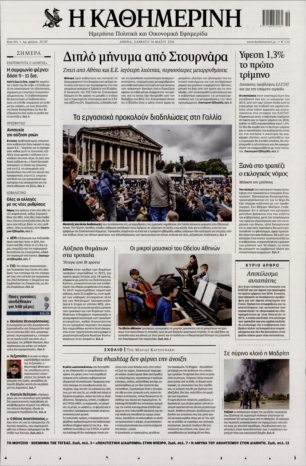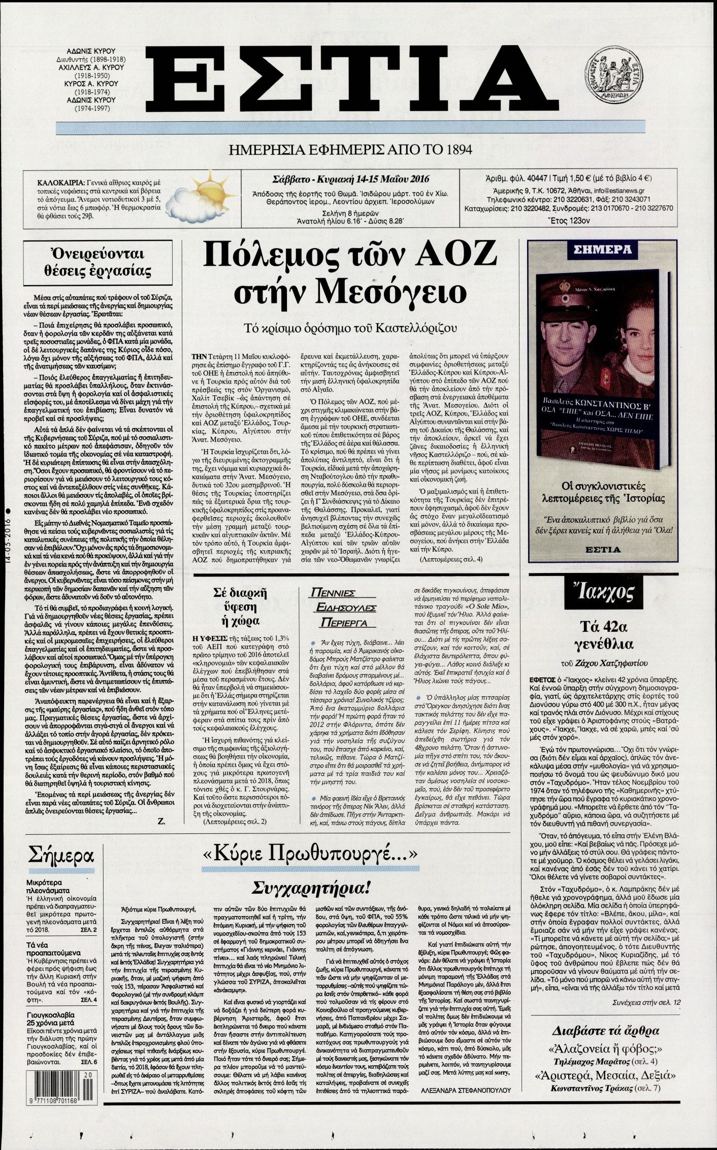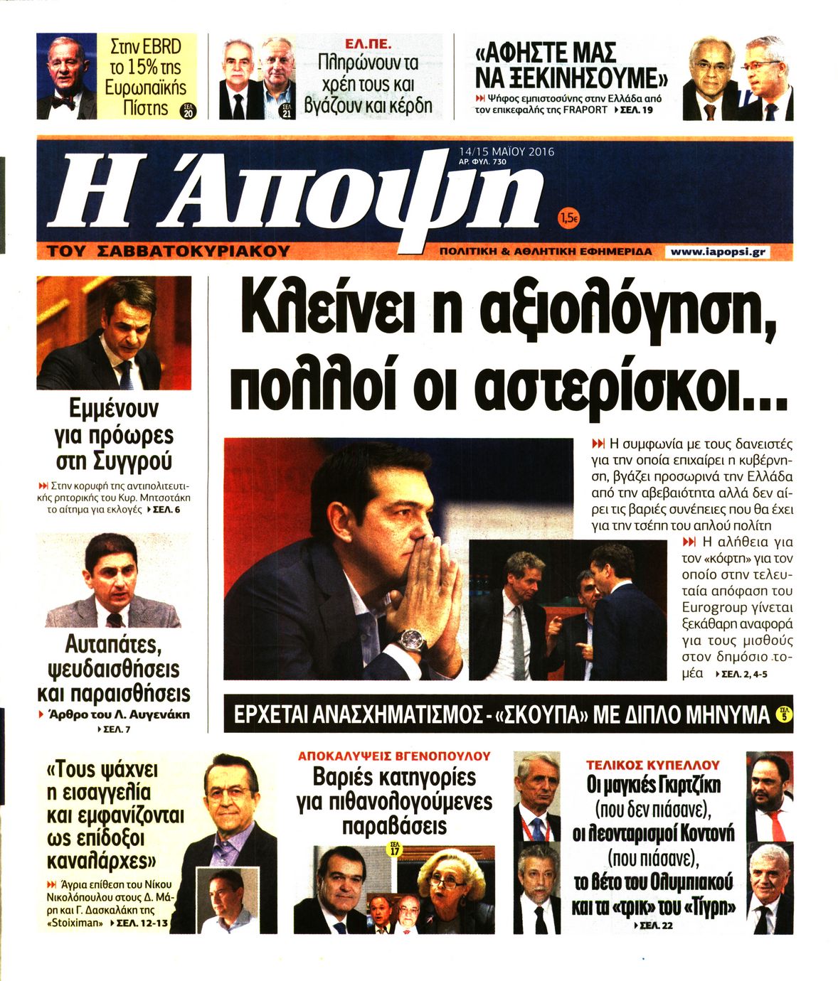 Οι πολιτικές εφημερίδες 14/5/2016 Enikos Newsroom 06:22, Σάββατο 14 Μαΐου 2016 Media Διαβάστε τα σημερινά πρωτοσέλιδα των πολιτικών εφημερίδων: ΠΟΛΙΤΙΚΕΣ ΕΦΗΜΕΡΙΔΕΣ ΠΡΩΤΟΣΕΛΙΔΑ Μοιράσου το: σχολίασε κι εσύ (0 σχόλια) Ακολουθήστε το enikos.gr στο Google News και μάθετε πρώτοι όλες τις ειδήσεις Δείτε όλες τις τελευταίες ειδήσεις από την Ελλάδα και τον Κόσμο στο enikos.gr Ειδήσεις Ροή Ειδήσεων 2 ώρες πριν Γιορτές με μπλόκα για τους αγρότες: Ανοίγουν διόδια και μοιράζουν προϊόντα στους ταξιδιώτες 2 ώρες πριν Τα αρχεία του Έπσταϊν αποκαλύπτουν φωτογραφία του έκπτωτου πρίγκιπα Άντριου – Είναι ξαπλωμένος στην αγκαλιά 5 γυναικών 1 ώρα πριν Νέες ταυτότητες: Μεγάλη αναμονή για ραντεβού στην Αττική – Τέλος τα ταξίδια εκτός Ελλάδος από τον Αύγουστο για όσους δεν έχουν αλλάξει 2 ώρες πριν Εξαφάνιση 33χρονου γιατρού στην Κρήτη: «Άναψα τα φώτα, τρόμαξε και άρχισε να τρέχει στα χωράφια» – Η τελευταία διαδρομή και η μαρτυρία «κλειδί» 28 λεπτά πριν Ινδία: Επτά ελέφαντες σκοτώθηκαν κατά τη σύγκρουση επιβατικού τρένου με κοπάδι 2 ώρες πριν Μία νέα «χρυσή» περίοδος αρχίζει για 3 ζώδια από σήμερα – «Μία αναπάντεχη ευκαιρία οδηγεί στην επιτυχία» 4 ώρες πριν Αρχαιολόγοι ανακάλυψαν σε χωράφι απεικόνιση 600 ετών ενός Αγίου – Τα στοιχεία που δείχνουν ότι μαρτύρησε 3 ώρες πριν Αγχώνεται για το χριστουγεννιάτικο δώρο που πήρε στην πλούσια σύντροφό του – «Φοβάμαι πως θα το βρει φθηνιάρικο, φοράει βραχιόλια Cartier» 25 λεπτά πριν Διαιτολόγος αποκαλύπτει 9 πρωινές συνήθειες που «λιώνουν» το κοιλιακό λίπος – «Υποστηρίζουν την υγιεινή απώλεια βάρους» 5 λεπτά πριν Χρήστος Μάντακας: «Θα μπορούσα να είχα φύγει από τη ζωή, δεν μπορούσα να περπατήσω…» 12 λεπτά πριν Εντυπωσιακό βίντεο από «τσουνάμι» πάγου στη Σιβηρία – Πώς προκαλείται το σπάνιο φαινόμενο 20 λεπτά πριν Μυλωνάκης κατά Τζάκρη: Την καλώ να ανασκευάσει το αδιανόητο ψέμα της. Η ανοχή έχει και τα όρια της» 25 λεπτά πριν Διαιτολόγος αποκαλύπτει 9 πρωινές συνήθειες που «λιώνουν» το κοιλιακό λίπος – «Υποστηρίζουν την υγιεινή απώλεια βάρους» 28 λεπτά πριν Ινδία: Επτά ελέφαντες σκοτώθηκαν κατά τη σύγκρουση επιβατικού τρένου με κοπάδι ENIKOS NETWORK Είστε μόνιμα απρόσεκτοι; 3 σημάδια που δείχνουν ότι μπορεί να είναι σύμπτωμα πάθησης Πόσα κιλά παίρνουμε πραγματικά τα Χριστούγεννα, σύμφωνα με την επιστήμη – Πώς να το αποτρέψουμε; Χριστούγεννα και Πρωτοχρονιά: Πώς αμείβονται όσοι εργαστούν e-ΕΦΚΑ και ΔΥΠΑ: Έρχονται νέες πληρωμές έως τις 24 Δεκεμβρίου – Ποιοι πάνε ταμείο Χαρτογραφώντας το «σημείο χωρίς επιστροφή»: Για πρώτη φορά αποκαλύπτεται με λεπτομέρεια το ακανθώδες όριο της ατμόσφαιρας τ... Η Google καταργεί τη λειτουργία «dark web report» – Πώς θα μπορούν οι χρήστες να διαγράφουν τα δεδομένα τους περισσότερα 11:41 , Σάββατο 20 Δεκεμβρίου 2025 «Η αγάπη δεν χάνεται ποτέ»: Η μικρού μήκους ταινία κινουμένων σχεδίων που θέτει ερωτήματα για τη ζωή και τον θάνατο Ο θάνατος είναι ένα από τα πιο σκληρά θέματα που καλείται να διαχειριστεί κάποιος στη διάρκεια... 09:30 , Σάββατο 20 Δεκεμβρίου 2025 «Porto Leone: Στη γειτονιά με τα κόκκινα φανάρια» – Ο Χρόνης αποκαλύπτει στην Αλεξάνδρα το μυστικό για το παιδί της Λένας Η μεγάλη δραματική σειρά του Apha «Porto Leone: Στη γειτονιά με τα κόκκινα φανάρια» μας μεταφέ... 08:14 , Σάββατο 20 Δεκεμβρίου 2025 Τρομεροί γονείς: Η Μαρία Καβογιάννη εισβάλλει στο σπίτι της οικογένειας Στεφανίδη Όσα θα δούμε στο νέο διπλό επεισόδιο της σειράς «Τρομεροί γονείς», σήμερα Σάββατο 2
