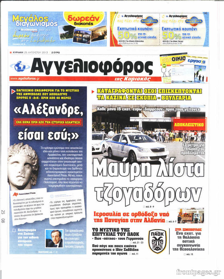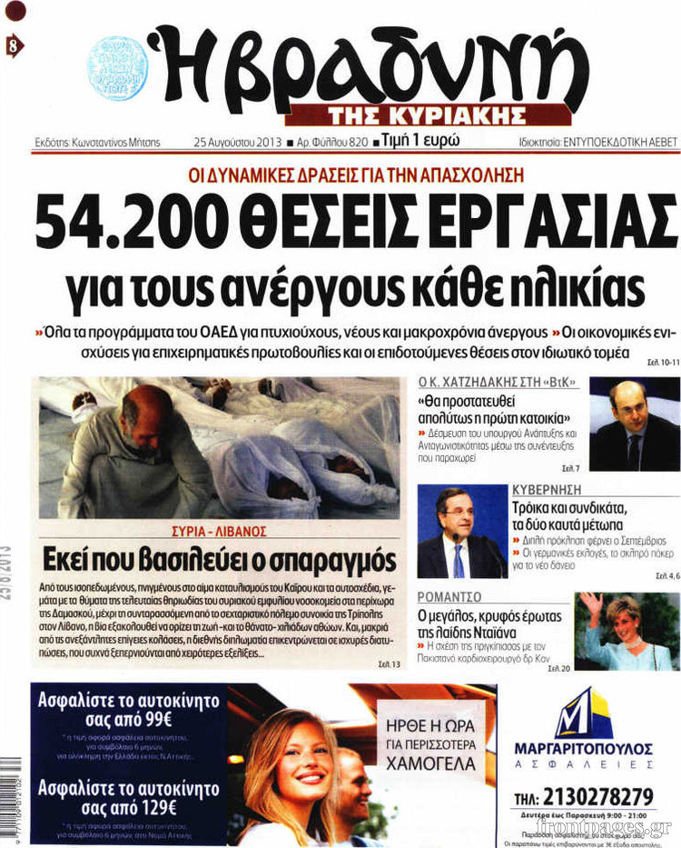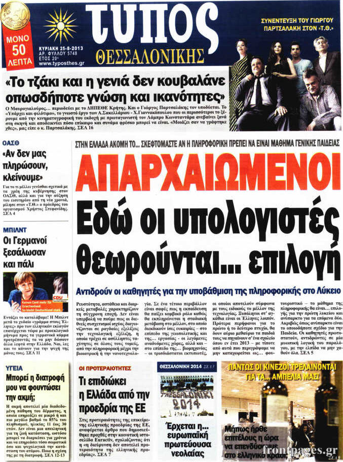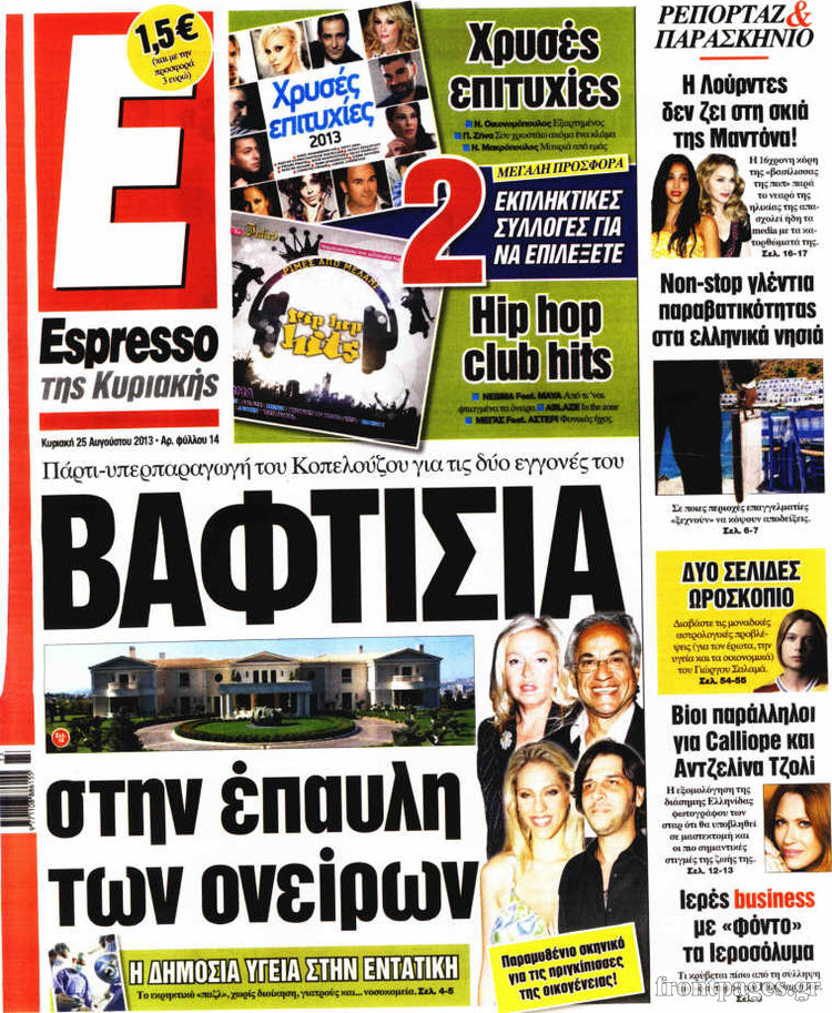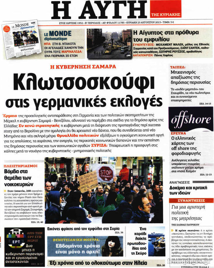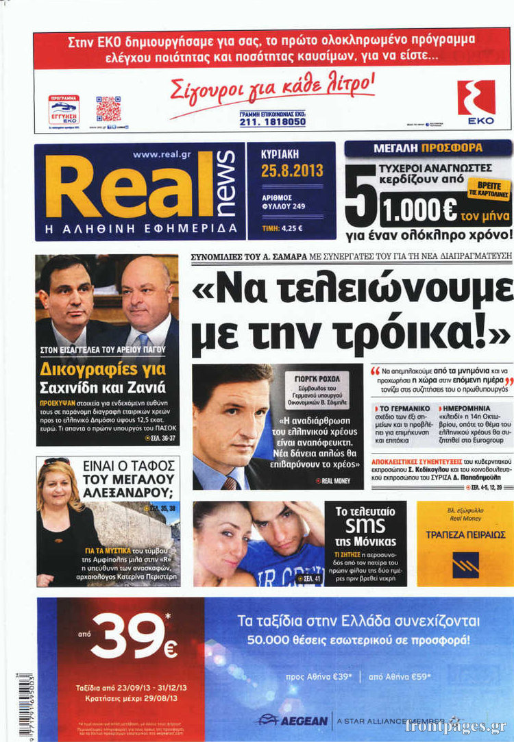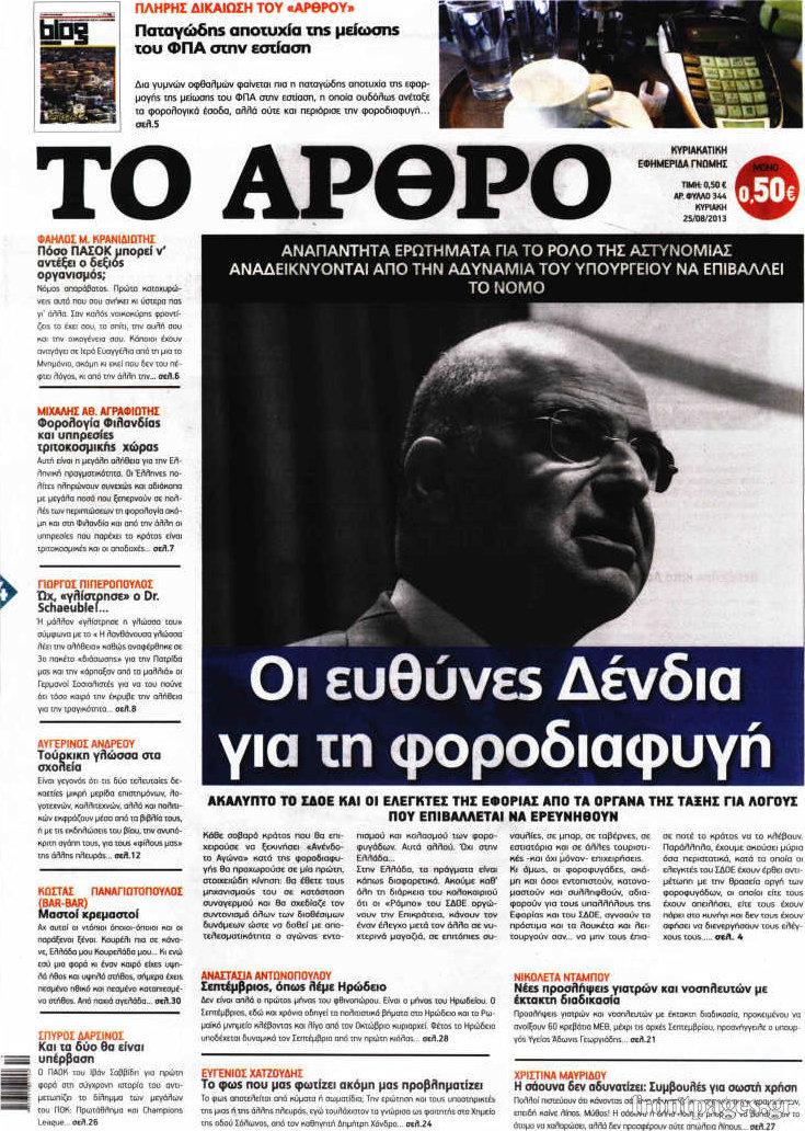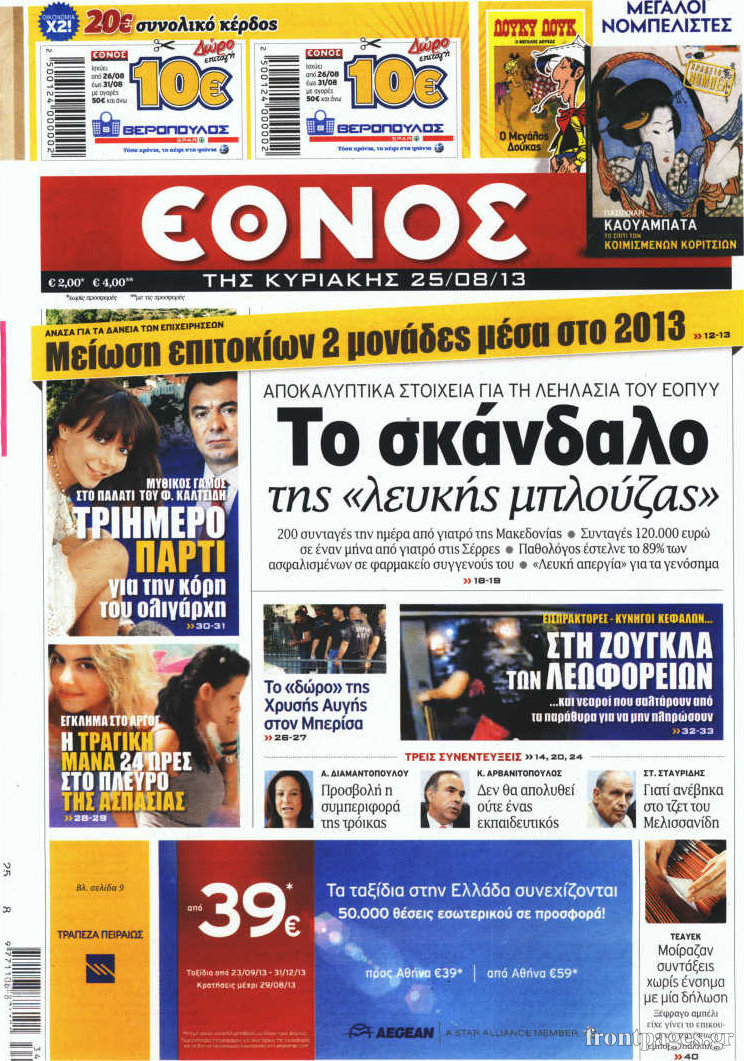 Οι πολιτικές εφημερίδες Enikos Newsroom 10:56, Κυριακή 25 Αυγούστου 2013 Media Οι πολιτικές εφημερίδες Διαβάστε τα πρωτοσέλιδα των πολιτικών εφημερίδων: ΕΦΗΜΕΡΙΔΕΣ ΠΟΛΙΤΙΚΕΣ ΕΦΗΜΕΡΙΔΕΣ ΠΡΩΤΟΣΕΛΙΔΑ Μοιράσου το: σχολίασε κι εσύ (0 σχόλια) Ακολουθήστε το enikos.gr στο Google News και μάθετε πρώτοι όλες τις ειδήσεις Δείτε όλες τις τελευταίες ειδήσεις από την Ελλάδα και τον Κόσμο στο enikos.gr Ειδήσεις Ροή Ειδήσεων 9 λεπτά πριν Υπόθεση Έπσταϊν: Το Υπουργείο Δικαιοσύνης δημοσιοποίησε μια σειρά από εξαιρετικά επεξεργασμένα αρχεία – «Λείπουν τα πιο σημαντικά έγγραφα», λένε οι Δημοκρατικοί 2 ώρες πριν Σαρωτικοί οι έλεγχοι στους δρόμους ενόψει εορτών – Μπλόκα της τροχαίας σε κεντρικές αρτηρίες της Αττικής 19 λεπτά πριν ΟΝΕΧ – MEGATUGS: Ξεκίνησε η ναυπήγηση ρυμουλκών στην Ελλάδα – Προθάλαμος πολεμικών πλοίων – Δείτε φωτογραφίες και βίντεο 9 ώρες πριν Χριστούγεννα στα μπλόκα: Επιμένουν στις κινητοποιήσεις τους οι αγρότες – Ανοίγουν τα διόδια το Σαββατοκύριακο 9 ώρες πριν Πούτιν: Τα μηνύματα σε Ευρώπη και ΝΑΤΟ από το μαραθώνιο «σόου» του – Η απαίτηση για «σεβασμό» και η ειρήνη «με τους όρους» της Μόσχας 2 ώρες πριν Αυγά: Πόσα μπορείτε να τρώτε την ημέρα με ασφάλεια για μέγιστη πρόσληψη πρωτεΐνης 2 ώρες πριν Τα ζώδια σήμερα, Σάββατο 20 Δεκεμβρίου: Παρθένοι, το σύμπαν σας δίνει το κλειδί 9 ώρες πριν Ανακαλύφθηκαν αρχαία χρυσά νομίσματα 2.200 ετών που απεικονίζουν τον θεό Απόλλωνα – Η άγνωστη σύνδεση με τον Φίλιππο Β΄ της Μακεδονίας 2 ώρες πριν Οπτική ψευδαίσθηση: Μόνο αν είσαι ο Σέρλοκ Χολμς θα βρεις τον αριθμό «87» σε 7 δευτερόλεπτα 3 λεπτά πριν ΗΠΑ: Τέσσερις μετανάστες πέθαναν σε κέντρα κράτησης – Αύξηση θανάτων σε επίπεδο ρεκόρ το 2025 9 λεπτά πριν Υπόθεση Έπσταϊν: Το Υπουργείο Δικαιοσύνης δημοσιοποίησε μια σειρά από εξαιρετικά επεξεργασμένα αρχεία – «Λείπουν τα πιο σημαντικά έγγραφα», λένε οι Δημοκρατικοί 12 λεπτά πριν Καιρός: Αλλαγή σκηνικού σήμερα με βροχές και πτώση της θερμοκρασίας – Οι προβλέψεις των μετεωρολόγων για τα Χριστούγεννα 19 λεπτά πριν ΟΝΕΧ – MEGATUGS: Ξεκίνησε η ναυπήγηση ρυμουλκών στην Ελλάδα – Προθάλαμος πολεμικών πλοίων – Δείτε φωτογραφίες και βίντεο 28 λεπτά πριν Φοινικούντα: Σήμερα απολογείται ο 30χρονος γιος γνωστού επιχειρηματία της Πλάκας ENIKOS NETWORK Το τεστ των 10 δευτερολέπτων που μπορεί να προβλέψει το προσδόκιμο ζωής σας – Τι λέει ειδικός του Cleveland Επιλέξτε καρέκλα για να μάθετε ποια είναι τα κρυφά χαρακτηριστικά σας – Τι αποκάλυψε για εσάς αυτό το τεστ προσωπικότητας; Αναστολή μέτρων αναγκαστικής εκτέλεσης για κτηνοτρόφους που πλήττονται από την ευλογιά των αιγοπροβάτων Πλήρης επάρκεια προϊόντων στις λαϊκές της Αττικής, παρά τις αγροτικές κινητοποιήσεις – Τι απαντούν οι πωλητές Χαρτογραφώντας το «σημείο χωρίς επιστροφή»: Για πρώτη φορά αποκαλύπτεται με λεπτομέρεια το ακανθώδες όριο της ατμόσφαιρας τ... Η Google καταργεί τη λειτουργία «dark web report» – Πώς θα μπορούν οι χρήστες να διαγράφουν τα δεδομένα τους περισσότερα 05:48 , Σάββατο 20 Δεκεμβρίου 2025 Οι οικονομικές εφημερίδες 20/12/2025 Διαβάστε τα πρωτοσέλιδα από τις οικονομικές εφημερίδες, σήμερα 20/12/2025. 05:43 , Σάββατο 20 Δεκεμβρίου 2025 Οι αθλητικές εφημερίδες 20/12/2025 Διαβάστε τα πρωτοσέλιδα από τις αθλητικές εφημερίδες, σήμερα 20/12/2025. 05:38 , Σάββατο 20 Δεκεμβρίου 2025 Οι πολιτικές εφημερίδες 20/12/2025 Διαβάστε τα πρωτοσέλιδα από τις πολιτικές εφημερίδες, σήμερα 20/12/2025. 04:20 , Σάββατο 20 Δεκεμβρίου 2025 Αγγελική Νικολούλη: Τα συλλυ
