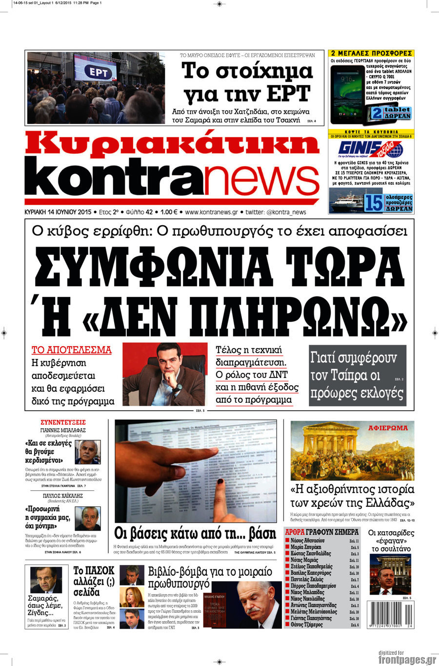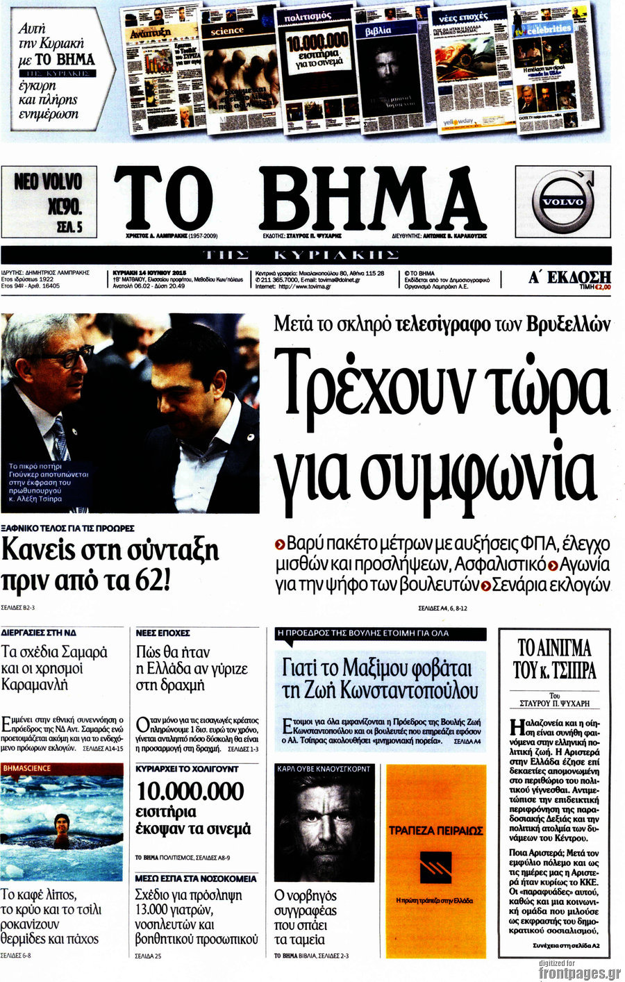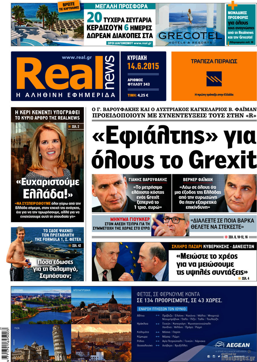 Oι πολιτικές εφημερίδες 14/6/2015 Enikos Newsroom 07:50, Κυριακή 14 Ιουνίου 2015 Media Διαβάστε τα σημερινά πρωτοσέλιδα των πολιτικών εφημερίδων: ΠΟΛΙΤΙΚΕΣ ΕΦΗΜΕΡΙΔΕΣ ΠΡΩΤΟΣΕΛΙΔΑ Μοιράσου το: σχολίασε κι εσύ (0 σχόλια) Ακολουθήστε το enikos.gr στο Google News και μάθετε πρώτοι όλες τις ειδήσεις Δείτε όλες τις τελευταίες ειδήσεις από την Ελλάδα και τον Κόσμο στο enikos.gr Ειδήσεις Ροή Ειδήσεων 4 ώρες πριν Χριστούγεννα στα μπλόκα: Επιμένουν στις κινητοποιήσεις τους οι αγρότες – Ανοίγουν τα διόδια το Σαββατοκύριακο 4 ώρες πριν Ουκρανία: Η άνευ προηγουμένου επίθεση σε ρωσικό τάνκερ στη Μεσόγειο και το μήνυμα προς στον Πούτιν – Το «μακρύ χέρι» του Κιέβου 3 ώρες πριν Πούτιν: Τα μηνύματα σε Ευρώπη και ΝΑΤΟ από το μαραθώνιο «σόου» του – Η απαίτηση για «σεβασμό» και η ειρήνη «με τους όρους» της Μόσχας 4 ώρες πριν Τραμπ: Δεν αποκλείει την πιθανότητα ενός πολέμου στη Βενεζουέλα – «Ο Μαδούρο ξέρει καλύτερα από τον καθένα τι ακριβώς θέλω» 5 ώρες πριν Συνεχίζει να προκαλεί ο Μίτσκοσκι: «Για μένα το όνομα Μακεδονία είναι ιερό» 3 ώρες πριν Ανακαλύφθηκαν αρχαία χρυσά νομίσματα 2.200 ετών που απεικονίζουν τον θεό Απόλλωνα – Η άγνωστη σύνδεση με τον Φίλιππο Β΄ της Μακεδονίας 4 ώρες πριν Ύπνος: Μια κρυφή κατάσταση του εγκεφάλου πριν από τον ύπνο μπορεί να είναι το “κλειδί” για υψηλή ευφυΐα και δημιουργικότητα 5 ώρες πριν Αριθμολογία: Οι άνθρωποι που έχουν γεννηθεί αυτές τις 4 ημερομηνίες, συχνά παρεξηγούνται – «Η καλοσύνη τους κρύβει τεράστια δύναμη» 6 ώρες πριν Ξεχάστε το καθάρισμα το Σαββατοκύριακο: Ο «κανόνας των 20 λεπτών» που θα σας λύσει τα χέρια 13 λεπτά πριν Εξάρχεια: Ένταση με μολότοφ, χημικά και κρότου λάμψης 29 λεπτά πριν ΗΠΑ: Τραγωδία στην Αλαμπάμα – Σκότωσε την δημοσιογράφο σύζυγό του και αυτοκτόνησε μπροστά στον 3χρονο γιο τους 43 λεπτά πριν Πρόταση γάμου στο ΣΕΦ κατά την διάρκεια του αγώνα Ολυμπιακός-Βιλερμπάν – Δείτε βίντεο 58 λεπτά πριν Euroleague: Επέστρεψε στις νίκες ο Ολυμπιακός, πήρε την ματσάρα της χρονιάς η Μπάρτσα – Τα αποτελέσματα και η βαθμολογία 1 ώρα πριν Συρία: Μαζικά πλήγματα των ΗΠΑ σε θέσεις του Ισλαμικού Κράτους – Χέγκσεθ: «Δεν είναι αρχή πολέμου, είναι μια δήλωση εκδίκησης» για το θάνατο των στρατιωτών μας ENIKOS NETWORK Το ΕΚΑΒ τιμήθηκε από την Ακαδημία Αθηνών για τα 40 χρόνια προσφοράς του Έχετε πραγματικά μεγάλη καρδιά; 10 χαρακτηριστικά όσων έχουν καλοσύνη Αναστολή μέτρων αναγκαστικής εκτέλεσης για κτηνοτρόφους που πλήττονται από την ευλογιά των αιγοπροβάτων Πλήρης επάρκεια προϊόντων στις λαϊκές της Αττικής, παρά τις αγροτικές κινητοποιήσεις – Τι απαντούν οι πωλητές Χαρτογραφώντας το «σημείο χωρίς επιστροφή»: Για πρώτη φορά αποκαλύπτεται με λεπτομέρεια το ακανθώδες όριο της ατμόσφαιρας τ... Η Google καταργεί τη λειτουργία «dark web report» – Πώς θα μπορούν οι χρήστες να διαγράφουν τα δεδομένα τους περισσότερα 22:42 , Παρασκευή 19 Δεκεμβρίου 2025 Γιώργος Γιαννόπουλος για “Το σόι σου”: “Είναι ευτυχία και ευλογία αυτή η σειρά” «Είναι ευτυχία και ευλογία η συγκυρία αυτής της σειράς», θα πει ο Γιώργος Γιαννόπουλος -ο αγαπ... 20:37 , Παρασκευή 19 Δεκεμβρίου 2025 Don’t Forget The Lyrics: Η Έλλη Κοκκίνου υποδέχεται 4 παίκτες που θα κάνουν τα πάντα για να μη χάσουν ούτε… μισή λέξη από τους στίχους Το «Don’t Forget The Lyrics» επιστρέφει απόψε, Παρασκευή 19 Δεκεμβρίου, στις 21:00 με νέο επει... 19:31 , Παρασκευή 19 Δεκεμβρίου 2025 GNTM: Απόψε ο μεγάλος τελικός για τους 4 φιναλίστ Έπειτα από μήνες γεμάτους μόδα, δημιουργία και έν