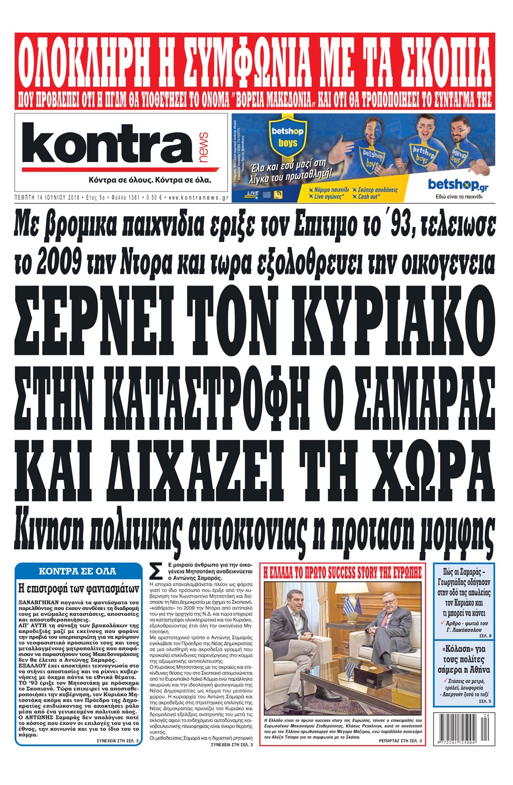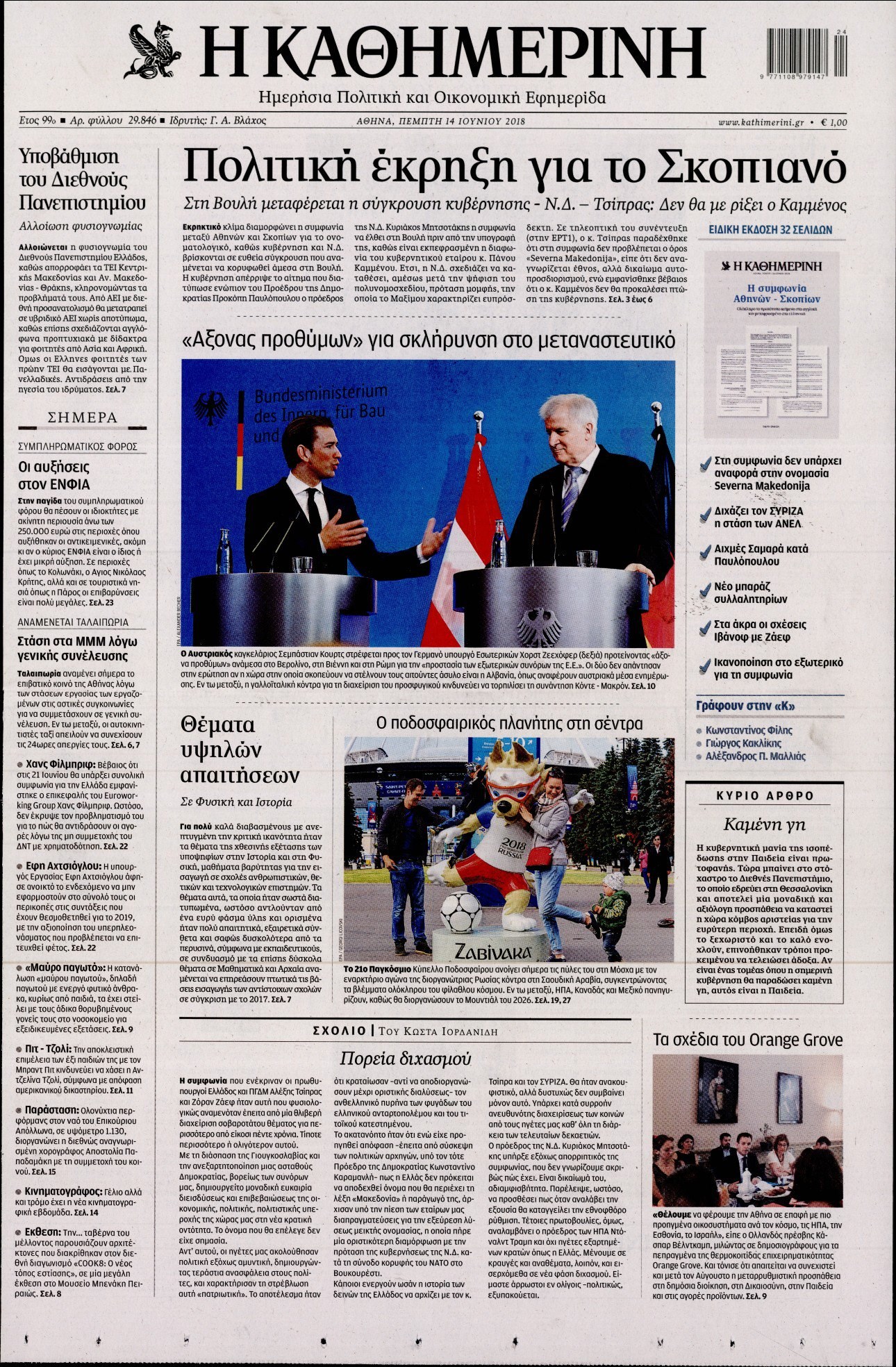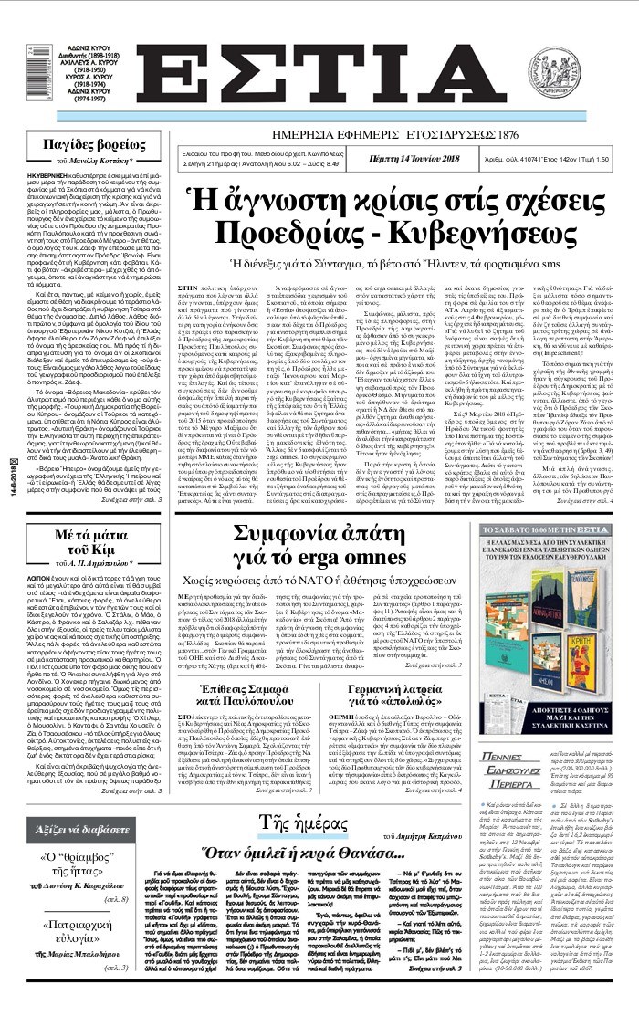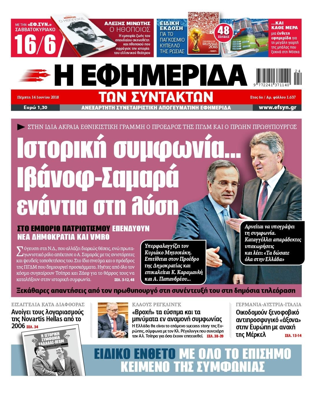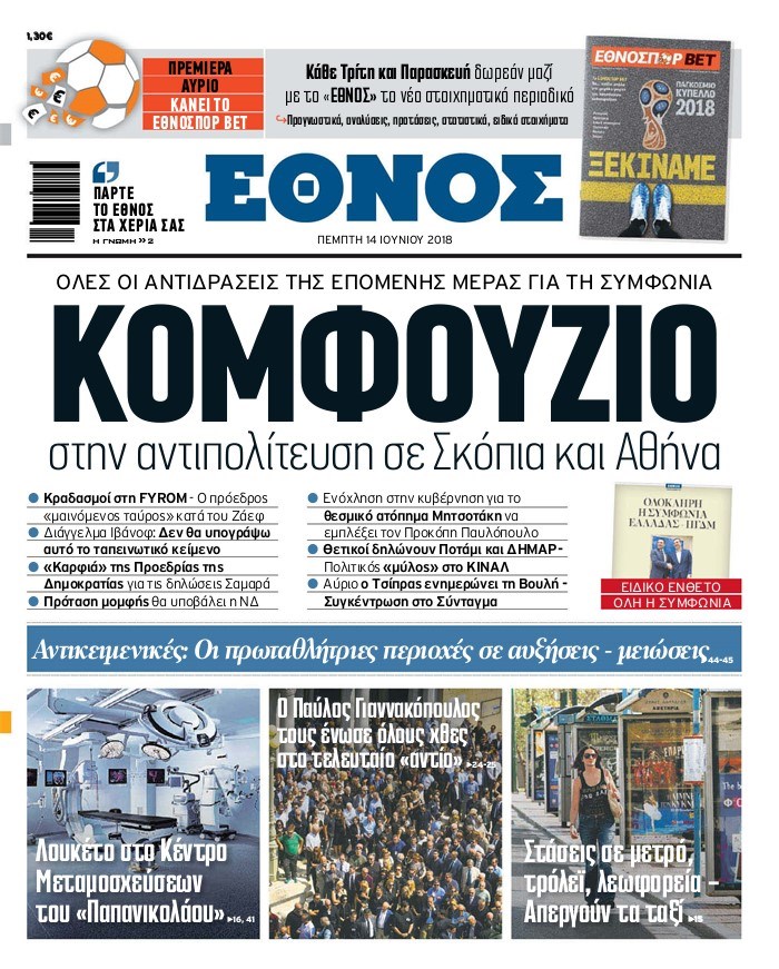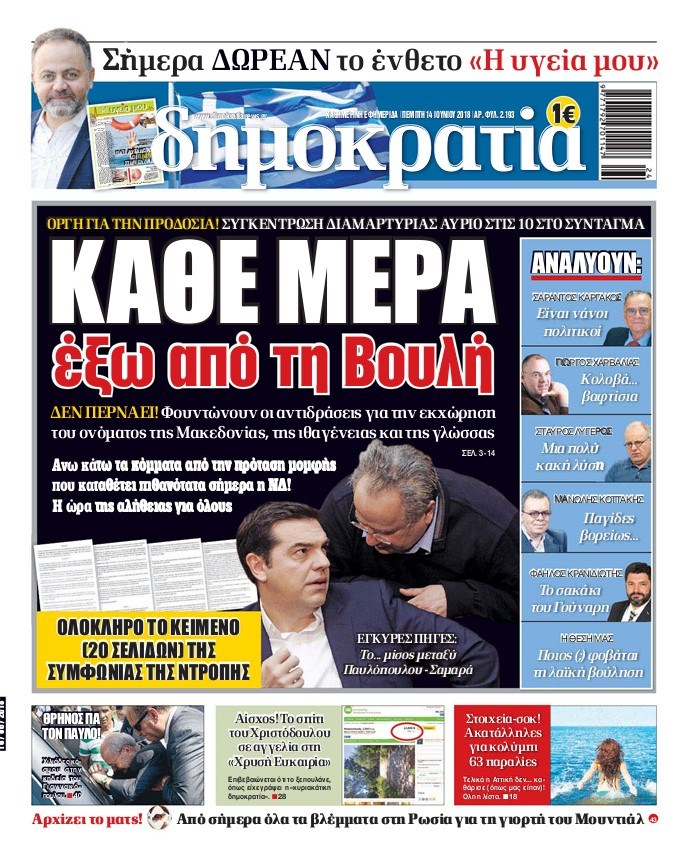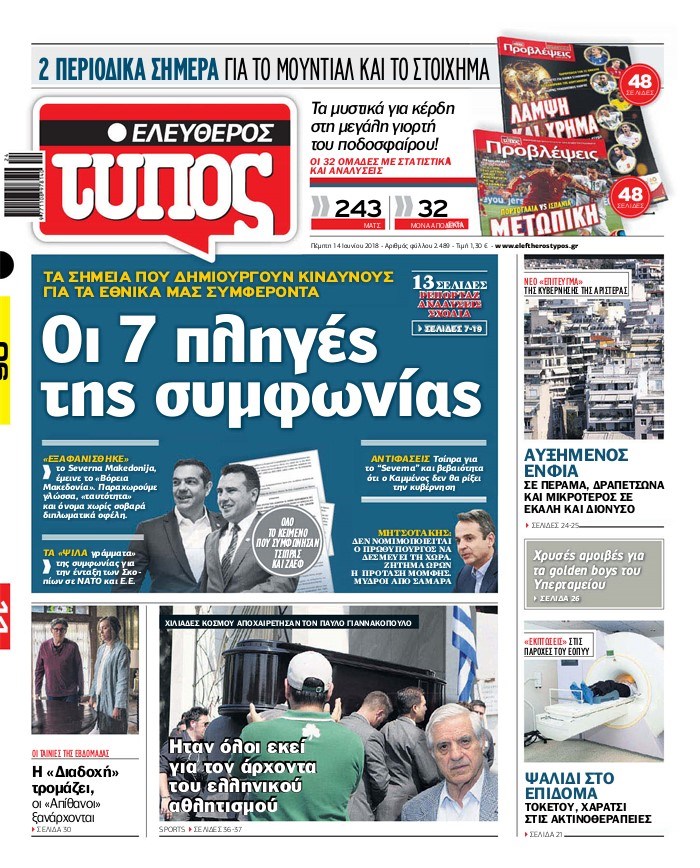 Οι πολιτικές εφημερίδες 14/6/2018 Enikos Newsroom 06:15, Πέμπτη 14 Ιουνίου 2018 Media Διαβάστε τα σημερινά πρωτοσέλιδα των πολιτικών εφημερίδων. ΕΦΗΜΕΡΙΔΕΣ ΠΟΛΙΤΙΚΕΣ ΕΦΗΜΕΡΙΔΕΣ ΠΡΩΤΟΣΕΛΙΔΑ Μοιράσου το: σχολίασε κι εσύ (0 σχόλια) Ακολουθήστε το enikos.gr στο Google News και μάθετε πρώτοι όλες τις ειδήσεις Δείτε όλες τις τελευταίες ειδήσεις από την Ελλάδα και τον Κόσμο στο enikos.gr Ειδήσεις Ροή Ειδήσεων 3 ώρες πριν Χριστούγεννα στα μπλόκα οι αγρότες: Άνοιξαν στα διόδια και μοίρασαν προϊόντα στους πολίτες – Νέα σύσκεψη την Κυριακή στη Νίκαια 4 ώρες πριν Κύκλωμα διακίνησης ναρκωτικών σε σχολεία: Τηλεφωνούσαν στους ανηλίκους την ώρα του μαθήματος – Οι διάλογοι-σοκ, τα «ψευδώνυμα» και τα βασανιστήρια 3 ώρες πριν Αρχεία Επστάιν: Οι 500 σελίδες που λείπουν, τα αναπάντητα ερωτήματα και οι επώνυμοι – Τι έπεται 5 ώρες πριν Ζελένσκι: Μόνο οι ΗΠΑ και ο Τραμπ μπορούν να πιέσουν τη Ρωσία να βάλει τέλος στον πόλεμο 5 ώρες πριν Φοινικούντα: Προφυλακιστέος ο 30χρονος για συνέργεια στη διπλή δολοφονία – Και άλλα πρόσωπα στο «μικροσκόπιο» 3 ώρες πριν Αποκαλύφθηκε το άγνωστο «GPS» της αρχαιότητας – Πώς οι ναοί «φώτιζαν» τον δρόμο των ναυτικών πριν από την εφεύρεση των φάρων 4 ώρες πριν Ύπνος: Η διατροφή που μπορεί να σας βοηθήσει να κοιμάστε καλύτερα και να ζήσετε περισσότερο 5 ώρες πριν Αριθμολογία: Ο αριθμός του φύλακα αγγέλου σας, με βάση τον μήνα γέννησής σας – «Έτσι σας στέλνει σημάδια το σύμπαν» 17 ώρες πριν Enerwave: Το νέο «ρεύμα» στη λιανική ενέργειας που αλλάζει την εμπειρία του καταναλωτή 10 λεπτά πριν Σεισμός 3,8 Ρίχτερ ανοιχτά της Αμοργού 25 λεπτά πριν Άννα Βίσση: Τα… Social Media «προσκύνησαν» την «απόλυτη» για την συναυλία της στο Καλλιμάρμαρο που προβλήθηκε από το Mega 40 λεπτά πριν Φωτεινή Αθερίδου: «Προσπαθώ να είμαι κάθετη και αυστηρή σαν μαμά πια» 55 λεπτά πριν ΗΠΑ, Αίγυπτος, Κατάρ και Τουρκία συζήτησαν τη δεύτερη φάση του ειρηνευτικού σχεδίου για τη Γάζα 1 ώρα πριν Γιάννης Αντετοκούνμπο: Έμεινε στην 6η θέση της ψηφοφορίας του ESPN για το βραβείο του MVP του NBA ENIKOS NETWORK Οι γυναίκες αποκαλύπτουν το πιο ελκυστικό πράγμα που μπορεί να κάνει ένας άνδρας Ομορφιά και αντιγήρανση: Ειδικοί μιλούν για συσκευές περιποίησης του δέρματος «Πολεμική» προετοιμασία από την ευρωπαϊκή βιομηχανία ενέργειας – Η Eurelectric ζητεί «ομπρέλα» προστασίας για τις υποδομές Ακύρωση ΑΦΜ για απάτες – Ποιους βάζει στο στόχαστρο η ΑΑΔΕ Χαρτογραφώντας το «σημείο χωρίς επιστροφή»: Για πρώτη φορά αποκαλύπτεται με λεπτομέρεια το ακανθώδες όριο της ατμόσφαιρας τ... Η Google καταργεί τη λειτουργία «dark web report» – Πώς θα μπορούν οι χρήστες να διαγράφουν τα δεδομένα τους περισσότερα 01:30 , Κυριακή 21 Δεκεμβρίου 2025 Άννα Βίσση: Τα… Social Media «προσκύνησαν» την «απόλυτη» για την συναυλία της στο Καλλιμάρμαρο που προβλήθηκε από το Mega Την ημέρα των γενεθλίων της Άννας Βίσση, το MEGA τίμησε τη διαχρονική παρουσία της «απόλυτης Ε... 00:00 , Κυριακή 21 Δεκεμβρίου 2025 The Voice: Η επιστροφή της Έλενας Παπαρίζου και η ατάκα του Γιώργου Μαζωνάκη μετά τις καταγγελίες Στη φάση των Cross Battles Live μπήκε το The Voice, με την Έλενα Παπαρίζου να επιστρέφει στο π... 20:30 , Σάββατο 20 Δεκεμβρίου 2025 Αυτή την Κυριακή με τη Realnews: Instyle, μαζί Drive και Realnews Geopolitics Αυτή την Κυριακή με τη Realnews: Instyle, μαζί Drive και Realnews Geopolitics Instyle Η Άννα Ρ... 20:28 , Σάββατο 20 Δεκεμβρίου 2025 Ο ΑΝΤ1 γεμίζει τις γιορτές με μουσική – Ποιους καλλιτέχνες θα απολαύσουμε Φέτος στον ΑΝΤ1 γιορτάζουμε τις νύχτες μας παρέα με αγαπημένους καλλ