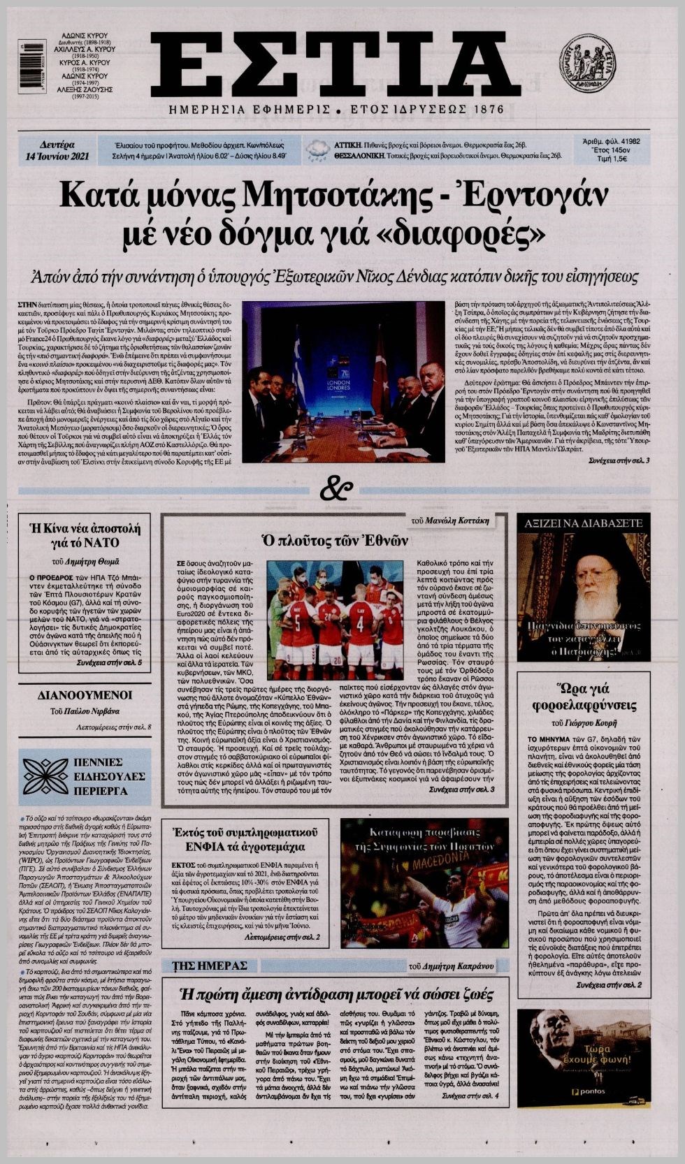 Οι πολιτικές εφημερίδες 14/6/2021 Διονύσης Νίκκας 06:12, Δευτέρα 14 Ιουνίου 2021 Media Διαβάστε τα πρωτοσέλιδα των πολιτικών εφημερίδων… ΕΦΗΜΕΡΙΔΕΣ ΠΡΩΤΟΣΕΛΙΔΑ Μοιράσου το: σχολίασε κι εσύ (0 σχόλια) Ακολουθήστε το enikos.gr στο Google News και μάθετε πρώτοι όλες τις ειδήσεις Δείτε όλες τις τελευταίες ειδήσεις από την Ελλάδα και τον Κόσμο στο enikos.gr Ειδήσεις Ροή Ειδήσεων 14 λεπτά πριν Ζελένσκι: Μόνο οι ΗΠΑ και ο Τραμπ μπορούν να πιέσουν τη Ρωσία να βάλει τέλος στον πόλεμο 32 λεπτά πριν Φοινικούντα: Προφυλακιστέος ο 30χρονος για συνέργεια στη διπλή δολοφονία – Και άλλα πρόσωπα στο «μικροσκόπιο» 2 ώρες πριν Κυριάκος Μητσοτάκης: Στην Ιερουσαλήμ την Τρίτη ο Πρωθυπουργός για την τριμερή Ελλάδας, Κύπρου, Ισραήλ – Θα συναντηθεί και με τον Αμπάς 5 ώρες πριν Πώς δρούσε το κύκλωμα που διακινούσε ναρκωτικά σε σχολεία – Υπέβαλαν σε βασανιστήρια όσους δεν τηρούσαν τους «κανόνες πειθαρχίας» 1 ώρα πριν Πάπας Λέων: Όταν έχει αϋπνίες επενδύει παραγωγικά τον χρόνο του – Ποιο παιχνίδι παίζει στο κινητό 24 λεπτά πριν Αριθμολογία: Ο αριθμός του φύλακα αγγέλου σας, με βάση τον μήνα γέννησής σας – «Έτσι σας στέλνει σημάδια το σύμπαν» 1 ώρα πριν Πώς να απαλλαγείτε από τη μυρωδιά του τηγανητού φαγητού: Το μυστικό βρίσκεται στην κουζίνα σας 2 ώρες πριν Μήπως οι γιορτές σας δεν είναι τόσο τέλειες; 7 χριστουγεννιάτικες συνήθειες που μαρτυρούν ότι μια οικογένεια είναι δυσλειτουργική 12 ώρες πριν Enerwave: Το νέο «ρεύμα» στη λιανική ενέργειας που αλλάζει την εμπειρία του καταναλωτή 6 λεπτά πριν Εριέττα Μανούρη: «Έχω νιώσει ανταγωνισμό από άντρες, μύθος αυτό που λένε για τις γυναίκες» 14 λεπτά πριν Ζελένσκι: Μόνο οι ΗΠΑ και ο Τραμπ μπορούν να πιέσουν τη Ρωσία να βάλει τέλος στον πόλεμο 24 λεπτά πριν Αριθμολογία: Ο αριθμός του φύλακα αγγέλου σας, με βάση τον μήνα γέννησής σας – «Έτσι σας στέλνει σημάδια το σύμπαν» 32 λεπτά πριν Φοινικούντα: Προφυλακιστέος ο 30χρονος για συνέργεια στη διπλή δολοφονία – Και άλλα πρόσωπα στο «μικροσκόπιο» 43 λεπτά πριν Super League: Ο Σιαμπάνης «κατέβασε ρολά» και ο Βόλος νίκησε 1-0 τον Παναιτωλικό ENIKOS NETWORK Οι γυναίκες αποκαλύπτουν το πιο ελκυστικό πράγμα που μπορεί να κάνει ένας άνδρας Ομορφιά και αντιγήρανση: Ειδικοί μιλούν για συσκευές περιποίησης του δέρματος Εφορία: 7 αλλαγές σε δηλώσεις και ελέγχους ακινήτων – Όλα όσα πρέπει να γνωρίζετε Πορτοκαλί τιμολόγια ρεύματος: Τα σημεία που πρέπει να προσέξουν οι καταναλωτές – Πότε θα εφαρμοστούν Χαρτογραφώντας το «σημείο χωρίς επιστροφή»: Για πρώτη φορά αποκαλύπτεται με λεπτομέρεια το ακανθώδες όριο της ατμόσφαιρας τ... Η Google καταργεί τη λειτουργία «dark web report» – Πώς θα μπορούν οι χρήστες να διαγράφουν τα δεδομένα τους περισσότερα 20:30 , Σάββατο 20 Δεκεμβρίου 2025 Αυτή την Κυριακή με τη Realnews: Instyle, μαζί Drive και Realnews Geopolitics Αυτή την Κυριακή με τη Realnews: Instyle, μαζί Drive και Realnews Geopolitics Instyle Η Άννα Ρ... 20:28 , Σάββατο 20 Δεκεμβρίου 2025 Ο ΑΝΤ1 γεμίζει τις γιορτές με μουσική – Ποιους καλλιτέχνες θα απολαύσουμε Φέτος στον ΑΝΤ1 γιορτάζουμε τις νύχτες μας παρέα με αγαπημένους καλλιτέχνες και μεγάλες μουσι... 18:19 , Σάββατο 20 Δεκεμβρίου 2025 HOTΕΛ ΕΛVIRA: Η Ελβίρα μαθαίνει πως ο Χάρι μένει κρυφά στο ξενοδοχείο του Παντελή Συνεχίζονται οι εκλογές για πρόεδρο, στο νέο επεισόδιο της κωμικής σειράς του MEGA, HOTΕΛ ΕΛVI... 14:04 , Σάββατο 20 Δεκεμβρίου 2025 Η Realnews αυτής της Κυριακής (21/12/2025) Με τίτλο: «Ασπίδα προστασίας για την Ελλάδα» κυκλοφορεί, αυτήν την Κυριακή, η Realnews. Σημαντ... ΤΕ