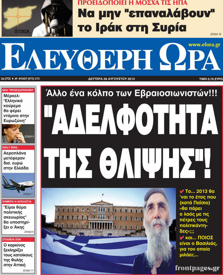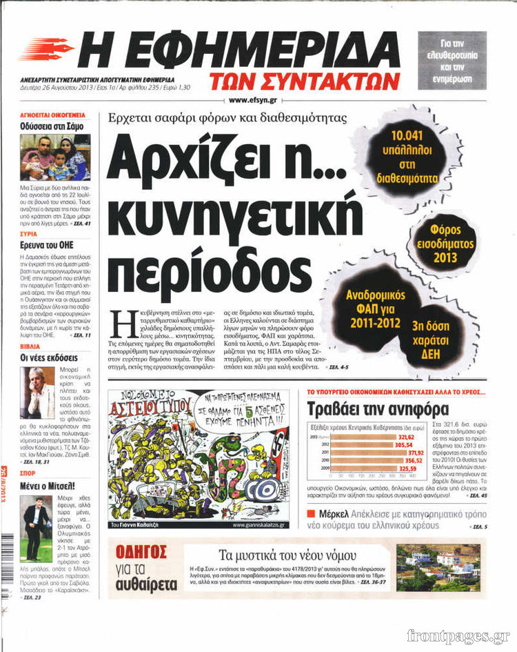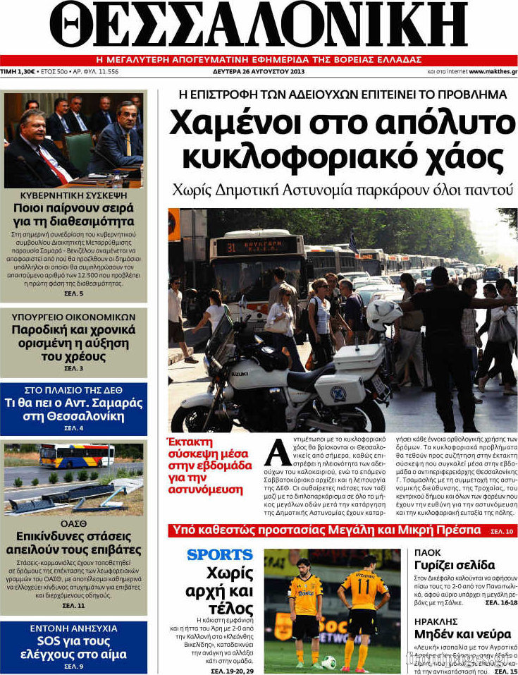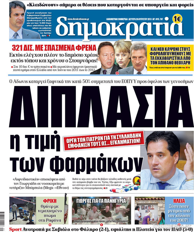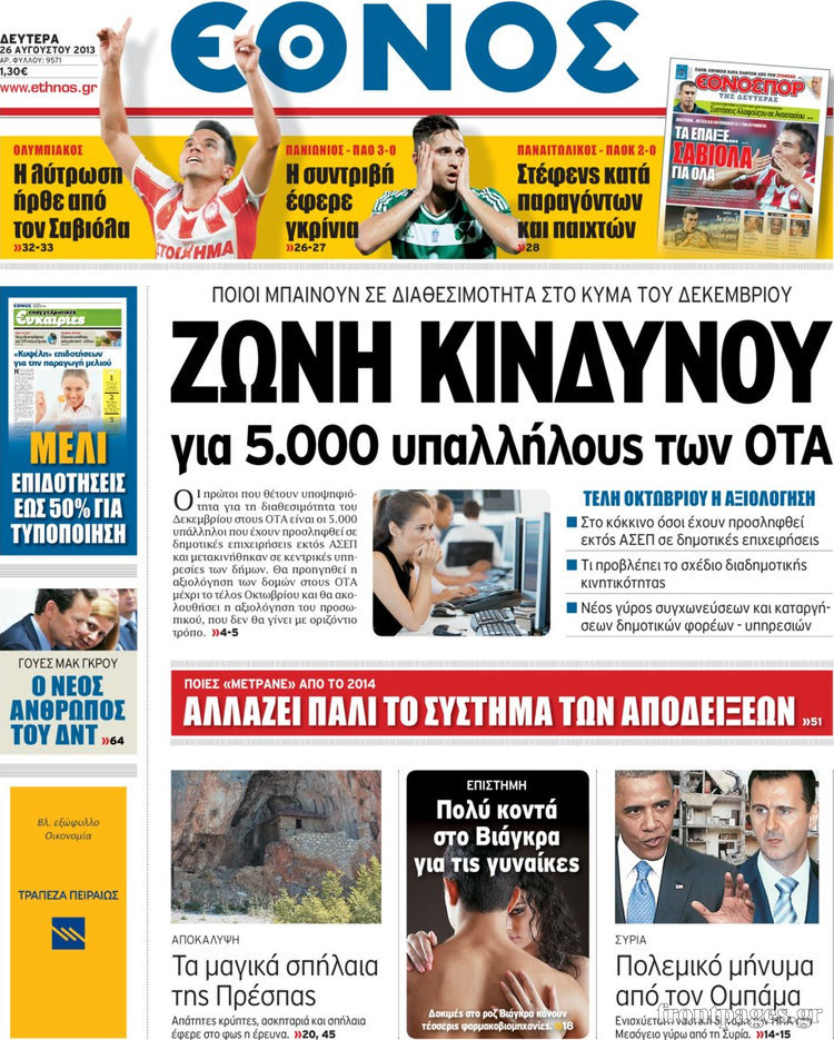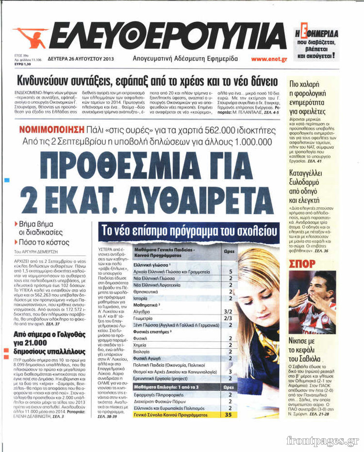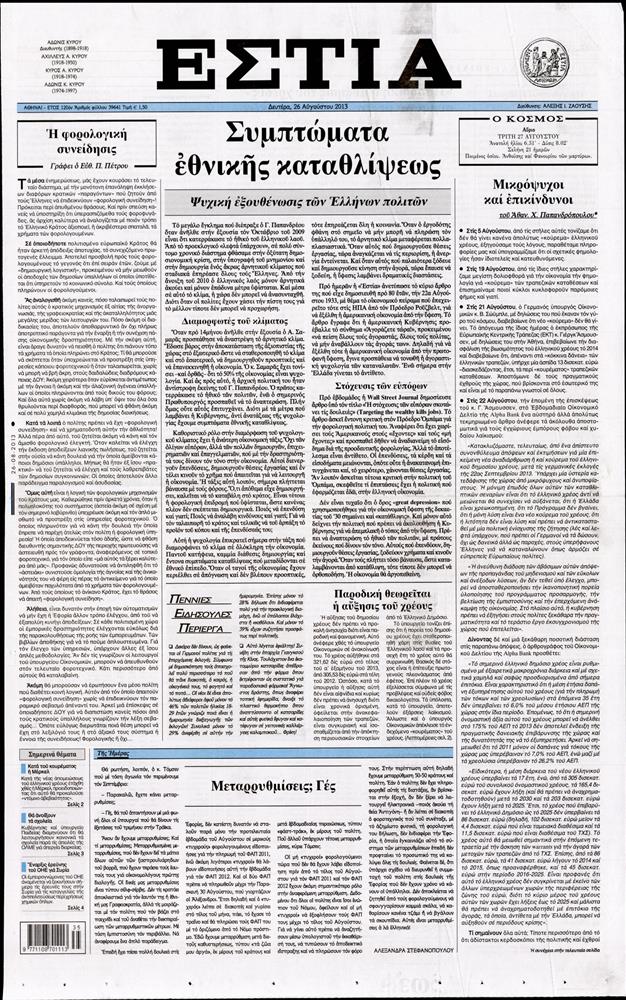 Οι πολιτικές εφημερίδες Enikos Newsroom 08:25, Δευτέρα 26 Αυγούστου 2013 Media Οι πολιτικές εφημερίδες Διαβάστε τα πρωτοσέλιδα των πολιτικών εφημερίδων: ΕΦΗΜΕΡΙΔΕΣ ΠΟΛΙΤΙΚΕΣ ΕΦΗΜΕΡΙΔΕΣ ΠΡΩΤΟΣΕΛΙΔΑ Μοιράσου το: σχολίασε κι εσύ (0 σχόλια) Ακολουθήστε το enikos.gr στο Google News και μάθετε πρώτοι όλες τις ειδήσεις Δείτε όλες τις τελευταίες ειδήσεις από την Ελλάδα και τον Κόσμο στο enikos.gr Ειδήσεις Ροή Ειδήσεων 1 ώρα πριν Μητσοτάκης σε αγρότες: Είμαστε ανοιχτοί στον διάλογο, αλλά όχι στο παράλογο – Η διεκδίκηση αιτημάτων οφείλει να γίνεται με σεβασμό στο κοινωνικό σύνολο 1 ώρα πριν Γρίπη: «Καμπανάκι» από τους επιστήμονες για έξαρση κρουσμάτων στις γιορτές – Ποιοι κινδυνεύουν και πώς προστατευόμαστε 3 ώρες πριν Γαλλία: Έτοιμοι για Χριστούγεννα στους δρόμους οι αγρότες – «Οι δεσμεύσεις της κυβέρνησης δεν είναι αρκετές» 2 ώρες πριν Φοροδιαφυγή και «κενό ΦΠΑ»: Πώς τα ψηφιακά εργαλεία έφεραν δισεκατομμύρια στα ταμεία του Δημοσίου 3 ώρες πριν Τζορτζ Κλούνεϊ: Πέθανε η αδελφή του, Άντα Ζάιντλερ – «Η ηρωίδα μου» 1 ώρα πριν Τα άστρα ευνοούν σκανδαλωδώς 4 ζώδια – «Εμφανίζονται ξαφνικά ευκαιρίες γιατί αποφασίζετε να αφήσετε πίσω το παρελθόν» 2 ώρες πριν Οι γονείς της θέλουν να έχουν πρόσβαση στον τραπεζικό της λογαριασμό – «Επιμένουν πως στις οικογένειες δεν υπάρχουν μυστικά» 3 ώρες πριν Αρχαιολόγοι ανακάλυψαν κάτι που δεν περίμεναν: Τα μαθηματικά υπήρχαν πριν από τους αριθμούς – Το μυστικό που κρύβεται πίσω από περίεργα αγγεία 8.000 ετών 1 ημέρα πριν Enerwave: Το νέο «ρεύμα» στη λιανική ενέργειας που αλλάζει την εμπειρία του καταναλωτή 5 λεπτά πριν Mente Fuerte για Μαρία Σολωμού: «Ό,τι και αν έχει γίνει, είναι οικογένειά μου» 14 λεπτά πριν Κως: Συνελήφθη 27χρονος για διακίνηση ναρκωτικών – Έπαιρνε εντολές από κρατούμενο 16 λεπτά πριν Προπονήτρια γυμναστικής που έχασε 9 κιλά αποκαλύπτει: «Αυτοί είναι οι 5 παράγοντες που εμποδίζουν την απώλεια βάρους» 21 λεπτά πριν Klavdia για Γιώργο Λιάγκα: «Ήμουν προετοιμασμένη, δεν μπορούσα να το αφήσω να με επηρεάσει» 29 λεπτά πριν Νέα περιστατικά κατανάλωσης αλκοόλ από ανηλίκους στην Κρήτη: Δύο παιδιά στο νοσοκομείο – 3 συλλήψεις ENIKOS NETWORK Άσκηση: η «ασπίδα» του εγκεφάλου απέναντι στη γήρανση Έχετε καταρροή και φαγούρα στα μάτια στις γιορτές; Μπορεί να ευθύνεται το σύνδρομο χριστουγεννιάτικου δέντρου Ανοιχτά τα καταστήματα σήμερα – Μέχρι τι ώρα μπορείτε να κάνετε τις αγορές σας Πρωτοχρονιά 2026: Πόσο θα κοστίσει φέτος η βασιλόπιτα – Οι τιμές σε ζαχαροπλαστεία, φούρνους και σούπερ μάρκετ Χαρτογραφώντας το «σημείο χωρίς επιστροφή»: Για πρώτη φορά αποκαλύπτεται με λεπτομέρεια το ακανθώδες όριο της ατμόσφαιρας τ... Η Google καταργεί τη λειτουργία «dark web report» – Πώς θα μπορούν οι χρήστες να διαγράφουν τα δεδομένα τους περισσότερα 09:43 , Κυριακή 21 Δεκεμβρίου 2025 Το λάθος στην ταινία Die Hard που άφησε άναυδους τους θαυμαστές του Μπρους Γουίλις Ένας φανατικός των ταινιών άφησε άναυδους τους θαυμαστές του Die Hard, επισημαίνοντας τρία βασ... 08:13 , Κυριακή 21 Δεκεμβρίου 2025 Άγιος έρωτας: Ένας καταστροφικός σεισμός χτυπά τη Στέρνα Καταιγιστικές είναι οι εξελίξεις στα δυο τελευταία, συγκλονιστικά επεισόδια του 2025 της σειρά... 08:00 , Κυριακή 21 Δεκεμβρίου 2025 Σήμερα με τη Realnews: Ό,τι και αν αγοράσεις, σκανάρεις και κερδίζεις! Σήμερα με τη Realnews: Ό,τι και αν αγοράσεις, σκανάρεις και κερδίζεις! Με το PADU app, το κορυ... 07:00 , Κυριακή 21 Δεκεμβρίου 2025 Σήμερα με τη Realnews: Instyle, μαζί Drive και Realnews Geopolitics Σήμ