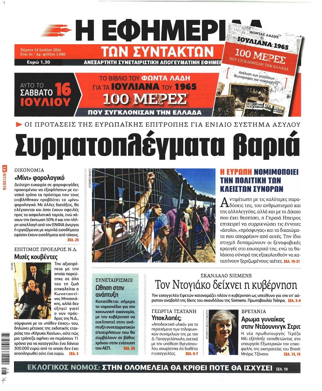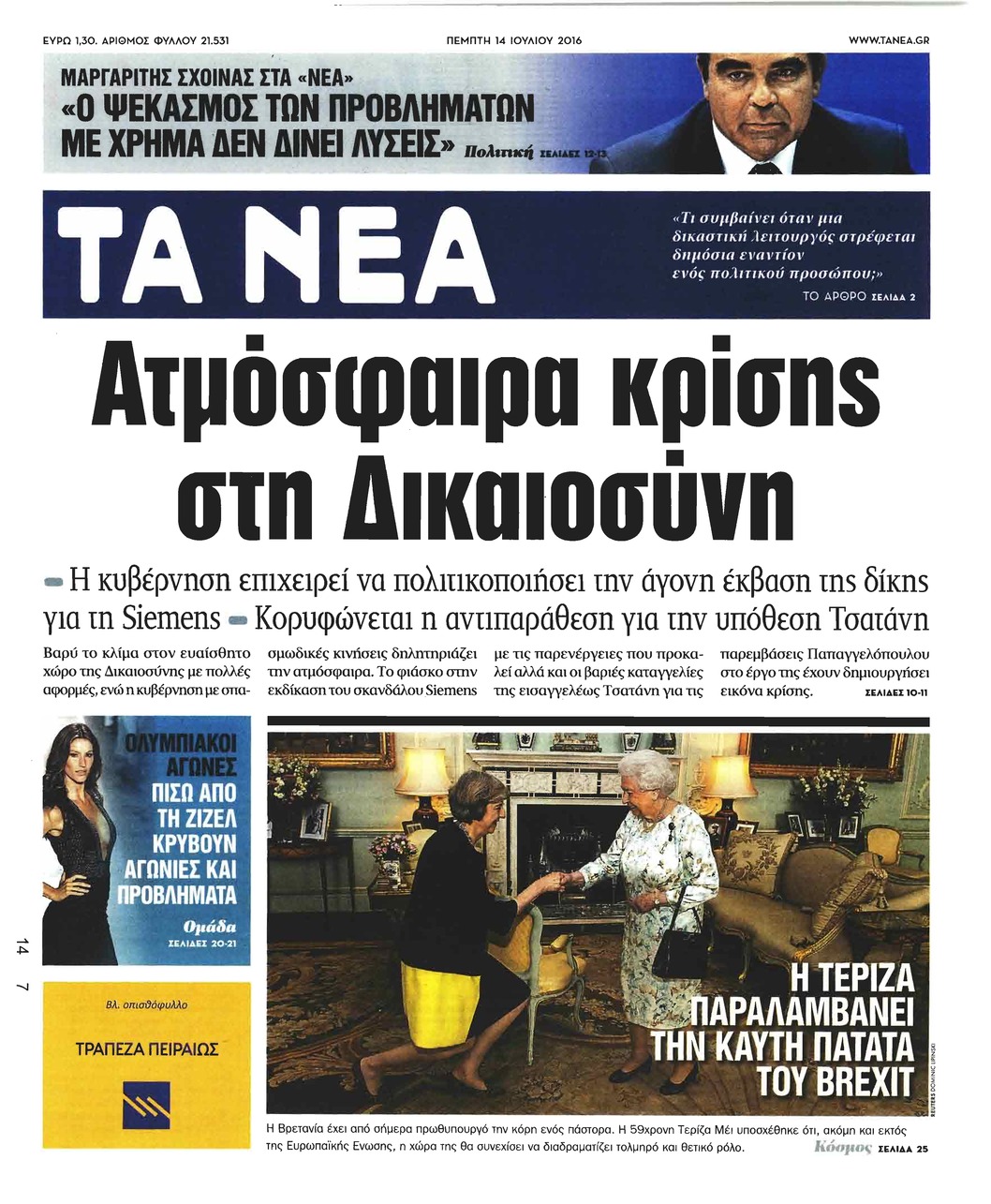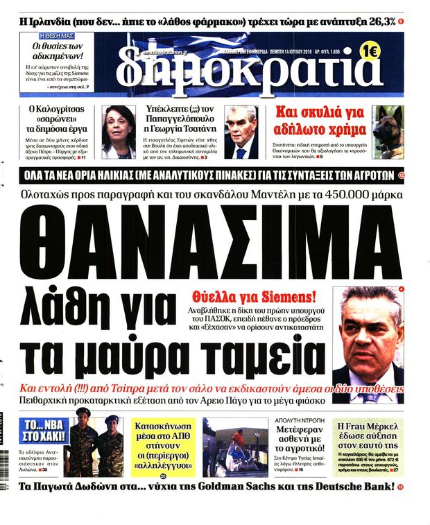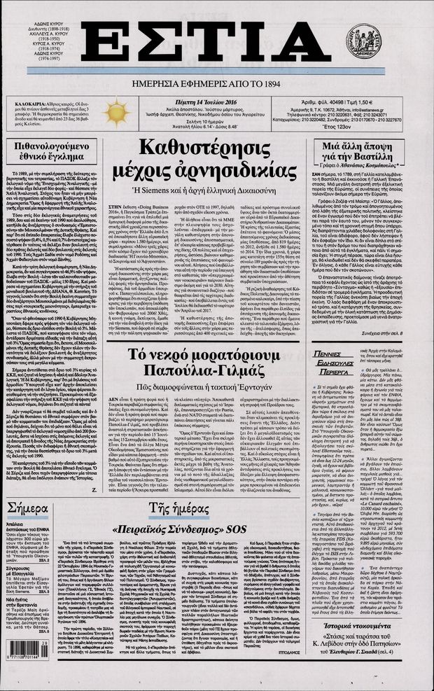 Οι πολιτικές εφημερίδες 14/7/2016 Enikos Newsroom 05:49, Πέμπτη 14 Ιουλίου 2016 Media Διαβάστε τα σημερινά πρωτοσέλιδα των πολιτικών εφημερίδων: ΠΟΛΙΤΙΚΕΣ ΕΦΗΜΕΡΙΔΕΣ ΠΡΩΤΟΣΕΛΙΔΑ Μοιράσου το: σχολίασε κι εσύ (0 σχόλια) Ακολουθήστε το enikos.gr στο Google News και μάθετε πρώτοι όλες τις ειδήσεις Δείτε όλες τις τελευταίες ειδήσεις από την Ελλάδα και τον Κόσμο στο enikos.gr Ειδήσεις Ροή Ειδήσεων 54 λεπτά πριν Χριστούγεννα στα μπλόκα: Επιμένουν στις κινητοποιήσεις τους οι αγρότες – Ανοίγουν τα διόδια το Σαββατοκύριακο 1 ώρα πριν Ουκρανία: Η άνευ προηγουμένου επίθεση σε ρωσικό τάνκερ στη Μεσόγειο και το μήνυμα προς στον Πούτιν – Το «μακρύ χέρι» του Κιέβου 31 λεπτά πριν Πούτιν: Τα μηνύματα σε Ευρώπη και ΝΑΤΟ από το μαραθώνιο «σόου» του – Η απαίτηση για «σεβασμό» και η ειρήνη «με τους όρους» της Μόσχας 1 ώρα πριν Τραμπ: Δεν αποκλείει την πιθανότητα ενός πολέμου στη Βενεζουέλα – «Ο Μαδούρο ξέρει καλύτερα από τον καθένα τι ακριβώς θέλω» 2 ώρες πριν Συνεχίζει να προκαλεί ο Μίτσκοσκι: «Για μένα το όνομα Μακεδονία είναι ιερό» 4 ώρες πριν Πούτιν: «Ναι, είμαι ερωτευμένος» – Βίντεο από τη σπάνια προσωπική παραδοχή του 3 ώρες πριν Αριθμολογία: Οι άνθρωποι που έχουν γεννηθεί αυτές τις 4 ημερομηνίες, συχνά παρεξηγούνται – «Η καλοσύνη τους κρύβει τεράστια δύναμη» 2 ώρες πριν Ύπνος: Μια κρυφή κατάσταση του εγκεφάλου πριν από τον ύπνο μπορεί να είναι το “κλειδί” για υψηλή ευφυΐα και δημιουργικότητα 4 ώρες πριν Ξεχάστε το καθάρισμα το Σαββατοκύριακο: Ο «κανόνας των 20 λεπτών» που θα σας λύσει τα χέρια 32 λεπτά πριν Ανακαλύφθηκαν αρχαία χρυσά νομίσματα 2.200 ετών που απεικονίζουν τον θεό Απόλλωνα – Η άγνωστη σύνδεση με τον Φίλιππο Β΄ της Μακεδονίας 2 λεπτά πριν Γάζα: Ισραηλινό πλήγμα σε σχολείο που είχαν καταφύγει εκτοπισμένοι – Τουλάχιστον έξι νεκροί 16 λεπτά πριν Ολυμπιακός – Βιλερμπάν 107-84: Επιστροφή στις νίκες με… προπόνηση 22 λεπτά πριν Νέος Κόσμος: Συνελήφθη 41χρονος με ένταλμα από την Τουρκία για εμπόριο ναρκωτικών και ληστεία 31 λεπτά πριν Πούτιν: Τα μηνύματα σε Ευρώπη και ΝΑΤΟ από το μαραθώνιο «σόου» του – Η απαίτηση για «σεβασμό» και η ειρήνη «με τους όρους» της Μόσχας 32 λεπτά πριν Ανακαλύφθηκαν αρχαία χρυσά νομίσματα 2.200 ετών που απεικονίζουν τον θεό Απόλλωνα – Η άγνωστη σύνδεση με τον Φίλιππο Β΄ της Μακεδονίας ENIKOS NETWORK Το ΕΚΑΒ τιμήθηκε από την Ακαδημία Αθηνών για τα 40 χρόνια προσφοράς του Έχετε πραγματικά μεγάλη καρδιά; 10 χαρακτηριστικά όσων έχουν καλοσύνη Αναστολή μέτρων αναγκαστικής εκτέλεσης για κτηνοτρόφους που πλήττονται από την ευλογιά των αιγοπροβάτων Πλήρης επάρκεια προϊόντων στις λαϊκές της Αττικής, παρά τις αγροτικές κινητοποιήσεις – Τι απαντούν οι πωλητές Χαρτογραφώντας το «σημείο χωρίς επιστροφή»: Για πρώτη φορά αποκαλύπτεται με λεπτομέρεια το ακανθώδες όριο της ατμόσφαιρας τ... Η Google καταργεί τη λειτουργία «dark web report» – Πώς θα μπορούν οι χρήστες να διαγράφουν τα δεδομένα τους περισσότερα 22:42 , Παρασκευή 19 Δεκεμβρίου 2025 Γιώργος Γιαννόπουλος για “Το σόι σου”: “Είναι ευτυχία και ευλογία αυτή η σειρά” «Είναι ευτυχία και ευλογία η συγκυρία αυτής της σειράς», θα πει ο Γιώργος Γιαννόπουλος -ο αγαπ... 20:37 , Παρασκευή 19 Δεκεμβρίου 2025 Don’t Forget The Lyrics: Η Έλλη Κοκκίνου υποδέχεται 4 παίκτες που θα κάνουν τα πάντα για να μη χάσουν ούτε… μισή λέξη από τους στίχους Το «Don’t Forget The Lyrics» επιστρέφει απόψε, Παρασκευή 19 Δεκεμβρίου, στις 21:00 με νέο επει... 19:31 , Παρασκευή 19 Δεκεμβρίου 2025 GNTM: Απόψε ο