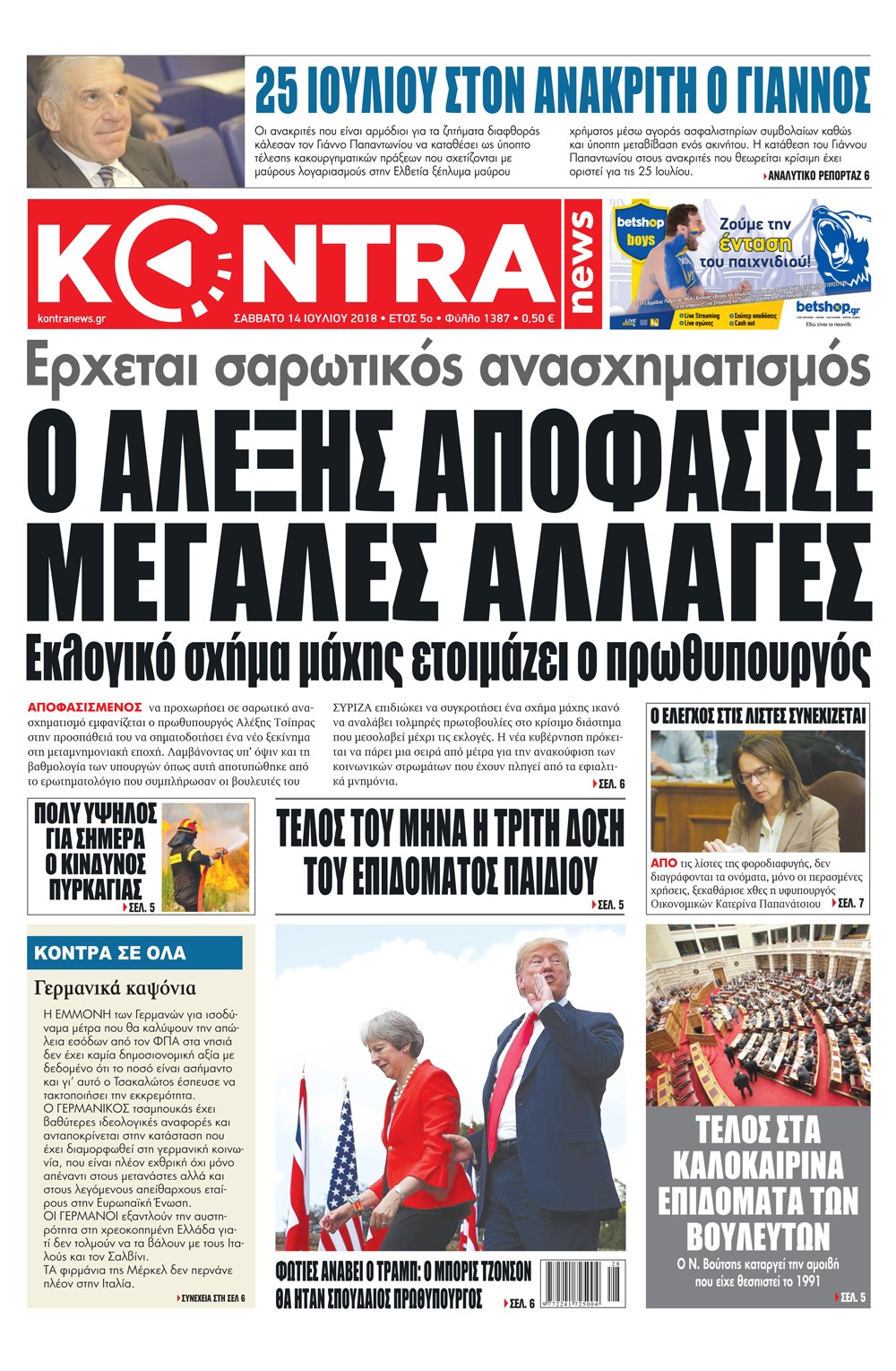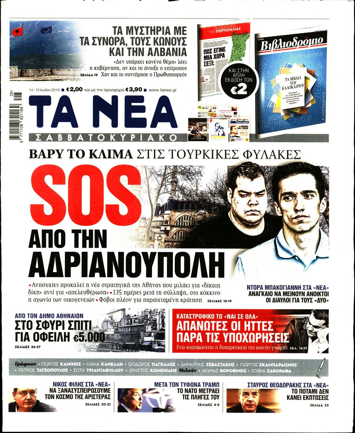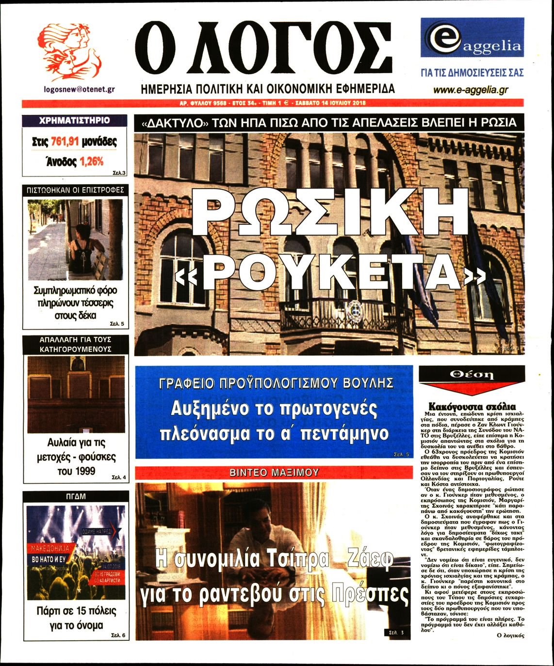 Οι πολιτικές εφημερίδες 14/7/2018 Enikos Newsroom 06:10, Σάββατο 14 Ιουλίου 2018 Media Διαβάστε τα σημερινά πρωτοσέλιδα των πολιτικών εφημερίδων. ΠΟΛΙΤΙΚΕΣ ΕΦΗΜΕΡΙΔΕΣ ΠΡΩΤΟΣΕΛΙΔΑ Μοιράσου το: σχολίασε κι εσύ (0 σχόλια) Ακολουθήστε το enikos.gr στο Google News και μάθετε πρώτοι όλες τις ειδήσεις Δείτε όλες τις τελευταίες ειδήσεις από την Ελλάδα και τον Κόσμο στο enikos.gr Ειδήσεις Ροή Ειδήσεων 8 ώρες πριν Χριστούγεννα στα μπλόκα οι αγρότες: Άνοιξαν στα διόδια και μοίρασαν προϊόντα στους πολίτες – Νέα σύσκεψη την Κυριακή στη Νίκαια 7 ώρες πριν Ρετζέπ Ταγίπ Ερντογάν: Δεν έχουμε καμία βλέψη στα εδάφη ή την κυριαρχία κανενός – Δεν θα επιτρέψουμε να παραβιαστούν τα δικαιώματά μας 8 ώρες πριν H ακτοφυλακή των ΗΠΑ κατάσχεσε και δεύτερο τάνκερ στα ανοιχτά της Βενεζουέλας – Δείτε βίντεο 9 ώρες πριν Κύκλωμα διακίνησης ναρκωτικών σε σχολεία: Τηλεφωνούσαν στους ανηλίκους την ώρα του μαθήματος – Οι διάλογοι-σοκ, τα «ψευδώνυμα» και τα βασανιστήρια 51 λεπτά πριν Βλαντίμιρ Πούτιν: «Έτοιμος για διάλογο» με τον Εμανουέλ Μακρόν, εφόσον «υπάρχει αμοιβαία πολιτική βούληση» 59 λεπτά πριν Οπτική ψευδαίσθηση: Μόνο το 2% των ανθρώπων θα βρει την πεταλούδα σε 15 δευτερόλεπτα 1 ώρα πριν Μήλο vs μπανάνα: Ποιο φρούτο έχει περισσότερες φυτικές ίνες, σύμφωνα με διαιτολόγους – Τα οφέλη τους για την υγεία 2 ώρες πριν Τα ζώδια σήμερα, Κυριακή 21 Δεκεμβρίου: Αιγόκεροι, αποφασίζετε για το επόμενο κεφάλαιο της ζωής σας 22 ώρες πριν Enerwave: Το νέο «ρεύμα» στη λιανική ενέργειας που αλλάζει την εμπειρία του καταναλωτή 47 λεπτά πριν Σήμερα με τη Realnews: Ό,τι και αν αγοράσεις, σκανάρεις και κερδίζεις! 8 λεπτά πριν Εορτολόγιο: Ποιοι γιορτάζουν σήμερα 21 Δεκεμβρίου 13 λεπτά πριν Σήμερα με τη Realnews: Instyle, μαζί Drive και Realnews Geopolitics 18 λεπτά πριν Η Realnews στο www.pressreader.com 27 λεπτά πριν ΔΕΔΔΗΕ: Διακοπές ρεύματος σήμερα (21/12) στην Αθήνα και σε άλλες 5 περιοχές της Αττικής ENIKOS NETWORK Το αφροδισιακό φυλλώδες λαχανικό που μπορεί να προστατεύσει τα μάτια και να καταπολεμήσει τον καρκίνο Το απόλυτο κόλπο με το αυτοκόλλητο για να βγει πρώτη η βαλίτσα σας από το αεροπλάνο «Πολεμική» προετοιμασία από την ευρωπαϊκή βιομηχανία ενέργειας – Η Eurelectric ζητεί «ομπρέλα» προστασίας για τις υποδομές Ακύρωση ΑΦΜ για απάτες – Ποιους βάζει στο στόχαστρο η ΑΑΔΕ Χαρτογραφώντας το «σημείο χωρίς επιστροφή»: Για πρώτη φορά αποκαλύπτεται με λεπτομέρεια το ακανθώδες όριο της ατμόσφαιρας τ... Η Google καταργεί τη λειτουργία «dark web report» – Πώς θα μπορούν οι χρήστες να διαγράφουν τα δεδομένα τους περισσότερα 07:00 , Κυριακή 21 Δεκεμβρίου 2025 Σήμερα με τη Realnews: Instyle, μαζί Drive και Realnews Geopolitics Σήμερα με τη Realnews: Instyle, μαζί Drive και Realnews Geopolitics Instyle Η Άννα Ρεζάν, η Ch... 06:55 , Κυριακή 21 Δεκεμβρίου 2025 Η Realnews στο www.pressreader.com Διαβάστε την ψηφιακή έκδοση της εφημερίδας στην οθόνη του κινητού, του tablet και του υπολογισ... 05:46 , Κυριακή 21 Δεκεμβρίου 2025 Οι αθλητικές εφημερίδες 21/12/2025 Διαβάστε τα πρωτοσέλιδα από τις αθλητικές εφημερίδες, σήμερα 21/12/2025. 05:38 , Κυριακή 21 Δεκεμβρίου 2025 Οι πολιτικές εφημερίδες 21/12/2025 Διαβάστε τα πρωτοσέλιδα από τις πολιτικές εφημερίδες, σήμερα 21/12/2025. ΤΕΛΕΥΤΑΙΕΣ ΕΙΔΗΣΕΙΣ 8 λεπτά πριν Εορτολόγιο: Ποιοι γιορτάζουν σήμερα 21 Δεκεμβρίου 13 λεπτά πριν Σήμερα με τη Realnews: Instyle, μαζί Drive και Realnews Geopolitics 18 λεπτά πριν Η Realnews στο www.pressreader.com 27 λεπτά πριν ΔΕΔΔΗΕ: Διακοπές ρεύματος σήμερα (21/12) στην Αθήνα και... 35 λεπτά πριν Εορταστικό ωράριο: Ανοιχτά σήμερα τα καταστήματα –... 42 λεπτά πριν Κυκλοφοριακές ρυθμί