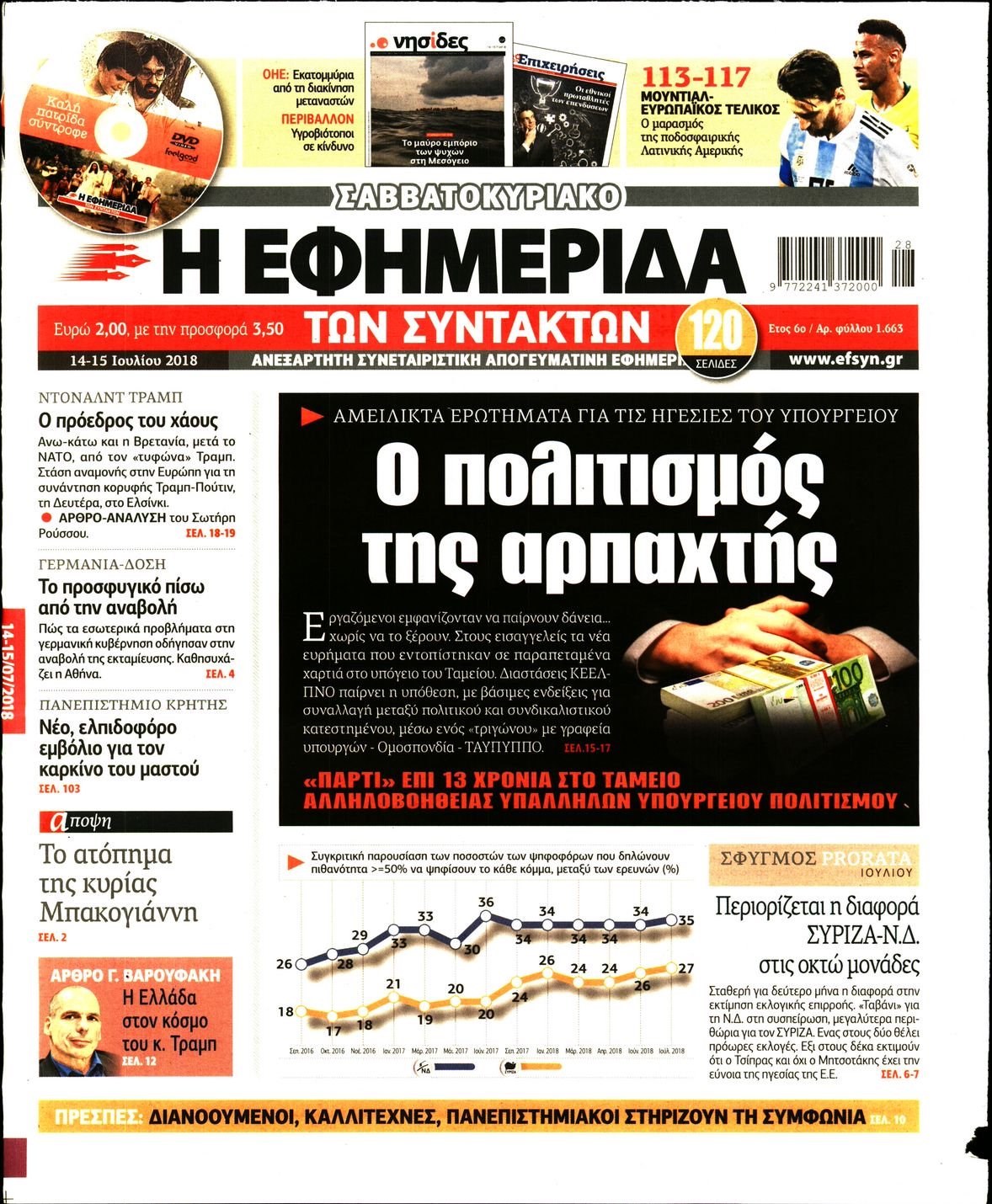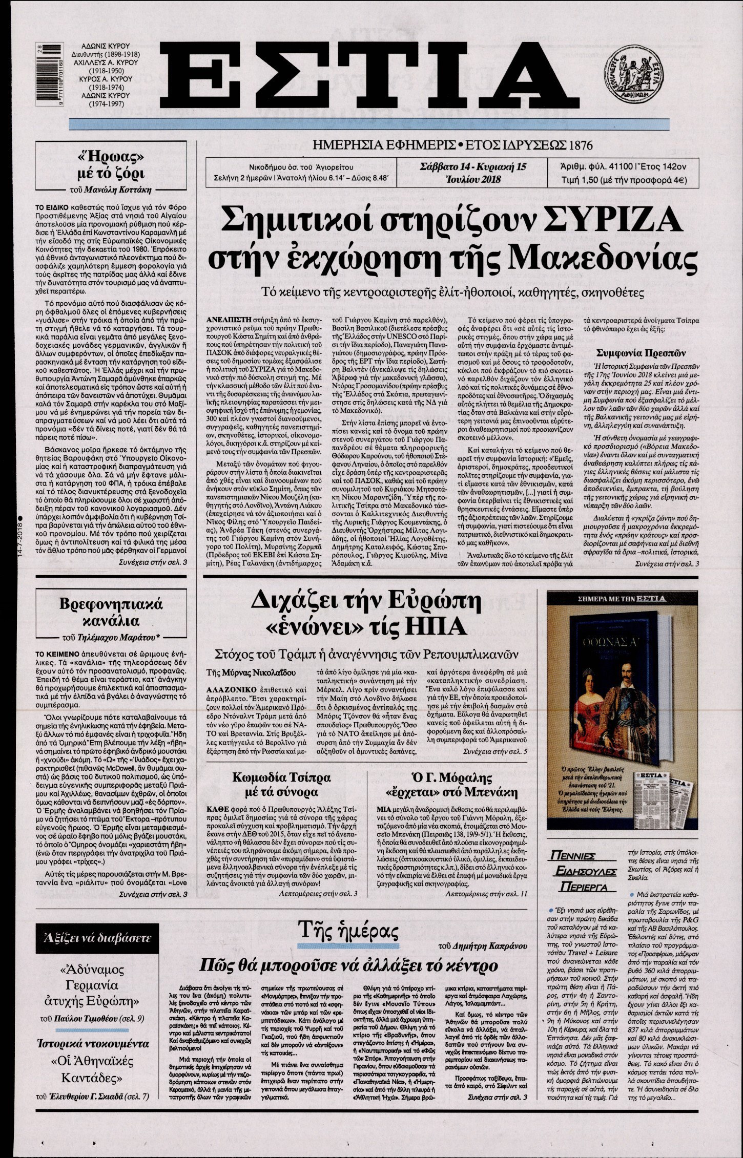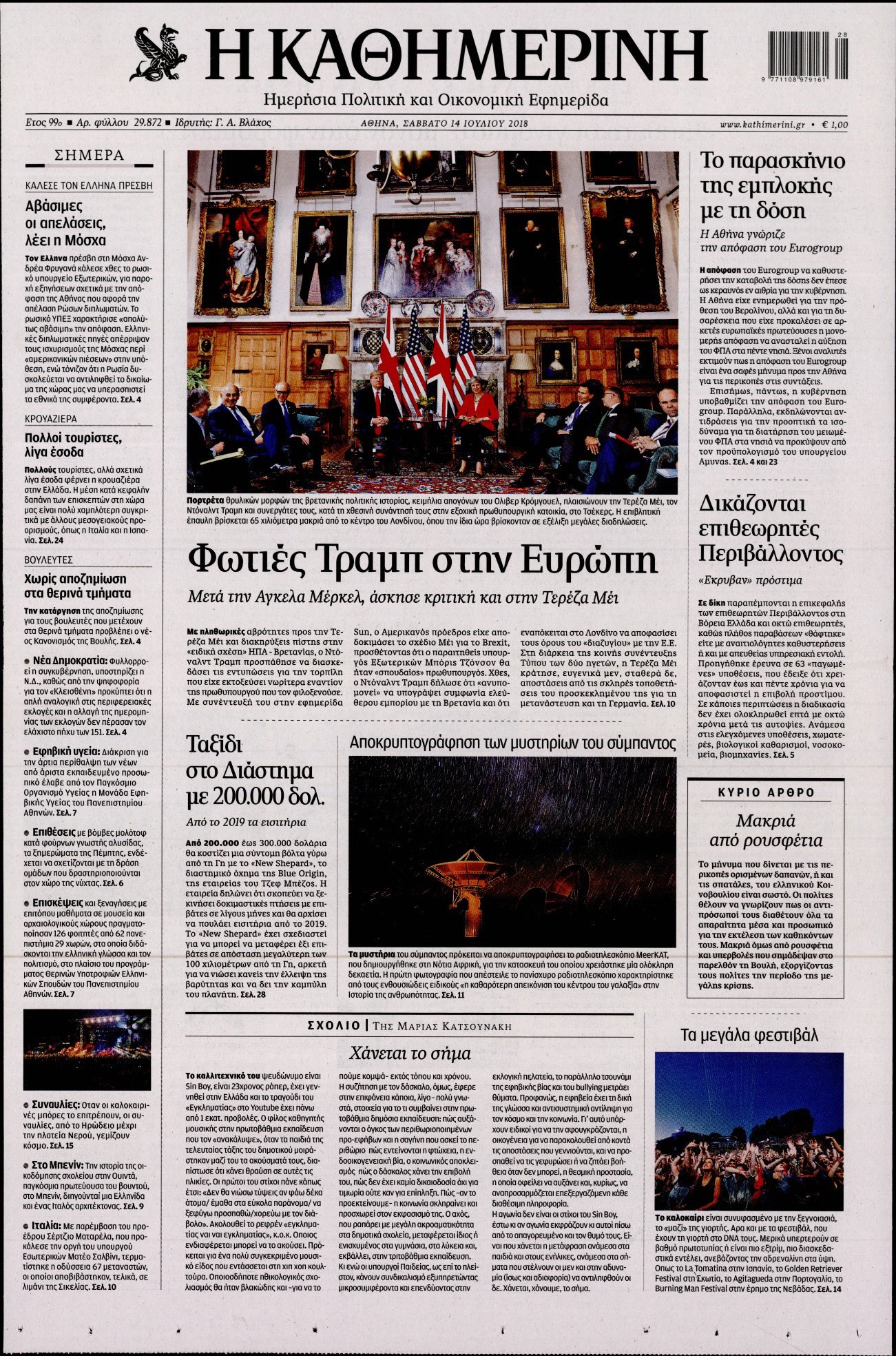 Οι πολιτικές εφημερίδες 14/7/2018 Enikos Newsroom 06:10, Σάββατο 14 Ιουλίου 2018 Media Διαβάστε τα σημερινά πρωτοσέλιδα των πολιτικών εφημερίδων. ΠΟΛΙΤΙΚΕΣ ΕΦΗΜΕΡΙΔΕΣ ΠΡΩΤΟΣΕΛΙΔΑ Μοιράσου το: σχολίασε κι εσύ (0 σχόλια) Ακολουθήστε το enikos.gr στο Google News και μάθετε πρώτοι όλες τις ειδήσεις Δείτε όλες τις τελευταίες ειδήσεις από την Ελλάδα και τον Κόσμο στο enikos.gr Ειδήσεις Ροή Ειδήσεων 8 ώρες πριν Χριστούγεννα στα μπλόκα οι αγρότες: Άνοιξαν στα διόδια και μοίρασαν προϊόντα στους πολίτες – Νέα σύσκεψη την Κυριακή στη Νίκαια 7 ώρες πριν Ρετζέπ Ταγίπ Ερντογάν: Δεν έχουμε καμία βλέψη στα εδάφη ή την κυριαρχία κανενός – Δεν θα επιτρέψουμε να παραβιαστούν τα δικαιώματά μας 8 ώρες πριν H ακτοφυλακή των ΗΠΑ κατάσχεσε και δεύτερο τάνκερ στα ανοιχτά της Βενεζουέλας – Δείτε βίντεο 9 ώρες πριν Κύκλωμα διακίνησης ναρκωτικών σε σχολεία: Τηλεφωνούσαν στους ανηλίκους την ώρα του μαθήματος – Οι διάλογοι-σοκ, τα «ψευδώνυμα» και τα βασανιστήρια 51 λεπτά πριν Βλαντίμιρ Πούτιν: «Έτοιμος για διάλογο» με τον Εμανουέλ Μακρόν, εφόσον «υπάρχει αμοιβαία πολιτική βούληση» 59 λεπτά πριν Οπτική ψευδαίσθηση: Μόνο το 2% των ανθρώπων θα βρει την πεταλούδα σε 15 δευτερόλεπτα 1 ώρα πριν Μήλο vs μπανάνα: Ποιο φρούτο έχει περισσότερες φυτικές ίνες, σύμφωνα με διαιτολόγους – Τα οφέλη τους για την υγεία 2 ώρες πριν Τα ζώδια σήμερα, Κυριακή 21 Δεκεμβρίου: Αιγόκεροι, αποφασίζετε για το επόμενο κεφάλαιο της ζωής σας 22 ώρες πριν Enerwave: Το νέο «ρεύμα» στη λιανική ενέργειας που αλλάζει την εμπειρία του καταναλωτή 47 λεπτά πριν Σήμερα με τη Realnews: Ό,τι και αν αγοράσεις, σκανάρεις και κερδίζεις! 8 λεπτά πριν Εορτολόγιο: Ποιοι γιορτάζουν σήμερα 21 Δεκεμβρίου 13 λεπτά πριν Σήμερα με τη Realnews: Instyle, μαζί Drive και Realnews Geopolitics 18 λεπτά πριν Η Realnews στο www.pressreader.com 27 λεπτά πριν ΔΕΔΔΗΕ: Διακοπές ρεύματος σήμερα (21/12) στην Αθήνα και σε άλλες 5 περιοχές της Αττικής ENIKOS NETWORK Το αφροδισιακό φυλλώδες λαχανικό που μπορεί να προστατεύσει τα μάτια και να καταπολεμήσει τον καρκίνο Το απόλυτο κόλπο με το αυτοκόλλητο για να βγει πρώτη η βαλίτσα σας από το αεροπλάνο «Πολεμική» προετοιμασία από την ευρωπαϊκή βιομηχανία ενέργειας – Η Eurelectric ζητεί «ομπρέλα» προστασίας για τις υποδομές Ακύρωση ΑΦΜ για απάτες – Ποιους βάζει στο στόχαστρο η ΑΑΔΕ Χαρτογραφώντας το «σημείο χωρίς επιστροφή»: Για πρώτη φορά αποκαλύπτεται με λεπτομέρεια το ακανθώδες όριο της ατμόσφαιρας τ... Η Google καταργεί τη λειτουργία «dark web report» – Πώς θα μπορούν οι χρήστες να διαγράφουν τα δεδομένα τους περισσότερα 07:00 , Κυριακή 21 Δεκεμβρίου 2025 Σήμερα με τη Realnews: Instyle, μαζί Drive και Realnews Geopolitics Σήμερα με τη Realnews: Instyle, μαζί Drive και Realnews Geopolitics Instyle Η Άννα Ρεζάν, η Ch... 06:55 , Κυριακή 21 Δεκεμβρίου 2025 Η Realnews στο www.pressreader.com Διαβάστε την ψηφιακή έκδοση της εφημερίδας στην οθόνη του κινητού, του tablet και του υπολογισ... 05:46 , Κυριακή 21 Δεκεμβρίου 2025 Οι αθλητικές εφημερίδες 21/12/2025 Διαβάστε τα πρωτοσέλιδα από τις αθλητικές εφημερίδες, σήμερα 21/12/2025. 05:38 , Κυριακή 21 Δεκεμβρίου 2025 Οι πολιτικές εφημερίδες 21/12/2025 Διαβάστε τα πρωτοσέλιδα από τις πολιτικές εφημερίδες, σήμερα 21/12/2025. ΤΕΛΕΥΤΑΙΕΣ ΕΙΔΗΣΕΙΣ 8 λεπτά πριν Εορτολόγιο: Ποιοι γιορτάζουν σήμερα 21 Δεκεμβρίου 13 λεπτά πριν Σήμερα με τη Realnews: Instyle, μαζί Drive και Realnews Geopolitics 18 λεπτά πριν Η Realnews στο www.pressreader.com 27 λεπτά πριν ΔΕΔΔΗΕ: Διακοπές ρεύματος σήμερα (21/12) στην Αθήνα και... 35 λεπτά πριν Εορταστικό ωράριο: Ανοιχτά σήμερα τα καταστήματα –... 42 λεπτά πριν Κυκλοφοριακές ρυθμί