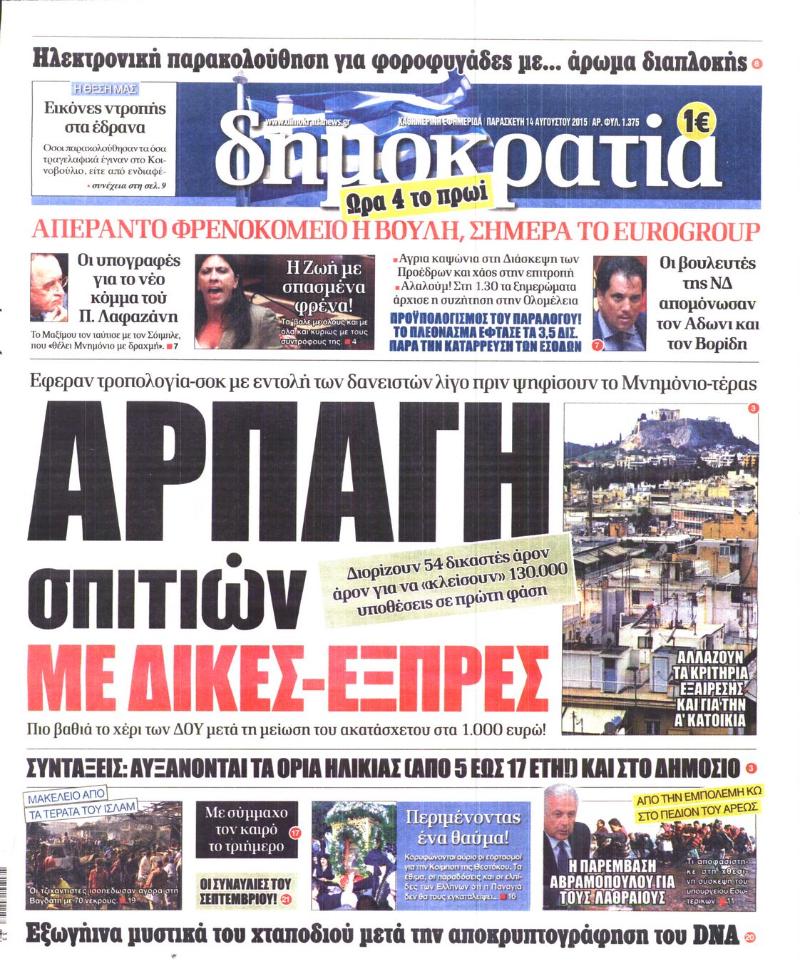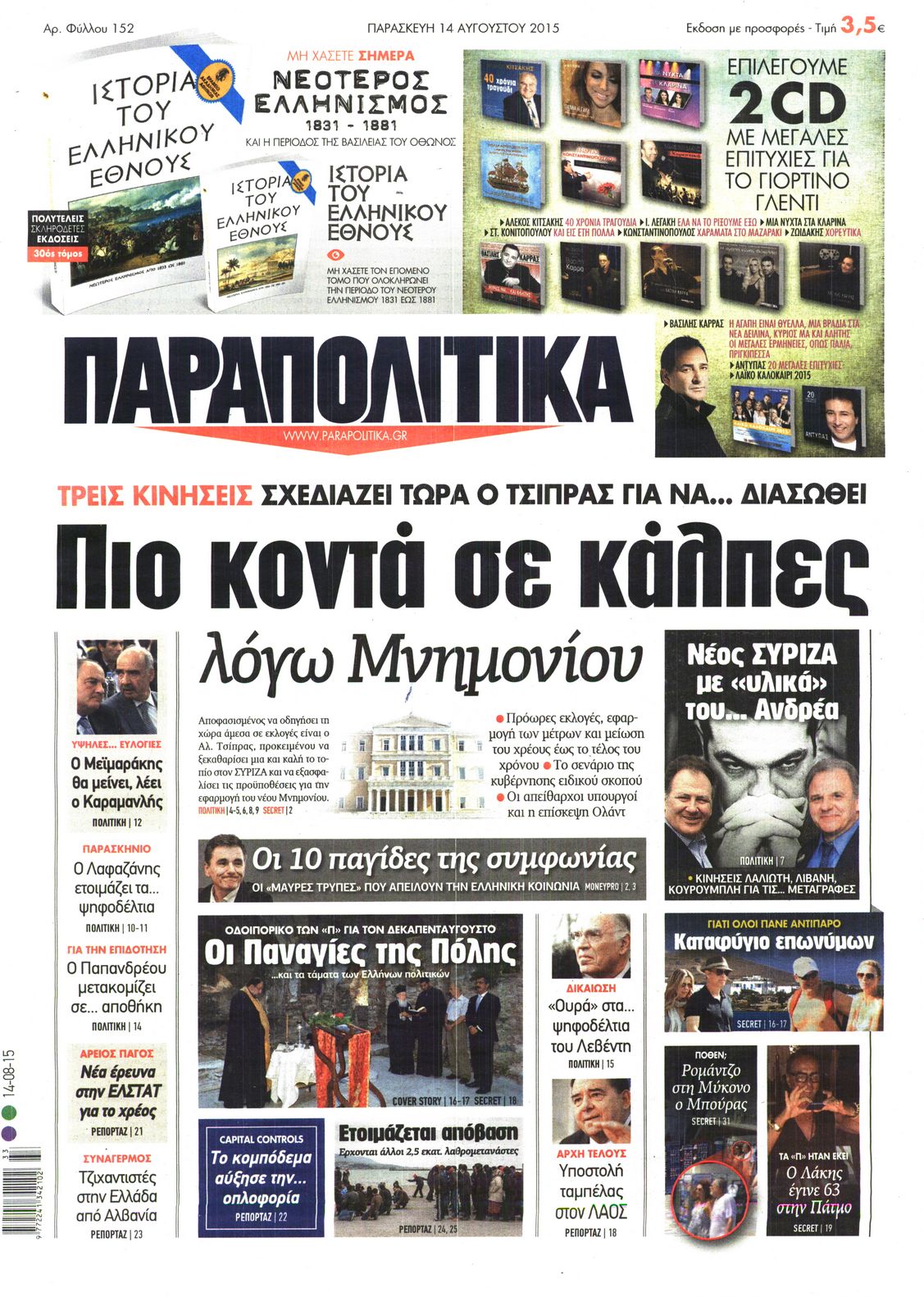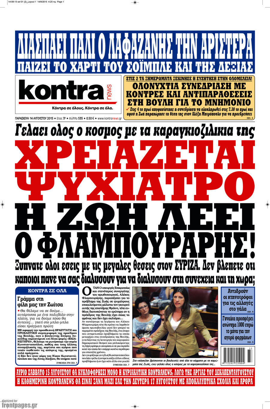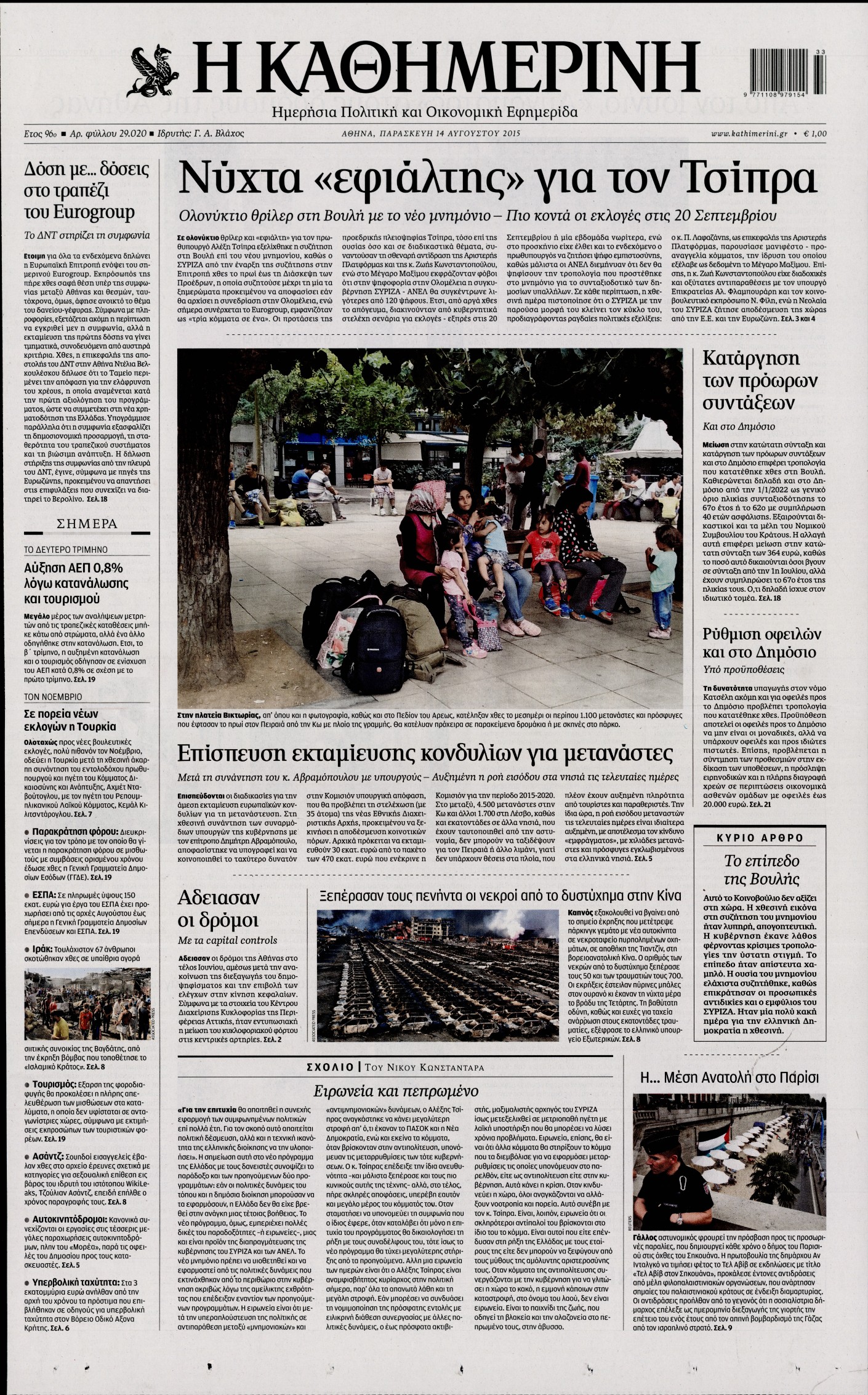 Οι πολιτικές εφημερίδες 14/8/2015 Enikos Newsroom 07:29, Παρασκευή 14 Αυγούστου 2015 Media Διαβάστε τα σημερινά πρωτοσέλιδα των πολιτικών εφημερίδων: ΠΟΛΙΤΙΚΕΣ ΕΦΗΜΕΡΙΔΕΣ ΠΡΩΤΟΣΕΛΙΔΑ Μοιράσου το: σχολίασε κι εσύ (0 σχόλια) Ακολουθήστε το enikos.gr στο Google News και μάθετε πρώτοι όλες τις ειδήσεις Δείτε όλες τις τελευταίες ειδήσεις από την Ελλάδα και τον Κόσμο στο enikos.gr Ειδήσεις Ροή Ειδήσεων 4 ώρες πριν Μεσόγειος: Η διαδρομή του ρωσικού τάνκερ «Qendil» και η στοχευμένη επίθεση της Ουκρανίας με drone – Ο Πούτιν προειδοποίησε για αντίποινα 46 λεπτά πριν Αγρότες: Έκλεισαν για μία ώρα την παρακαμπτήρια της Ιόνιας Οδού στη θέση Χαλίκι 2 ώρες πριν Εμπλοκή και αερομαχίες με οπλισμένα τουρκικά F-16 στο Αιγαίο 2 ώρες πριν Πούτιν: «Ναι, είμαι ερωτευμένος» – Βίντεο από τη σπάνια προσωπική παραδοχή του 49 λεπτά πριν Ανδρέας Λυκουρέντζος: Υπέβαλε την παραίτησή του ο πρόεδρος του ΕΛΓΑ, αλλά δεν έγινε δεκτή – Όλο το παρασκήνιο 59 λεπτά πριν Αριθμολογία: Οι άνθρωποι που έχουν γεννηθεί αυτές τις 4 ημερομηνίες, συχνά παρεξηγούνται – «Η καλοσύνη τους κρύβει τεράστια δύναμη» 3 ώρες πριν Μήπως έχετε χάσει τον εαυτό σας στη σχέση σας; 7 «αθόρυβες» υποχωρήσεις που μάλλον κάνατε, χωρίς να το συνειδητοποιήσετε 2 ώρες πριν Ξεχάστε το καθάρισμα το Σαββατοκύριακο: Ο «κανόνας των 20 λεπτών» που θα σας λύσει τα χέρια 5 ώρες πριν Κουίζ για την παλιά Αθήνα: Αναγνωρίζετε την περιοχή; Έχετε περάσει 100% από εκεί 5 λεπτά πριν ΕΕ: «Κάποια στιγμή θα χρησιμοποιήσουμε τα ρωσικά περιουσιακά στοιχεία» δήλωσε ο πρόεδρος του ΕΛΚ 9 λεπτά πριν Conference League: Καλύτερη επίθεση η ΑΕΚ στη διοργάνωση και 2η σε προσπάθειες στην εστία – Ξεχωρίζουν Πινέδα, Ελίασον και Ρότα 11 λεπτά πριν Έγκυος η Άννα Κορακάκη: «Η οικογένειά μας μεγαλώνει…» – Η αποκάλυψη για το φύλο του μωρού 18 λεπτά πριν Τραγωδία στο Βελεστίνο: Πέθανε ο αντιδήμαρχος Γιάννης Παπαϊωάννου 22 λεπτά πριν Ολυμπιακός – Βιλερμπάν: Μάτωσε στο πρόσωπο ο Παπανικολάου έπειτα από αγκωνιά του Βοτιέ – ΦΩΤΟ ENIKOS NETWORK Το ΕΚΑΒ τιμήθηκε από την Ακαδημία Αθηνών για τα 40 χρόνια προσφοράς του Έχετε πραγματικά μεγάλη καρδιά; 10 χαρακτηριστικά όσων έχουν καλοσύνη Όμιλος ΔΕΗ: Νέα ορόσημα και ενισχυμένη διαφάνεια στην ετήσια Έκθεση Βιώσιμης Ανάπτυξης Έρχονται νέες προσλήψεις σε Δήμο – Όλες οι λεπτομέρειες Χαρτογραφώντας το «σημείο χωρίς επιστροφή»: Για πρώτη φορά αποκαλύπτεται με λεπτομέρεια το ακανθώδες όριο της ατμόσφαιρας τ... Η Google καταργεί τη λειτουργία «dark web report» – Πώς θα μπορούν οι χρήστες να διαγράφουν τα δεδομένα τους περισσότερα 20:37 , Παρασκευή 19 Δεκεμβρίου 2025 Don’t Forget The Lyrics: Η Έλλη Κοκκίνου υποδέχεται 4 παίκτες που θα κάνουν τα πάντα για να μη χάσουν ούτε… μισή λέξη από τους στίχους Το «Don’t Forget The Lyrics» επιστρέφει απόψε, Παρασκευή 19 Δεκεμβρίου, στις 21:00 με νέο επει... 19:31 , Παρασκευή 19 Δεκεμβρίου 2025 GNTM: Απόψε ο μεγάλος τελικός για τους 4 φιναλίστ Έπειτα από μήνες γεμάτους μόδα, δημιουργία και έντονες αναμετρήσεις, το GNTM 2025 κορυφώνεται,... 18:11 , Παρασκευή 19 Δεκεμβρίου 2025 Το σόι σου: Ο Άρης έρχεται στην Ελλάδα για τις γιορτές των Χριστουγέννων – Τι θα δούμε στο αποψινό εορταστικό επεισόδιο Ένα απολαυστικό, εορταστικό επεισόδιο της σειράς “Το σόι σου”, γεμάτο ευτράπελα αλ... 15:15 , Παρασκευή 19 Δεκεμβρίου 2025 Την Κυριακή με τη Realnews: Ό,τι και αν αγοράσεις, σκανάρεις και κερδίζεις! Την Κυριακή με τη Realnews: Ό,τι και αν αγοράσεις, σκανάρεις και κερδίζεις! Με το PADU app, το... ΤΕΛΕΥΤΑΙΕΣ ΕΙΔΗΣΕΙΣ 5 λεπτά πριν ΕΕ: 