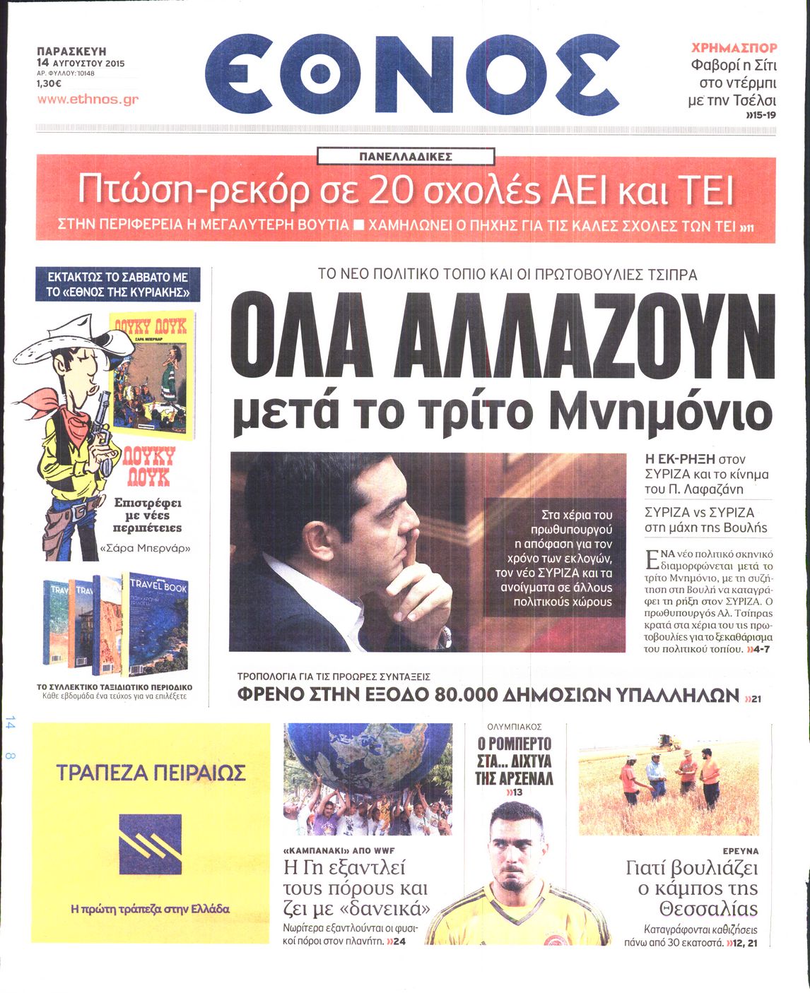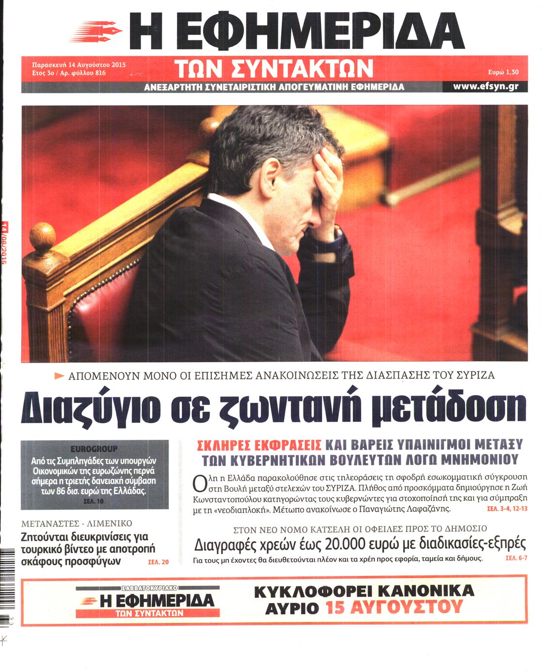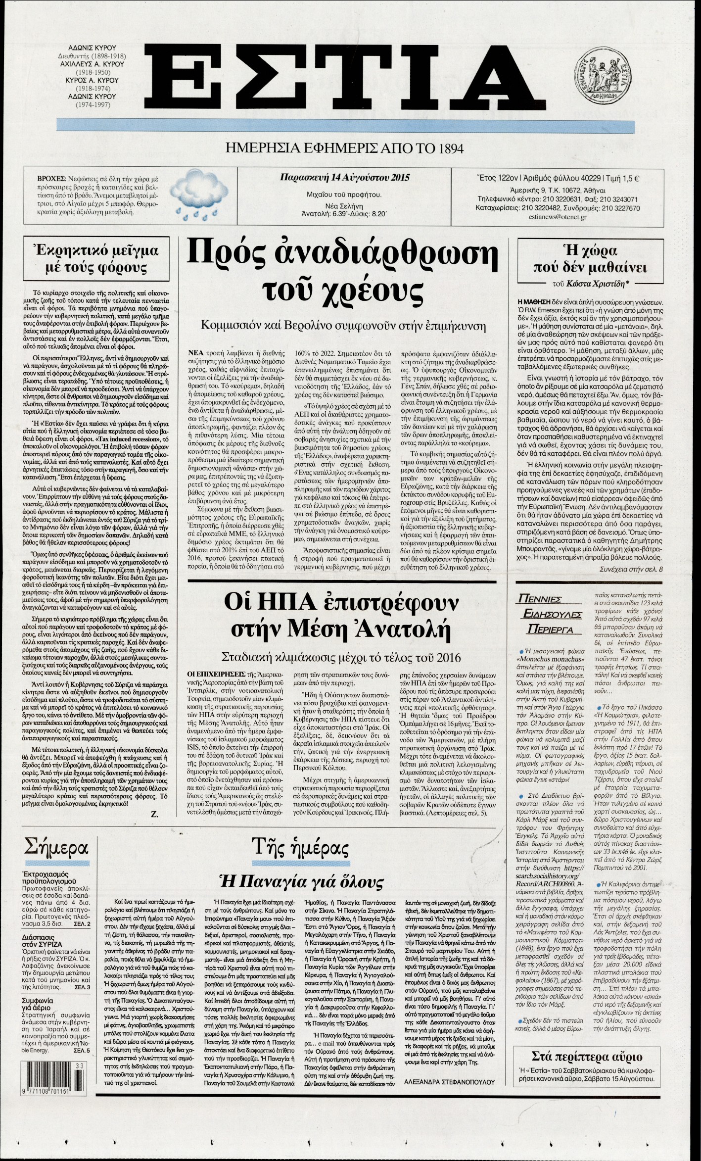 Οι πολιτικές εφημερίδες 14/8/2015 Enikos Newsroom 07:29, Παρασκευή 14 Αυγούστου 2015 Media Διαβάστε τα σημερινά πρωτοσέλιδα των πολιτικών εφημερίδων: ΠΟΛΙΤΙΚΕΣ ΕΦΗΜΕΡΙΔΕΣ ΠΡΩΤΟΣΕΛΙΔΑ Μοιράσου το: σχολίασε κι εσύ (0 σχόλια) Ακολουθήστε το enikos.gr στο Google News και μάθετε πρώτοι όλες τις ειδήσεις Δείτε όλες τις τελευταίες ειδήσεις από την Ελλάδα και τον Κόσμο στο enikos.gr Ειδήσεις Ροή Ειδήσεων 4 ώρες πριν Μεσόγειος: Η διαδρομή του ρωσικού τάνκερ «Qendil» και η στοχευμένη επίθεση της Ουκρανίας με drone – Ο Πούτιν προειδοποίησε για αντίποινα 46 λεπτά πριν Αγρότες: Έκλεισαν για μία ώρα την παρακαμπτήρια της Ιόνιας Οδού στη θέση Χαλίκι 2 ώρες πριν Εμπλοκή και αερομαχίες με οπλισμένα τουρκικά F-16 στο Αιγαίο 2 ώρες πριν Πούτιν: «Ναι, είμαι ερωτευμένος» – Βίντεο από τη σπάνια προσωπική παραδοχή του 49 λεπτά πριν Ανδρέας Λυκουρέντζος: Υπέβαλε την παραίτησή του ο πρόεδρος του ΕΛΓΑ, αλλά δεν έγινε δεκτή – Όλο το παρασκήνιο 59 λεπτά πριν Αριθμολογία: Οι άνθρωποι που έχουν γεννηθεί αυτές τις 4 ημερομηνίες, συχνά παρεξηγούνται – «Η καλοσύνη τους κρύβει τεράστια δύναμη» 3 ώρες πριν Μήπως έχετε χάσει τον εαυτό σας στη σχέση σας; 7 «αθόρυβες» υποχωρήσεις που μάλλον κάνατε, χωρίς να το συνειδητοποιήσετε 2 ώρες πριν Ξεχάστε το καθάρισμα το Σαββατοκύριακο: Ο «κανόνας των 20 λεπτών» που θα σας λύσει τα χέρια 5 ώρες πριν Κουίζ για την παλιά Αθήνα: Αναγνωρίζετε την περιοχή; Έχετε περάσει 100% από εκεί 5 λεπτά πριν ΕΕ: «Κάποια στιγμή θα χρησιμοποιήσουμε τα ρωσικά περιουσιακά στοιχεία» δήλωσε ο πρόεδρος του ΕΛΚ 9 λεπτά πριν Conference League: Καλύτερη επίθεση η ΑΕΚ στη διοργάνωση και 2η σε προσπάθειες στην εστία – Ξεχωρίζουν Πινέδα, Ελίασον και Ρότα 11 λεπτά πριν Έγκυος η Άννα Κορακάκη: «Η οικογένειά μας μεγαλώνει…» – Η αποκάλυψη για το φύλο του μωρού 18 λεπτά πριν Τραγωδία στο Βελεστίνο: Πέθανε ο αντιδήμαρχος Γιάννης Παπαϊωάννου 22 λεπτά πριν Ολυμπιακός – Βιλερμπάν: Μάτωσε στο πρόσωπο ο Παπανικολάου έπειτα από αγκωνιά του Βοτιέ – ΦΩΤΟ ENIKOS NETWORK Το ΕΚΑΒ τιμήθηκε από την Ακαδημία Αθηνών για τα 40 χρόνια προσφοράς του Έχετε πραγματικά μεγάλη καρδιά; 10 χαρακτηριστικά όσων έχουν καλοσύνη Όμιλος ΔΕΗ: Νέα ορόσημα και ενισχυμένη διαφάνεια στην ετήσια Έκθεση Βιώσιμης Ανάπτυξης Έρχονται νέες προσλήψεις σε Δήμο – Όλες οι λεπτομέρειες Χαρτογραφώντας το «σημείο χωρίς επιστροφή»: Για πρώτη φορά αποκαλύπτεται με λεπτομέρεια το ακανθώδες όριο της ατμόσφαιρας τ... Η Google καταργεί τη λειτουργία «dark web report» – Πώς θα μπορούν οι χρήστες να διαγράφουν τα δεδομένα τους περισσότερα 20:37 , Παρασκευή 19 Δεκεμβρίου 2025 Don’t Forget The Lyrics: Η Έλλη Κοκκίνου υποδέχεται 4 παίκτες που θα κάνουν τα πάντα για να μη χάσουν ούτε… μισή λέξη από τους στίχους Το «Don’t Forget The Lyrics» επιστρέφει απόψε, Παρασκευή 19 Δεκεμβρίου, στις 21:00 με νέο επει... 19:31 , Παρασκευή 19 Δεκεμβρίου 2025 GNTM: Απόψε ο μεγάλος τελικός για τους 4 φιναλίστ Έπειτα από μήνες γεμάτους μόδα, δημιουργία και έντονες αναμετρήσεις, το GNTM 2025 κορυφώνεται,... 18:11 , Παρασκευή 19 Δεκεμβρίου 2025 Το σόι σου: Ο Άρης έρχεται στην Ελλάδα για τις γιορτές των Χριστουγέννων – Τι θα δούμε στο αποψινό εορταστικό επεισόδιο Ένα απολαυστικό, εορταστικό επεισόδιο της σειράς “Το σόι σου”, γεμάτο ευτράπελα αλ... 15:15 , Παρασκευή 19 Δεκεμβρίου 2025 Την Κυριακή με τη Realnews: Ό,τι και αν αγοράσεις, σκανάρεις και κερδίζεις! Την Κυριακή με τη Realnews: Ό,τι και αν αγοράσεις, σκανάρεις και κερδίζεις! Με το PADU app, το... ΤΕΛΕΥΤΑΙΕΣ ΕΙΔΗΣΕΙΣ 5 λεπτά πριν ΕΕ: 