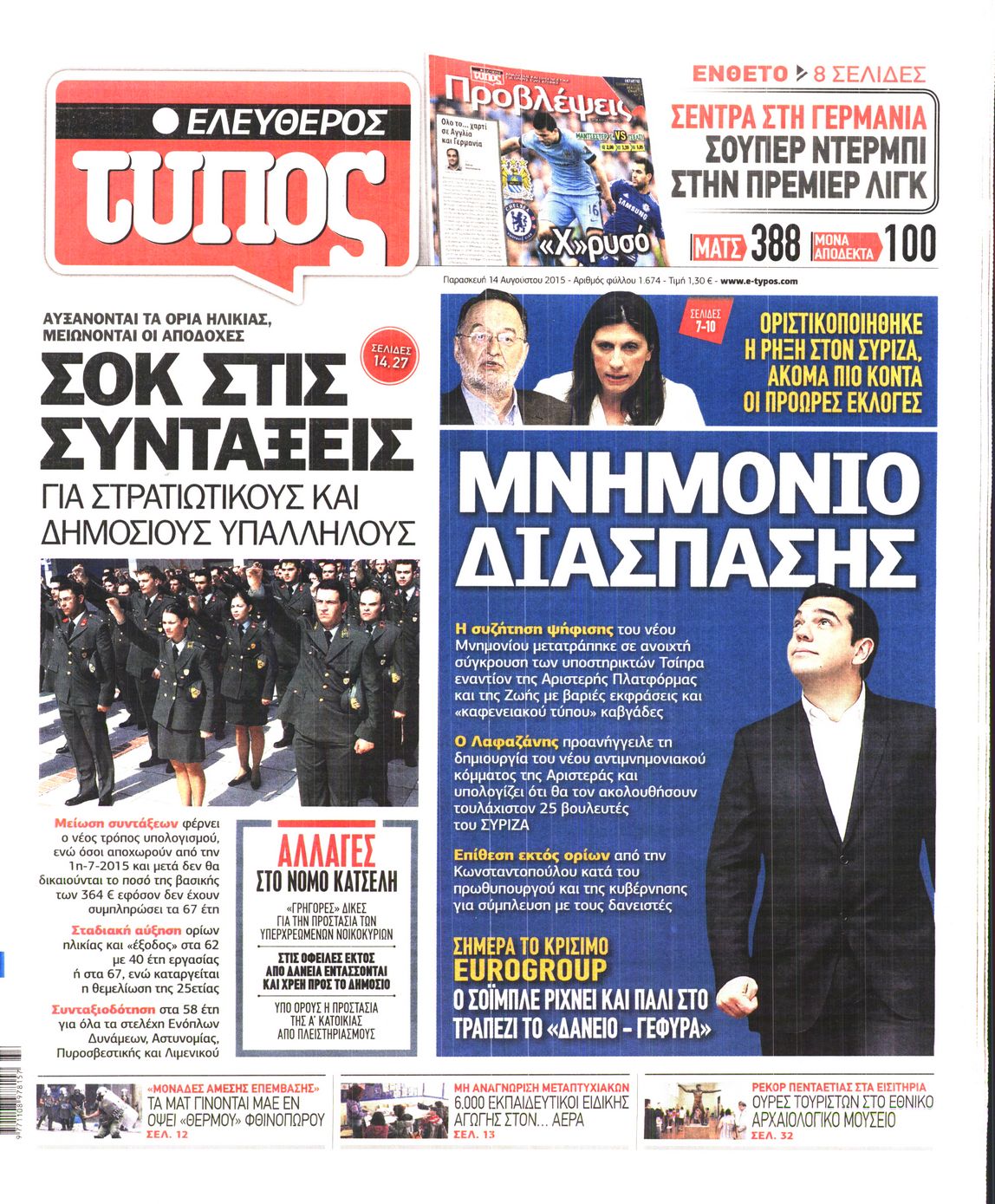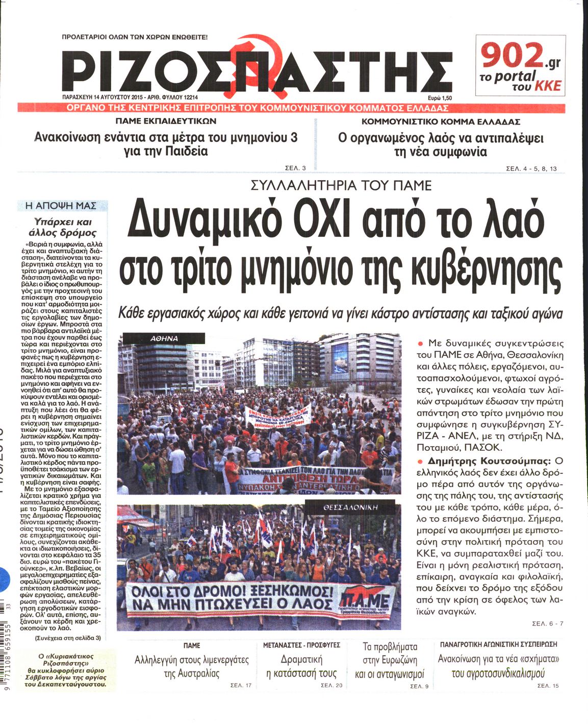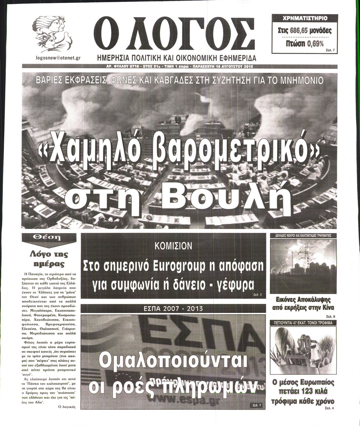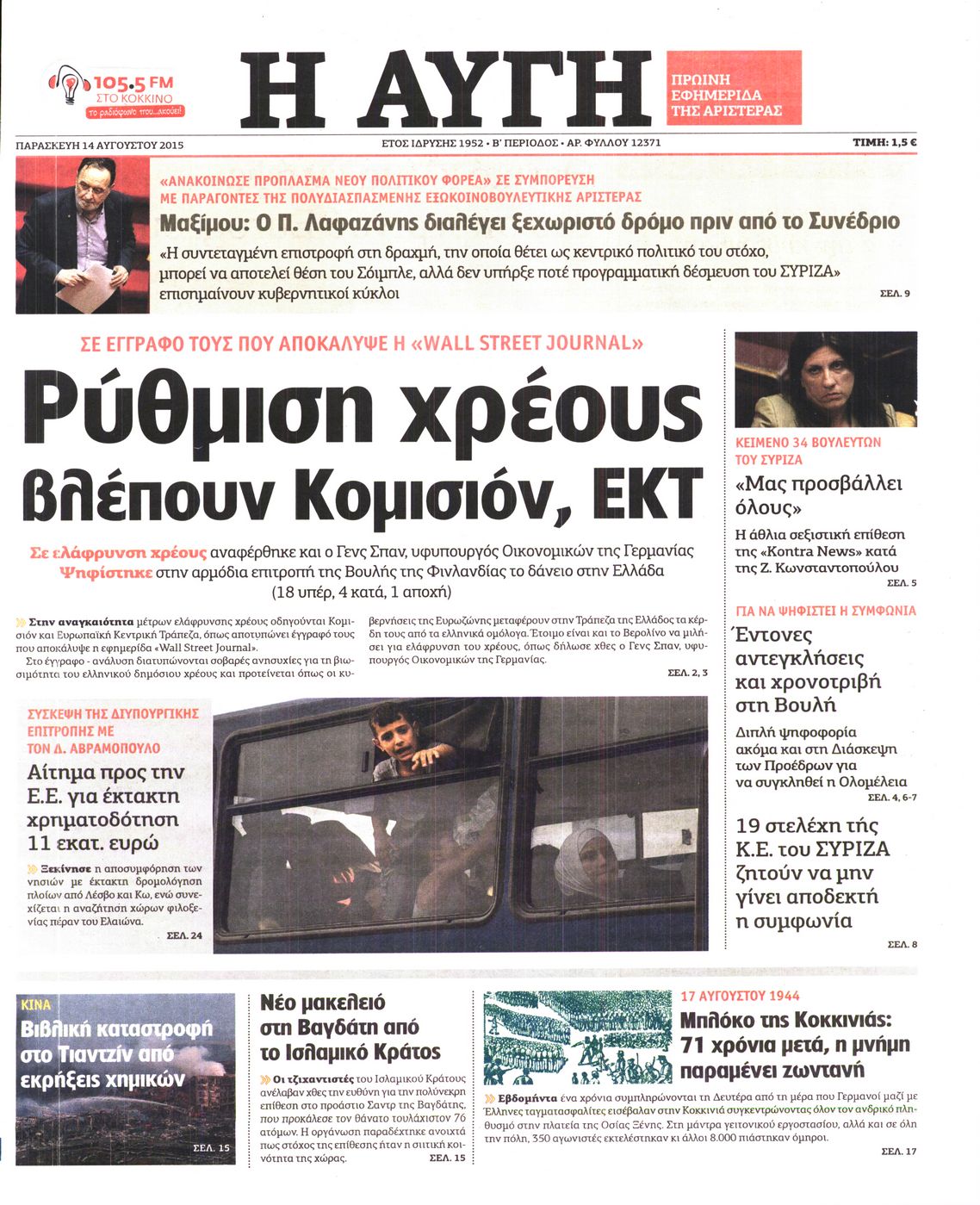 Οι πολιτικές εφημερίδες 14/8/2015 Enikos Newsroom 07:29, Παρασκευή 14 Αυγούστου 2015 Media Διαβάστε τα σημερινά πρωτοσέλιδα των πολιτικών εφημερίδων: ΠΟΛΙΤΙΚΕΣ ΕΦΗΜΕΡΙΔΕΣ ΠΡΩΤΟΣΕΛΙΔΑ Μοιράσου το: σχολίασε κι εσύ (0 σχόλια) Ακολουθήστε το enikos.gr στο Google News και μάθετε πρώτοι όλες τις ειδήσεις Δείτε όλες τις τελευταίες ειδήσεις από την Ελλάδα και τον Κόσμο στο enikos.gr Ειδήσεις Ροή Ειδήσεων 4 ώρες πριν Μεσόγειος: Η διαδρομή του ρωσικού τάνκερ «Qendil» και η στοχευμένη επίθεση της Ουκρανίας με drone – Ο Πούτιν προειδοποίησε για αντίποινα 46 λεπτά πριν Αγρότες: Έκλεισαν για μία ώρα την παρακαμπτήρια της Ιόνιας Οδού στη θέση Χαλίκι 2 ώρες πριν Εμπλοκή και αερομαχίες με οπλισμένα τουρκικά F-16 στο Αιγαίο 2 ώρες πριν Πούτιν: «Ναι, είμαι ερωτευμένος» – Βίντεο από τη σπάνια προσωπική παραδοχή του 49 λεπτά πριν Ανδρέας Λυκουρέντζος: Υπέβαλε την παραίτησή του ο πρόεδρος του ΕΛΓΑ, αλλά δεν έγινε δεκτή – Όλο το παρασκήνιο 59 λεπτά πριν Αριθμολογία: Οι άνθρωποι που έχουν γεννηθεί αυτές τις 4 ημερομηνίες, συχνά παρεξηγούνται – «Η καλοσύνη τους κρύβει τεράστια δύναμη» 3 ώρες πριν Μήπως έχετε χάσει τον εαυτό σας στη σχέση σας; 7 «αθόρυβες» υποχωρήσεις που μάλλον κάνατε, χωρίς να το συνειδητοποιήσετε 2 ώρες πριν Ξεχάστε το καθάρισμα το Σαββατοκύριακο: Ο «κανόνας των 20 λεπτών» που θα σας λύσει τα χέρια 5 ώρες πριν Κουίζ για την παλιά Αθήνα: Αναγνωρίζετε την περιοχή; Έχετε περάσει 100% από εκεί 5 λεπτά πριν ΕΕ: «Κάποια στιγμή θα χρησιμοποιήσουμε τα ρωσικά περιουσιακά στοιχεία» δήλωσε ο πρόεδρος του ΕΛΚ 9 λεπτά πριν Conference League: Καλύτερη επίθεση η ΑΕΚ στη διοργάνωση και 2η σε προσπάθειες στην εστία – Ξεχωρίζουν Πινέδα, Ελίασον και Ρότα 11 λεπτά πριν Έγκυος η Άννα Κορακάκη: «Η οικογένειά μας μεγαλώνει…» – Η αποκάλυψη για το φύλο του μωρού 18 λεπτά πριν Τραγωδία στο Βελεστίνο: Πέθανε ο αντιδήμαρχος Γιάννης Παπαϊωάννου 22 λεπτά πριν Ολυμπιακός – Βιλερμπάν: Μάτωσε στο πρόσωπο ο Παπανικολάου έπειτα από αγκωνιά του Βοτιέ – ΦΩΤΟ ENIKOS NETWORK Το ΕΚΑΒ τιμήθηκε από την Ακαδημία Αθηνών για τα 40 χρόνια προσφοράς του Έχετε πραγματικά μεγάλη καρδιά; 10 χαρακτηριστικά όσων έχουν καλοσύνη Όμιλος ΔΕΗ: Νέα ορόσημα και ενισχυμένη διαφάνεια στην ετήσια Έκθεση Βιώσιμης Ανάπτυξης Έρχονται νέες προσλήψεις σε Δήμο – Όλες οι λεπτομέρειες Χαρτογραφώντας το «σημείο χωρίς επιστροφή»: Για πρώτη φορά αποκαλύπτεται με λεπτομέρεια το ακανθώδες όριο της ατμόσφαιρας τ... Η Google καταργεί τη λειτουργία «dark web report» – Πώς θα μπορούν οι χρήστες να διαγράφουν τα δεδομένα τους περισσότερα 20:37 , Παρασκευή 19 Δεκεμβρίου 2025 Don’t Forget The Lyrics: Η Έλλη Κοκκίνου υποδέχεται 4 παίκτες που θα κάνουν τα πάντα για να μη χάσουν ούτε… μισή λέξη από τους στίχους Το «Don’t Forget The Lyrics» επιστρέφει απόψε, Παρασκευή 19 Δεκεμβρίου, στις 21:00 με νέο επει... 19:31 , Παρασκευή 19 Δεκεμβρίου 2025 GNTM: Απόψε ο μεγάλος τελικός για τους 4 φιναλίστ Έπειτα από μήνες γεμάτους μόδα, δημιουργία και έντονες αναμετρήσεις, το GNTM 2025 κορυφώνεται,... 18:11 , Παρασκευή 19 Δεκεμβρίου 2025 Το σόι σου: Ο Άρης έρχεται στην Ελλάδα για τις γιορτές των Χριστουγέννων – Τι θα δούμε στο αποψινό εορταστικό επεισόδιο Ένα απολαυστικό, εορταστικό επεισόδιο της σειράς “Το σόι σου”, γεμάτο ευτράπελα αλ... 15:15 , Παρασκευή 19 Δεκεμβρίου 2025 Την Κυριακή με τη Realnews: Ό,τι και αν αγοράσεις, σκανάρεις και κερδίζεις! Την Κυριακή με τη Realnews: Ό,τι και αν αγοράσεις, σκανάρεις και κερδίζεις! Με το PADU app, το... ΤΕΛΕΥΤΑΙΕΣ ΕΙΔΗΣΕΙΣ 5 λεπτά πριν ΕΕ: 