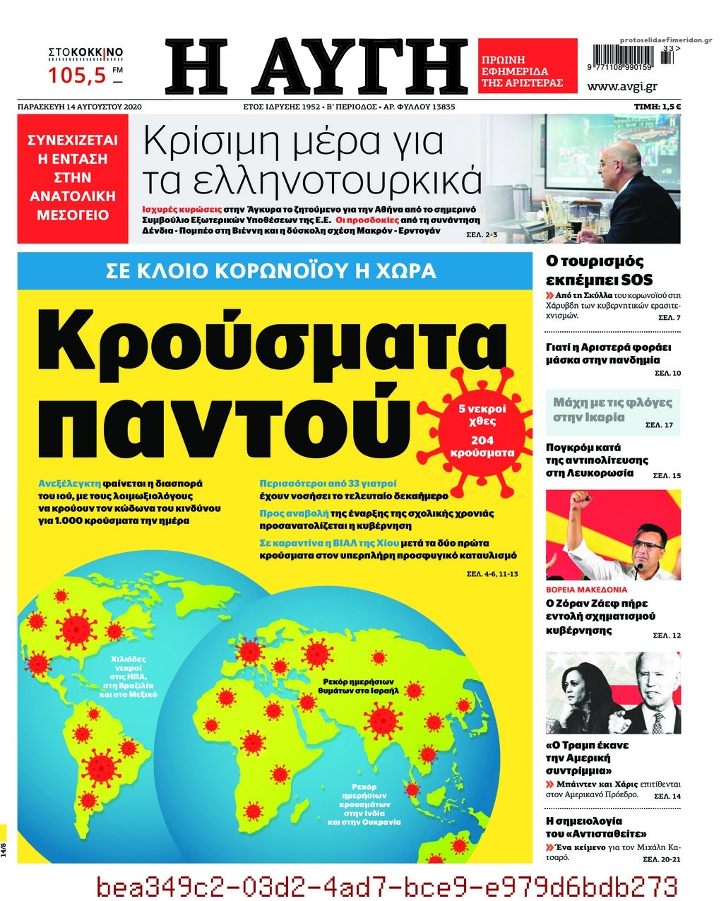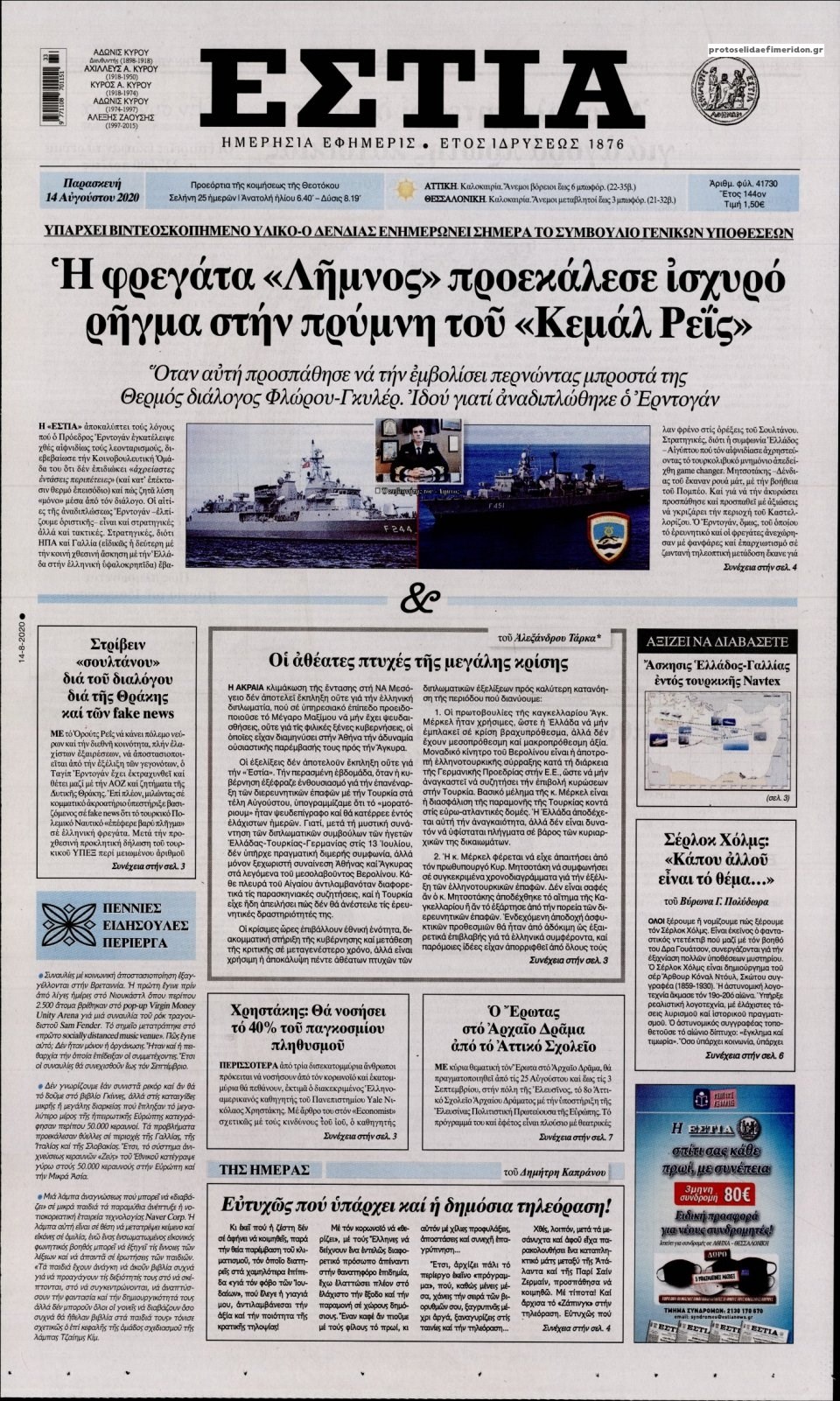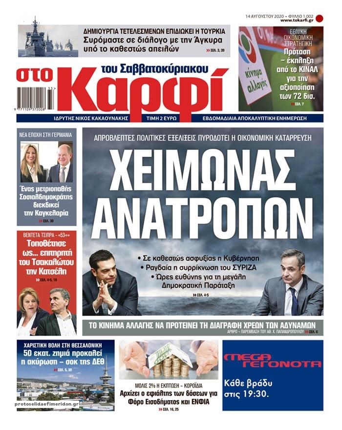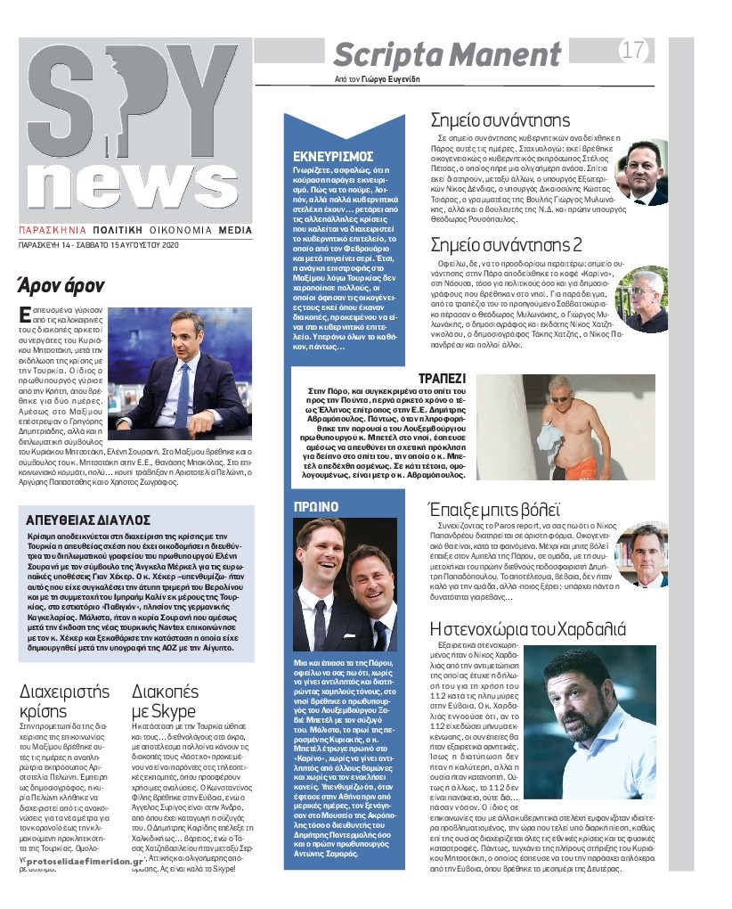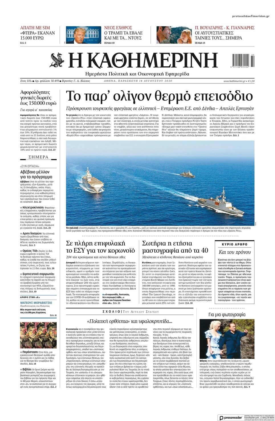 Οι πολιτικές εφημερίδες 14/8/2020 Σήφης Γαρυφαλάκης 06:32, Παρασκευή 14 Αυγούστου 2020 Media Διαβάστε τα πρωτοσέλιδα των πολιτικών εφημερίδων… ΕΦΗΜΕΡΙΔΕΣ ΠΟΛΙΤΙΚΕΣ ΕΦΗΜΕΡΙΔΕΣ ΠΡΩΤΟΣΕΛΙΔΑ ΠΡΩΤΟΣΕΛΙΔΑ ΕΦΗΜΕΡΙΔΩΝ Μοιράσου το: σχολίασε κι εσύ (0 σχόλια) Ακολουθήστε το enikos.gr στο Google News και μάθετε πρώτοι όλες τις ειδήσεις Δείτε όλες τις τελευταίες ειδήσεις από την Ελλάδα και τον Κόσμο στο enikos.gr Ειδήσεις Ροή Ειδήσεων 32 λεπτά πριν «Έλληνας Εσκομπάρ»: Φωτογραφίες με τους 4 τόνους κοκαΐνης που κατασχέθηκαν από το σκάφος «Ουρανία» 4 ώρες πριν Η Ουκρανία χτύπησε τάνκερ του σκιώδους στόλου της Ρωσίας στη Μεσόγειο – Έπλεε νότια της Κρήτης 2 ώρες πριν Πούτιν: Σαρκαστικά μηνύματα, παράπονα και απρόοπτα στη συνέντευξη Τύπου – Η πρόταση γάμου on air και οι ερωτήσεις για τα αγγούρια και τους… εξωγήινους 2 ώρες πριν Η απάντηση της κυβέρνησης στα αιτήματα των αγροτών: 16+4 υλοποιούνται ή βρίσκονται υπό επεξεργασία για να βρεθεί λύση – 7 δεν μπορούν να επιλυθούν 3 ώρες πριν Εξώδικο επιχειρηματία στον Γιώργο Μαζωνάκη – Τι απαντά στις καταγγελίες του τραγουδιστή 2 ώρες πριν Τα 5 ζώδια που ευνοούνται στην ερωτική ζωή τους την επόμενη εβδομάδα – «Η ενέργεια του Αιγόκερου φέρνει αγάπη και σταθερότητα» 7 ώρες πριν Γεμάτος νεροχύτης; 5 σοβαρές ευθύνες που «φοβίζουν» όσους αφήνουν άπλυτα πιάτα 6 ώρες πριν Ειδικός μοιράζεται 6 κόλπα για να διατηρείστε σε φόρμα με πάνω από 40 ώρες εργασίας την εβδομάδα: «Προπονηθείτε πριν από τη δουλειά, όχι μετά» 2 ημέρες πριν 20 χρόνια τα Χριστούγεννα ξεκινούν στα Public με μεγάλη ποικιλία σε δώρα! 1 λεπτό πριν Κωνσταντίνος Αργυρός για Κίμπερλι Γκίλφοϊλ: «Αγαπάει πάρα πολύ την Ελλάδα και θέλει να βοηθήσει με το δικό της τρόπο» 8 λεπτά πριν ΥΠΑΑΤ: Αναστολή μέτρων αναγκαστικής εκτέλεσης για κτηνοτρόφους που πλήττονται από την ευλογιά των αιγοπροβάτων 12 λεπτά πριν Γαλλία: Ξαφνική «επίσκεψη» των αγροτών στο σπίτι του Μακρόν – Πέταξαν κοπριά, λάχανα, λάστιχα και άφησαν ένα φέρετρο – ΒΙΝΤΕΟ 18 λεπτά πριν Από το Ορμένιο ως τα Μάλγαρα κι από τη Σιάτιστα μέχρι τη Νίκαια: Μπλόκα σε όλη την Ελλάδα – Το Σάββατο ανοίγουν τα διόδια οι αγρότες 19 λεπτά πριν Ταϊβάν: 3 νεκροί έπειτα από επίθεση άνδρα με μαχαίρι – Ο δράστης σκοτώθηκε σε αστυνομική καταδίωξη – ΒΙΝΤΕΟ ENIKOS NETWORK ΕΛΣΤΑΤ: Αύξηση κατά 1,7% των επαγγελματιών υγείας το 2024 Τάξη στις ιατρικές διαφημίσεις για την προστασία των πολιτών βάζει ο ΙΣΑ Μετρό: Ενισχύονται τα δρομολόγια – Δείτε ποιες ημέρες Παπαθανάσης για νέο Εθνικό Πρόγραμμα Ανάπτυξης 2026-2030: Είναι υπερδιπλάσιο από αυτό της προηγούμενης προγραμματικής περιό... Χαρτογραφώντας το «σημείο χωρίς επιστροφή»: Για πρώτη φορά αποκαλύπτεται με λεπτομέρεια το ακανθώδες όριο της ατμόσφαιρας τ... Η Google καταργεί τη λειτουργία «dark web report» – Πώς θα μπορούν οι χρήστες να διαγράφουν τα δεδομένα τους περισσότερα 15:15 , Παρασκευή 19 Δεκεμβρίου 2025 Την Κυριακή με τη Realnews: Ό,τι και αν αγοράσεις, σκανάρεις και κερδίζεις! Την Κυριακή με τη Realnews: Ό,τι και αν αγοράσεις, σκανάρεις και κερδίζεις! Με το PADU app, το... 08:00 , Παρασκευή 19 Δεκεμβρίου 2025 Την Κυριακή με τη Realnews: Δωροεπιταγή 10€ Δωροεπιταγή αξίας 10€ για αγορές άνω των 60€ από τα πολυκαταστήματα FactoryOutlet H προσφορά ι... 05:48 , Παρασκευή 19 Δεκεμβρίου 2025 Οι οικονομικές εφημερίδες 19/12/2025 Διαβάστε τα πρωτοσέλιδα από τις οικονομικές εφημερίδες, σήμερα 19/12/2025. 05:43 , Παρασκευή 19 Δεκεμβρίου 2025 Οι αθλητικές εφημερίδες 19/12/2025 Διαβάστε τα πρωτοσέλιδα από 