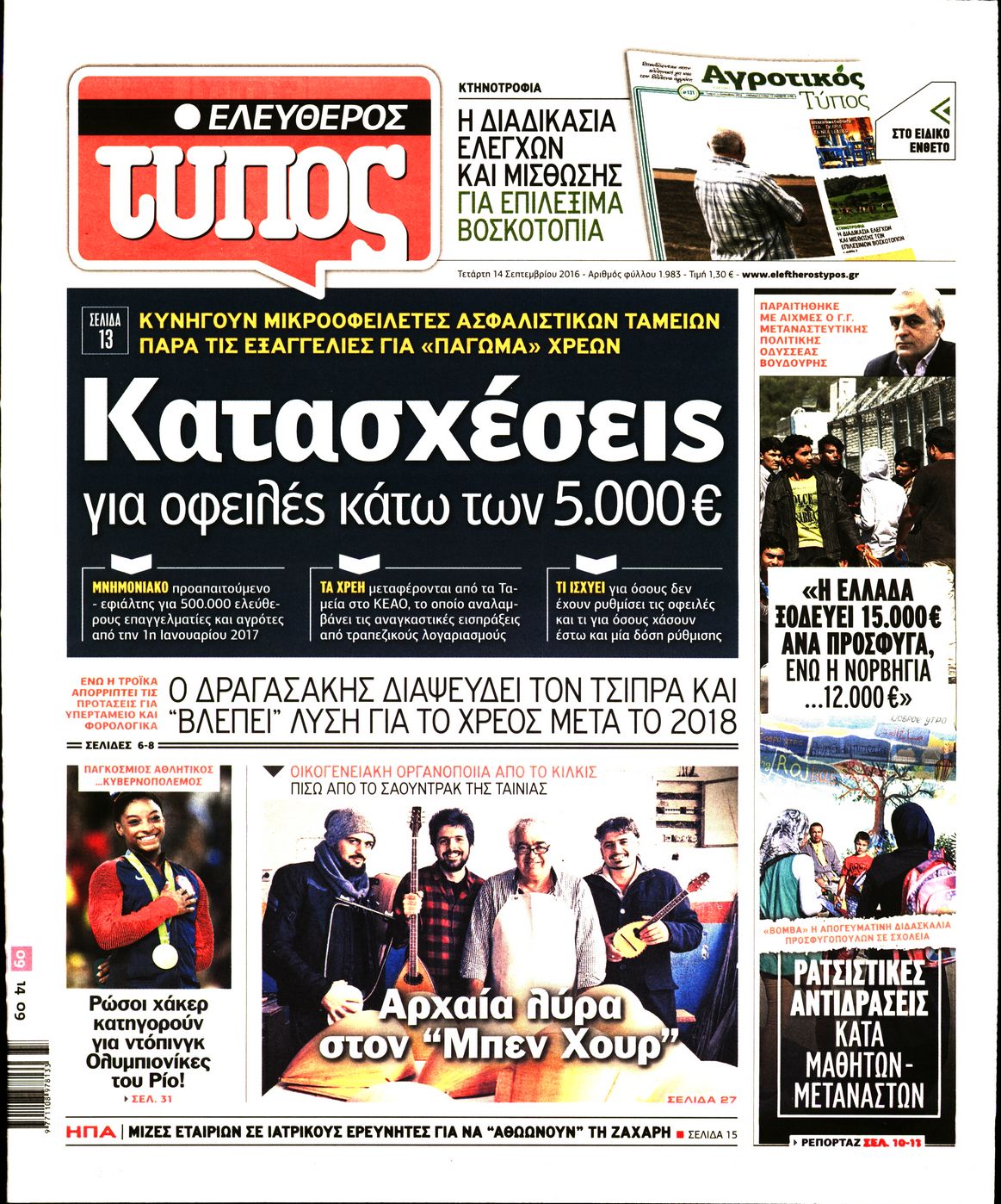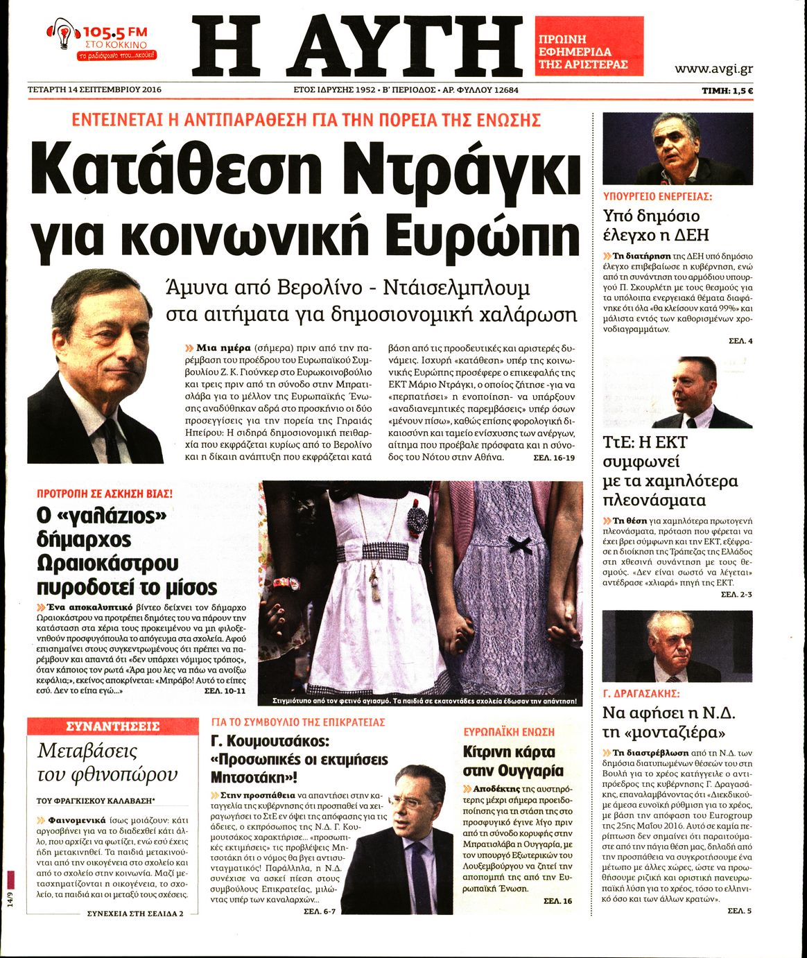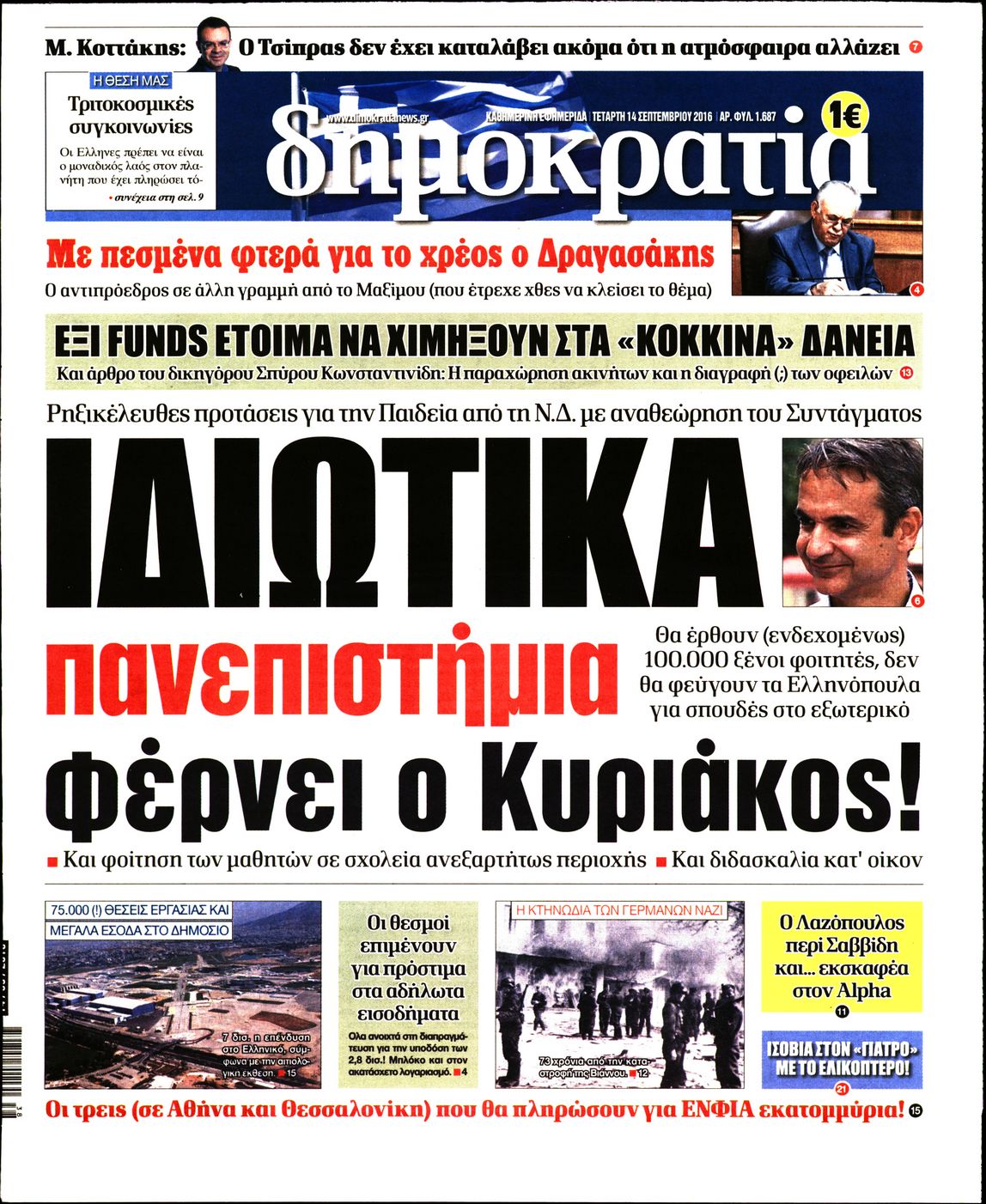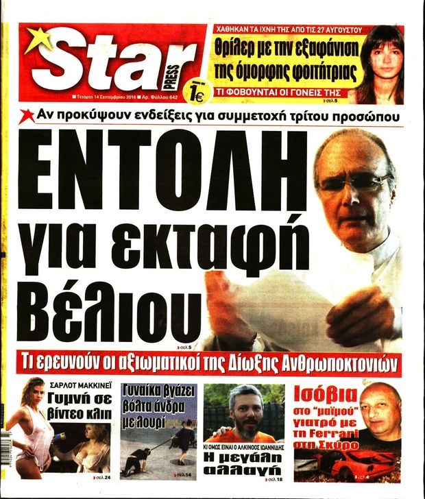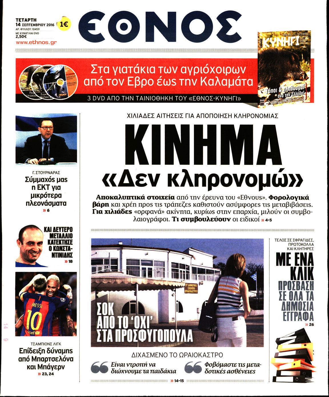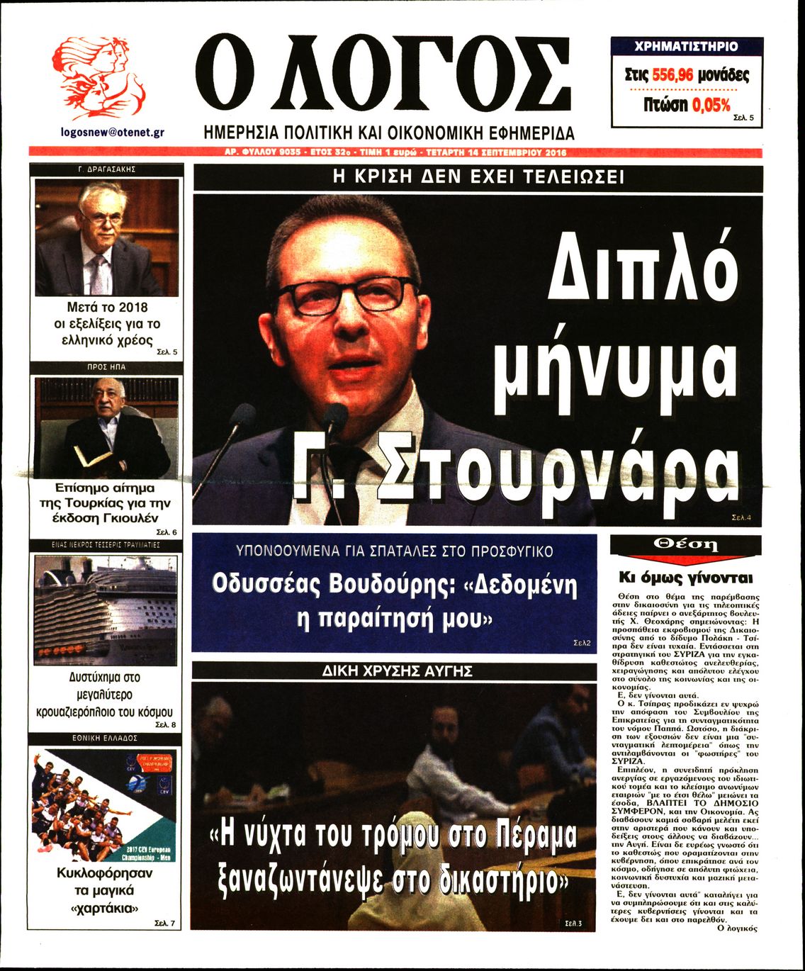 Οι πολιτικές εφημερίδες 14/9/2016 Enikos Newsroom 05:43, Τετάρτη 14 Σεπτεμβρίου 2016 Media Διαβάστε τα σημερινά πρωτοσέλιδα των πολιτικών εφημερίδων: ΠΟΛΙΤΙΚΕΣ ΕΦΗΜΕΡΙΔΕΣ ΠΡΩΤΟΣΕΛΙΔΑ Μοιράσου το: σχολίασε κι εσύ (0 σχόλια) Ακολουθήστε το enikos.gr στο Google News και μάθετε πρώτοι όλες τις ειδήσεις Δείτε όλες τις τελευταίες ειδήσεις από την Ελλάδα και τον Κόσμο στο enikos.gr Ειδήσεις Ροή Ειδήσεων 24 λεπτά πριν Νίκος Παππάς: Το παρασκήνιο της αποπομπής του – Οι μπουνιές, τα μηνύματα μετά την επίθεση και η διαγραφή από τον ΣΥΡΙΖΑ 1 ώρα πριν Φοροδιαφυγή: Ποιοι φορολογούμενοι κινδυνεύουν να πληρώσουν «τσουχτερά» πρόστιμα 51 λεπτά πριν Φοινικούντα: Παραδόθηκε 30χρονος στην Καλαμάτα για τη διπλή δολοφονία 1 ώρα πριν Αγρότες: Ανυποχώρητοι στα μπλόκα – Στις Σέρρες σήμερα η κρίσιμη συνεδρίαση της Πανελλαδικής Επιτροπής 1 ώρα πριν Τα επίσημα χρονοδιαγράμματα που η Τουρκία θα παραλάβει τα Eurofighter 3 ώρες πριν Καούρα: Το μπαχαρικό που είναι «εξίσου αποτελεσματικό» με την ομεπραζόλη, σύμφωνα με ειδικούς 3 ώρες πριν Τα ζώδια σήμερα, Πέμπτη 18 Δεκεμβρίου: Λέοντες, η καρδιά σας θέλει να εκφραστεί 3 ώρες πριν Οπτική ψευδαίσθηση: Μόνο οι πιο έξυπνοι άνθρωποι θα βρουν 7 ξωτικά 15 δευτερόλεπτα 23 ώρες πριν 20 χρόνια τα Χριστούγεννα ξεκινούν στα Public με μεγάλη ποικιλία σε δώρα! 8 λεπτά πριν Μαρία Αλιφέρη: «Καλή σου ξεκούραση ακριβέ μου φίλε και αδελφέ» – Η συγκινητική ανάρτηση για τον Αλμπέρτο Εσκενάζυ 12 λεπτά πριν Οφειλές προς το Δημόσιο: Τι απαντά το υπουργείο στα σενάρια για νέα ρύθμιση 17 λεπτά πριν Συνταγή του Gordon Ramsay για σπιτικές πατάτες φούρνου 22 λεπτά πριν Δώρο Χριστουγέννων: Έως αύριο η καταβολή του – Πώς υπολογίζεται και τι πρέπει να κάνουν οι εργαζόμενοι που δεν θα το λάβουν 24 λεπτά πριν Νίκος Παππάς: Το παρασκήνιο της αποπομπής του – Οι μπουνιές, τα μηνύματα μετά την επίθεση και η διαγραφή από τον ΣΥΡΙΖΑ ENIKOS NETWORK Ουρική αρθρίτιδα: Μεγάλη μελέτη αποκαλύπτει τι μπορεί να προκαλεί τη νόσο Τι σημαίνει όταν ο σκύλος σας σάς φέρνει τυχαία αντικείμενα, σύμφωνα με εκπαιδεύτρια Οφειλές προς το Δημόσιο: «Φρένο» στα σενάρια για νέα ρύθμιση – Τι απαντά το υπουργείο Εθνικής Οικονομίας και Οικονομικών Φοροδιαφυγή: Ποιοι φορολογούμενοι κινδυνεύουν να πληρώσουν «τσουχτερά» πρόστιμα Χαρτογραφώντας το «σημείο χωρίς επιστροφή»: Για πρώτη φορά αποκαλύπτεται με λεπτομέρεια το ακανθώδες όριο της ατμόσφαιρας τ... Η Google καταργεί τη λειτουργία «dark web report» – Πώς θα μπορούν οι χρήστες να διαγράφουν τα δεδομένα τους περισσότερα 08:00 , Πέμπτη 18 Δεκεμβρίου 2025 Την Κυριακή με τη Realnews: Δωροεπιταγή 10€ Δωροεπιταγή αξίας 10€ για αγορές άνω των 60€ από τα πολυκαταστήματα FactoryOutlet H προσφορά ι... 07:50 , Πέμπτη 18 Δεκεμβρίου 2025 «Το σόι σου»: Backstage στα γυρίσματα για το εορταστικό επεισόδιο «Το σόι σου» φορά τα γιορτινά του για τα Χριστούγεννα και η Όλγα Λαφαζάνη, με την κάμερα του «... 07:36 , Πέμπτη 18 Δεκεμβρίου 2025 Οι αθλητικές μεταδόσεις 18/12/2025 – Πού θα δείτε τον αγώνα της ΑΕΚ με την Κραϊόβα για το Conference League Τα ματς ΑΕΚ – Ουνιβερσιτάτεα Κραϊόβα για το Conference League και Παναθηναϊκός – Χάποελ Τελ Αβ... 05:48 , Πέμπτη 18 Δεκεμβρίου 2025 Οι οικονομικές εφημερίδες 18/12/2025 Διαβάστε τα πρωτοσέλιδα από τις οικονομικές εφημερίδες, σήμερα 18/12/2025. ΤΕΛΕΥΤΑΙΕΣ ΕΙΔΗΣΕΙΣ 8 λεπτά πριν Μαρία Αλιφέρη: «Καλή σου ξεκούραση ακριβέ μου φίλε και... 12 λεπτά πριν Οφειλές προς το Δημόσιο: Τι απαντά το υπουργείο στα... 17 λεπτά πριν Συνταγή του Gordon Ramsay για σπιτικές πατάτες φούρνου 