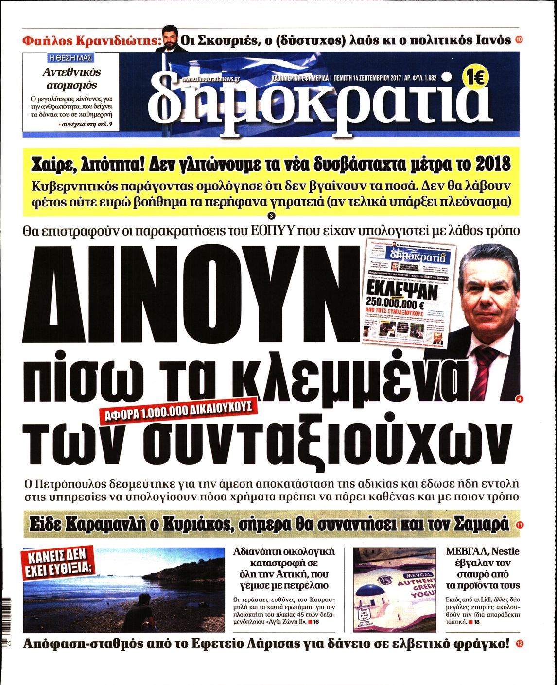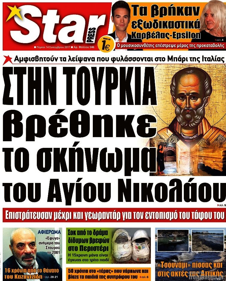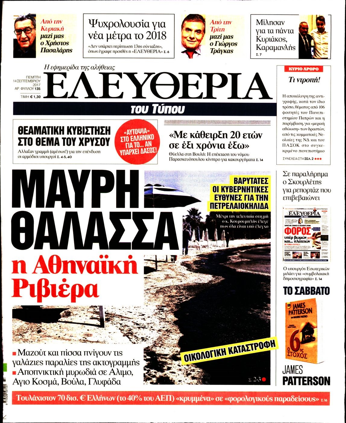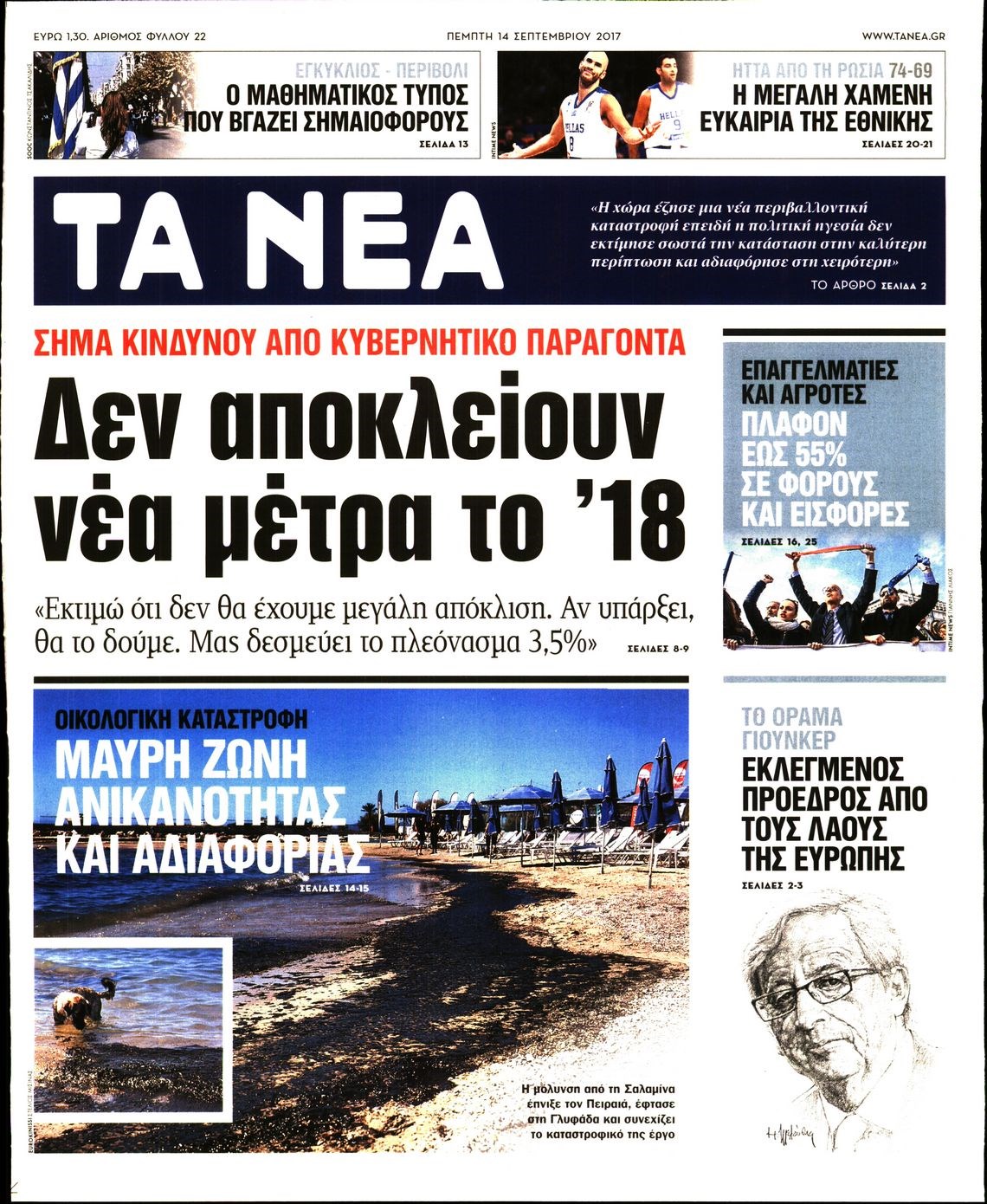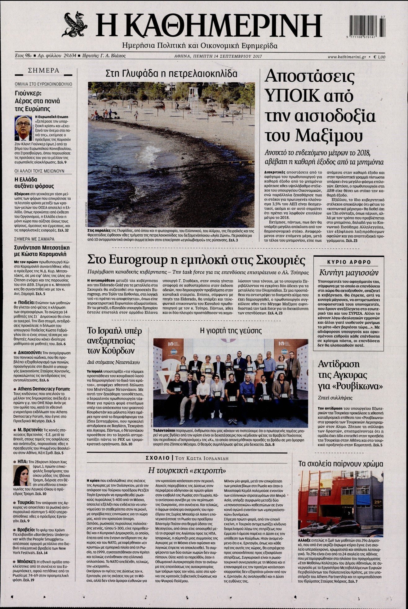 Οι πολιτικές εφημερίδες 14/9/2017 Enikos Newsroom 07:42, Πέμπτη 14 Σεπτεμβρίου 2017 Media Διαβάστε τα σημερινά πρωτοσέλιδα των πολιτικών εφημερίδων: ΠΟΛΙΤΙΚΕΣ ΕΦΗΜΕΡΙΔΕΣ ΠΡΩΤΟΣΕΛΙΔΑ Μοιράσου το: σχολίασε κι εσύ (0 σχόλια) Ακολουθήστε το enikos.gr στο Google News και μάθετε πρώτοι όλες τις ειδήσεις Δείτε όλες τις τελευταίες ειδήσεις από την Ελλάδα και τον Κόσμο στο enikos.gr Ειδήσεις Ροή Ειδήσεων 1 ώρα πριν Χριστούγεννα στα μπλόκα: Επιμένουν στις κινητοποιήσεις τους οι αγρότες – Ανοίγουν τα διόδια το Σαββατοκύριακο 2 ώρες πριν Ουκρανία: Η άνευ προηγουμένου επίθεση σε ρωσικό τάνκερ στη Μεσόγειο και το μήνυμα προς στον Πούτιν – Το «μακρύ χέρι» του Κιέβου 1 ώρα πριν Πούτιν: Τα μηνύματα σε Ευρώπη και ΝΑΤΟ από το μαραθώνιο «σόου» του – Η απαίτηση για «σεβασμό» και η ειρήνη «με τους όρους» της Μόσχας 2 ώρες πριν Τραμπ: Δεν αποκλείει την πιθανότητα ενός πολέμου στη Βενεζουέλα – «Ο Μαδούρο ξέρει καλύτερα από τον καθένα τι ακριβώς θέλω» 3 ώρες πριν Συνεχίζει να προκαλεί ο Μίτσκοσκι: «Για μένα το όνομα Μακεδονία είναι ιερό» 1 ώρα πριν Ανακαλύφθηκαν αρχαία χρυσά νομίσματα 2.200 ετών που απεικονίζουν τον θεό Απόλλωνα – Η άγνωστη σύνδεση με τον Φίλιππο Β΄ της Μακεδονίας 2 ώρες πριν Ύπνος: Μια κρυφή κατάσταση του εγκεφάλου πριν από τον ύπνο μπορεί να είναι το “κλειδί” για υψηλή ευφυΐα και δημιουργικότητα 3 ώρες πριν Αριθμολογία: Οι άνθρωποι που έχουν γεννηθεί αυτές τις 4 ημερομηνίες, συχνά παρεξηγούνται – «Η καλοσύνη τους κρύβει τεράστια δύναμη» 4 ώρες πριν Ξεχάστε το καθάρισμα το Σαββατοκύριακο: Ο «κανόνας των 20 λεπτών» που θα σας λύσει τα χέρια 5 λεπτά πριν Πόλεμος στην Ουκρανία: Εφτά νεκροί από ρωσική πυραυλική επίθεση στο λιμάνι της Οδησσού 9 λεπτά πριν ΗΠΑ: Η κυβέρνηση του Ντόναλντ Τραμπ άρχισε να δημοσιοποιεί τα αρχεία Έπσταϊν 20 λεπτά πριν Σάμος: Άνοιξε το μπλόκο των αγροτών στον κόμβο Κοκκαρίου – Σε νέα συνεδρίαση θα καθορίσουν την στάση τους 28 λεπτά πριν Άνω Λιόσια: Πυροβολισμοί σε επιχείρηση με χαλιά – Εντοπίστηκαν 10 κάλυκες 36 λεπτά πριν Γάζα: Ισραηλινό πλήγμα σε σχολείο που είχαν καταφύγει εκτοπισμένοι – Τουλάχιστον έξι νεκροί ENIKOS NETWORK Το ΕΚΑΒ τιμήθηκε από την Ακαδημία Αθηνών για τα 40 χρόνια προσφοράς του Έχετε πραγματικά μεγάλη καρδιά; 10 χαρακτηριστικά όσων έχουν καλοσύνη Αναστολή μέτρων αναγκαστικής εκτέλεσης για κτηνοτρόφους που πλήττονται από την ευλογιά των αιγοπροβάτων Πλήρης επάρκεια προϊόντων στις λαϊκές της Αττικής, παρά τις αγροτικές κινητοποιήσεις – Τι απαντούν οι πωλητές Χαρτογραφώντας το «σημείο χωρίς επιστροφή»: Για πρώτη φορά αποκαλύπτεται με λεπτομέρεια το ακανθώδες όριο της ατμόσφαιρας τ... Η Google καταργεί τη λειτουργία «dark web report» – Πώς θα μπορούν οι χρήστες να διαγράφουν τα δεδομένα τους περισσότερα 22:42 , Παρασκευή 19 Δεκεμβρίου 2025 Γιώργος Γιαννόπουλος για “Το σόι σου”: “Είναι ευτυχία και ευλογία αυτή η σειρά” «Είναι ευτυχία και ευλογία η συγκυρία αυτής της σειράς», θα πει ο Γιώργος Γιαννόπουλος -ο αγαπ... 20:37 , Παρασκευή 19 Δεκεμβρίου 2025 Don’t Forget The Lyrics: Η Έλλη Κοκκίνου υποδέχεται 4 παίκτες που θα κάνουν τα πάντα για να μη χάσουν ούτε… μισή λέξη από τους στίχους Το «Don’t Forget The Lyrics» επιστρέφει απόψε, Παρασκευή 19 Δεκεμβρίου, στις 21:00 με νέο επει... 19:31 , Παρασκευή 19 Δεκεμβρίου 2025 GNTM: Απόψε ο μεγάλος τελικός για τους 4 φιναλίστ Έπειτα από μήνες γεμάτους μόδα, δημιουργία και έντονες αναμετρήσεις, το GNTM 2025 κορυφώνεται,... 18:11 , Παρασκευή 19 Δεκεμβρίου 2025 Το σόι σου: Ο Ά