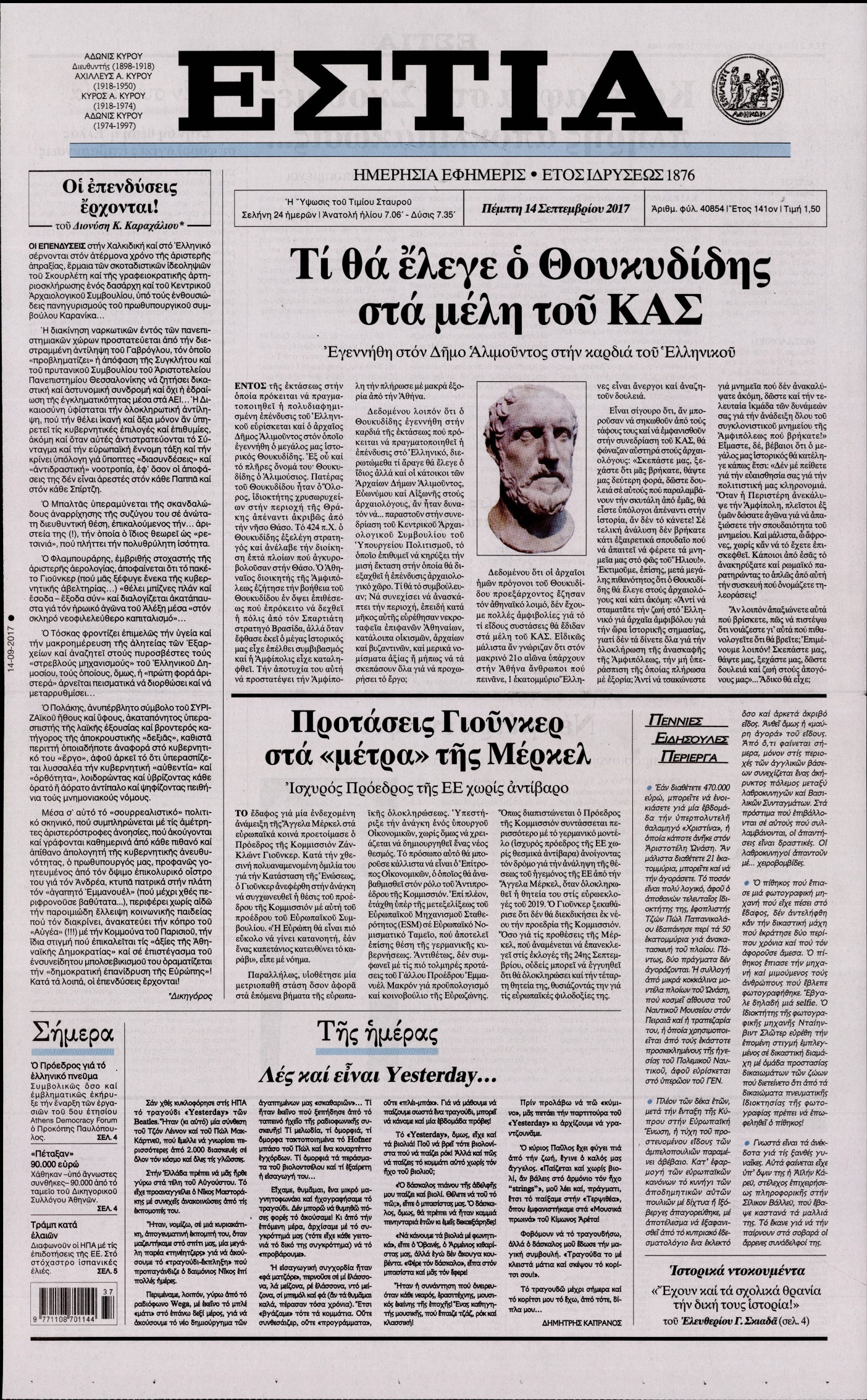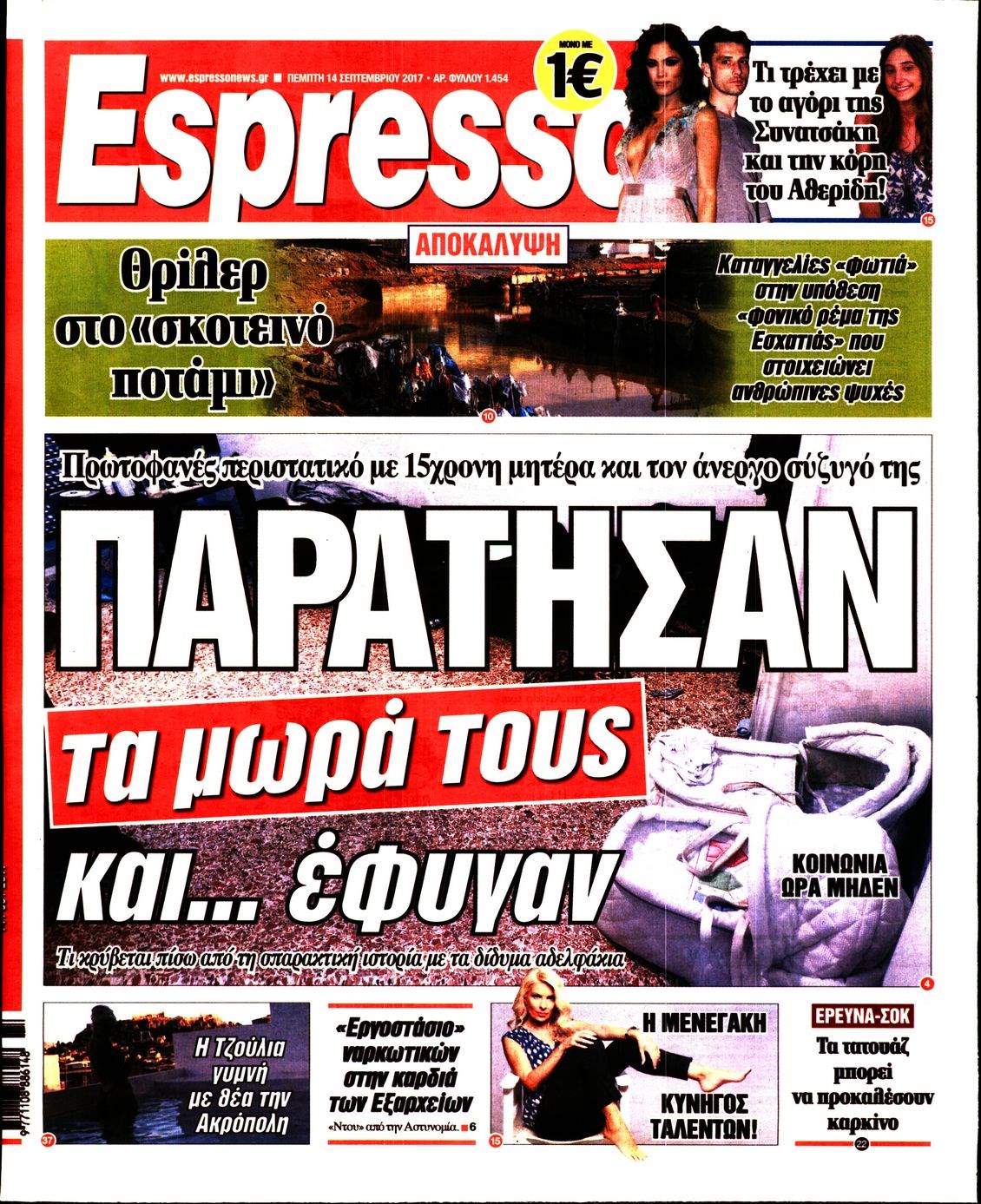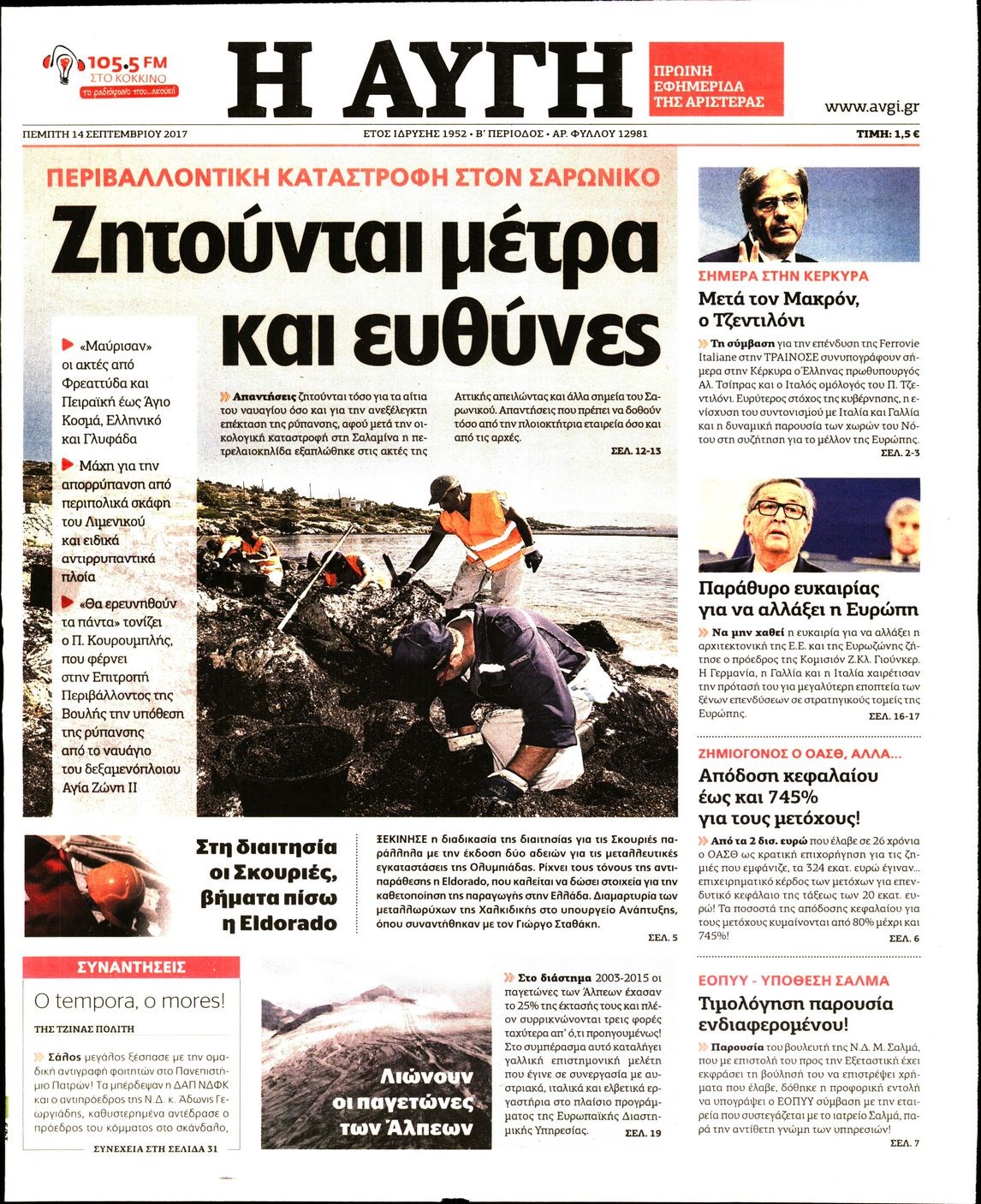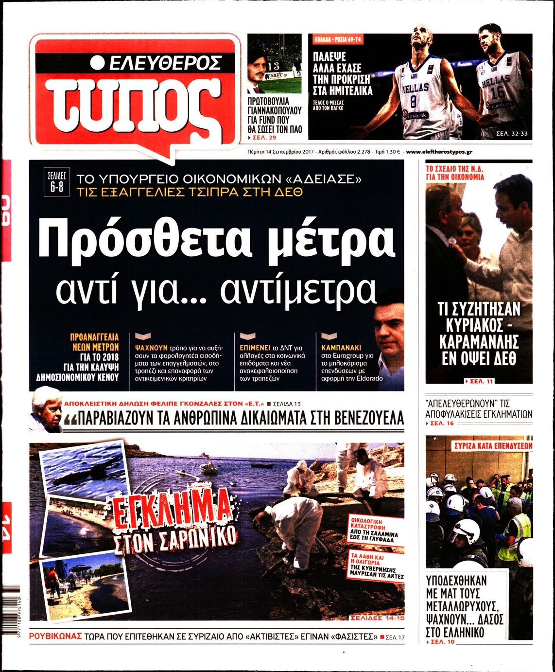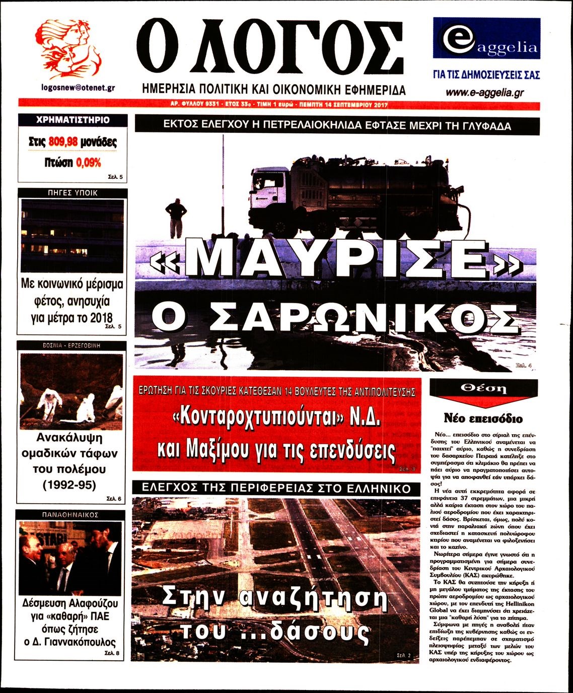 Οι πολιτικές εφημερίδες 14/9/2017 Enikos Newsroom 07:42, Πέμπτη 14 Σεπτεμβρίου 2017 Media Διαβάστε τα σημερινά πρωτοσέλιδα των πολιτικών εφημερίδων: ΠΟΛΙΤΙΚΕΣ ΕΦΗΜΕΡΙΔΕΣ ΠΡΩΤΟΣΕΛΙΔΑ Μοιράσου το: σχολίασε κι εσύ (0 σχόλια) Ακολουθήστε το enikos.gr στο Google News και μάθετε πρώτοι όλες τις ειδήσεις Δείτε όλες τις τελευταίες ειδήσεις από την Ελλάδα και τον Κόσμο στο enikos.gr Ειδήσεις Ροή Ειδήσεων 1 ώρα πριν Χριστούγεννα στα μπλόκα: Επιμένουν στις κινητοποιήσεις τους οι αγρότες – Ανοίγουν τα διόδια το Σαββατοκύριακο 2 ώρες πριν Ουκρανία: Η άνευ προηγουμένου επίθεση σε ρωσικό τάνκερ στη Μεσόγειο και το μήνυμα προς στον Πούτιν – Το «μακρύ χέρι» του Κιέβου 1 ώρα πριν Πούτιν: Τα μηνύματα σε Ευρώπη και ΝΑΤΟ από το μαραθώνιο «σόου» του – Η απαίτηση για «σεβασμό» και η ειρήνη «με τους όρους» της Μόσχας 2 ώρες πριν Τραμπ: Δεν αποκλείει την πιθανότητα ενός πολέμου στη Βενεζουέλα – «Ο Μαδούρο ξέρει καλύτερα από τον καθένα τι ακριβώς θέλω» 3 ώρες πριν Συνεχίζει να προκαλεί ο Μίτσκοσκι: «Για μένα το όνομα Μακεδονία είναι ιερό» 1 ώρα πριν Ανακαλύφθηκαν αρχαία χρυσά νομίσματα 2.200 ετών που απεικονίζουν τον θεό Απόλλωνα – Η άγνωστη σύνδεση με τον Φίλιππο Β΄ της Μακεδονίας 2 ώρες πριν Ύπνος: Μια κρυφή κατάσταση του εγκεφάλου πριν από τον ύπνο μπορεί να είναι το “κλειδί” για υψηλή ευφυΐα και δημιουργικότητα 3 ώρες πριν Αριθμολογία: Οι άνθρωποι που έχουν γεννηθεί αυτές τις 4 ημερομηνίες, συχνά παρεξηγούνται – «Η καλοσύνη τους κρύβει τεράστια δύναμη» 4 ώρες πριν Ξεχάστε το καθάρισμα το Σαββατοκύριακο: Ο «κανόνας των 20 λεπτών» που θα σας λύσει τα χέρια 5 λεπτά πριν Πόλεμος στην Ουκρανία: Εφτά νεκροί από ρωσική πυραυλική επίθεση στο λιμάνι της Οδησσού 9 λεπτά πριν ΗΠΑ: Η κυβέρνηση του Ντόναλντ Τραμπ άρχισε να δημοσιοποιεί τα αρχεία Έπσταϊν 20 λεπτά πριν Σάμος: Άνοιξε το μπλόκο των αγροτών στον κόμβο Κοκκαρίου – Σε νέα συνεδρίαση θα καθορίσουν την στάση τους 28 λεπτά πριν Άνω Λιόσια: Πυροβολισμοί σε επιχείρηση με χαλιά – Εντοπίστηκαν 10 κάλυκες 36 λεπτά πριν Γάζα: Ισραηλινό πλήγμα σε σχολείο που είχαν καταφύγει εκτοπισμένοι – Τουλάχιστον έξι νεκροί ENIKOS NETWORK Το ΕΚΑΒ τιμήθηκε από την Ακαδημία Αθηνών για τα 40 χρόνια προσφοράς του Έχετε πραγματικά μεγάλη καρδιά; 10 χαρακτηριστικά όσων έχουν καλοσύνη Αναστολή μέτρων αναγκαστικής εκτέλεσης για κτηνοτρόφους που πλήττονται από την ευλογιά των αιγοπροβάτων Πλήρης επάρκεια προϊόντων στις λαϊκές της Αττικής, παρά τις αγροτικές κινητοποιήσεις – Τι απαντούν οι πωλητές Χαρτογραφώντας το «σημείο χωρίς επιστροφή»: Για πρώτη φορά αποκαλύπτεται με λεπτομέρεια το ακανθώδες όριο της ατμόσφαιρας τ... Η Google καταργεί τη λειτουργία «dark web report» – Πώς θα μπορούν οι χρήστες να διαγράφουν τα δεδομένα τους περισσότερα 22:42 , Παρασκευή 19 Δεκεμβρίου 2025 Γιώργος Γιαννόπουλος για “Το σόι σου”: “Είναι ευτυχία και ευλογία αυτή η σειρά” «Είναι ευτυχία και ευλογία η συγκυρία αυτής της σειράς», θα πει ο Γιώργος Γιαννόπουλος -ο αγαπ... 20:37 , Παρασκευή 19 Δεκεμβρίου 2025 Don’t Forget The Lyrics: Η Έλλη Κοκκίνου υποδέχεται 4 παίκτες που θα κάνουν τα πάντα για να μη χάσουν ούτε… μισή λέξη από τους στίχους Το «Don’t Forget The Lyrics» επιστρέφει απόψε, Παρασκευή 19 Δεκεμβρίου, στις 21:00 με νέο επει... 19:31 , Παρασκευή 19 Δεκεμβρίου 2025 GNTM: Απόψε ο μεγάλος τελικός για τους 4 φιναλίστ Έπειτα από μήνες γεμάτους μόδα, δημιουργία και έντονες αναμετρήσεις, το GNTM 2025 κορυφώνεται,... 18:11 , Παρασκευή 19 Δεκεμβρίου 2025 Το σόι σου: Ο Ά