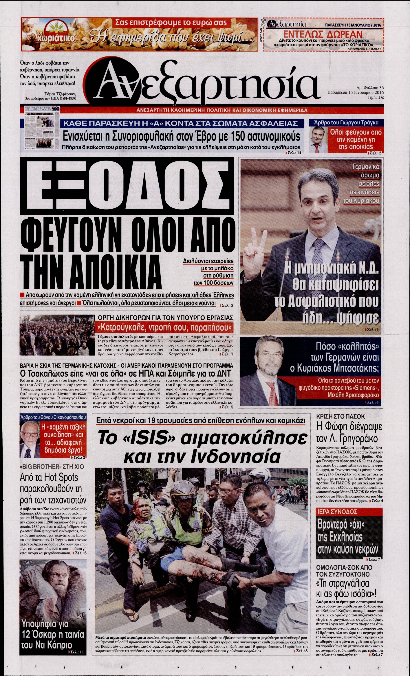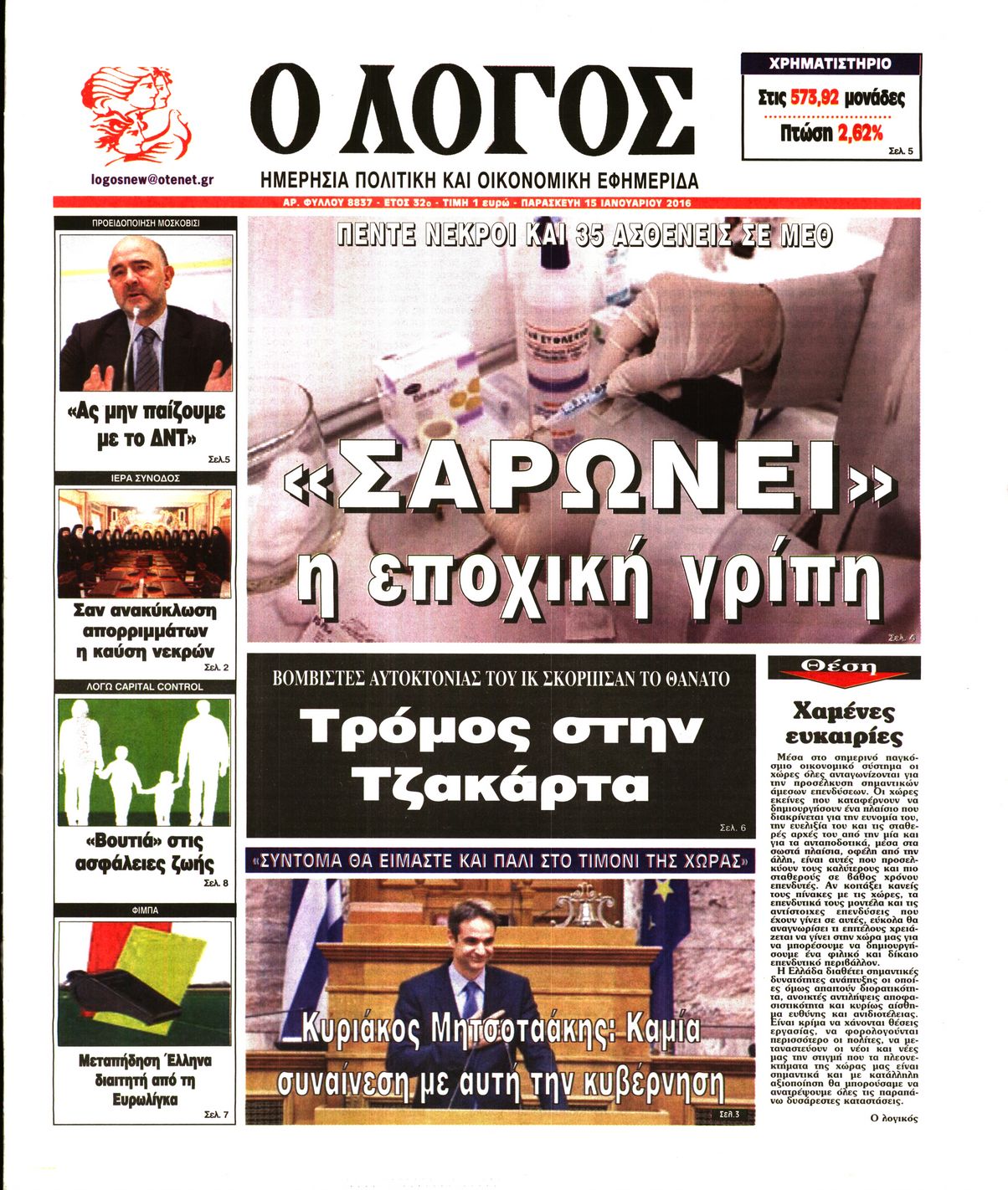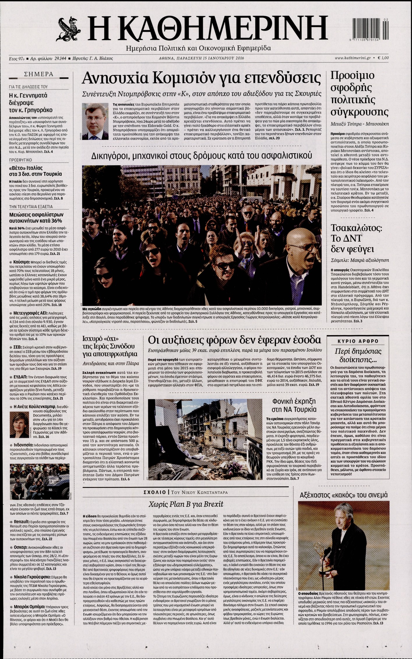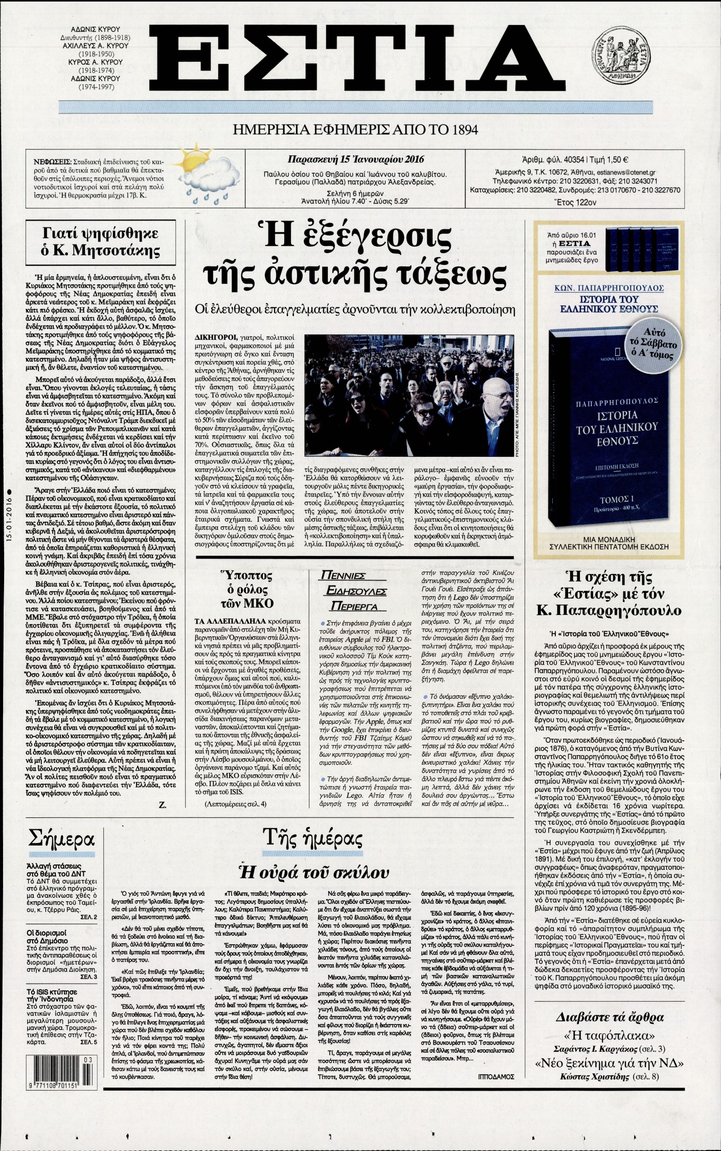Οι πολιτικές εφημερίδες 15-1-2016 Enikos Newsroom 06:13, Παρασκευή 15 Ιανουαρίου 2016 Media Διαβάστε τα σημερινά πρωτοσέλιδα των πολιτικών εφημερίδων: ΠΟΛΙΤΙΚΕΣ ΕΦΗΜΕΡΙΔΕΣ ΠΡΩΤΟΣΕΛΙΔΑ Μοιράσου το: σχολίασε κι εσύ (0 σχόλια) Ακολουθήστε το enikos.gr στο Google News και μάθετε πρώτοι όλες τις ειδήσεις Δείτε όλες τις τελευταίες ειδήσεις από την Ελλάδα και τον Κόσμο στο enikos.gr Ειδήσεις Ροή Ειδήσεων 2 ώρες πριν Χριστούγεννα στα μπλόκα: Επιμένουν στις κινητοποιήσεις τους οι αγρότες – Ανοίγουν τα διόδια το Σαββατοκύριακο 2 ώρες πριν Ουκρανία: Η άνευ προηγουμένου επίθεση σε ρωσικό τάνκερ στη Μεσόγειο και το μήνυμα προς στον Πούτιν – Το «μακρύ χέρι» του Κιέβου 1 ώρα πριν Πούτιν: Τα μηνύματα σε Ευρώπη και ΝΑΤΟ από το μαραθώνιο «σόου» του – Η απαίτηση για «σεβασμό» και η ειρήνη «με τους όρους» της Μόσχας 2 ώρες πριν Τραμπ: Δεν αποκλείει την πιθανότητα ενός πολέμου στη Βενεζουέλα – «Ο Μαδούρο ξέρει καλύτερα από τον καθένα τι ακριβώς θέλω» 3 ώρες πριν Συνεχίζει να προκαλεί ο Μίτσκοσκι: «Για μένα το όνομα Μακεδονία είναι ιερό» 1 ώρα πριν Ανακαλύφθηκαν αρχαία χρυσά νομίσματα 2.200 ετών που απεικονίζουν τον θεό Απόλλωνα – Η άγνωστη σύνδεση με τον Φίλιππο Β΄ της Μακεδονίας 2 ώρες πριν Ύπνος: Μια κρυφή κατάσταση του εγκεφάλου πριν από τον ύπνο μπορεί να είναι το “κλειδί” για υψηλή ευφυΐα και δημιουργικότητα 3 ώρες πριν Αριθμολογία: Οι άνθρωποι που έχουν γεννηθεί αυτές τις 4 ημερομηνίες, συχνά παρεξηγούνται – «Η καλοσύνη τους κρύβει τεράστια δύναμη» 4 ώρες πριν Ξεχάστε το καθάρισμα το Σαββατοκύριακο: Ο «κανόνας των 20 λεπτών» που θα σας λύσει τα χέρια 1 λεπτό πριν Βασίλης Σπανούλης: Δεν εμφανίστηκε ούτε ένας δημοσιογράφος στην συνέντευξη Τύπου – «Καλησπέρα στον… κανέναν», δείτε βίντεο 12 λεπτά πριν Πόλεμος στην Ουκρανία: Εφτά νεκροί από ρωσική πυραυλική επίθεση στο λιμάνι της Οδησσού 16 λεπτά πριν ΗΠΑ: Η κυβέρνηση του Ντόναλντ Τραμπ άρχισε να δημοσιοποιεί τα αρχεία Έπσταϊν 28 λεπτά πριν Σάμος: Άνοιξε το μπλόκο των αγροτών στον κόμβο Κοκκαρίου – Σε νέα συνεδρίαση θα καθορίσουν την στάση τους 36 λεπτά πριν Άνω Λιόσια: Πυροβολισμοί σε επιχείρηση με χαλιά – Εντοπίστηκαν 10 κάλυκες ENIKOS NETWORK Το ΕΚΑΒ τιμήθηκε από την Ακαδημία Αθηνών για τα 40 χρόνια προσφοράς του Έχετε πραγματικά μεγάλη καρδιά; 10 χαρακτηριστικά όσων έχουν καλοσύνη Αναστολή μέτρων αναγκαστικής εκτέλεσης για κτηνοτρόφους που πλήττονται από την ευλογιά των αιγοπροβάτων Πλήρης επάρκεια προϊόντων στις λαϊκές της Αττικής, παρά τις αγροτικές κινητοποιήσεις – Τι απαντούν οι πωλητές Χαρτογραφώντας το «σημείο χωρίς επιστροφή»: Για πρώτη φορά αποκαλύπτεται με λεπτομέρεια το ακανθώδες όριο της ατμόσφαιρας τ... Η Google καταργεί τη λειτουργία «dark web report» – Πώς θα μπορούν οι χρήστες να διαγράφουν τα δεδομένα τους περισσότερα 22:42 , Παρασκευή 19 Δεκεμβρίου 2025 Γιώργος Γιαννόπουλος για “Το σόι σου”: “Είναι ευτυχία και ευλογία αυτή η σειρά” «Είναι ευτυχία και ευλογία η συγκυρία αυτής της σειράς», θα πει ο Γιώργος Γιαννόπουλος -ο αγαπ... 20:37 , Παρασκευή 19 Δεκεμβρίου 2025 Don’t Forget The Lyrics: Η Έλλη Κοκκίνου υποδέχεται 4 παίκτες που θα κάνουν τα πάντα για να μη χάσουν ούτε… μισή λέξη από τους στίχους Το «Don’t Forget The Lyrics» επιστρέφει απόψε, Παρασκευή 19 Δεκεμβρίου, στις 21:00 με νέο επει... 19:31 , Παρασκευή 19 Δεκεμβρίου 2025 GNTM: Απόψε ο μεγάλος τελικός για τους 4 φιναλίστ Έπειτα από μήνες γεμάτους μόδα, δημιουργία και έντονες αναμετρήσεις, το GNTM 2025 κορυφώνεται,... 18:11 , Παρ