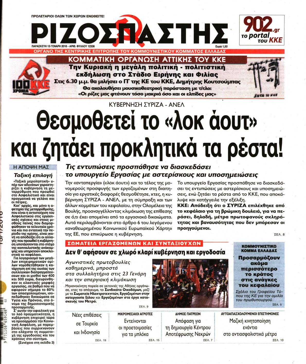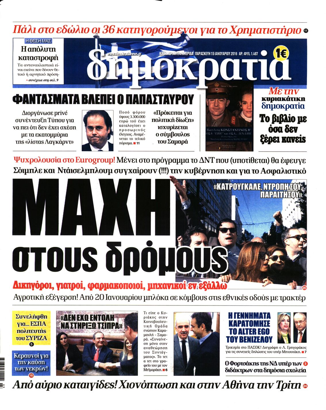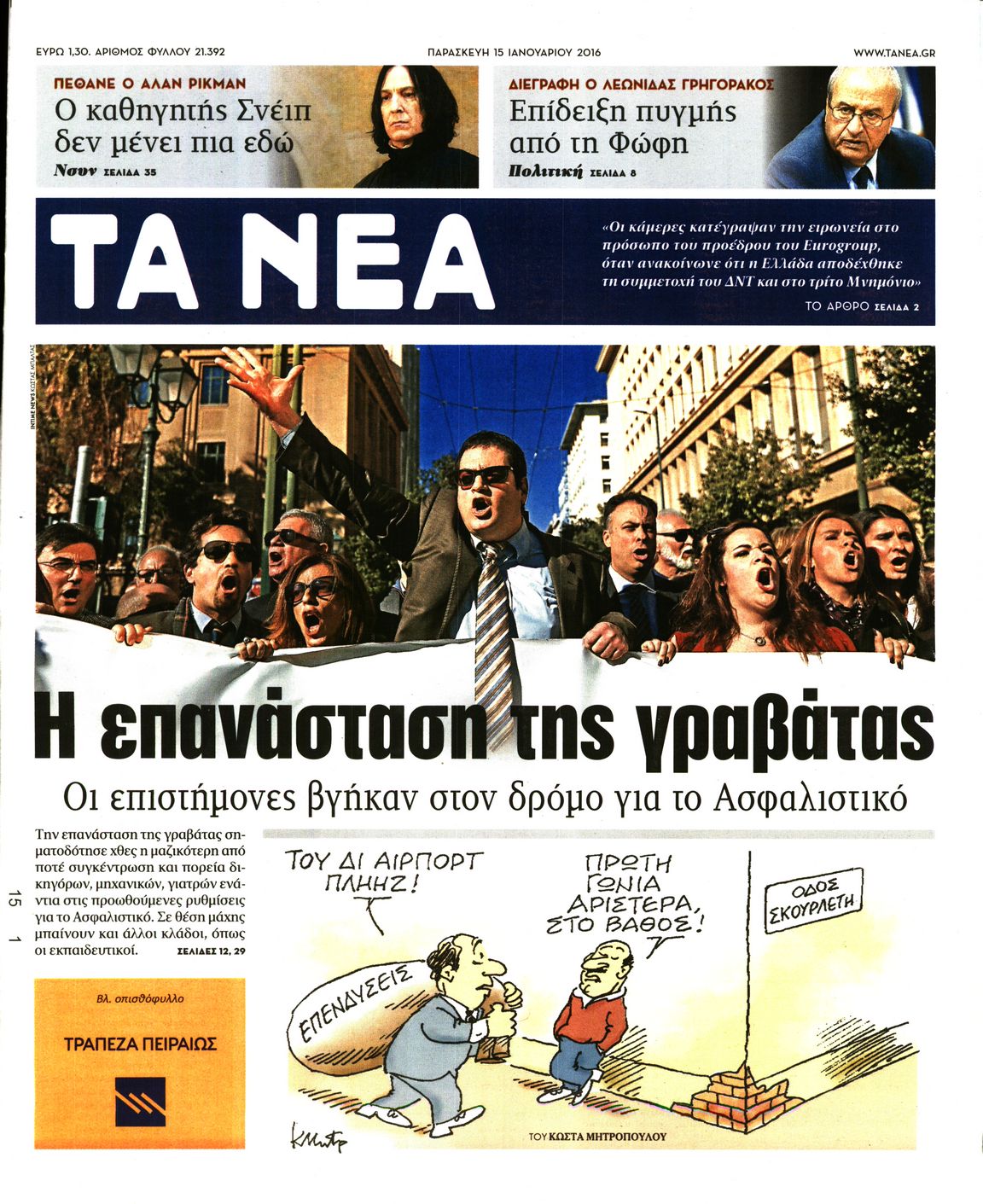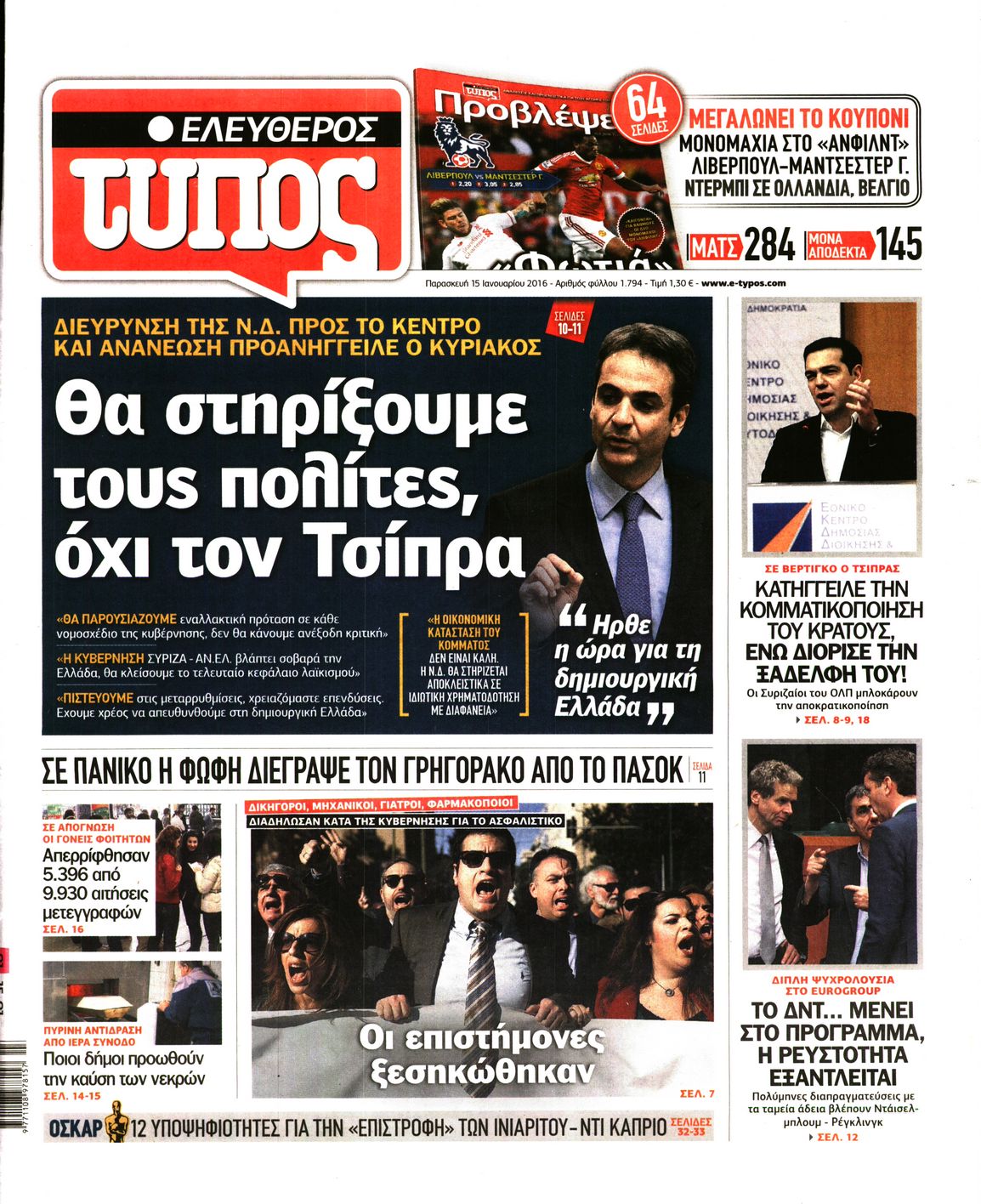 Οι πολιτικές εφημερίδες 15-1-2016 Enikos Newsroom 06:13, Παρασκευή 15 Ιανουαρίου 2016 Media Διαβάστε τα σημερινά πρωτοσέλιδα των πολιτικών εφημερίδων: ΠΟΛΙΤΙΚΕΣ ΕΦΗΜΕΡΙΔΕΣ ΠΡΩΤΟΣΕΛΙΔΑ Μοιράσου το: σχολίασε κι εσύ (0 σχόλια) Ακολουθήστε το enikos.gr στο Google News και μάθετε πρώτοι όλες τις ειδήσεις Δείτε όλες τις τελευταίες ειδήσεις από την Ελλάδα και τον Κόσμο στο enikos.gr Ειδήσεις Ροή Ειδήσεων 2 ώρες πριν Χριστούγεννα στα μπλόκα: Επιμένουν στις κινητοποιήσεις τους οι αγρότες – Ανοίγουν τα διόδια το Σαββατοκύριακο 2 ώρες πριν Ουκρανία: Η άνευ προηγουμένου επίθεση σε ρωσικό τάνκερ στη Μεσόγειο και το μήνυμα προς στον Πούτιν – Το «μακρύ χέρι» του Κιέβου 1 ώρα πριν Πούτιν: Τα μηνύματα σε Ευρώπη και ΝΑΤΟ από το μαραθώνιο «σόου» του – Η απαίτηση για «σεβασμό» και η ειρήνη «με τους όρους» της Μόσχας 2 ώρες πριν Τραμπ: Δεν αποκλείει την πιθανότητα ενός πολέμου στη Βενεζουέλα – «Ο Μαδούρο ξέρει καλύτερα από τον καθένα τι ακριβώς θέλω» 3 ώρες πριν Συνεχίζει να προκαλεί ο Μίτσκοσκι: «Για μένα το όνομα Μακεδονία είναι ιερό» 1 ώρα πριν Ανακαλύφθηκαν αρχαία χρυσά νομίσματα 2.200 ετών που απεικονίζουν τον θεό Απόλλωνα – Η άγνωστη σύνδεση με τον Φίλιππο Β΄ της Μακεδονίας 2 ώρες πριν Ύπνος: Μια κρυφή κατάσταση του εγκεφάλου πριν από τον ύπνο μπορεί να είναι το “κλειδί” για υψηλή ευφυΐα και δημιουργικότητα 3 ώρες πριν Αριθμολογία: Οι άνθρωποι που έχουν γεννηθεί αυτές τις 4 ημερομηνίες, συχνά παρεξηγούνται – «Η καλοσύνη τους κρύβει τεράστια δύναμη» 4 ώρες πριν Ξεχάστε το καθάρισμα το Σαββατοκύριακο: Ο «κανόνας των 20 λεπτών» που θα σας λύσει τα χέρια 1 λεπτό πριν Βασίλης Σπανούλης: Δεν εμφανίστηκε ούτε ένας δημοσιογράφος στην συνέντευξη Τύπου – «Καλησπέρα στον… κανέναν», δείτε βίντεο 12 λεπτά πριν Πόλεμος στην Ουκρανία: Εφτά νεκροί από ρωσική πυραυλική επίθεση στο λιμάνι της Οδησσού 16 λεπτά πριν ΗΠΑ: Η κυβέρνηση του Ντόναλντ Τραμπ άρχισε να δημοσιοποιεί τα αρχεία Έπσταϊν 28 λεπτά πριν Σάμος: Άνοιξε το μπλόκο των αγροτών στον κόμβο Κοκκαρίου – Σε νέα συνεδρίαση θα καθορίσουν την στάση τους 36 λεπτά πριν Άνω Λιόσια: Πυροβολισμοί σε επιχείρηση με χαλιά – Εντοπίστηκαν 10 κάλυκες ENIKOS NETWORK Το ΕΚΑΒ τιμήθηκε από την Ακαδημία Αθηνών για τα 40 χρόνια προσφοράς του Έχετε πραγματικά μεγάλη καρδιά; 10 χαρακτηριστικά όσων έχουν καλοσύνη Αναστολή μέτρων αναγκαστικής εκτέλεσης για κτηνοτρόφους που πλήττονται από την ευλογιά των αιγοπροβάτων Πλήρης επάρκεια προϊόντων στις λαϊκές της Αττικής, παρά τις αγροτικές κινητοποιήσεις – Τι απαντούν οι πωλητές Χαρτογραφώντας το «σημείο χωρίς επιστροφή»: Για πρώτη φορά αποκαλύπτεται με λεπτομέρεια το ακανθώδες όριο της ατμόσφαιρας τ... Η Google καταργεί τη λειτουργία «dark web report» – Πώς θα μπορούν οι χρήστες να διαγράφουν τα δεδομένα τους περισσότερα 22:42 , Παρασκευή 19 Δεκεμβρίου 2025 Γιώργος Γιαννόπουλος για “Το σόι σου”: “Είναι ευτυχία και ευλογία αυτή η σειρά” «Είναι ευτυχία και ευλογία η συγκυρία αυτής της σειράς», θα πει ο Γιώργος Γιαννόπουλος -ο αγαπ... 20:37 , Παρασκευή 19 Δεκεμβρίου 2025 Don’t Forget The Lyrics: Η Έλλη Κοκκίνου υποδέχεται 4 παίκτες που θα κάνουν τα πάντα για να μη χάσουν ούτε… μισή λέξη από τους στίχους Το «Don’t Forget The Lyrics» επιστρέφει απόψε, Παρασκευή 19 Δεκεμβρίου, στις 21:00 με νέο επει... 19:31 , Παρασκευή 19 Δεκεμβρίου 2025 GNTM: Απόψε ο μεγάλος τελικός για τους 4 φιναλίστ Έπειτα από μήνες γεμάτους μόδα, δημιουργία και έντονες αναμετρήσεις, το GNTM 2025 κορυφώνεται,... 18:11 , Παρ