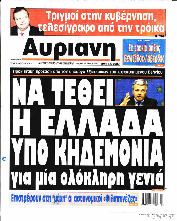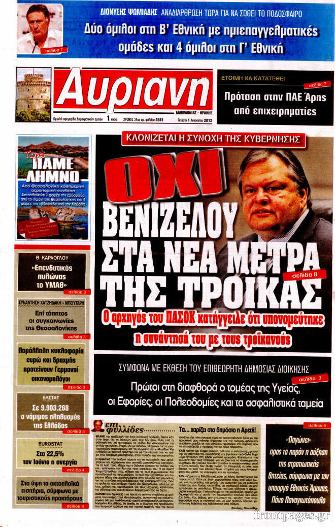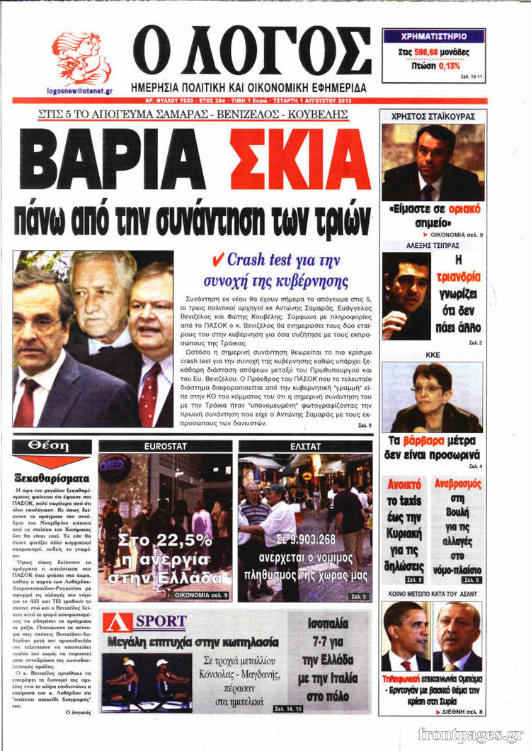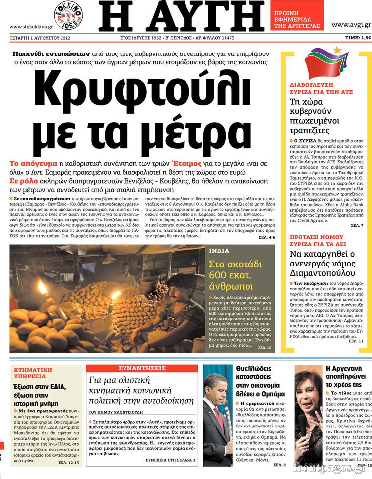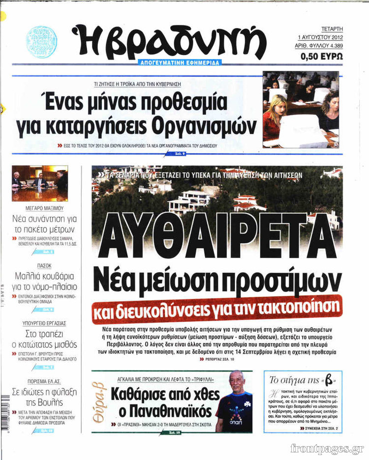 Τα σημερινά πρωτοσέλιδα των πολιτικών εφημερίδων.
