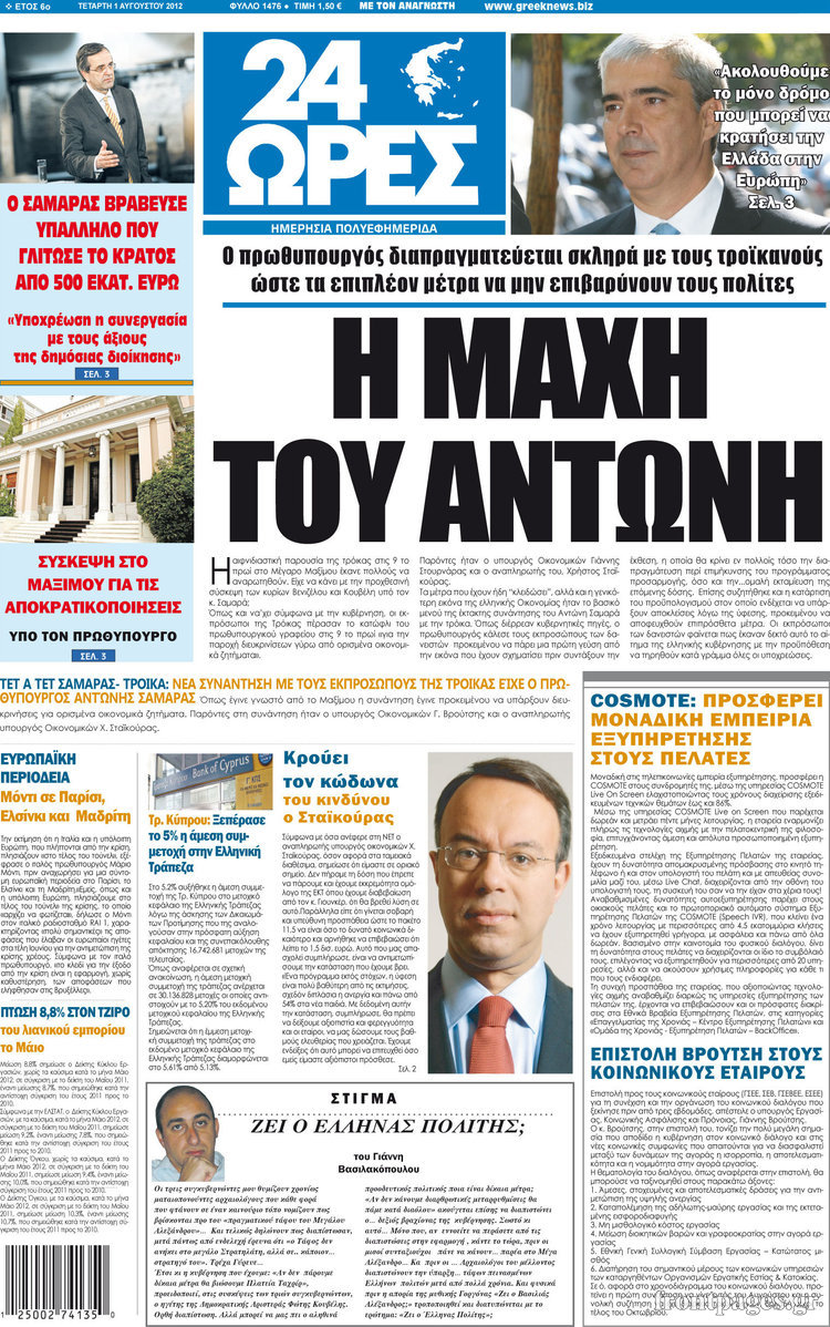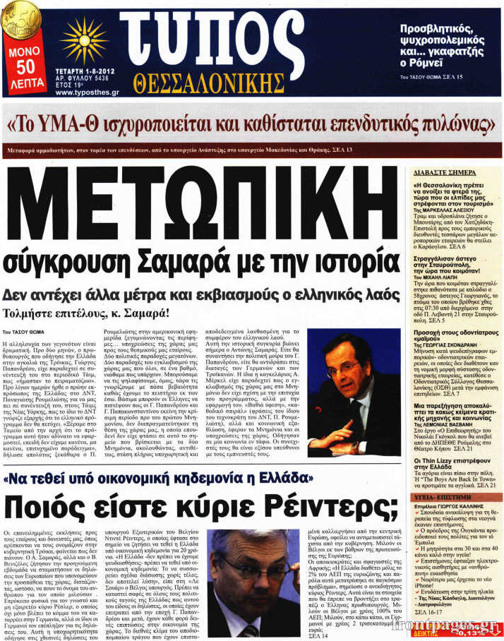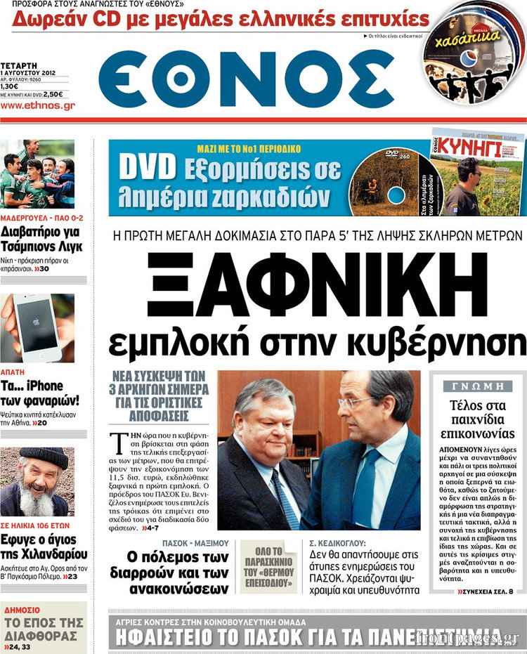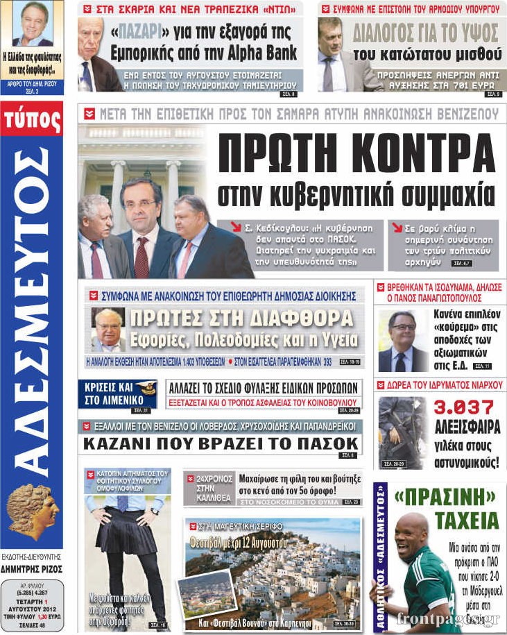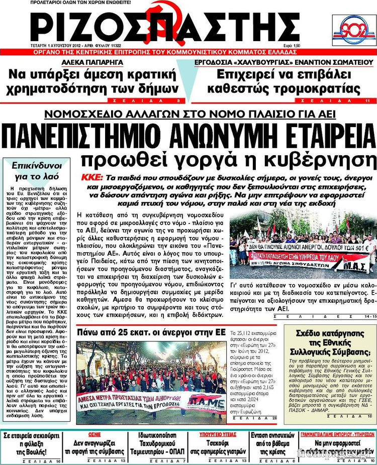 Τα σημερινά πρωτοσέλιδα των πολιτικών εφημερίδων.