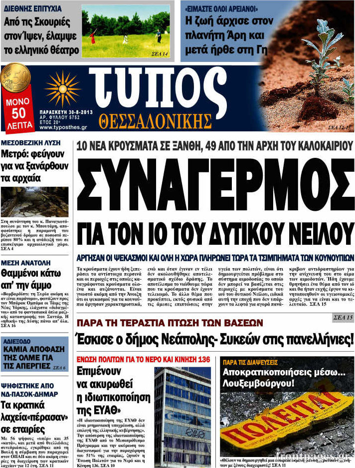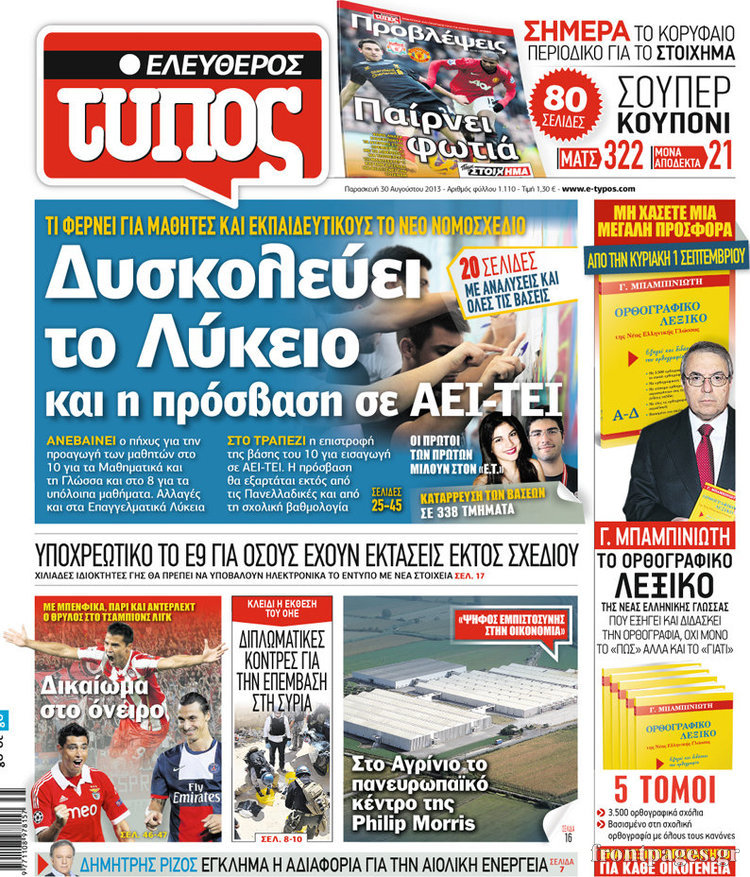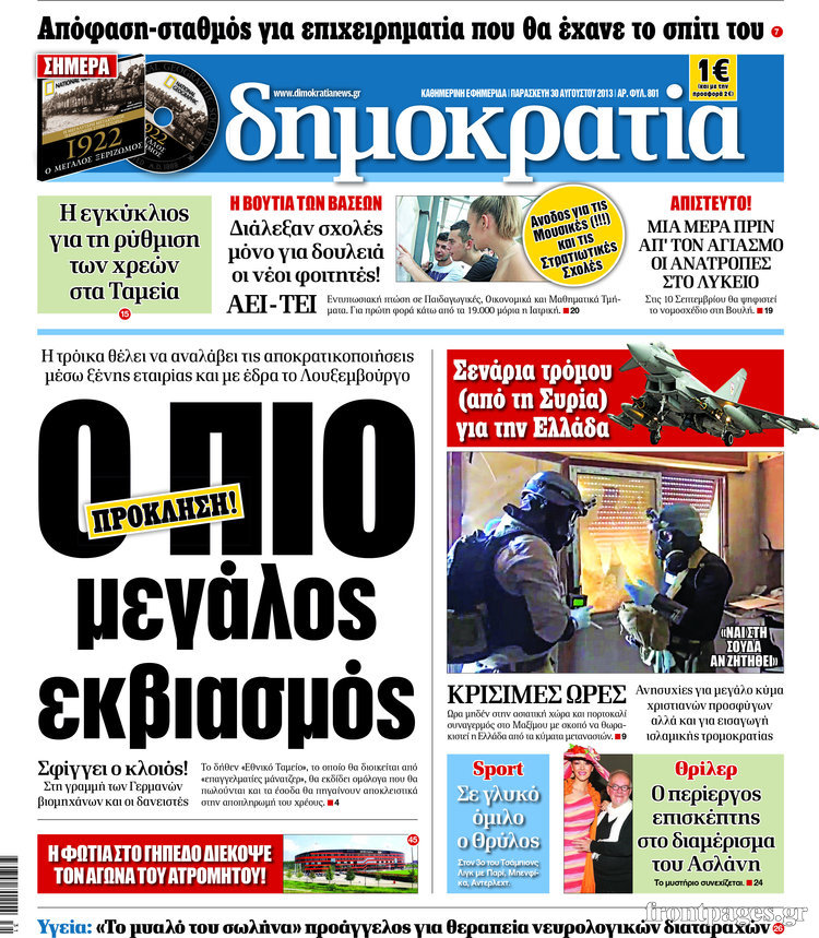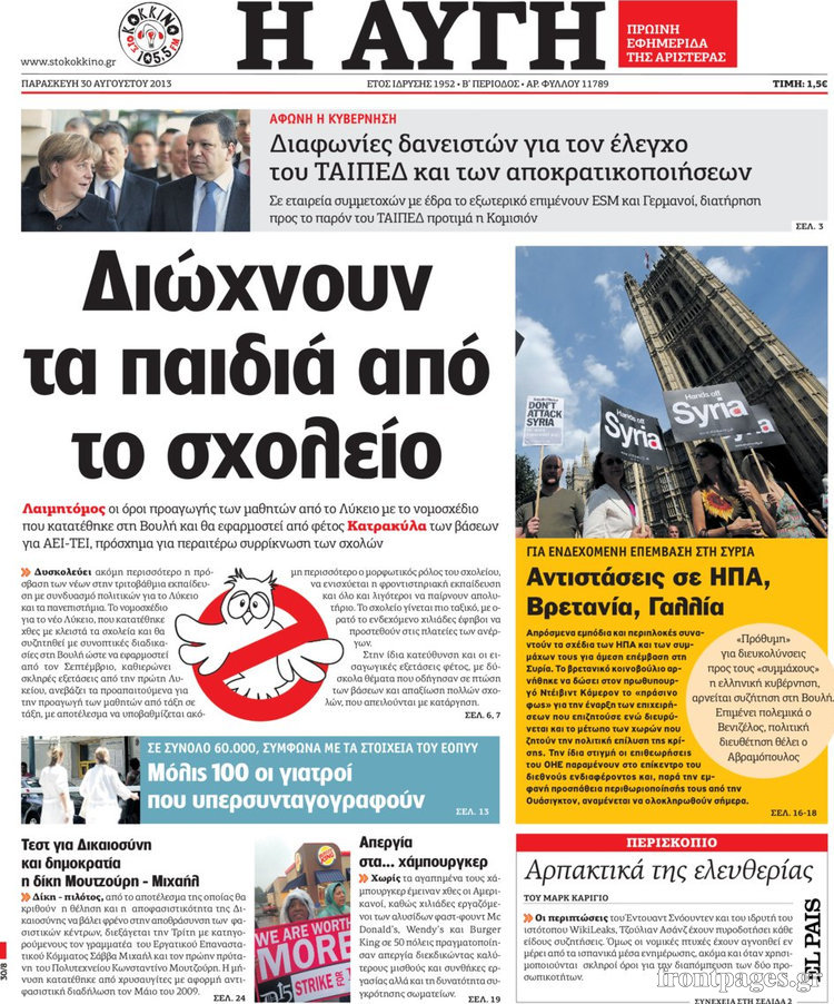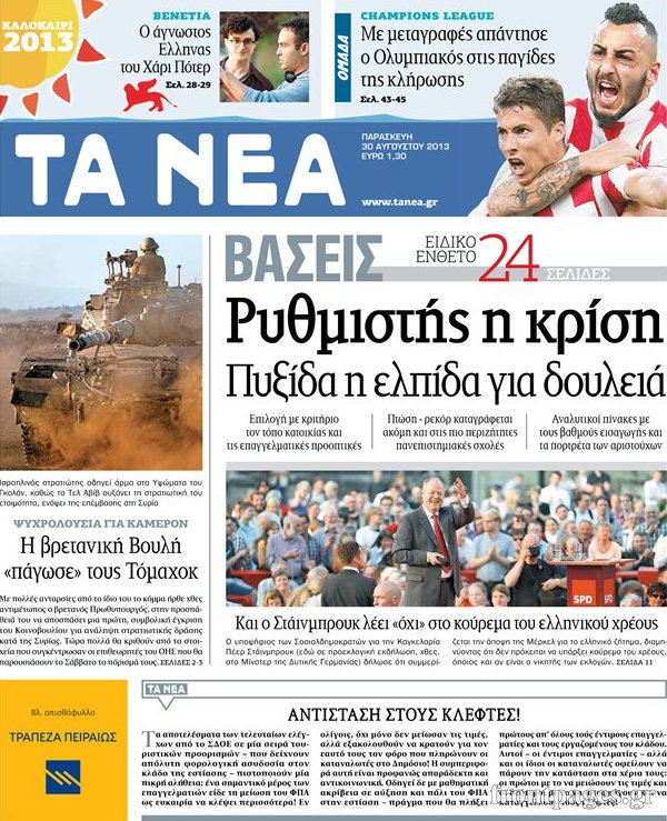 Οι πολιτικές εφημερίδες Enikos Newsroom 08:57, Παρασκευή 30 Αυγούστου 2013 Media Οι πολιτικές εφημερίδες Διαβάστε τα πρωτοσέλιδα των πολιτικών εφημερίδων: ΕΦΗΜΕΡΙΔΕΣ ΠΟΛΙΤΙΚΕΣ ΕΦΗΜΕΡΙΔΕΣ ΠΡΩΤΟΣΕΛΙΔΑ Μοιράσου το: σχολίασε κι εσύ (0 σχόλια) Ακολουθήστε το enikos.gr στο Google News και μάθετε πρώτοι όλες τις ειδήσεις Δείτε όλες τις τελευταίες ειδήσεις από την Ελλάδα και τον Κόσμο στο enikos.gr Ειδήσεις Ροή Ειδήσεων 7 ώρες πριν Εκτός ευρωομάδας ΣΥΡΙΖΑ ο Νίκος Παππάς μετά την επίθεση στον δημοσιογράφο Νίκο Γιαννόπουλο – Η μήνυση και οι νέες δηλώσεις 7 ώρες πριν «Αγριεύουν» οι αγρότες: «Δεν συντρέχει λόγος συνάντησης με τον πρωθυπουργό» – Ώρα αποφάσεων στη σύσκεψη της Πέμπτης 7 ώρες πριν Κυψέλη: Χωρίς την οικογένειά της δίπλα της απολογήθηκε η 16χρονη – «Της είχε επιτεθεί κάποιος για να την βιάσει, φοβήθηκε και κυκλοφορούσε με μαχαίρι» 7 ώρες πριν Politico: Το πρόβλημα της Ευρώπης δεν είναι το Βέλγιο αλλά ο Ντόναλντ Τραμπ 8 ώρες πριν Αλεξανδρούπολη: Πολυοργανική ανεπάρκεια λόγω υποσιτισμού η αιτία θανάτου του 3χρονου αγοριού 7 ώρες πριν Μυστήριο με τεράστιες κυκλικές πέτρες 200 κιλών – Ανακαλύφθηκαν τυχαία κατά τη διάρκεια οδικών έργων και κανείς δεν ξέρει από πού προέρχονται 8 ώρες πριν Ύπνος: Ειδικός εξηγεί τον πραγματικό λόγο που ξυπνάτε στις 4 τα ξημερώματα – Ο ρόλος των ορμονών και του κιρκάδιου ρυθμού 9 ώρες πριν Αριθμολογία: Οι άνθρωποι που έχουν γεννηθεί αυτές τις 4 ημερομηνίες, είναι τρυφεροί και αγαπούν ανιδιοτελώς 21 ώρες πριν 20 χρόνια τα Χριστούγεννα ξεκινούν στα Public με μεγάλη ποικιλία σε δώρα! 4 λεπτά πριν Οι οικονομικές εφημερίδες 18/12/2025 9 λεπτά πριν Οι αθλητικές εφημερίδες 18/12/2025 14 λεπτά πριν Οι πολιτικές εφημερίδες 18/12/2025 22 λεπτά πριν Τα ζώδια σήμερα, Πέμπτη 18 Δεκεμβρίου: Λέοντες, η καρδιά σας θέλει να εκφραστεί 30 λεπτά πριν Το Ποντίκι σήμερα Πέμπτη 18/12/2025 ENIKOS NETWORK Αϋπνία: Το κόλπο που θα σας βοηθήσει να κοιμηθείτε απόψε – Είναι απλό και έχει αποτέλεσμα 2,6 εκατομμύρια πολίτες έχουν ήδη εμβολιαστεί κατά της γρίπης ΕΛΣΤΑΤ: Τι δείχνουν τα νέα στοιχεία για τις ηλεκτρονικές παραγγελίες των επιχειρήσεων ΚΕΠΕ: Οι 3 διακριτές συμβολές των ΜμΕ και της μεταποίησης στην ελληνική οικονομία Χαρτογραφώντας το «σημείο χωρίς επιστροφή»: Για πρώτη φορά αποκαλύπτεται με λεπτομέρεια το ακανθώδες όριο της ατμόσφαιρας τ... Η Google καταργεί τη λειτουργία «dark web report» – Πώς θα μπορούν οι χρήστες να διαγράφουν τα δεδομένα τους περισσότερα 05:48 , Πέμπτη 18 Δεκεμβρίου 2025 Οι οικονομικές εφημερίδες 18/12/2025 Διαβάστε τα πρωτοσέλιδα από τις οικονομικές εφημερίδες, σήμερα 18/12/2025. 05:43 , Πέμπτη 18 Δεκεμβρίου 2025 Οι αθλητικές εφημερίδες 18/12/2025 Διαβάστε τα πρωτοσέλιδα από τις αθλητικές εφημερίδες, σήμερα 18/12/2025. 05:38 , Πέμπτη 18 Δεκεμβρίου 2025 Οι πολιτικές εφημερίδες 18/12/2025 Διαβάστε τα πρωτοσέλιδα από τις πολιτικές εφημερίδες, σήμερα 18/12/2025. 05:22 , Πέμπτη 18 Δεκεμβρίου 2025 Το Ποντίκι σήμερα Πέμπτη 18/12/2025 Διαβάστε το πρωτοσέλιδο της εφημερίδας «Το Ποντίκι» σήμερα 18/12/2025. ΤΕΛΕΥΤΑΙΕΣ ΕΙΔΗΣΕΙΣ 4 λεπτά πριν Οι οικονομικές εφημερίδες 18/12/2025 9 λεπτά πριν Οι αθλητικές εφημερίδες 18/12/2025 14 λεπτά πριν Οι πολιτικές εφημερίδες 18/12/2025 22 λεπτά πριν Τα ζώδια σήμερα, Πέμπτη 18 Δεκεμβρίου: Λέοντες, η καρδιά... 30 λεπτά πριν Το Ποντίκι σήμερα Πέμπτη 18/12/2025 35 λεπτά πριν Εφημερεύοντα φαρμακεία σε Αθήνα και Θεσσαλονίκη (18/12) 37 λεπτά πριν Αλεξάνδρα Ούστα: «Αυτό που με τρέλανε στον σύζυγό μου... 44 λεπτά πριν Μιχάλης Αεράκης: «Της είπα “θέλω να κάνουμε..