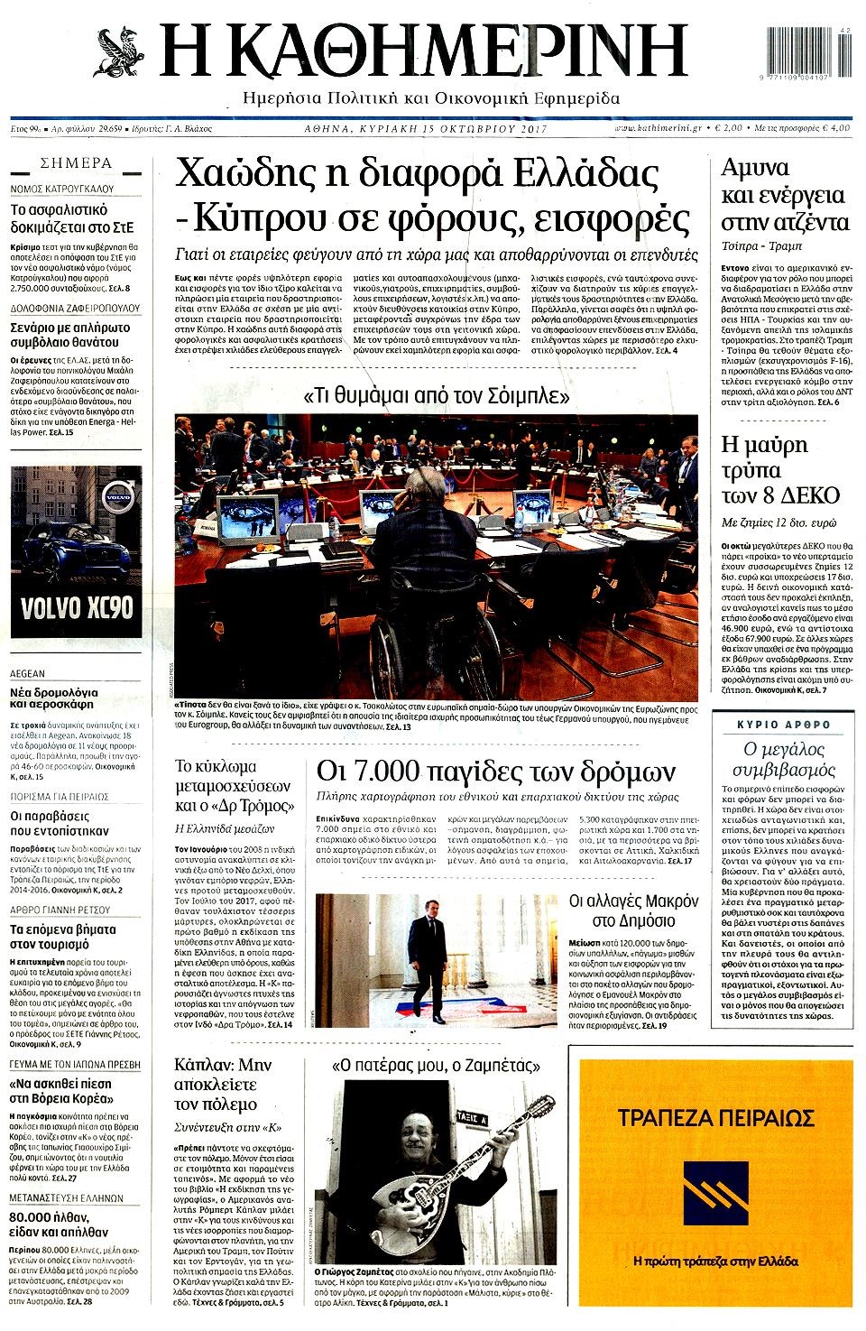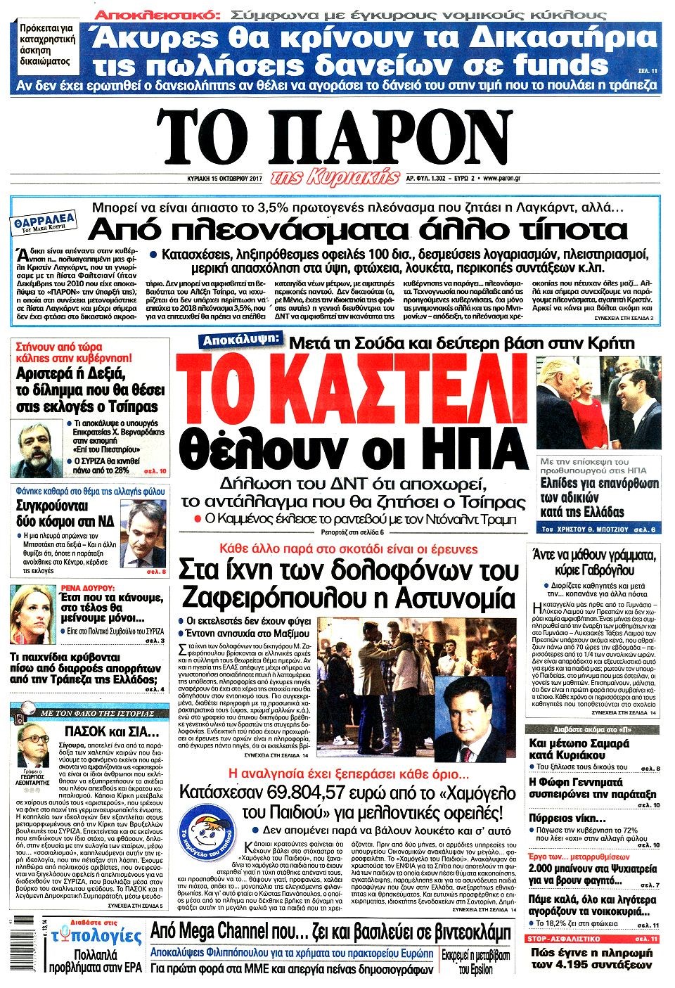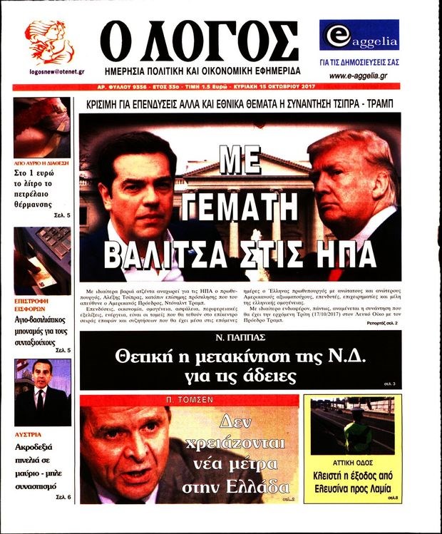 Οι πολιτικές εφημερίδες 15/10/2017 Κώστας Τεό 07:04, Κυριακή 15 Οκτωβρίου 2017 Media Διαβάστε τα σημερινά πρωτοσέλιδα των πολιτικών εφημερίδων: ΠΟΛΙΤΙΚΕΣ ΕΦΗΜΕΡΙΔΕΣ ΠΡΩΤΟΣΕΛΙΔΑ Μοιράσου το: σχολίασε κι εσύ (0 σχόλια) Ακολουθήστε το enikos.gr στο Google News και μάθετε πρώτοι όλες τις ειδήσεις Δείτε όλες τις τελευταίες ειδήσεις από την Ελλάδα και τον Κόσμο στο enikos.gr Ειδήσεις Ροή Ειδήσεων 19 λεπτά πριν Χριστούγεννα στα μπλόκα: Επιμένουν στις κινητοποιήσεις τους οι αγρότες – Ανοίγουν τα διόδια το Σαββατοκύριακο 48 λεπτά πριν Τραμπ: Δεν αποκλείει την πιθανότητα ενός πολέμου στη Βενεζουέλα – «Ο Μαδούρο ξέρει καλύτερα από τον καθένα τι ακριβώς θέλω» 42 λεπτά πριν Ουκρανία: Η άνευ προηγουμένου επίθεση σε ρωσικό τάνκερ στη Μεσόγειο και το μήνυμα προς στον Πούτιν – Το «μακρύ χέρι» του Κιέβου 3 ώρες πριν Πούτιν: «Ναι, είμαι ερωτευμένος» – Βίντεο από τη σπάνια προσωπική παραδοχή του 1 ώρα πριν Συνεχίζει να προκαλεί ο Μίτσκοσκι: «Για μένα το όνομα Μακεδονία είναι ιερό» 2 ώρες πριν Αριθμολογία: Οι άνθρωποι που έχουν γεννηθεί αυτές τις 4 ημερομηνίες, συχνά παρεξηγούνται – «Η καλοσύνη τους κρύβει τεράστια δύναμη» 4 ώρες πριν Μήπως έχετε χάσει τον εαυτό σας στη σχέση σας; 7 «αθόρυβες» υποχωρήσεις που μάλλον κάνατε, χωρίς να το συνειδητοποιήσετε 3 ώρες πριν Ξεχάστε το καθάρισμα το Σαββατοκύριακο: Ο «κανόνας των 20 λεπτών» που θα σας λύσει τα χέρια 57 λεπτά πριν Ύπνος: Μια κρυφή κατάσταση του εγκεφάλου πριν από τον ύπνο μπορεί να είναι το “κλειδί” για υψηλή ευφυΐα και δημιουργικότητα 3 λεπτά πριν Νίκος Ξυλούρης: Συγκινεί η χήρα του σπουδαίου καλλιτέχνη – «Ευχαριστώ όλο τον κόσμο που τον κρατάει ζωντανό 45 χρόνια» 9 λεπτά πριν Παναθηναϊκός: «Μέσα» οι Σφιντέρσκι και Τουμπά για το ματς με τον ΠΑΟΚ – Τι έδειξε η μαγνητική του Πάντοβιτς 15 λεπτά πριν Γιώργος Γιαννόπουλος για “Το σόι σου”: “Είναι ευτυχία και ευλογία αυτή η σειρά” 19 λεπτά πριν Χριστούγεννα στα μπλόκα: Επιμένουν στις κινητοποιήσεις τους οι αγρότες – Ανοίγουν τα διόδια το Σαββατοκύριακο 31 λεπτά πριν Χάρι και Μέγκαν: Η σπάνια οικογενειακή φωτογραφία με τον Άρτσι και τη Λίλιμπετ – Τι σχεδιάζουν για τα Χριστούγεννα ENIKOS NETWORK Το ΕΚΑΒ τιμήθηκε από την Ακαδημία Αθηνών για τα 40 χρόνια προσφοράς του Έχετε πραγματικά μεγάλη καρδιά; 10 χαρακτηριστικά όσων έχουν καλοσύνη Πλήρης επάρκεια προϊόντων στις λαϊκές της Αττικής, παρά τις αγροτικές κινητοποιήσεις – Τι απαντούν οι πωλητές ΑΑΔΕ: Νέες αναβαθμίσεις στο Ψηφιακό Πελατολόγιο και την εφαρμογή myDATAapp – Τι πρέπει να γνωρίζετε Χαρτογραφώντας το «σημείο χωρίς επιστροφή»: Για πρώτη φορά αποκαλύπτεται με λεπτομέρεια το ακανθώδες όριο της ατμόσφαιρας τ... Η Google καταργεί τη λειτουργία «dark web report» – Πώς θα μπορούν οι χρήστες να διαγράφουν τα δεδομένα τους περισσότερα 22:42 , Παρασκευή 19 Δεκεμβρίου 2025 Γιώργος Γιαννόπουλος για “Το σόι σου”: “Είναι ευτυχία και ευλογία αυτή η σειρά” «Είναι ευτυχία και ευλογία η συγκυρία αυτής της σειράς», θα πει ο Γιώργος Γιαννόπουλος -ο αγαπ... 20:37 , Παρασκευή 19 Δεκεμβρίου 2025 Don’t Forget The Lyrics: Η Έλλη Κοκκίνου υποδέχεται 4 παίκτες που θα κάνουν τα πάντα για να μη χάσουν ούτε… μισή λέξη από τους στίχους Το «Don’t Forget The Lyrics» επιστρέφει απόψε, Παρασκευή 19 Δεκεμβρίου, στις 21:00 με νέο επει... 19:31 , Παρασκευή 19 Δεκεμβρίου 2025 GNTM: Απόψε ο μεγάλος τελικός για τους 4 φιναλίστ Έπειτα από μήνες γεμάτους μόδα, δημιουργία και έντονες αναμετρήσεις, το GNTM 2025 κορυφώνεται,... 18:11 , Παρασκευ