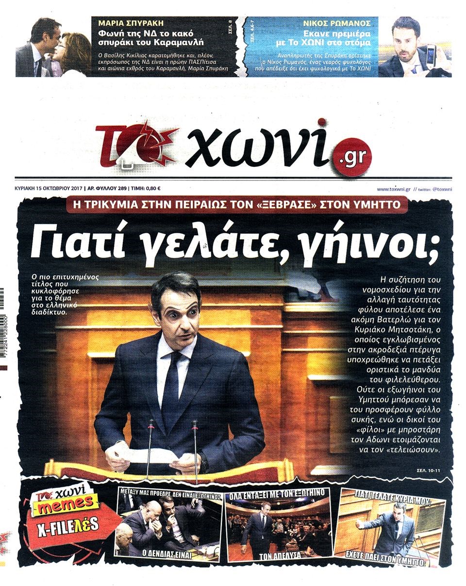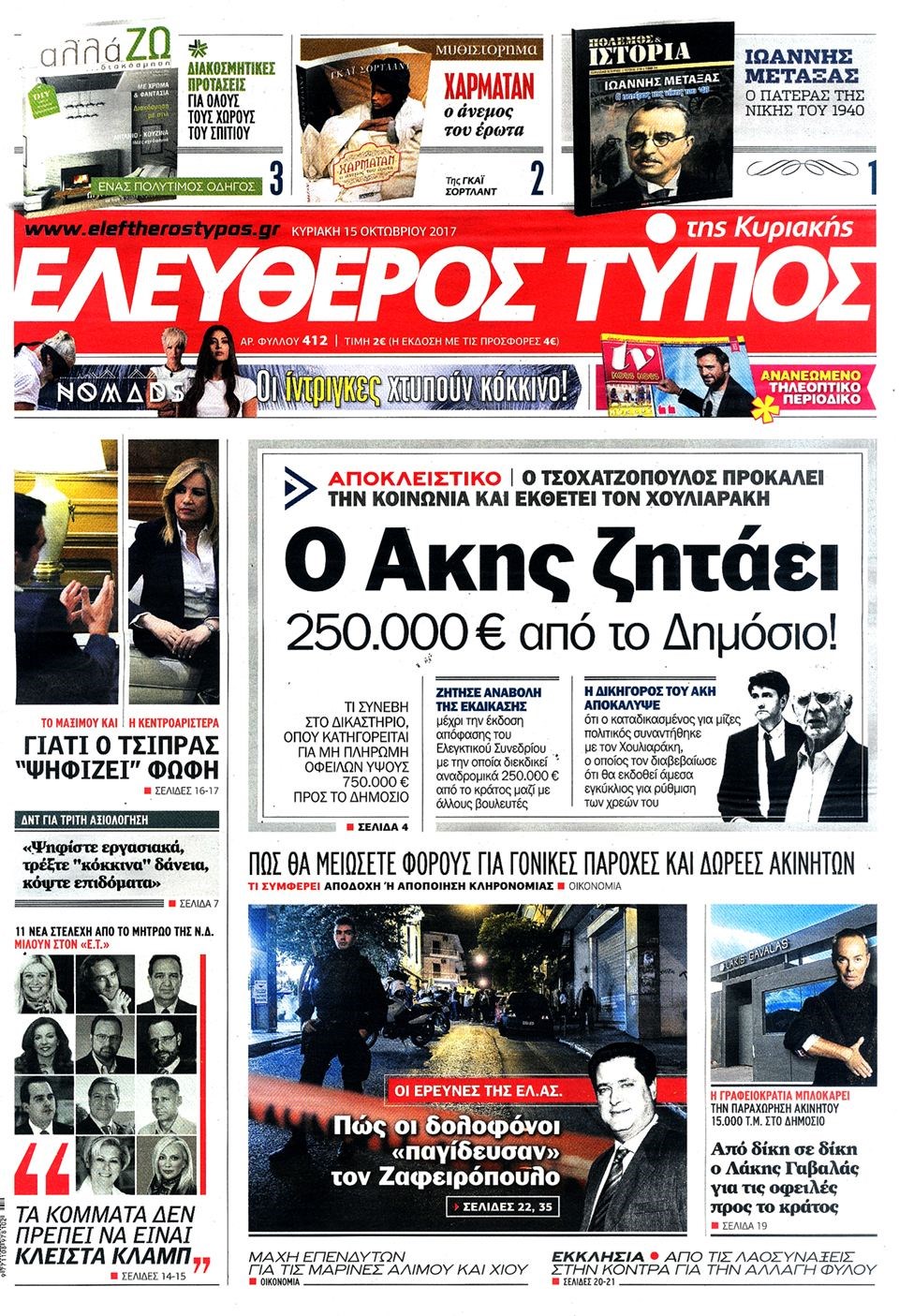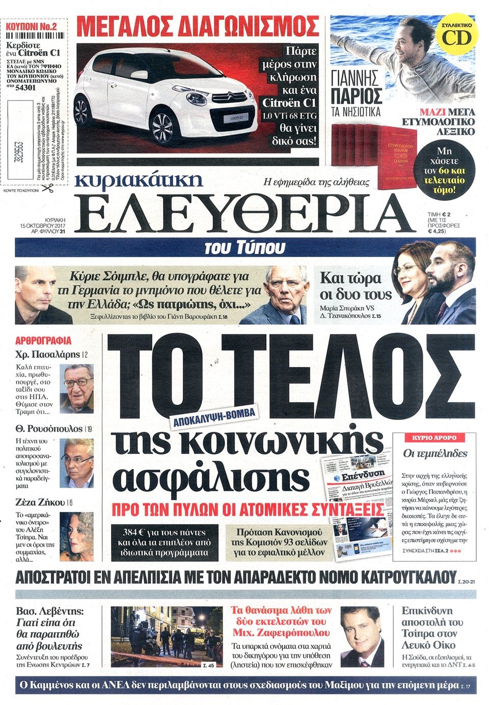 Οι πολιτικές εφημερίδες 15/10/2017 Κώστας Τεό 07:04, Κυριακή 15 Οκτωβρίου 2017 Media Διαβάστε τα σημερινά πρωτοσέλιδα των πολιτικών εφημερίδων: ΠΟΛΙΤΙΚΕΣ ΕΦΗΜΕΡΙΔΕΣ ΠΡΩΤΟΣΕΛΙΔΑ Μοιράσου το: σχολίασε κι εσύ (0 σχόλια) Ακολουθήστε το enikos.gr στο Google News και μάθετε πρώτοι όλες τις ειδήσεις Δείτε όλες τις τελευταίες ειδήσεις από την Ελλάδα και τον Κόσμο στο enikos.gr Ειδήσεις Ροή Ειδήσεων 19 λεπτά πριν Χριστούγεννα στα μπλόκα: Επιμένουν στις κινητοποιήσεις τους οι αγρότες – Ανοίγουν τα διόδια το Σαββατοκύριακο 48 λεπτά πριν Τραμπ: Δεν αποκλείει την πιθανότητα ενός πολέμου στη Βενεζουέλα – «Ο Μαδούρο ξέρει καλύτερα από τον καθένα τι ακριβώς θέλω» 42 λεπτά πριν Ουκρανία: Η άνευ προηγουμένου επίθεση σε ρωσικό τάνκερ στη Μεσόγειο και το μήνυμα προς στον Πούτιν – Το «μακρύ χέρι» του Κιέβου 3 ώρες πριν Πούτιν: «Ναι, είμαι ερωτευμένος» – Βίντεο από τη σπάνια προσωπική παραδοχή του 1 ώρα πριν Συνεχίζει να προκαλεί ο Μίτσκοσκι: «Για μένα το όνομα Μακεδονία είναι ιερό» 2 ώρες πριν Αριθμολογία: Οι άνθρωποι που έχουν γεννηθεί αυτές τις 4 ημερομηνίες, συχνά παρεξηγούνται – «Η καλοσύνη τους κρύβει τεράστια δύναμη» 4 ώρες πριν Μήπως έχετε χάσει τον εαυτό σας στη σχέση σας; 7 «αθόρυβες» υποχωρήσεις που μάλλον κάνατε, χωρίς να το συνειδητοποιήσετε 3 ώρες πριν Ξεχάστε το καθάρισμα το Σαββατοκύριακο: Ο «κανόνας των 20 λεπτών» που θα σας λύσει τα χέρια 57 λεπτά πριν Ύπνος: Μια κρυφή κατάσταση του εγκεφάλου πριν από τον ύπνο μπορεί να είναι το “κλειδί” για υψηλή ευφυΐα και δημιουργικότητα 3 λεπτά πριν Νίκος Ξυλούρης: Συγκινεί η χήρα του σπουδαίου καλλιτέχνη – «Ευχαριστώ όλο τον κόσμο που τον κρατάει ζωντανό 45 χρόνια» 9 λεπτά πριν Παναθηναϊκός: «Μέσα» οι Σφιντέρσκι και Τουμπά για το ματς με τον ΠΑΟΚ – Τι έδειξε η μαγνητική του Πάντοβιτς 15 λεπτά πριν Γιώργος Γιαννόπουλος για “Το σόι σου”: “Είναι ευτυχία και ευλογία αυτή η σειρά” 19 λεπτά πριν Χριστούγεννα στα μπλόκα: Επιμένουν στις κινητοποιήσεις τους οι αγρότες – Ανοίγουν τα διόδια το Σαββατοκύριακο 31 λεπτά πριν Χάρι και Μέγκαν: Η σπάνια οικογενειακή φωτογραφία με τον Άρτσι και τη Λίλιμπετ – Τι σχεδιάζουν για τα Χριστούγεννα ENIKOS NETWORK Το ΕΚΑΒ τιμήθηκε από την Ακαδημία Αθηνών για τα 40 χρόνια προσφοράς του Έχετε πραγματικά μεγάλη καρδιά; 10 χαρακτηριστικά όσων έχουν καλοσύνη Πλήρης επάρκεια προϊόντων στις λαϊκές της Αττικής, παρά τις αγροτικές κινητοποιήσεις – Τι απαντούν οι πωλητές ΑΑΔΕ: Νέες αναβαθμίσεις στο Ψηφιακό Πελατολόγιο και την εφαρμογή myDATAapp – Τι πρέπει να γνωρίζετε Χαρτογραφώντας το «σημείο χωρίς επιστροφή»: Για πρώτη φορά αποκαλύπτεται με λεπτομέρεια το ακανθώδες όριο της ατμόσφαιρας τ... Η Google καταργεί τη λειτουργία «dark web report» – Πώς θα μπορούν οι χρήστες να διαγράφουν τα δεδομένα τους περισσότερα 22:42 , Παρασκευή 19 Δεκεμβρίου 2025 Γιώργος Γιαννόπουλος για “Το σόι σου”: “Είναι ευτυχία και ευλογία αυτή η σειρά” «Είναι ευτυχία και ευλογία η συγκυρία αυτής της σειράς», θα πει ο Γιώργος Γιαννόπουλος -ο αγαπ... 20:37 , Παρασκευή 19 Δεκεμβρίου 2025 Don’t Forget The Lyrics: Η Έλλη Κοκκίνου υποδέχεται 4 παίκτες που θα κάνουν τα πάντα για να μη χάσουν ούτε… μισή λέξη από τους στίχους Το «Don’t Forget The Lyrics» επιστρέφει απόψε, Παρασκευή 19 Δεκεμβρίου, στις 21:00 με νέο επει... 19:31 , Παρασκευή 19 Δεκεμβρίου 2025 GNTM: Απόψε ο μεγάλος τελικός για τους 4 φιναλίστ Έπειτα από μήνες γεμάτους μόδα, δημιουργία και έντονες αναμετρήσεις, το GNTM 2025 κορυφώνεται,... 18:11 , Παρασκευ