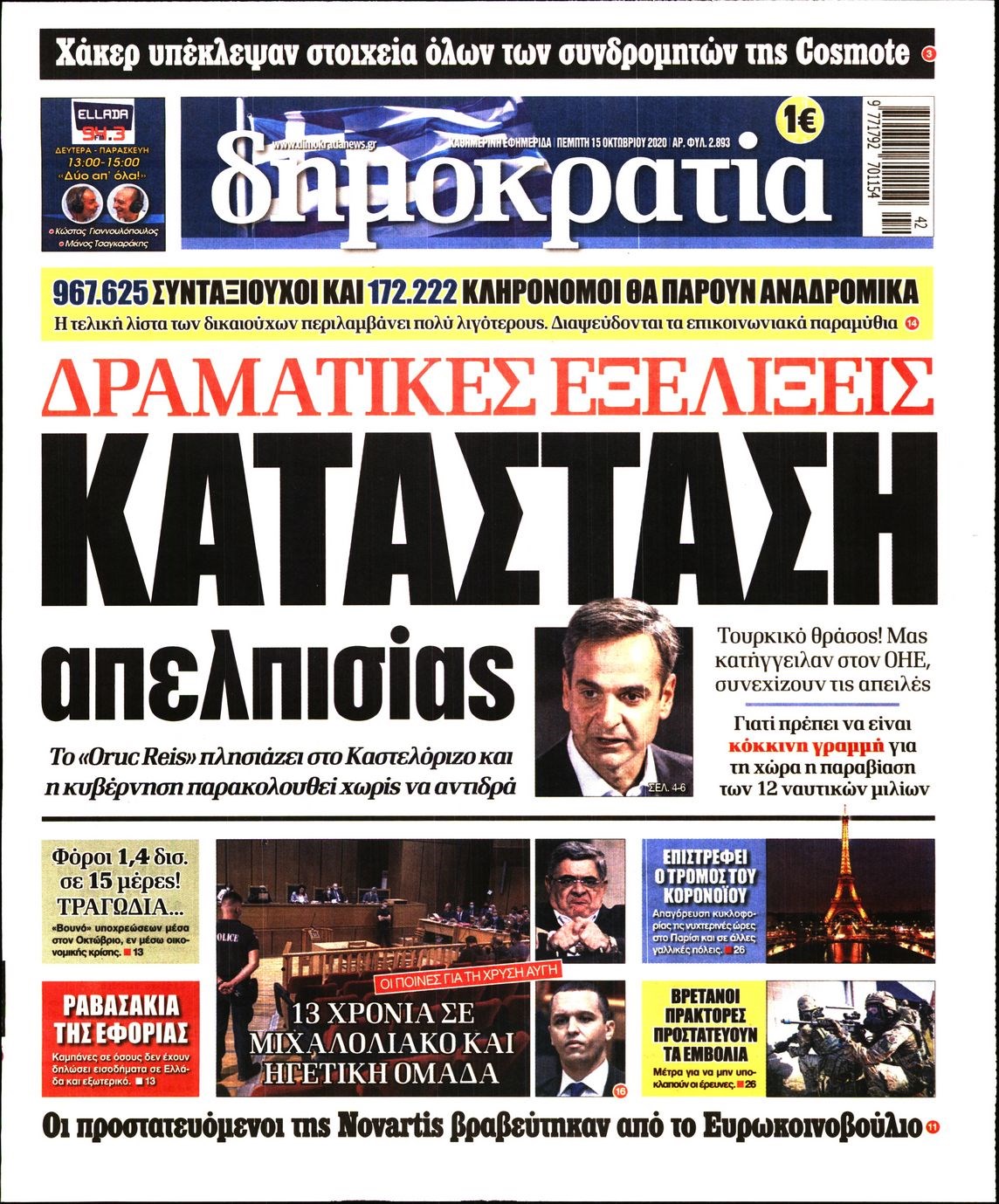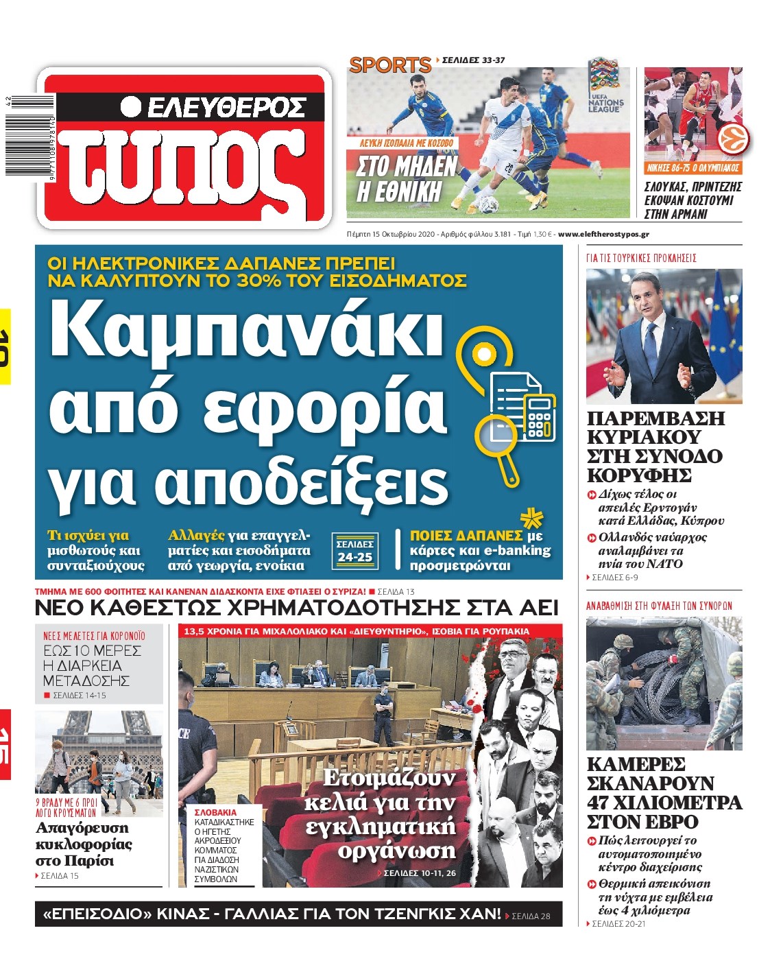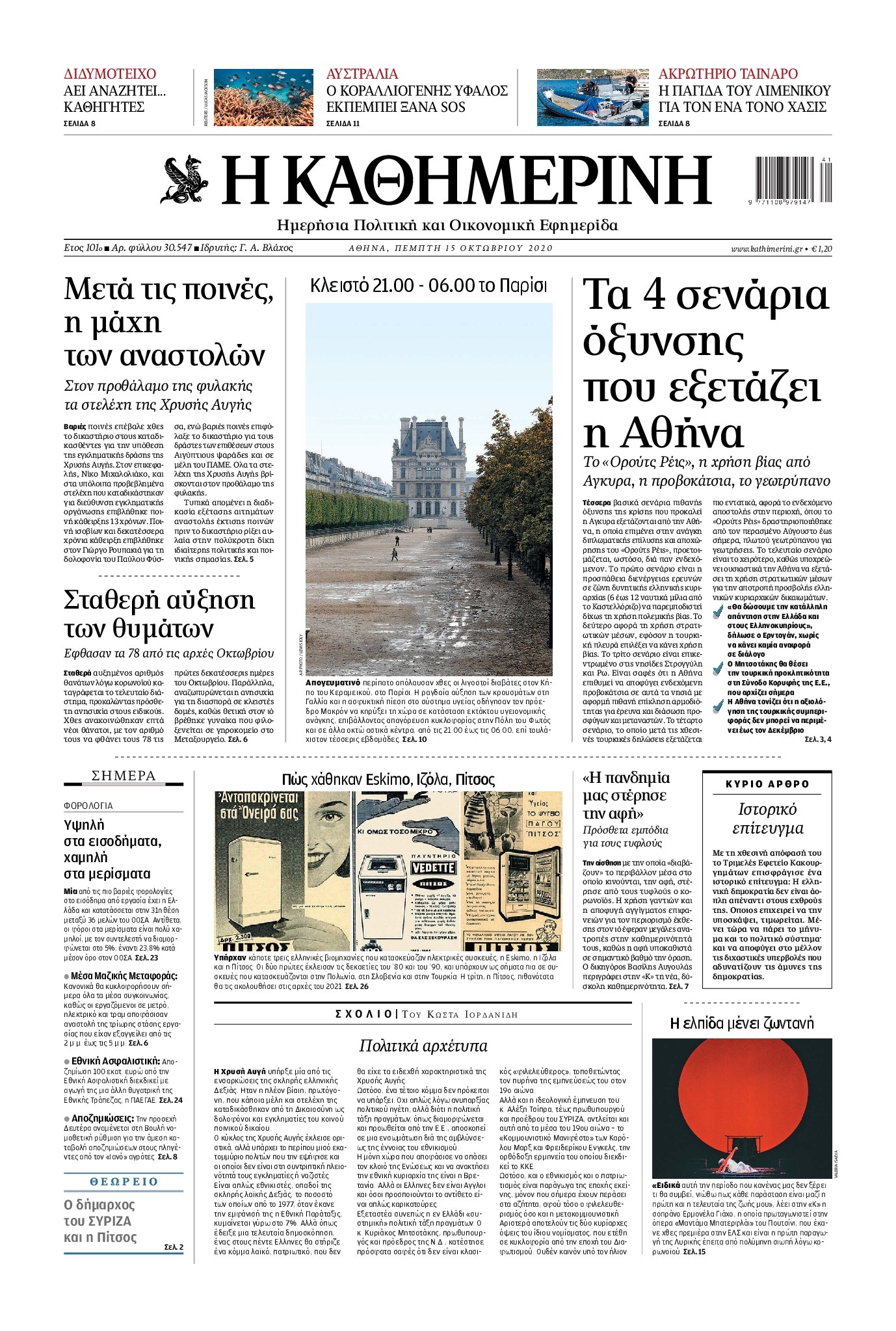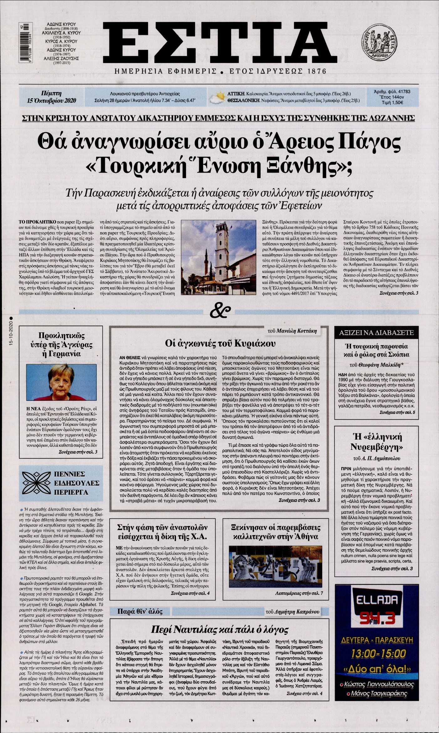 Οι πολιτικές εφημερίδες 15/10/2020 Διονύσης Νίκκας 06:10, Πέμπτη 15 Οκτωβρίου 2020 Media Διαβάστε τα πρωτοσέλιδα των πολιτικών εφημερίδων… ΠΟΛΙΤΙΚΕΣ ΕΦΗΜΕΡΙΔΕΣ ΠΡΩΤΟΣΕΛΙΔΑ Μοιράσου το: σχολίασε κι εσύ (0 σχόλια) Ακολουθήστε το enikos.gr στο Google News και μάθετε πρώτοι όλες τις ειδήσεις Δείτε όλες τις τελευταίες ειδήσεις από την Ελλάδα και τον Κόσμο στο enikos.gr Ειδήσεις Ροή Ειδήσεων 2 ώρες πριν Χριστούγεννα στα μπλόκα: Επιμένουν στις κινητοποιήσεις τους οι αγρότες – Ανοίγουν τα διόδια το Σαββατοκύριακο 2 ώρες πριν Ουκρανία: Η άνευ προηγουμένου επίθεση σε ρωσικό τάνκερ στη Μεσόγειο και το μήνυμα προς στον Πούτιν – Το «μακρύ χέρι» του Κιέβου 2 ώρες πριν Πούτιν: Τα μηνύματα σε Ευρώπη και ΝΑΤΟ από το μαραθώνιο «σόου» του – Η απαίτηση για «σεβασμό» και η ειρήνη «με τους όρους» της Μόσχας 3 ώρες πριν Τραμπ: Δεν αποκλείει την πιθανότητα ενός πολέμου στη Βενεζουέλα – «Ο Μαδούρο ξέρει καλύτερα από τον καθένα τι ακριβώς θέλω» 3 ώρες πριν Συνεχίζει να προκαλεί ο Μίτσκοσκι: «Για μένα το όνομα Μακεδονία είναι ιερό» 2 ώρες πριν Ανακαλύφθηκαν αρχαία χρυσά νομίσματα 2.200 ετών που απεικονίζουν τον θεό Απόλλωνα – Η άγνωστη σύνδεση με τον Φίλιππο Β΄ της Μακεδονίας 3 ώρες πριν Ύπνος: Μια κρυφή κατάσταση του εγκεφάλου πριν από τον ύπνο μπορεί να είναι το “κλειδί” για υψηλή ευφυΐα και δημιουργικότητα 4 ώρες πριν Αριθμολογία: Οι άνθρωποι που έχουν γεννηθεί αυτές τις 4 ημερομηνίες, συχνά παρεξηγούνται – «Η καλοσύνη τους κρύβει τεράστια δύναμη» 5 ώρες πριν Ξεχάστε το καθάρισμα το Σαββατοκύριακο: Ο «κανόνας των 20 λεπτών» που θα σας λύσει τα χέρια 15 λεπτά πριν Φαίη Σκορδά: «Παλιότερα τα κομπλιμέντα τα προσπερνούσα, τώρα τα έχω ανάγκη» 30 λεπτά πριν Βασίλης Σπανούλης: Δεν εμφανίστηκε ούτε ένας δημοσιογράφος στην συνέντευξη Τύπου – «Καλησπέρα στον… κανέναν», δείτε βίντεο 42 λεπτά πριν Πόλεμος στην Ουκρανία: Εφτά νεκροί από ρωσική πυραυλική επίθεση στο λιμάνι της Οδησσού 45 λεπτά πριν ΗΠΑ: Η κυβέρνηση του Ντόναλντ Τραμπ άρχισε να δημοσιοποιεί τα αρχεία Έπσταϊν 57 λεπτά πριν Σάμος: Άνοιξε το μπλόκο των αγροτών στον κόμβο Κοκκαρίου – Σε νέα συνεδρίαση θα καθορίσουν την στάση τους ENIKOS NETWORK Το ΕΚΑΒ τιμήθηκε από την Ακαδημία Αθηνών για τα 40 χρόνια προσφοράς του Έχετε πραγματικά μεγάλη καρδιά; 10 χαρακτηριστικά όσων έχουν καλοσύνη Αναστολή μέτρων αναγκαστικής εκτέλεσης για κτηνοτρόφους που πλήττονται από την ευλογιά των αιγοπροβάτων Πλήρης επάρκεια προϊόντων στις λαϊκές της Αττικής, παρά τις αγροτικές κινητοποιήσεις – Τι απαντούν οι πωλητές Χαρτογραφώντας το «σημείο χωρίς επιστροφή»: Για πρώτη φορά αποκαλύπτεται με λεπτομέρεια το ακανθώδες όριο της ατμόσφαιρας τ... Η Google καταργεί τη λειτουργία «dark web report» – Πώς θα μπορούν οι χρήστες να διαγράφουν τα δεδομένα τους περισσότερα 22:42 , Παρασκευή 19 Δεκεμβρίου 2025 Γιώργος Γιαννόπουλος για “Το σόι σου”: “Είναι ευτυχία και ευλογία αυτή η σειρά” «Είναι ευτυχία και ευλογία η συγκυρία αυτής της σειράς», θα πει ο Γιώργος Γιαννόπουλος -ο αγαπ... 20:37 , Παρασκευή 19 Δεκεμβρίου 2025 Don’t Forget The Lyrics: Η Έλλη Κοκκίνου υποδέχεται 4 παίκτες που θα κάνουν τα πάντα για να μη χάσουν ούτε… μισή λέξη από τους στίχους Το «Don’t Forget The Lyrics» επιστρέφει απόψε, Παρασκευή 19 Δεκεμβρίου, στις 21:00 με νέο επει... 19:31 , Παρασκευή 19 Δεκεμβρίου 2025 GNTM: Απόψε ο μεγάλος τελικός για τους 4 φιναλίστ Έπειτα από μήνες γεμάτους μόδα, δημιουργία και έντονες αναμετρήσεις, το GNTM 2025 κορυφώνεται,... 18:11 , Παρ