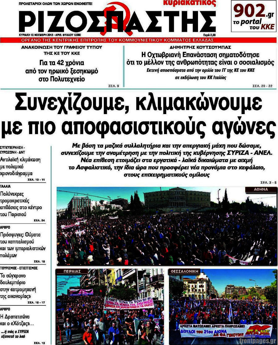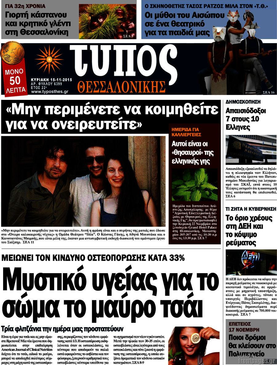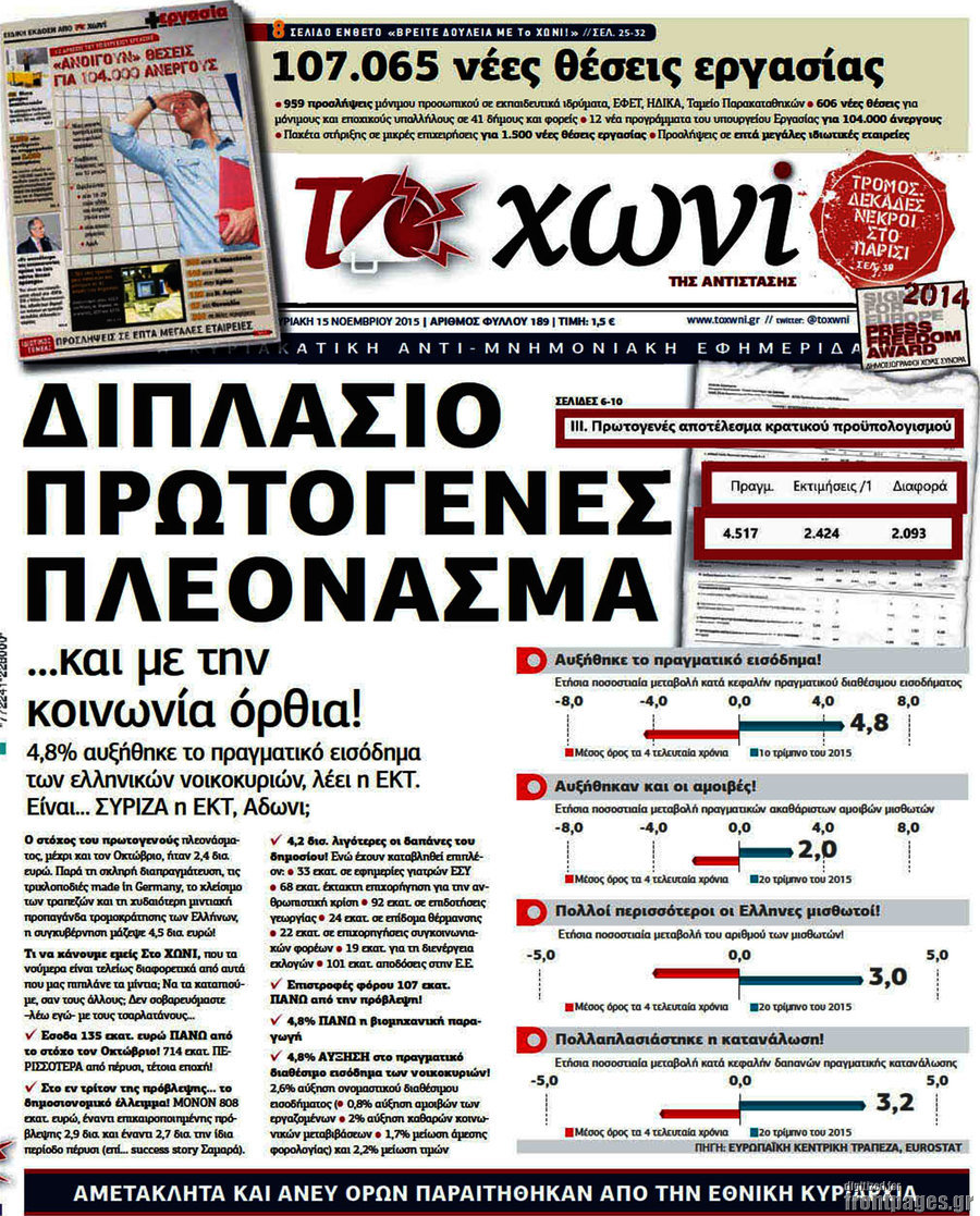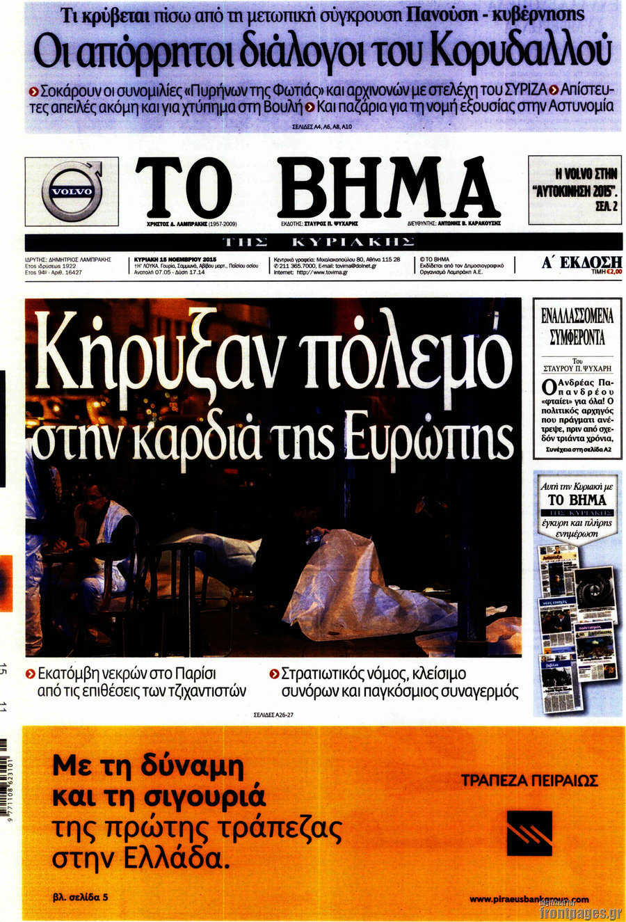 Οι πολιτικές εφημερίδες 15/11/2015 Enikos Newsroom 07:57, Κυριακή 15 Νοεμβρίου 2015 Media Διαβάστε τα σημερινά πρωτοσέλιδα των πολιτικών εφημερίδων: ΠΟΛΙΤΙΚΕΣ ΕΦΗΜΕΡΙΔΕΣ ΠΡΩΤΟΣΕΛΙΔΑ Μοιράσου το: σχολίασε κι εσύ (0 σχόλια) Ακολουθήστε το enikos.gr στο Google News και μάθετε πρώτοι όλες τις ειδήσεις Δείτε όλες τις τελευταίες ειδήσεις από την Ελλάδα και τον Κόσμο στο enikos.gr Ειδήσεις Ροή Ειδήσεων 1 ώρα πριν Χριστούγεννα στα μπλόκα: Επιμένουν στις κινητοποιήσεις τους οι αγρότες – Ανοίγουν τα διόδια το Σαββατοκύριακο 2 ώρες πριν Ουκρανία: Η άνευ προηγουμένου επίθεση σε ρωσικό τάνκερ στη Μεσόγειο και το μήνυμα προς στον Πούτιν – Το «μακρύ χέρι» του Κιέβου 1 ώρα πριν Πούτιν: Τα μηνύματα σε Ευρώπη και ΝΑΤΟ από το μαραθώνιο «σόου» του – Η απαίτηση για «σεβασμό» και η ειρήνη «με τους όρους» της Μόσχας 2 ώρες πριν Τραμπ: Δεν αποκλείει την πιθανότητα ενός πολέμου στη Βενεζουέλα – «Ο Μαδούρο ξέρει καλύτερα από τον καθένα τι ακριβώς θέλω» 3 ώρες πριν Συνεχίζει να προκαλεί ο Μίτσκοσκι: «Για μένα το όνομα Μακεδονία είναι ιερό» 1 ώρα πριν Ανακαλύφθηκαν αρχαία χρυσά νομίσματα 2.200 ετών που απεικονίζουν τον θεό Απόλλωνα – Η άγνωστη σύνδεση με τον Φίλιππο Β΄ της Μακεδονίας 2 ώρες πριν Ύπνος: Μια κρυφή κατάσταση του εγκεφάλου πριν από τον ύπνο μπορεί να είναι το “κλειδί” για υψηλή ευφυΐα και δημιουργικότητα 3 ώρες πριν Αριθμολογία: Οι άνθρωποι που έχουν γεννηθεί αυτές τις 4 ημερομηνίες, συχνά παρεξηγούνται – «Η καλοσύνη τους κρύβει τεράστια δύναμη» 4 ώρες πριν Ξεχάστε το καθάρισμα το Σαββατοκύριακο: Ο «κανόνας των 20 λεπτών» που θα σας λύσει τα χέρια 5 λεπτά πριν Πόλεμος στην Ουκρανία: Εφτά νεκροί από ρωσική πυραυλική επίθεση στο λιμάνι της Οδησσού 9 λεπτά πριν ΗΠΑ: Η κυβέρνηση του Ντόναλντ Τραμπ άρχισε να δημοσιοποιεί τα αρχεία Έπσταϊν 20 λεπτά πριν Σάμος: Άνοιξε το μπλόκο των αγροτών στον κόμβο Κοκκαρίου – Σε νέα συνεδρίαση θα καθορίσουν την στάση τους 28 λεπτά πριν Άνω Λιόσια: Πυροβολισμοί σε επιχείρηση με χαλιά – Εντοπίστηκαν 10 κάλυκες 36 λεπτά πριν Γάζα: Ισραηλινό πλήγμα σε σχολείο που είχαν καταφύγει εκτοπισμένοι – Τουλάχιστον έξι νεκροί ENIKOS NETWORK Το ΕΚΑΒ τιμήθηκε από την Ακαδημία Αθηνών για τα 40 χρόνια προσφοράς του Έχετε πραγματικά μεγάλη καρδιά; 10 χαρακτηριστικά όσων έχουν καλοσύνη Αναστολή μέτρων αναγκαστικής εκτέλεσης για κτηνοτρόφους που πλήττονται από την ευλογιά των αιγοπροβάτων Πλήρης επάρκεια προϊόντων στις λαϊκές της Αττικής, παρά τις αγροτικές κινητοποιήσεις – Τι απαντούν οι πωλητές Χαρτογραφώντας το «σημείο χωρίς επιστροφή»: Για πρώτη φορά αποκαλύπτεται με λεπτομέρεια το ακανθώδες όριο της ατμόσφαιρας τ... Η Google καταργεί τη λειτουργία «dark web report» – Πώς θα μπορούν οι χρήστες να διαγράφουν τα δεδομένα τους περισσότερα 22:42 , Παρασκευή 19 Δεκεμβρίου 2025 Γιώργος Γιαννόπουλος για “Το σόι σου”: “Είναι ευτυχία και ευλογία αυτή η σειρά” «Είναι ευτυχία και ευλογία η συγκυρία αυτής της σειράς», θα πει ο Γιώργος Γιαννόπουλος -ο αγαπ... 20:37 , Παρασκευή 19 Δεκεμβρίου 2025 Don’t Forget The Lyrics: Η Έλλη Κοκκίνου υποδέχεται 4 παίκτες που θα κάνουν τα πάντα για να μη χάσουν ούτε… μισή λέξη από τους στίχους Το «Don’t Forget The Lyrics» επιστρέφει απόψε, Παρασκευή 19 Δεκεμβρίου, στις 21:00 με νέο επει... 19:31 , Παρασκευή 19 Δεκεμβρίου 2025 GNTM: Απόψε ο μεγάλος τελικός για τους 4 φιναλίστ Έπειτα από μήνες γεμάτους μόδα, δημιουργία και έντονες αναμετρήσεις, το GNTM 2025 κορυφώνεται,... 18:11 , Παρασκευή 19 Δεκεμβρίου 2025 Το σόι σου: Ο Ά