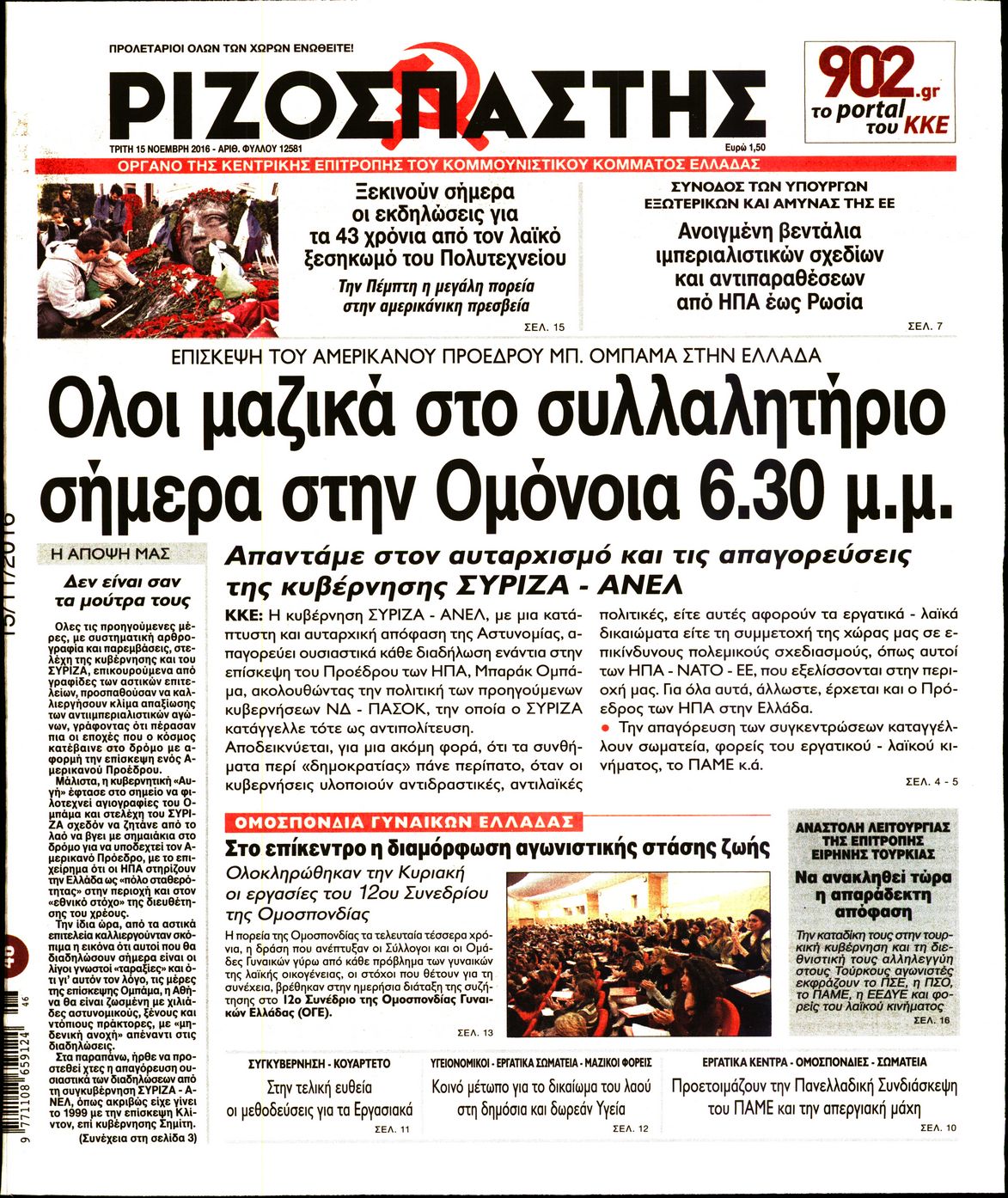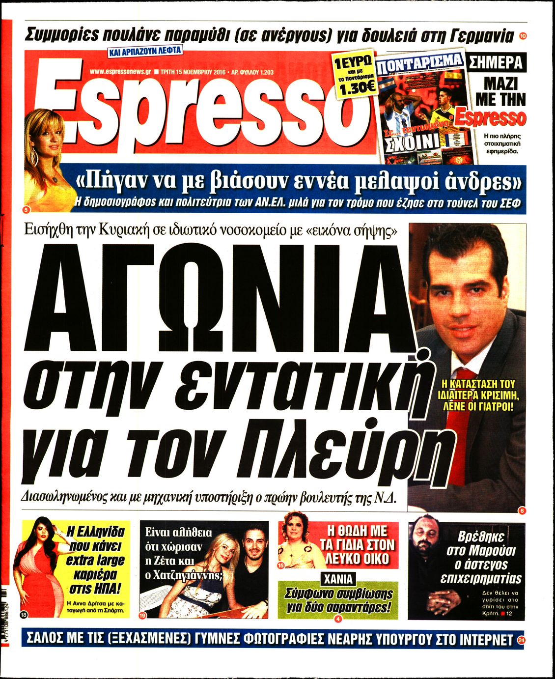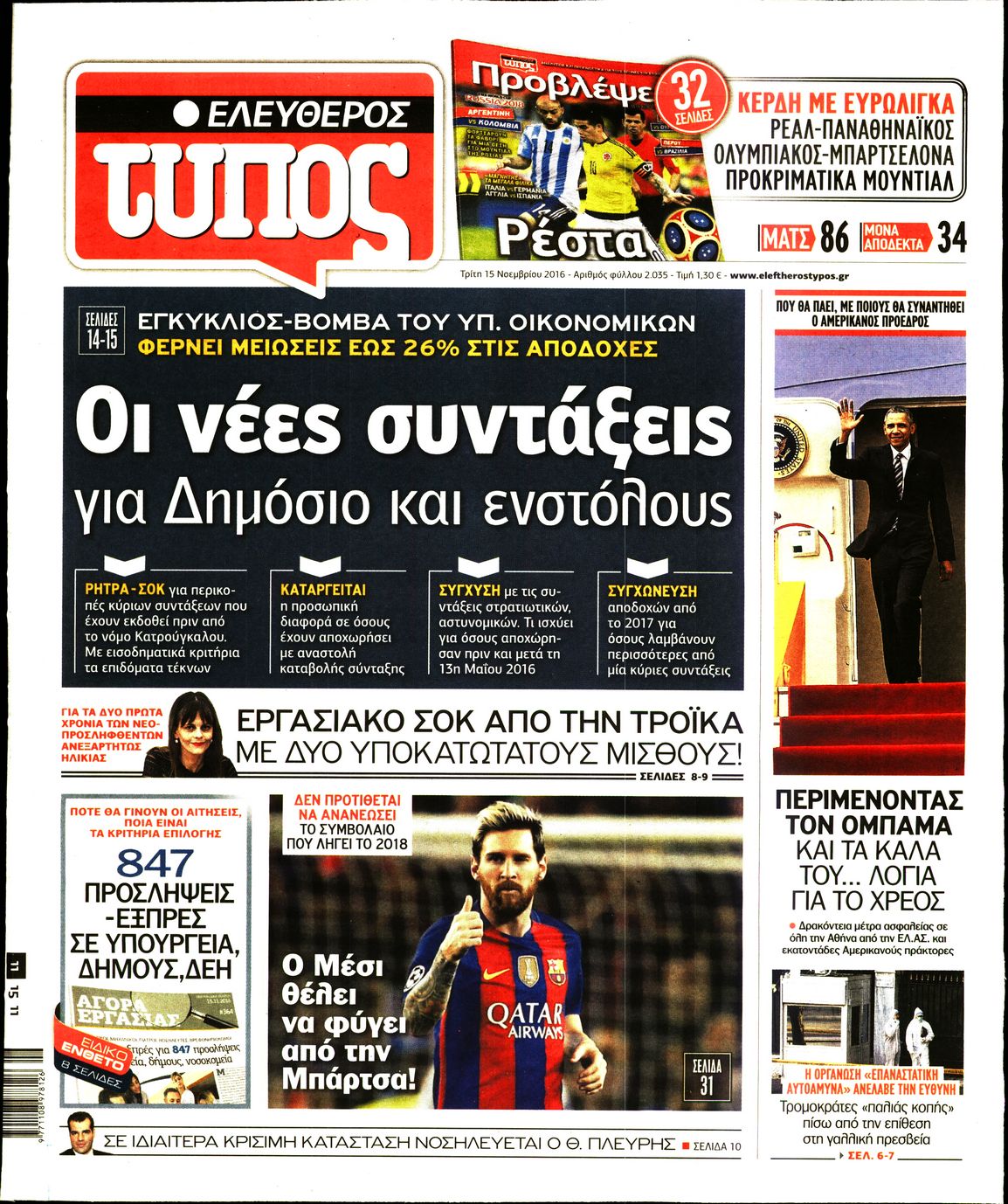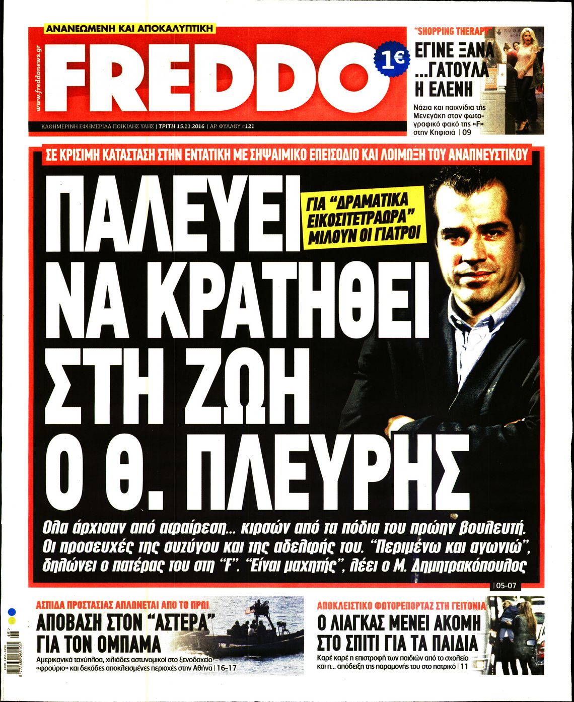 Οι πολιτικές εφημερίδες 15/11/2016 Enikos Newsroom 03:53, Τρίτη 15 Νοεμβρίου 2016 Media Διαβάστε τα σημερινά πρωτοσέλιδα των πολιτικών εφημερίδων: ΠΟΛΙΤΙΚΕΣ ΕΦΗΜΕΡΙΔΕΣ ΠΡΩΤΟΣΕΛΙΔΑ Μοιράσου το: σχολίασε κι εσύ (0 σχόλια) Ακολουθήστε το enikos.gr στο Google News και μάθετε πρώτοι όλες τις ειδήσεις Δείτε όλες τις τελευταίες ειδήσεις από την Ελλάδα και τον Κόσμο στο enikos.gr Ειδήσεις Ροή Ειδήσεων 51 λεπτά πριν Χριστούγεννα στα μπλόκα: Επιμένουν στις κινητοποιήσεις τους οι αγρότες – Ανοίγουν τα διόδια το Σαββατοκύριακο 1 ώρα πριν Ουκρανία: Η άνευ προηγουμένου επίθεση σε ρωσικό τάνκερ στη Μεσόγειο και το μήνυμα προς στον Πούτιν – Το «μακρύ χέρι» του Κιέβου 29 λεπτά πριν Πούτιν: Τα μηνύματα σε Ευρώπη και ΝΑΤΟ από το μαραθώνιο «σόου» του – Η απαίτηση για «σεβασμό» και η ειρήνη «με τους όρους» της Μόσχας 1 ώρα πριν Τραμπ: Δεν αποκλείει την πιθανότητα ενός πολέμου στη Βενεζουέλα – «Ο Μαδούρο ξέρει καλύτερα από τον καθένα τι ακριβώς θέλω» 2 ώρες πριν Συνεχίζει να προκαλεί ο Μίτσκοσκι: «Για μένα το όνομα Μακεδονία είναι ιερό» 4 ώρες πριν Πούτιν: «Ναι, είμαι ερωτευμένος» – Βίντεο από τη σπάνια προσωπική παραδοχή του 2 ώρες πριν Αριθμολογία: Οι άνθρωποι που έχουν γεννηθεί αυτές τις 4 ημερομηνίες, συχνά παρεξηγούνται – «Η καλοσύνη τους κρύβει τεράστια δύναμη» 1 ώρα πριν Ύπνος: Μια κρυφή κατάσταση του εγκεφάλου πριν από τον ύπνο μπορεί να είναι το “κλειδί” για υψηλή ευφυΐα και δημιουργικότητα 3 ώρες πριν Ξεχάστε το καθάρισμα το Σαββατοκύριακο: Ο «κανόνας των 20 λεπτών» που θα σας λύσει τα χέρια 30 λεπτά πριν Ανακαλύφθηκαν αρχαία χρυσά νομίσματα 2.200 ετών που απεικονίζουν τον θεό Απόλλωνα – Η άγνωστη σύνδεση με τον Φίλιππο Β΄ της Μακεδονίας 14 λεπτά πριν Ολυμπιακός – Βιλερμπάν 107-84: Επιστροφή στις νίκες με… προπόνηση 20 λεπτά πριν Νέος Κόσμος: Συνελήφθη 41χρονος με ένταλμα από την Τουρκία για εμπόριο ναρκωτικών και ληστεία 29 λεπτά πριν Πούτιν: Τα μηνύματα σε Ευρώπη και ΝΑΤΟ από το μαραθώνιο «σόου» του – Η απαίτηση για «σεβασμό» και η ειρήνη «με τους όρους» της Μόσχας 30 λεπτά πριν Ανακαλύφθηκαν αρχαία χρυσά νομίσματα 2.200 ετών που απεικονίζουν τον θεό Απόλλωνα – Η άγνωστη σύνδεση με τον Φίλιππο Β΄ της Μακεδονίας 35 λεπτά πριν Νίκος Ξυλούρης: Συγκινεί η χήρα του σπουδαίου καλλιτέχνη – «Ευχαριστώ όλο τον κόσμο που τον κρατάει ζωντανό 45 χρόνια» ENIKOS NETWORK Το ΕΚΑΒ τιμήθηκε από την Ακαδημία Αθηνών για τα 40 χρόνια προσφοράς του Έχετε πραγματικά μεγάλη καρδιά; 10 χαρακτηριστικά όσων έχουν καλοσύνη Αναστολή μέτρων αναγκαστικής εκτέλεσης για κτηνοτρόφους που πλήττονται από την ευλογιά των αιγοπροβάτων Πλήρης επάρκεια προϊόντων στις λαϊκές της Αττικής, παρά τις αγροτικές κινητοποιήσεις – Τι απαντούν οι πωλητές Χαρτογραφώντας το «σημείο χωρίς επιστροφή»: Για πρώτη φορά αποκαλύπτεται με λεπτομέρεια το ακανθώδες όριο της ατμόσφαιρας τ... Η Google καταργεί τη λειτουργία «dark web report» – Πώς θα μπορούν οι χρήστες να διαγράφουν τα δεδομένα τους περισσότερα 22:42 , Παρασκευή 19 Δεκεμβρίου 2025 Γιώργος Γιαννόπουλος για “Το σόι σου”: “Είναι ευτυχία και ευλογία αυτή η σειρά” «Είναι ευτυχία και ευλογία η συγκυρία αυτής της σειράς», θα πει ο Γιώργος Γιαννόπουλος -ο αγαπ... 20:37 , Παρασκευή 19 Δεκεμβρίου 2025 Don’t Forget The Lyrics: Η Έλλη Κοκκίνου υποδέχεται 4 παίκτες που θα κάνουν τα πάντα για να μη χάσουν ούτε… μισή λέξη από τους στίχους Το «Don’t Forget The Lyrics» επιστρέφει απόψε, Παρασκευή 19 Δεκεμβρίου, στις 21:00 με νέο επει... 19:31 , Παρασκευή 