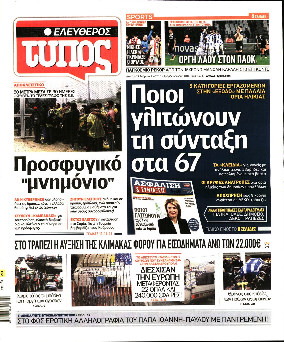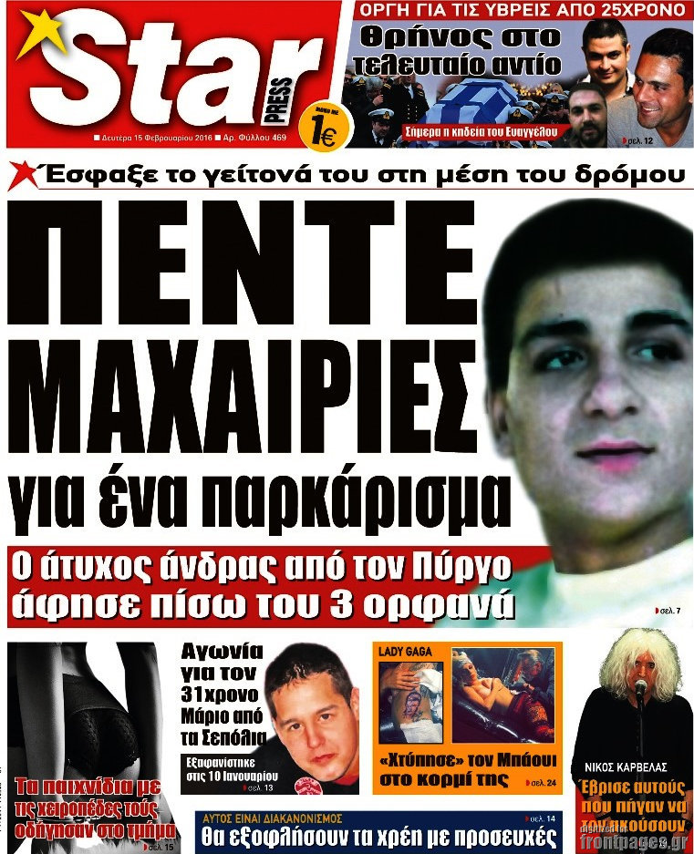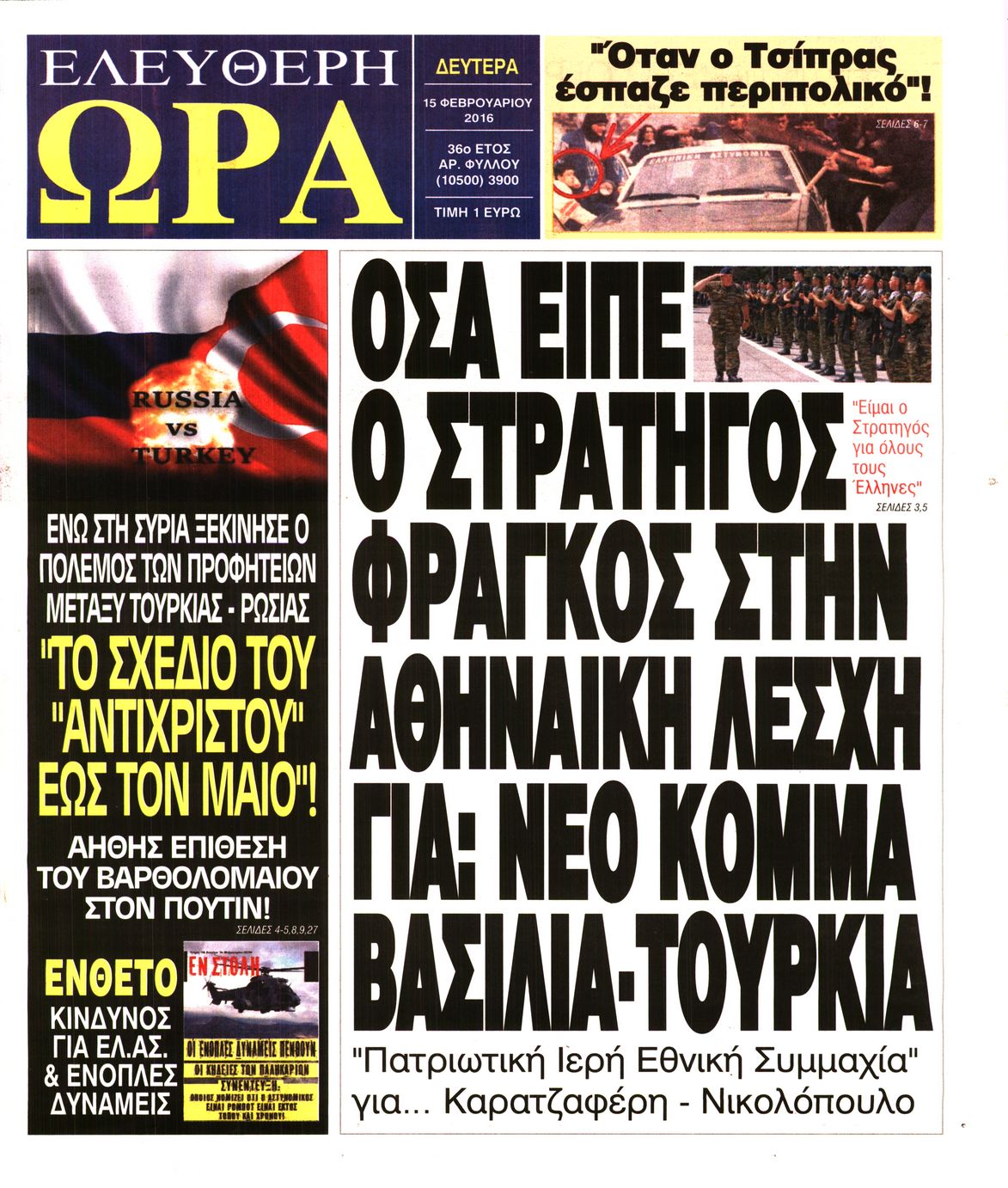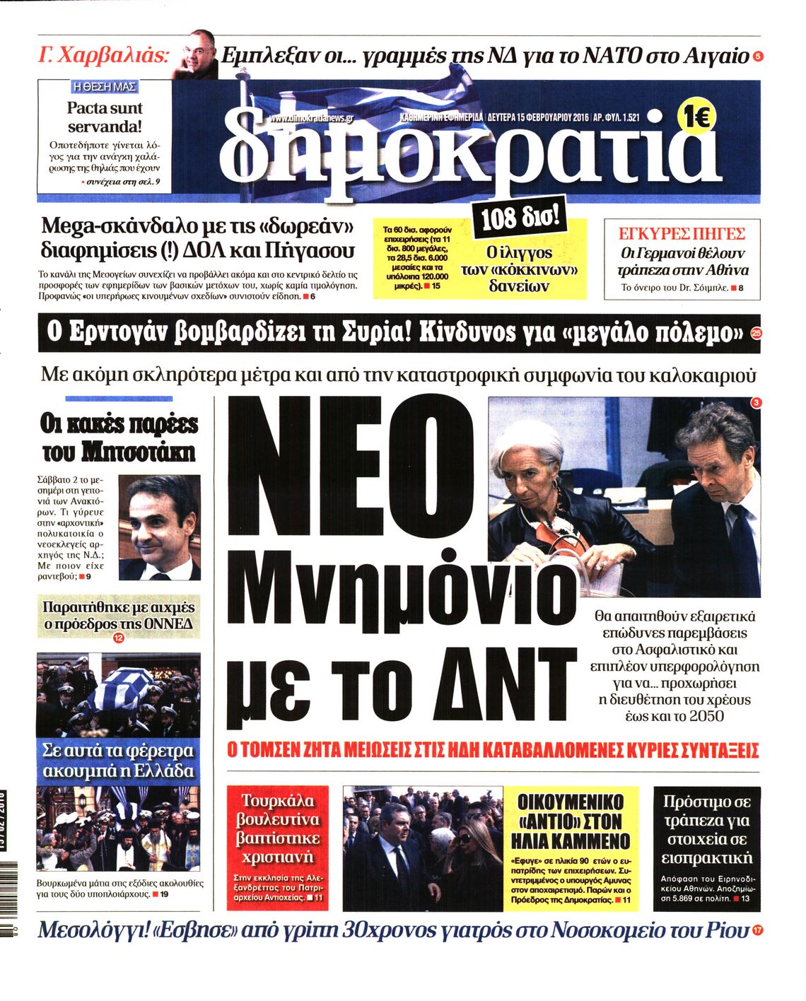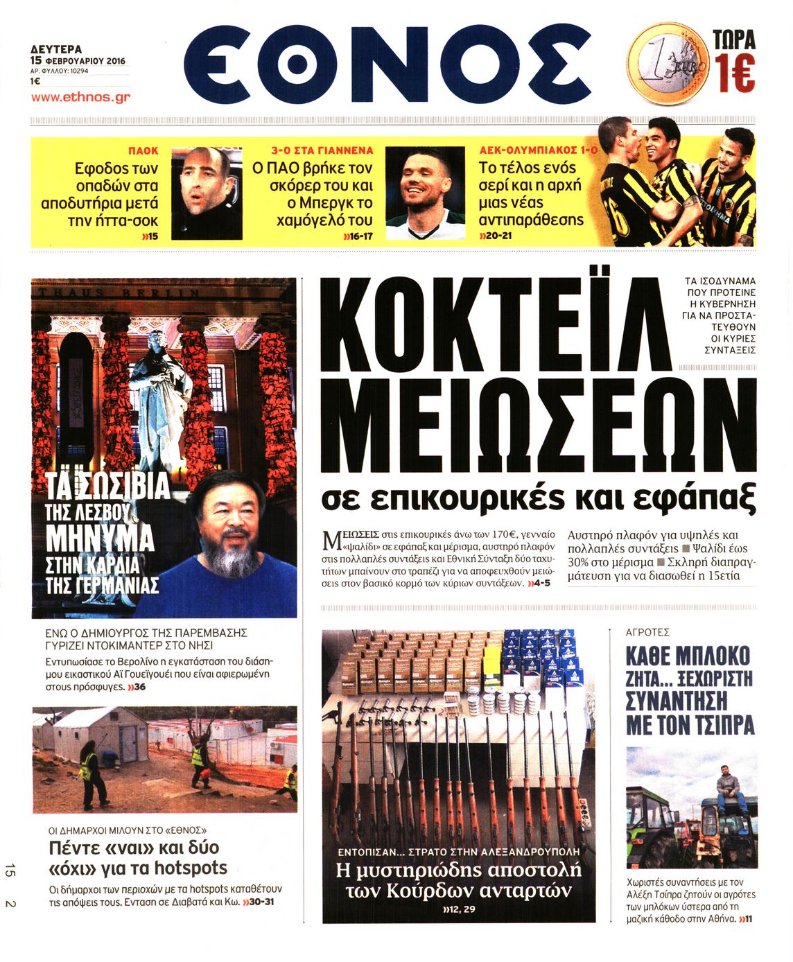 Οι πολιτικές εφημερίδες 15/2/2016 Enikos Newsroom 06:56, Δευτέρα 15 Φεβρουαρίου 2016 Media Διαβάστε τα σημερινά πρωτοσέλιδα των πολιτικών εφημερίδων. ΕΦΗΜΕΡΙΔΕΣ ΠΟΛΙΤΙΚΕΣ ΕΦΗΜΕΡΙΔΕΣ ΠΡΩΤΟΣΕΛΙΔΑ Μοιράσου το: σχολίασε κι εσύ (0 σχόλια) Ακολουθήστε το enikos.gr στο Google News και μάθετε πρώτοι όλες τις ειδήσεις Δείτε όλες τις τελευταίες ειδήσεις από την Ελλάδα και τον Κόσμο στο enikos.gr Ειδήσεις Ροή Ειδήσεων 20 λεπτά πριν Χριστούγεννα στα μπλόκα: Επιμένουν στις κινητοποιήσεις τους οι αγρότες – Ανοίγουν τα διόδια το Σαββατοκύριακο 49 λεπτά πριν Τραμπ: Δεν αποκλείει την πιθανότητα ενός πολέμου στη Βενεζουέλα – «Ο Μαδούρο ξέρει καλύτερα από τον καθένα τι ακριβώς θέλω» 43 λεπτά πριν Ουκρανία: Η άνευ προηγουμένου επίθεση σε ρωσικό τάνκερ στη Μεσόγειο και το μήνυμα προς στον Πούτιν – Το «μακρύ χέρι» του Κιέβου 3 ώρες πριν Πούτιν: «Ναι, είμαι ερωτευμένος» – Βίντεο από τη σπάνια προσωπική παραδοχή του 1 ώρα πριν Συνεχίζει να προκαλεί ο Μίτσκοσκι: «Για μένα το όνομα Μακεδονία είναι ιερό» 2 ώρες πριν Αριθμολογία: Οι άνθρωποι που έχουν γεννηθεί αυτές τις 4 ημερομηνίες, συχνά παρεξηγούνται – «Η καλοσύνη τους κρύβει τεράστια δύναμη» 4 ώρες πριν Μήπως έχετε χάσει τον εαυτό σας στη σχέση σας; 7 «αθόρυβες» υποχωρήσεις που μάλλον κάνατε, χωρίς να το συνειδητοποιήσετε 3 ώρες πριν Ξεχάστε το καθάρισμα το Σαββατοκύριακο: Ο «κανόνας των 20 λεπτών» που θα σας λύσει τα χέρια 58 λεπτά πριν Ύπνος: Μια κρυφή κατάσταση του εγκεφάλου πριν από τον ύπνο μπορεί να είναι το “κλειδί” για υψηλή ευφυΐα και δημιουργικότητα 3 λεπτά πριν Νίκος Ξυλούρης: Συγκινεί η χήρα του σπουδαίου καλλιτέχνη – «Ευχαριστώ όλο τον κόσμο που τον κρατάει ζωντανό 45 χρόνια» 10 λεπτά πριν Παναθηναϊκός: «Μέσα» οι Σφιντέρσκι και Τουμπά για το ματς με τον ΠΑΟΚ – Τι έδειξε η μαγνητική του Πάντοβιτς 16 λεπτά πριν Γιώργος Γιαννόπουλος για “Το σόι σου”: “Είναι ευτυχία και ευλογία αυτή η σειρά” 20 λεπτά πριν Χριστούγεννα στα μπλόκα: Επιμένουν στις κινητοποιήσεις τους οι αγρότες – Ανοίγουν τα διόδια το Σαββατοκύριακο 32 λεπτά πριν Χάρι και Μέγκαν: Η σπάνια οικογενειακή φωτογραφία με τον Άρτσι και τη Λίλιμπετ – Τι σχεδιάζουν για τα Χριστούγεννα ENIKOS NETWORK Το ΕΚΑΒ τιμήθηκε από την Ακαδημία Αθηνών για τα 40 χρόνια προσφοράς του Έχετε πραγματικά μεγάλη καρδιά; 10 χαρακτηριστικά όσων έχουν καλοσύνη Πλήρης επάρκεια προϊόντων στις λαϊκές της Αττικής, παρά τις αγροτικές κινητοποιήσεις – Τι απαντούν οι πωλητές ΑΑΔΕ: Νέες αναβαθμίσεις στο Ψηφιακό Πελατολόγιο και την εφαρμογή myDATAapp – Τι πρέπει να γνωρίζετε Χαρτογραφώντας το «σημείο χωρίς επιστροφή»: Για πρώτη φορά αποκαλύπτεται με λεπτομέρεια το ακανθώδες όριο της ατμόσφαιρας τ... Η Google καταργεί τη λειτουργία «dark web report» – Πώς θα μπορούν οι χρήστες να διαγράφουν τα δεδομένα τους περισσότερα 22:42 , Παρασκευή 19 Δεκεμβρίου 2025 Γιώργος Γιαννόπουλος για “Το σόι σου”: “Είναι ευτυχία και ευλογία αυτή η σειρά” «Είναι ευτυχία και ευλογία η συγκυρία αυτής της σειράς», θα πει ο Γιώργος Γιαννόπουλος -ο αγαπ... 20:37 , Παρασκευή 19 Δεκεμβρίου 2025 Don’t Forget The Lyrics: Η Έλλη Κοκκίνου υποδέχεται 4 παίκτες που θα κάνουν τα πάντα για να μη χάσουν ούτε… μισή λέξη από τους στίχους Το «Don’t Forget The Lyrics» επιστρέφει απόψε, Παρασκευή 19 Δεκεμβρίου, στις 21:00 με νέο επει... 19:31 , Παρασκευή 19 Δεκεμβρίου 2025 GNTM: Απόψε ο μεγάλος τελικός για τους 4 φιναλίστ Έπειτα από μήνες γεμάτους μόδα, δημιουργία και έντονες αναμετρήσεις, το GNTM 2025 κορυφώνεται,... 18:1